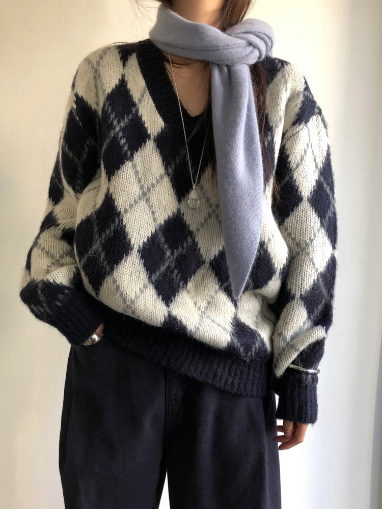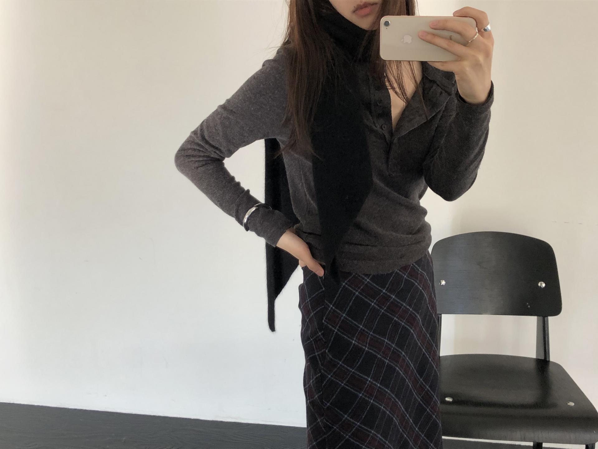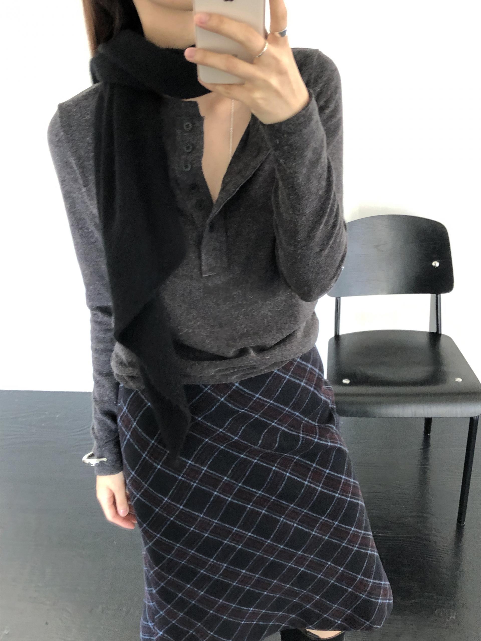 전체적인 형태는 양 끝을 사선으로 커팅해, 자연스럽게 흘러내리는 예쁜 드레이프 실루엣을 연출해요. 이렇게 끝이 사선인 패턴이 목에 둘렀을 때 매듭 모양도 깔끔하게 떨어지고, 끝으로 갈수록 볼륨감이 과하지 않아 더 세련된 이미지를 주더라구요 :)