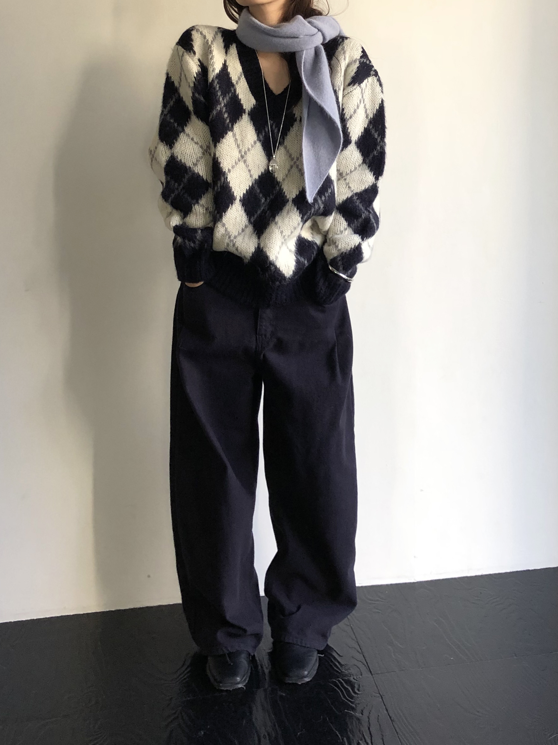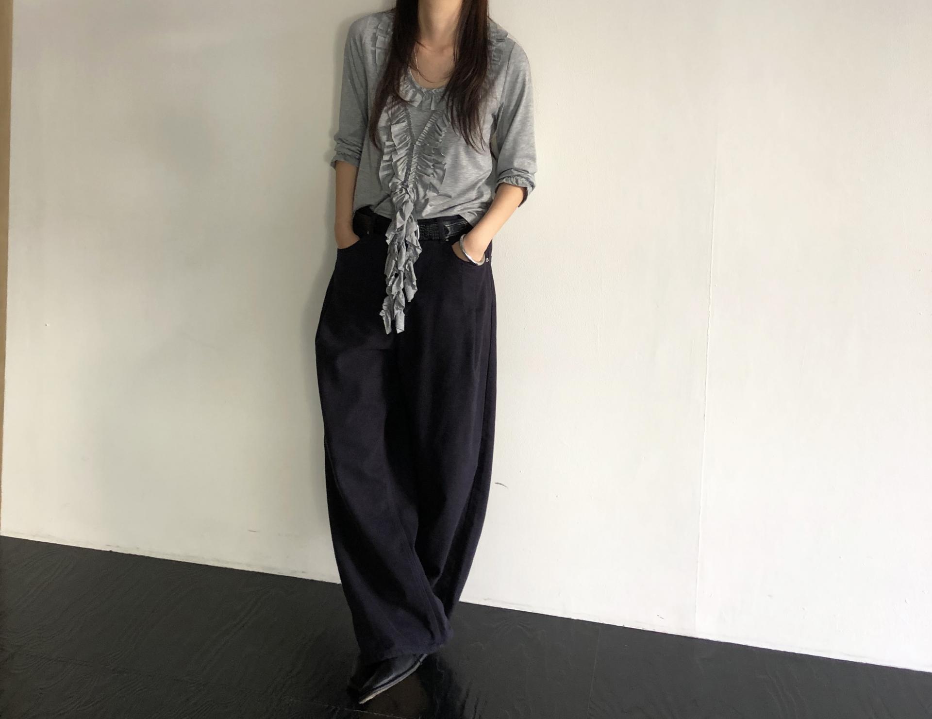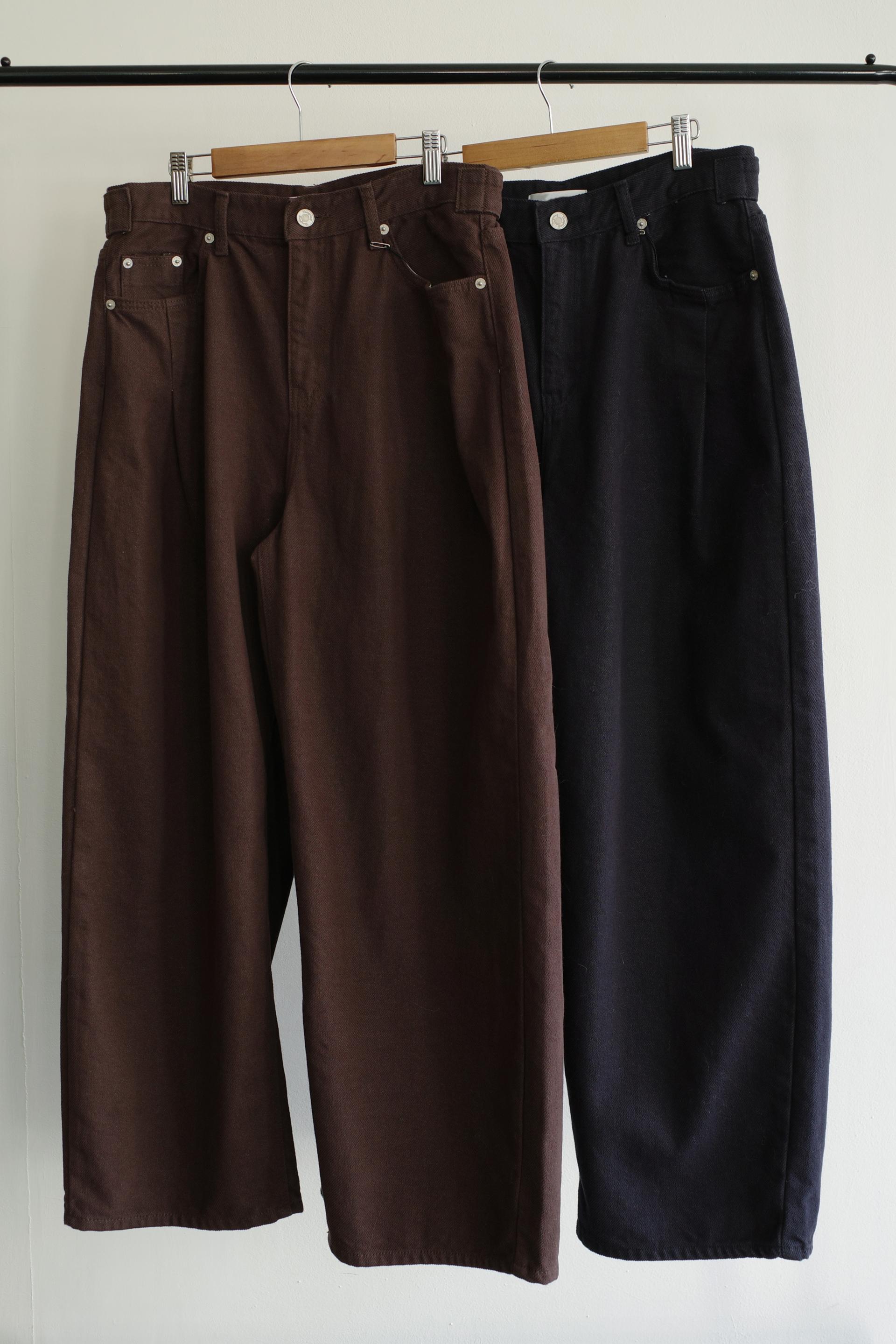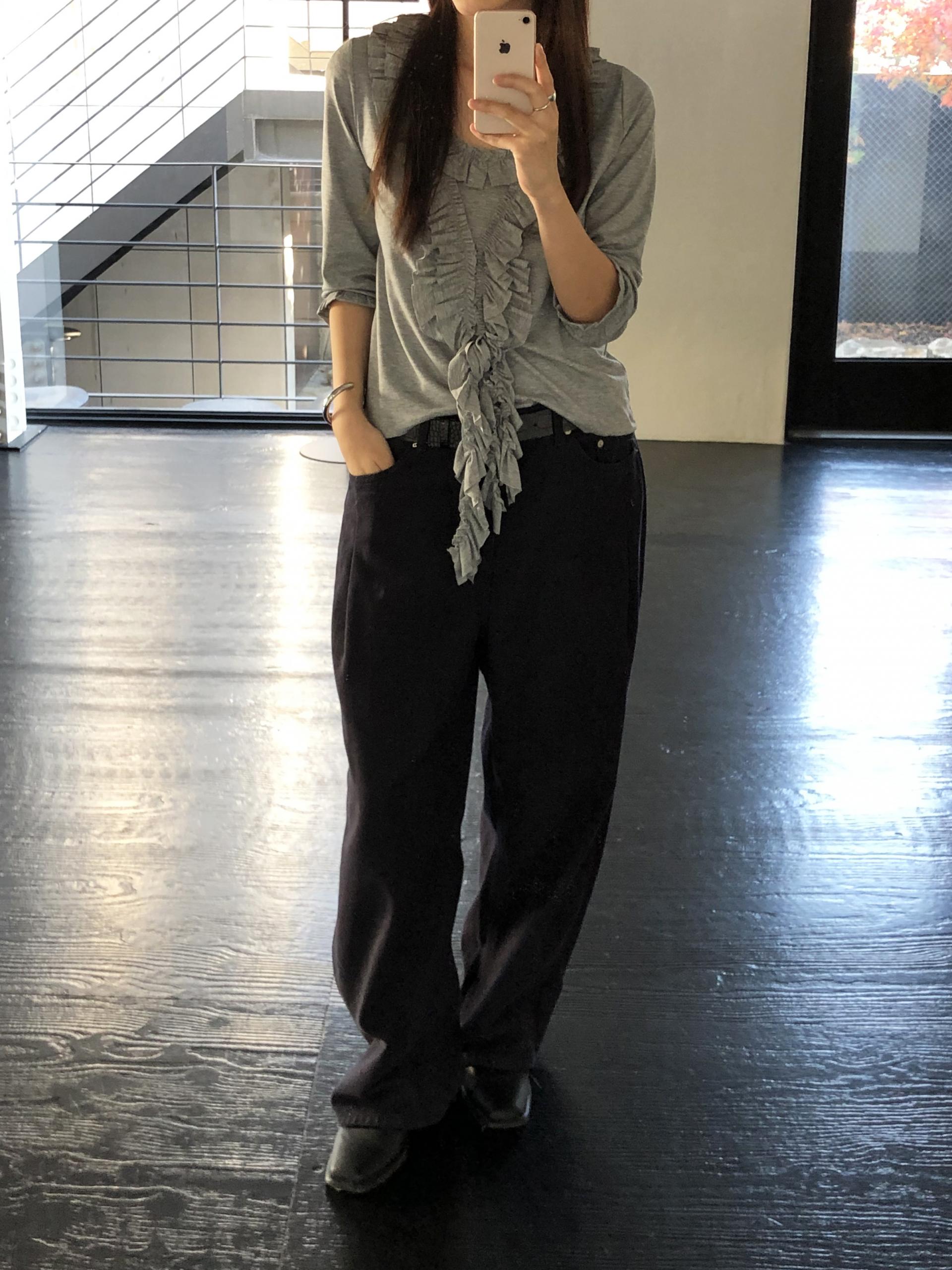 와이드하게 떨어지는 라운드 핏으로 멋스러운 실루엣을 가졌어요. 안쪽이 기모 처리되어 부드럽고 유연합니다. 추울 때는 차갑고 딱딱한 텍스쳐의 팬츠는 눈길도 가지 않는 저로서는,, 겨울내내 참 잘 입게 될 것 같아요.