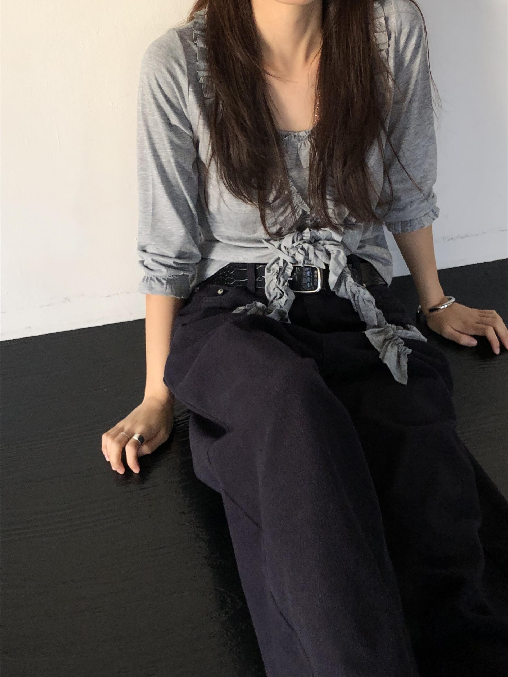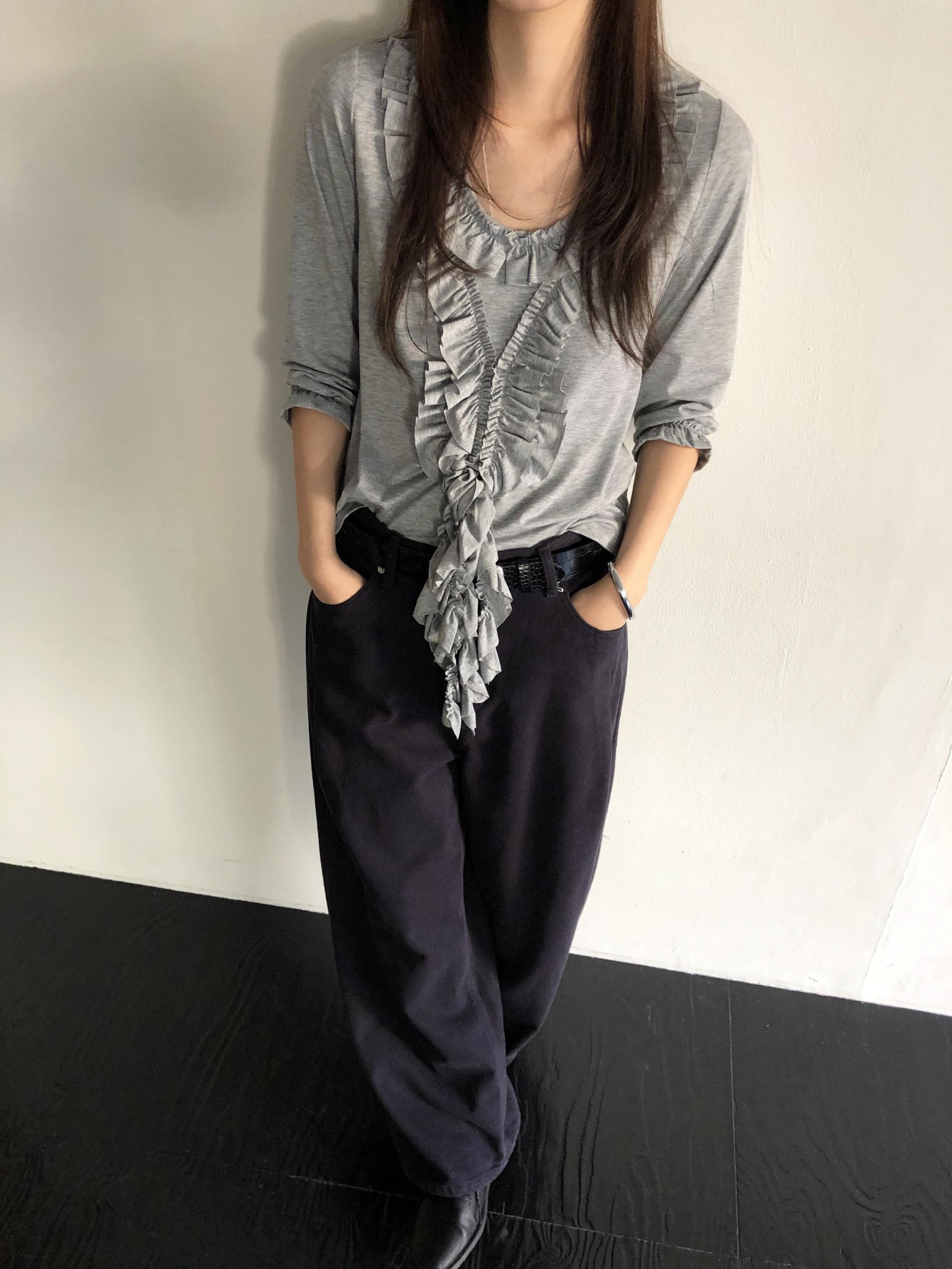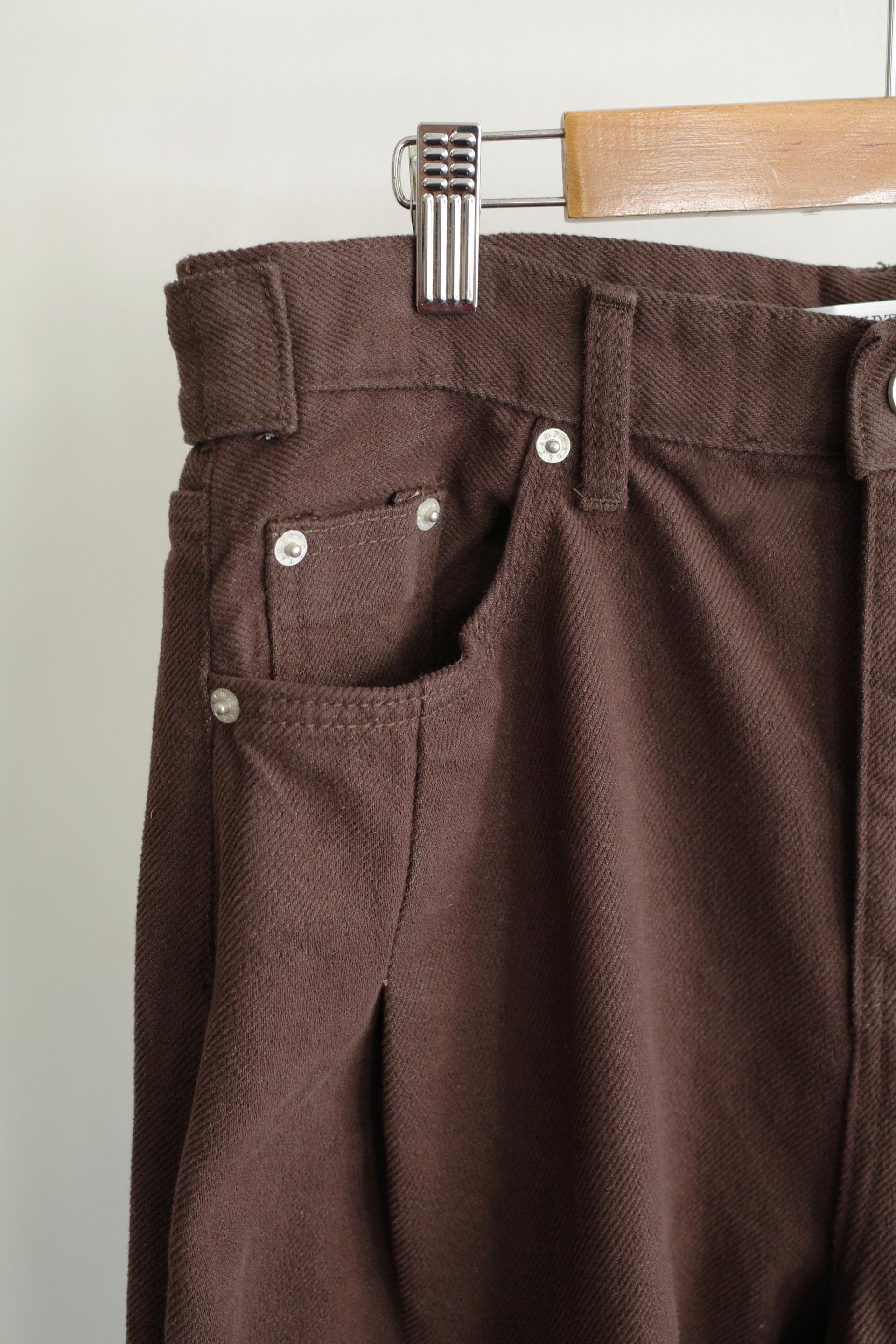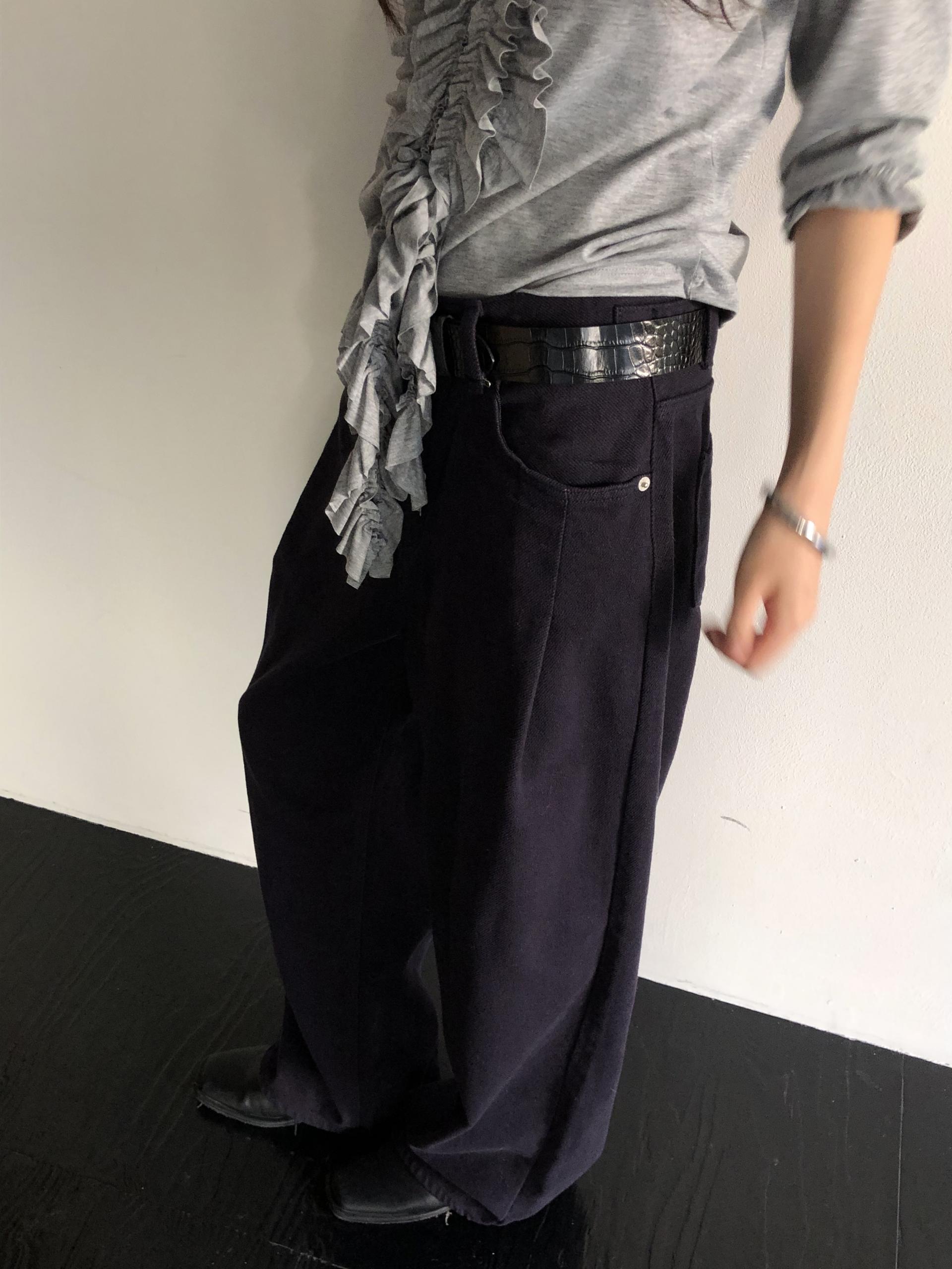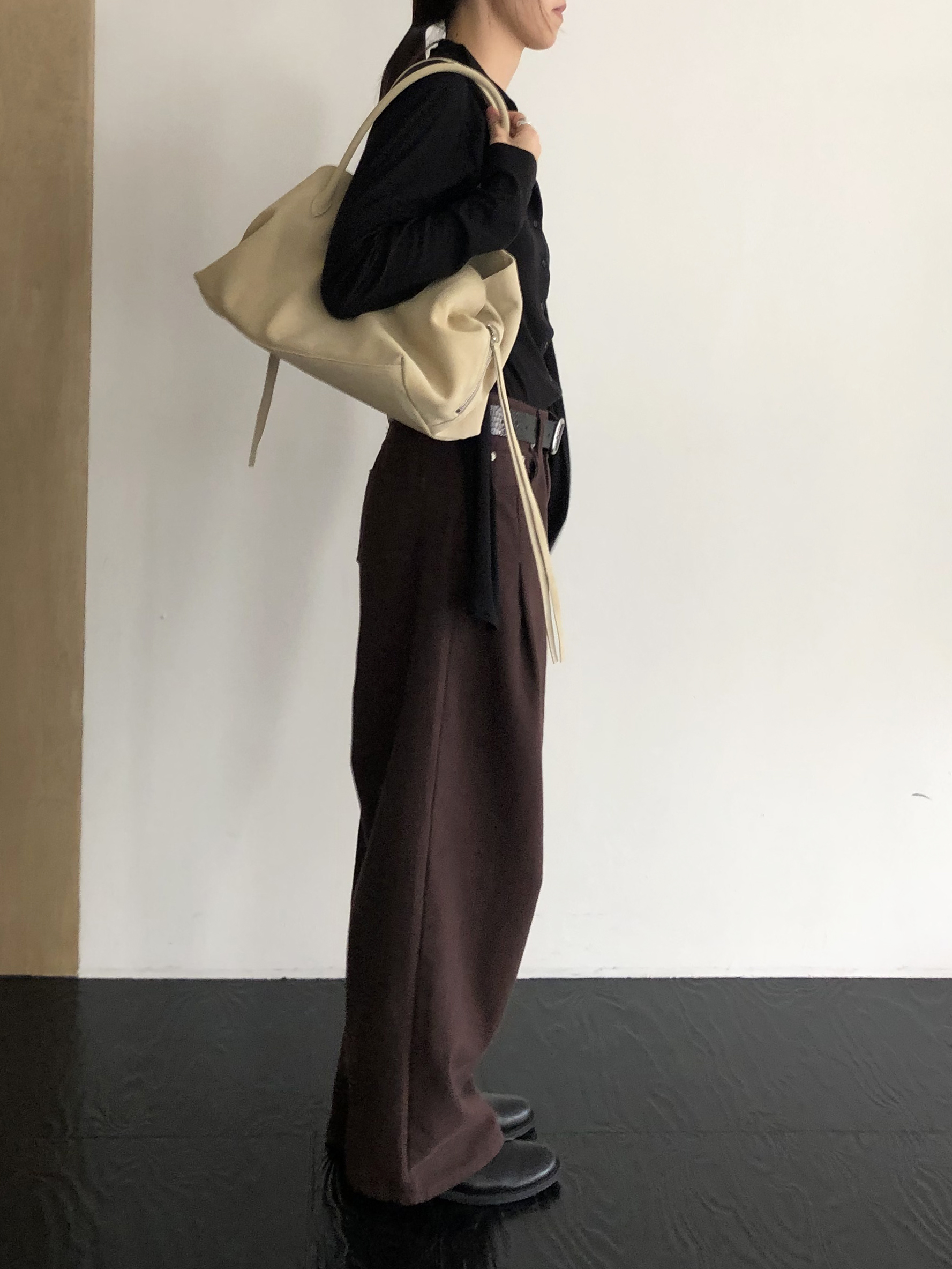 와이드하게 떨어지는 라운드 핏으로 멋스러운 실루엣을 가졌어요. 안쪽이 기모 처리되어 부드럽고 유연합니다. 추울 때는 차갑고 딱딱한 텍스쳐의 팬츠는 눈길도 가지 않는 저로서는,, 겨울내내 참 잘 입게 될 것 같아요.