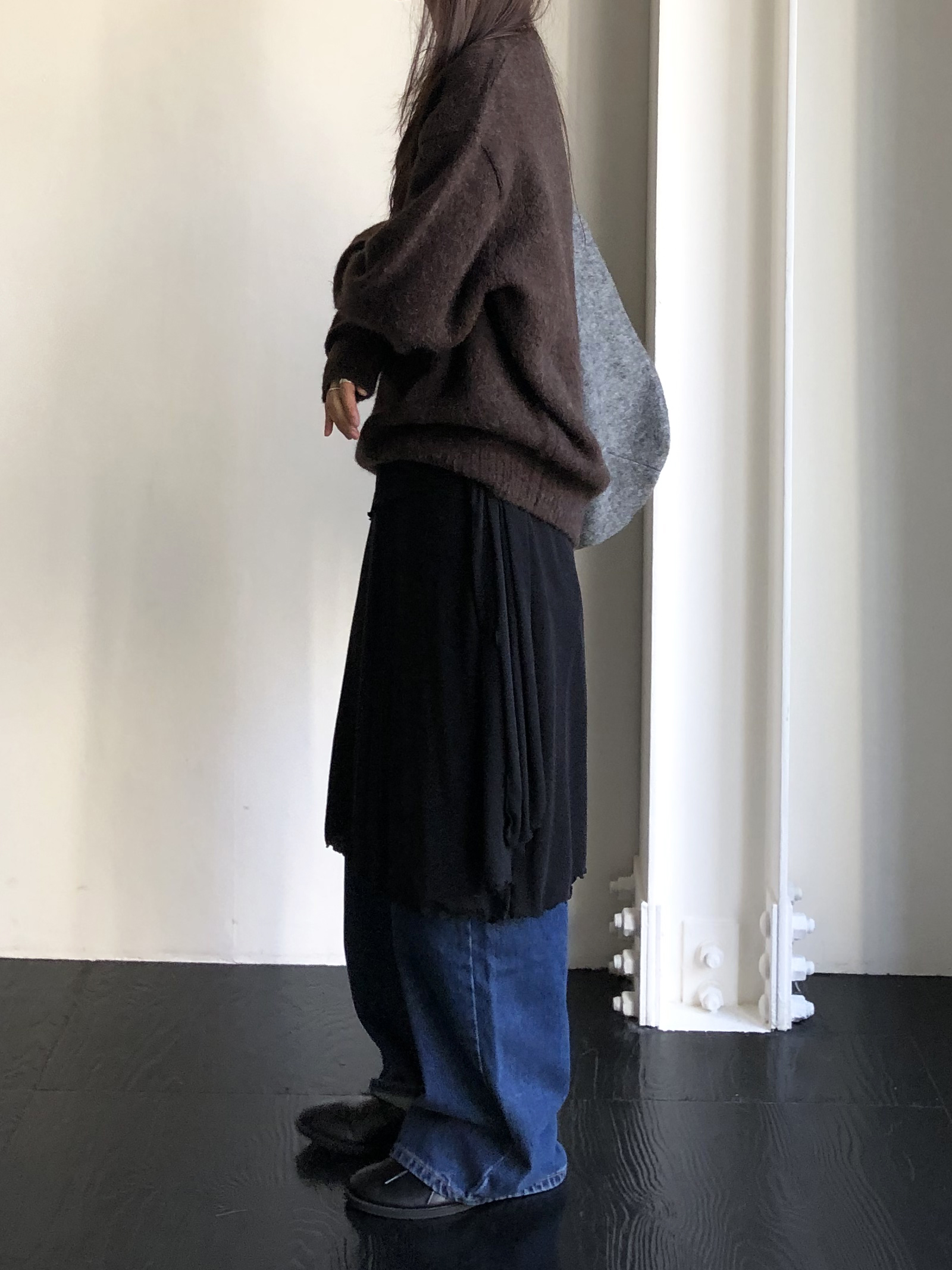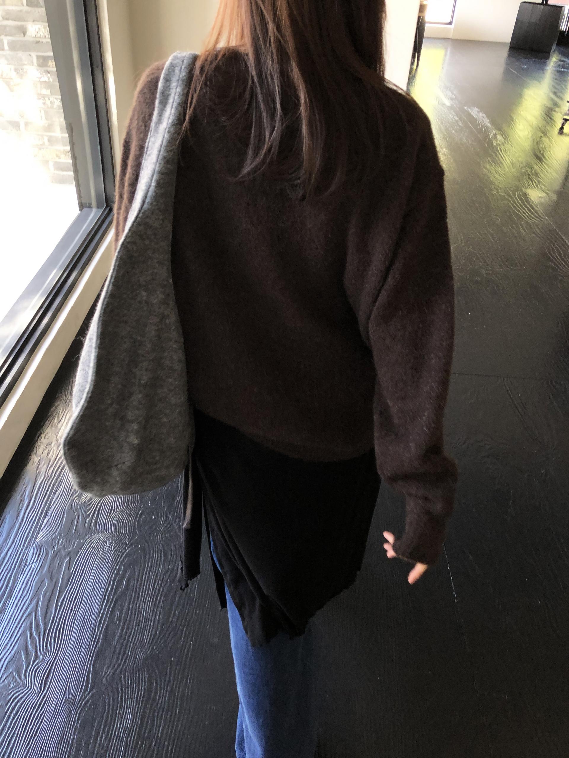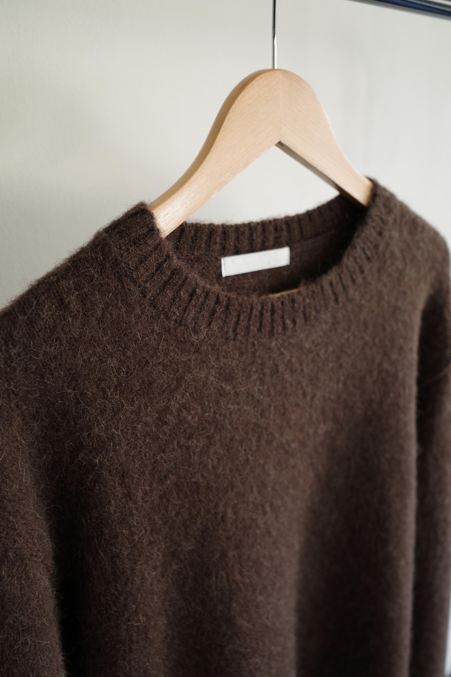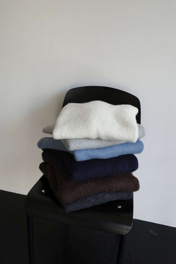 알파카와 울 혼방으로 보온성은 물론 특유의 헤어가 잘 담겨있습니다. 특히 짙은 컬러일수록 믹스된 하얀 원사가 잘 드러나 더욱 입체감있고 포근한 결감이 도드라져요.