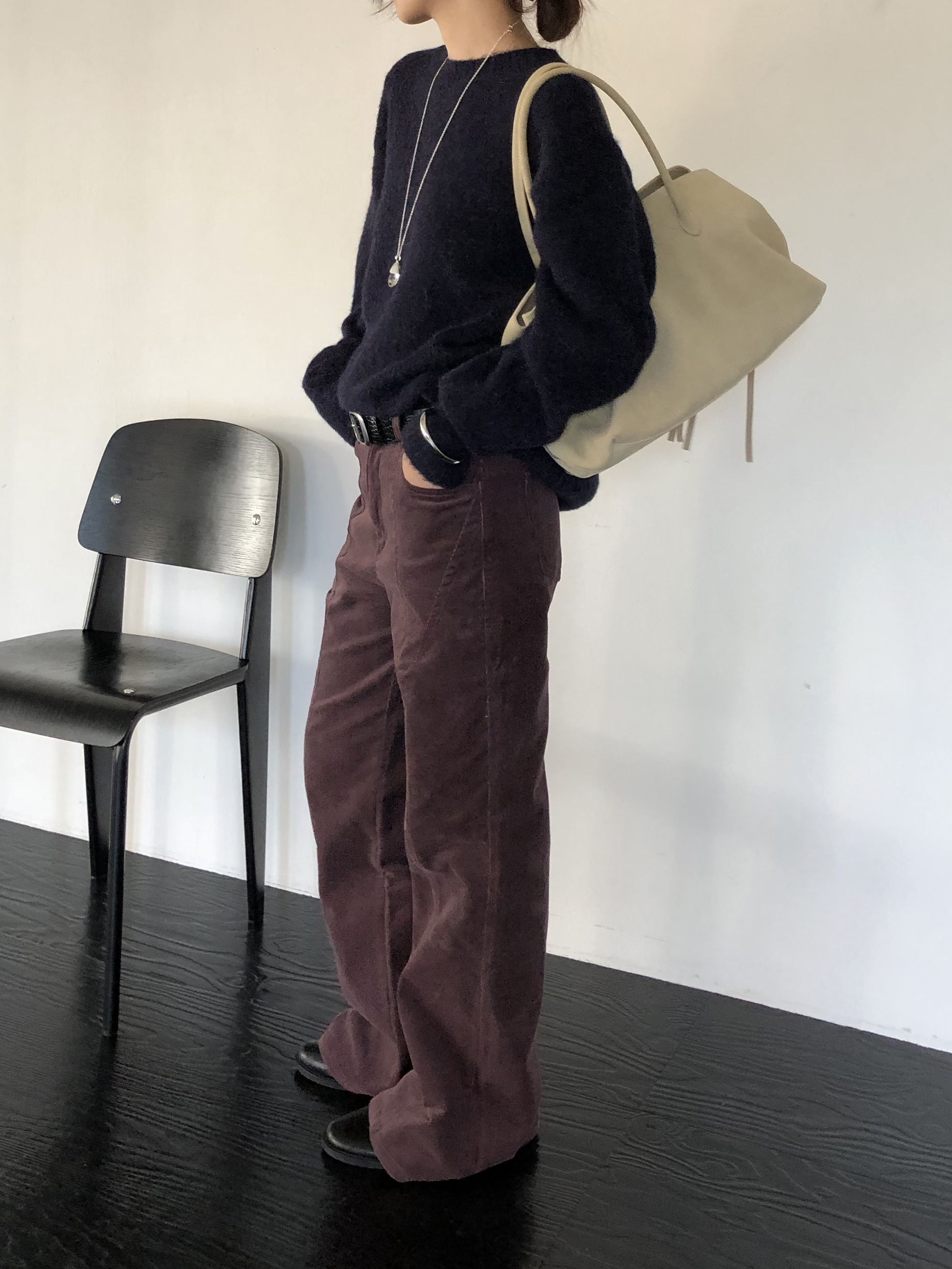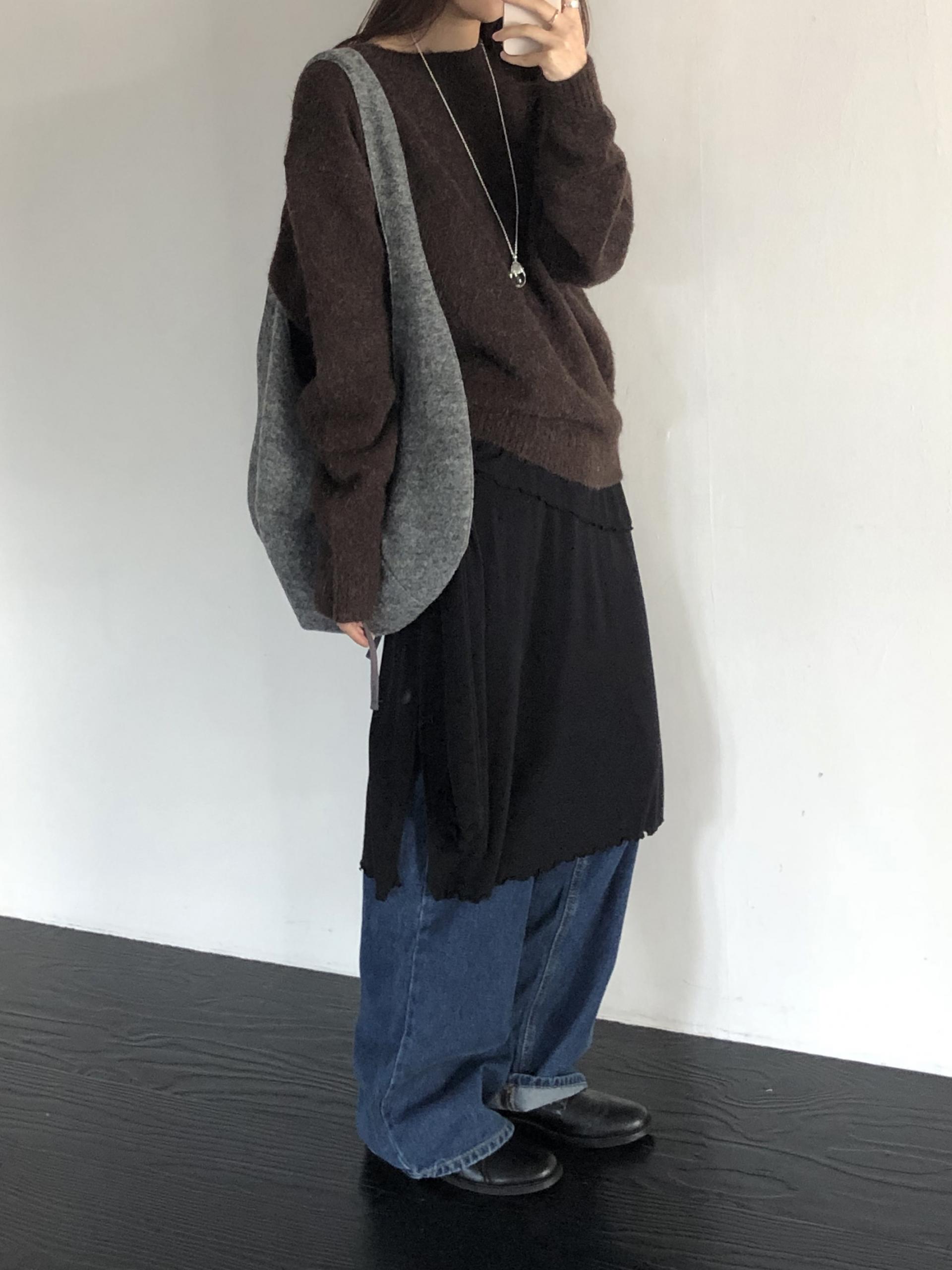 전체적으로 심플하게 스타일링하기 편한 니트이지만 소재와 색감, 내추럴한 핏에서 나오는 고급스러움이 느껴지는 아이템이에요. 적극 추천드립니다 !