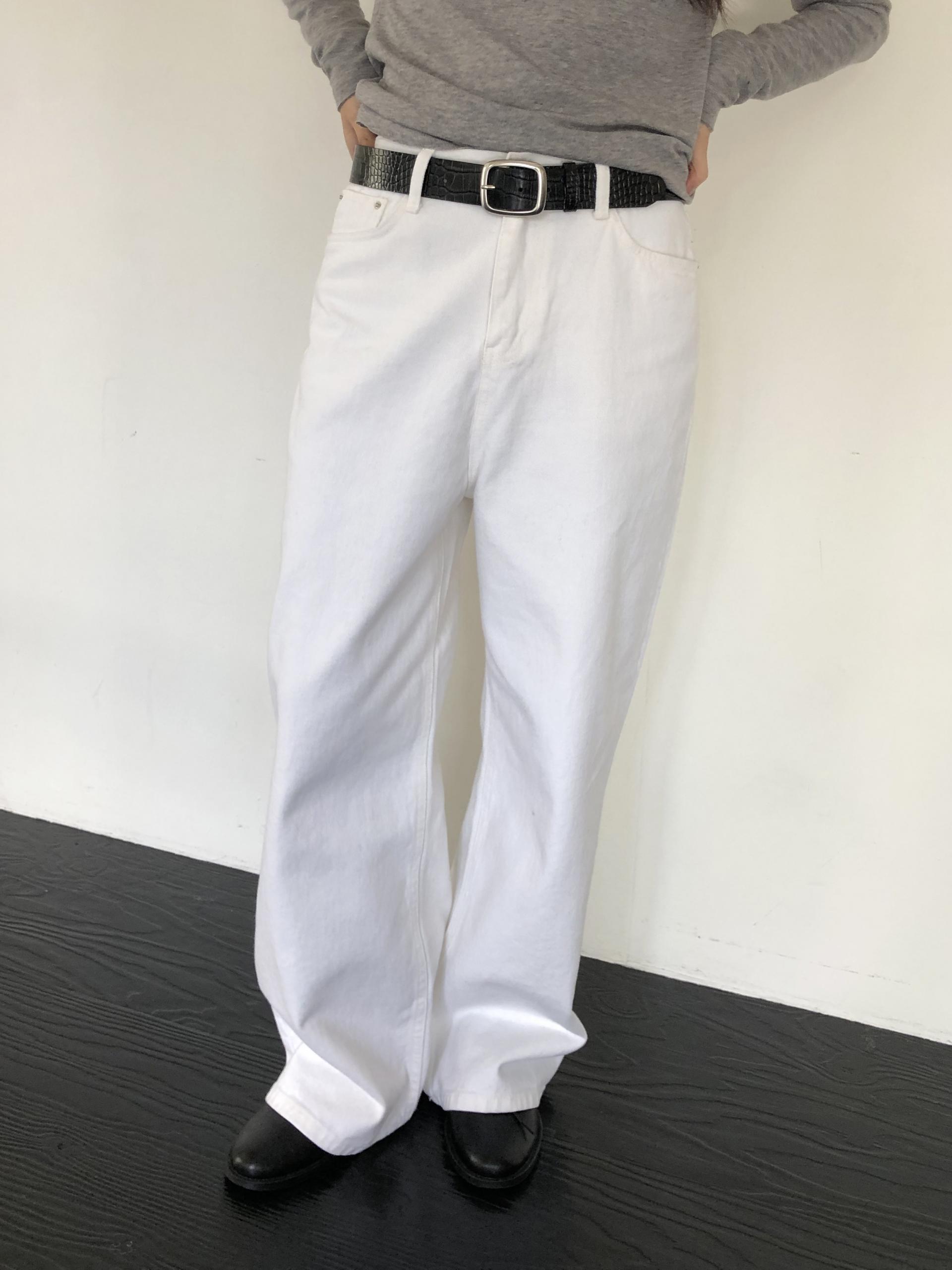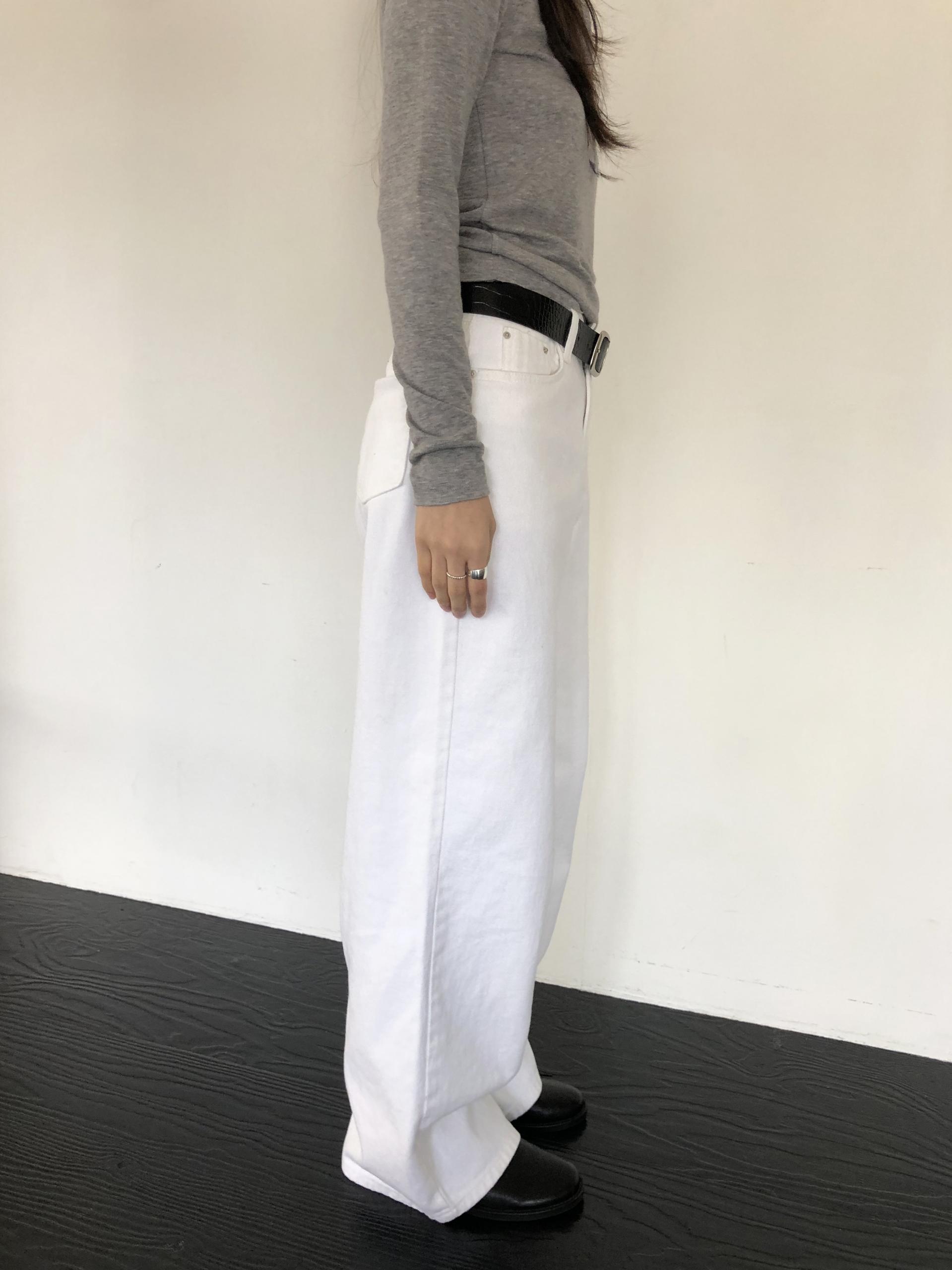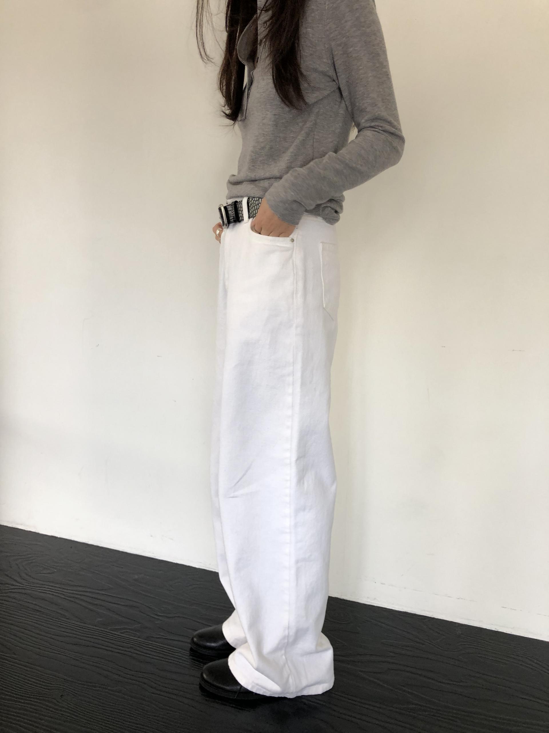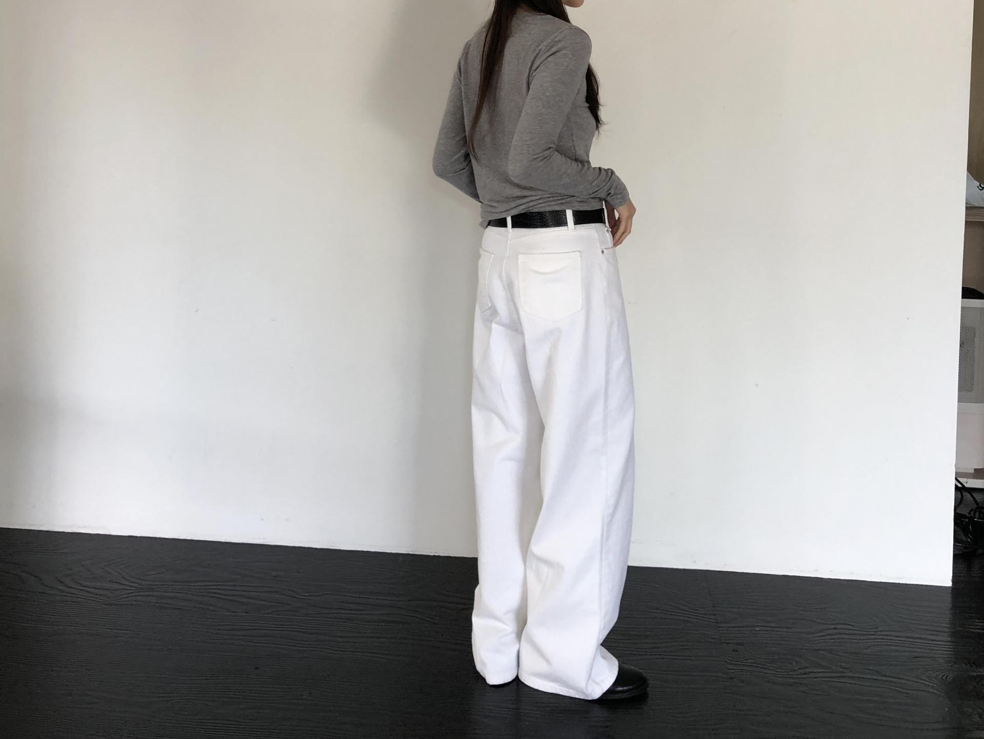 와이드한 실루엣이 자연스럽게 떨어져 편안하면서 멋스러운 라인을 만들고, 화이트 컬러 특유의 깨끗한 인상이 전체적인 룩을 산뜻하고 깔끔하게 정리해줍니다.