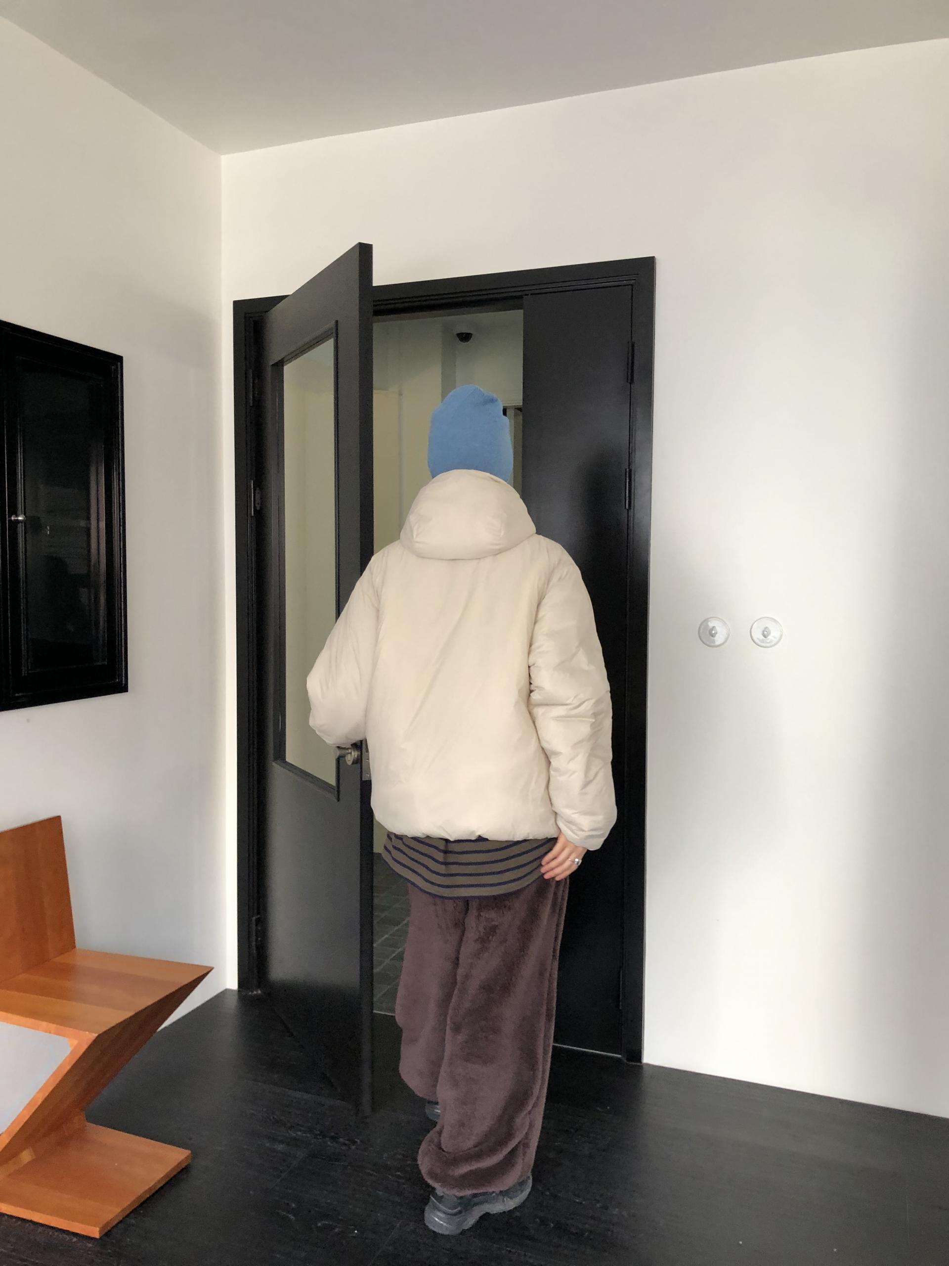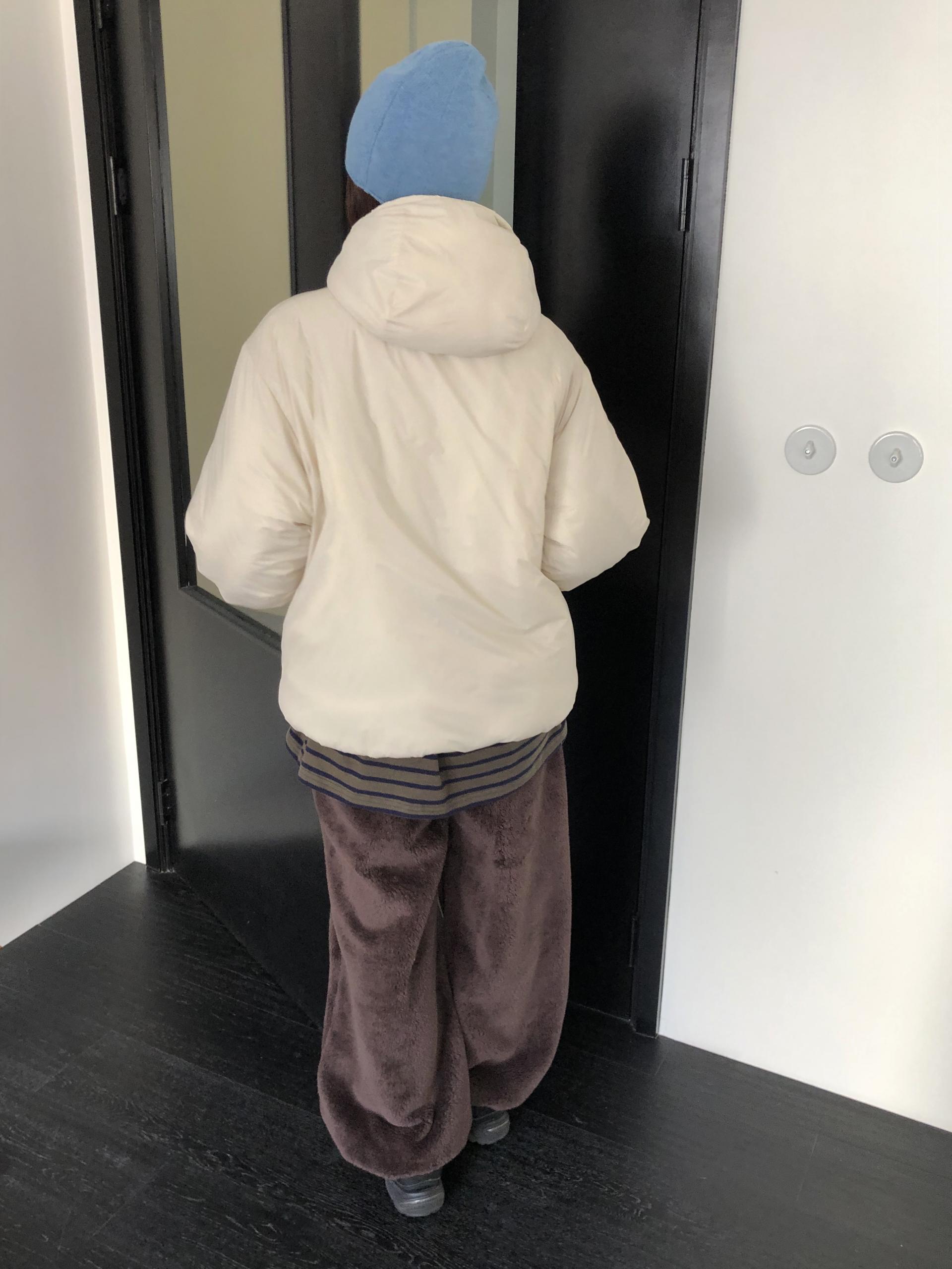 소매와 밑단, 후드 끝에는 얇은 밴딩 마감을 더해 실루엣을 과하게 조이지 않으면서도 찬바람을 가볍게 막아줍니다. 덥분에 전체적으로 둥글고 귀여운 볼륨감은 살리면서 착용감은 한결 편안해요.