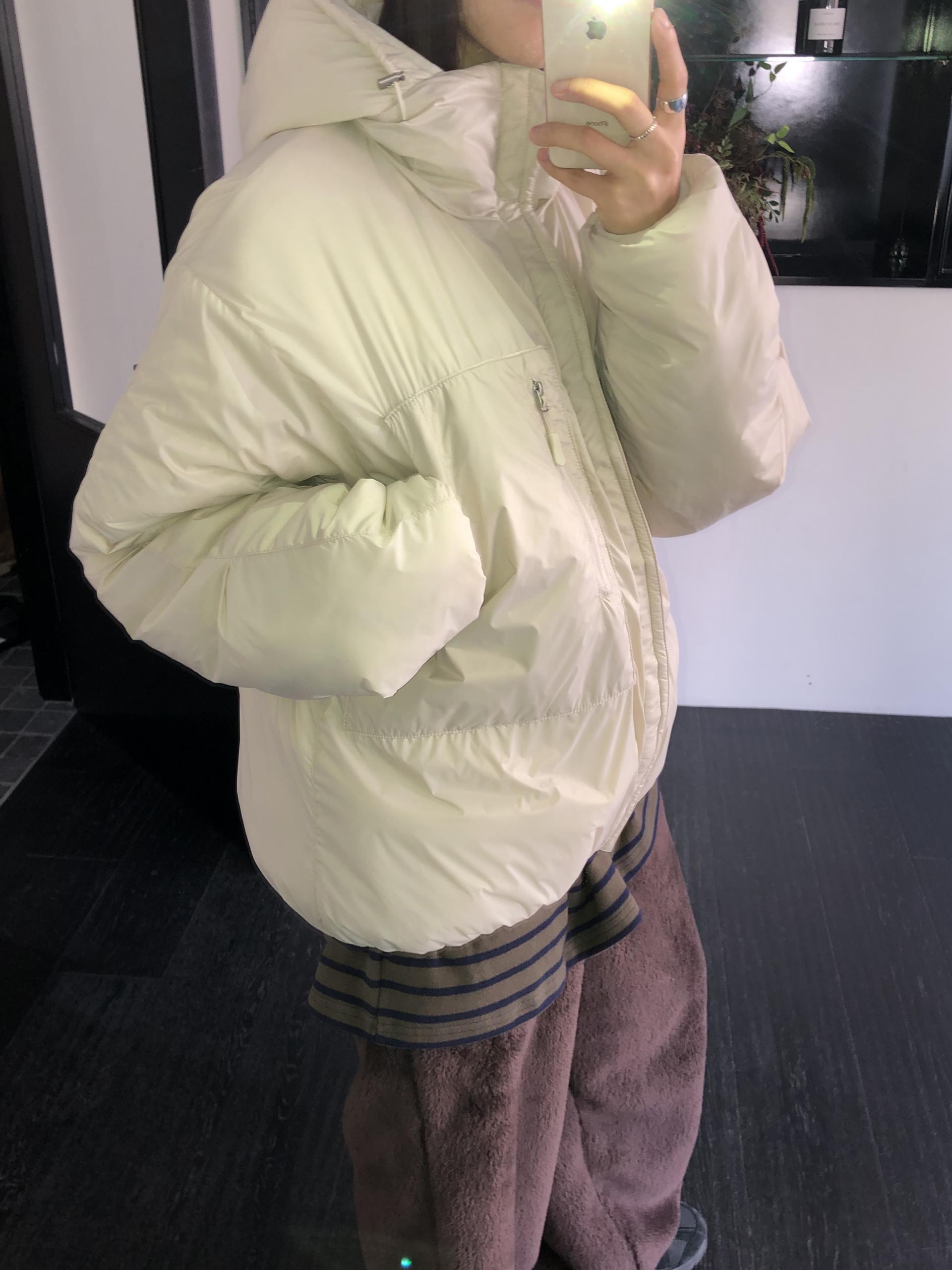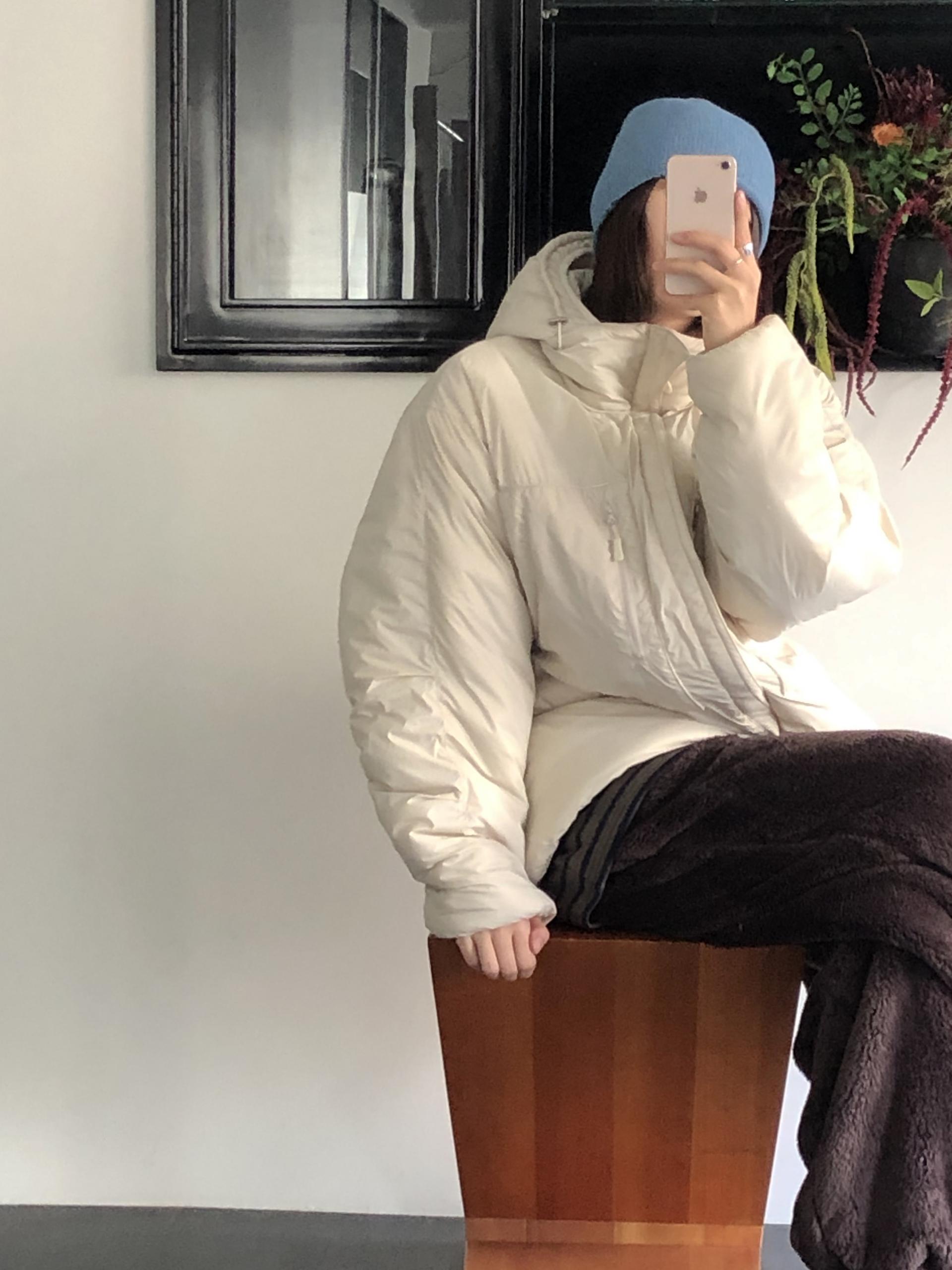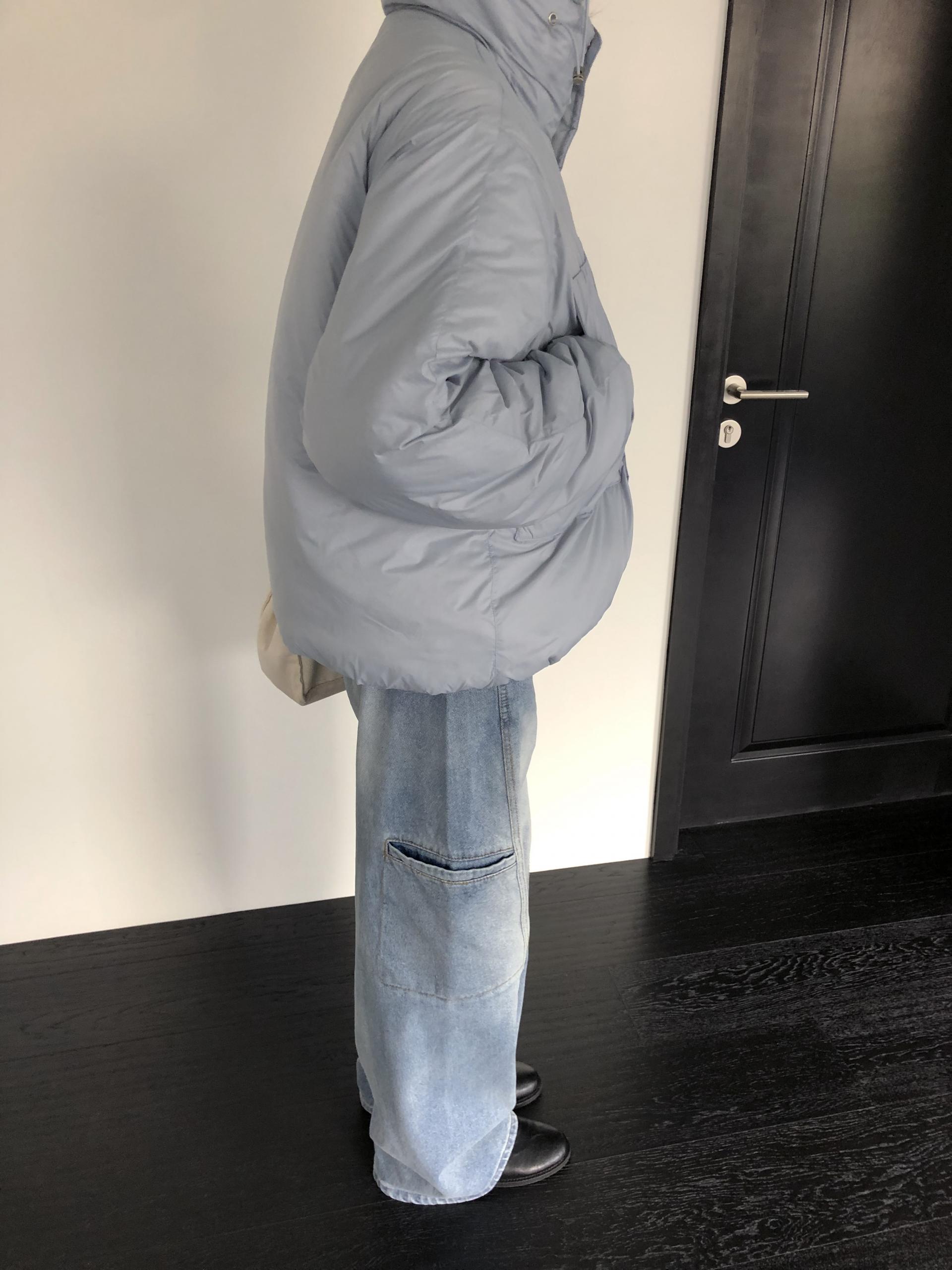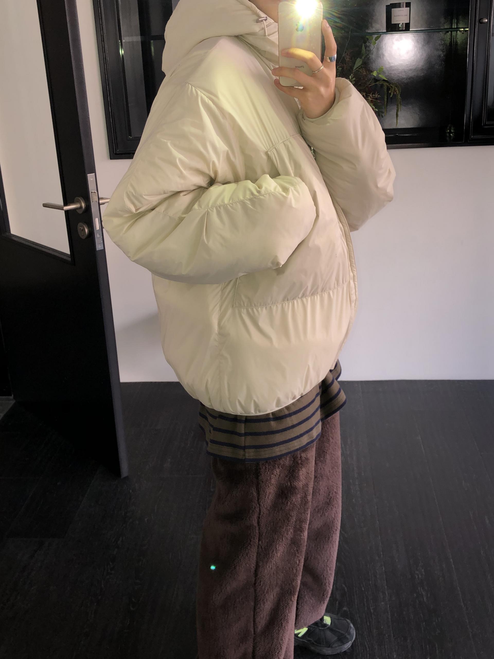 가벼운 웰론 충전재로 완성되었으며, 전체적으로 넉넉한 여유로운 사이즈감입니다. 이너를 두껍게 입어주어도 답답하지 않게 착용 가능하며, 가벼운 무게감 덕분에 부담없이 손이 가는 패딩이에요.