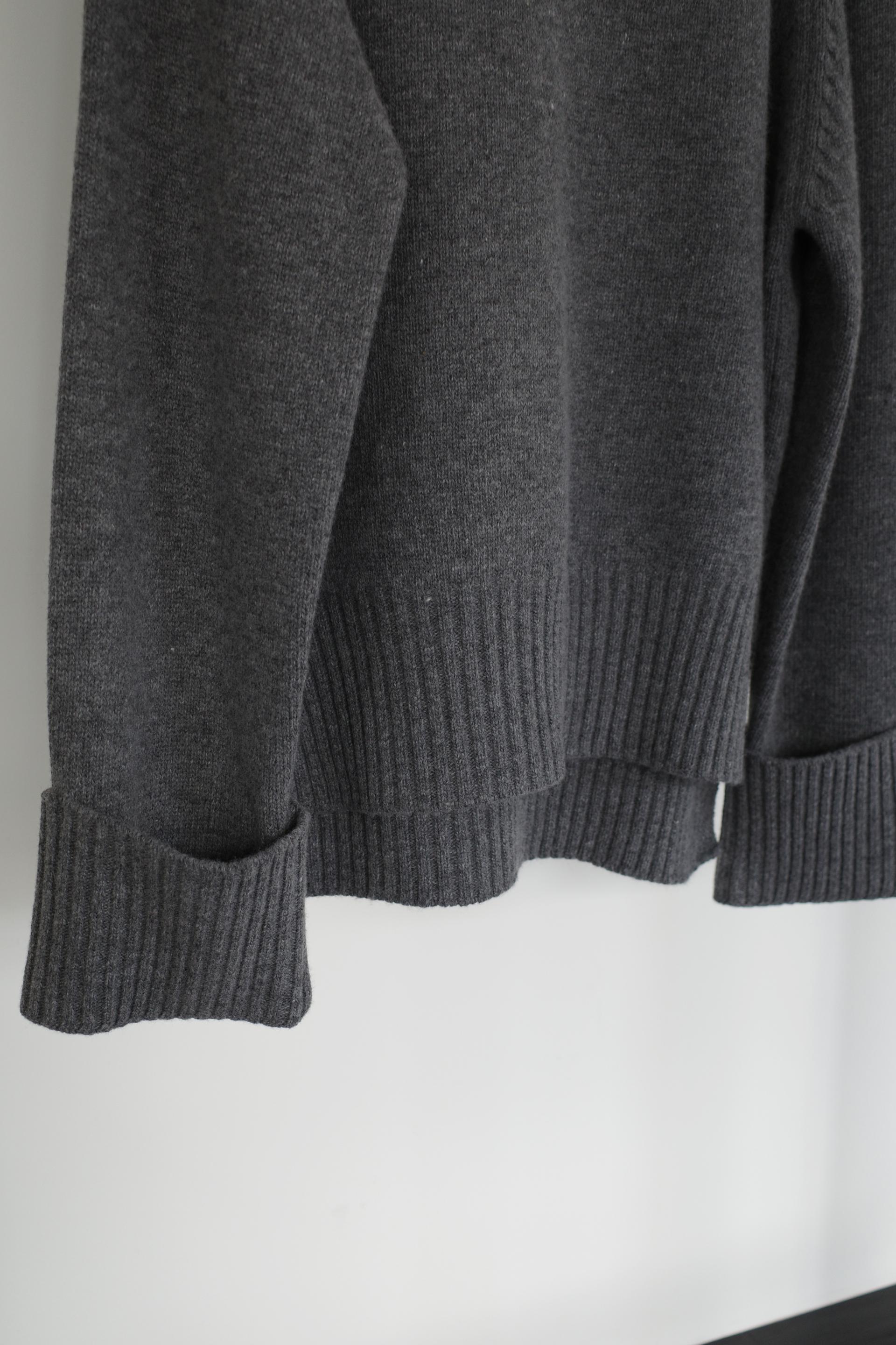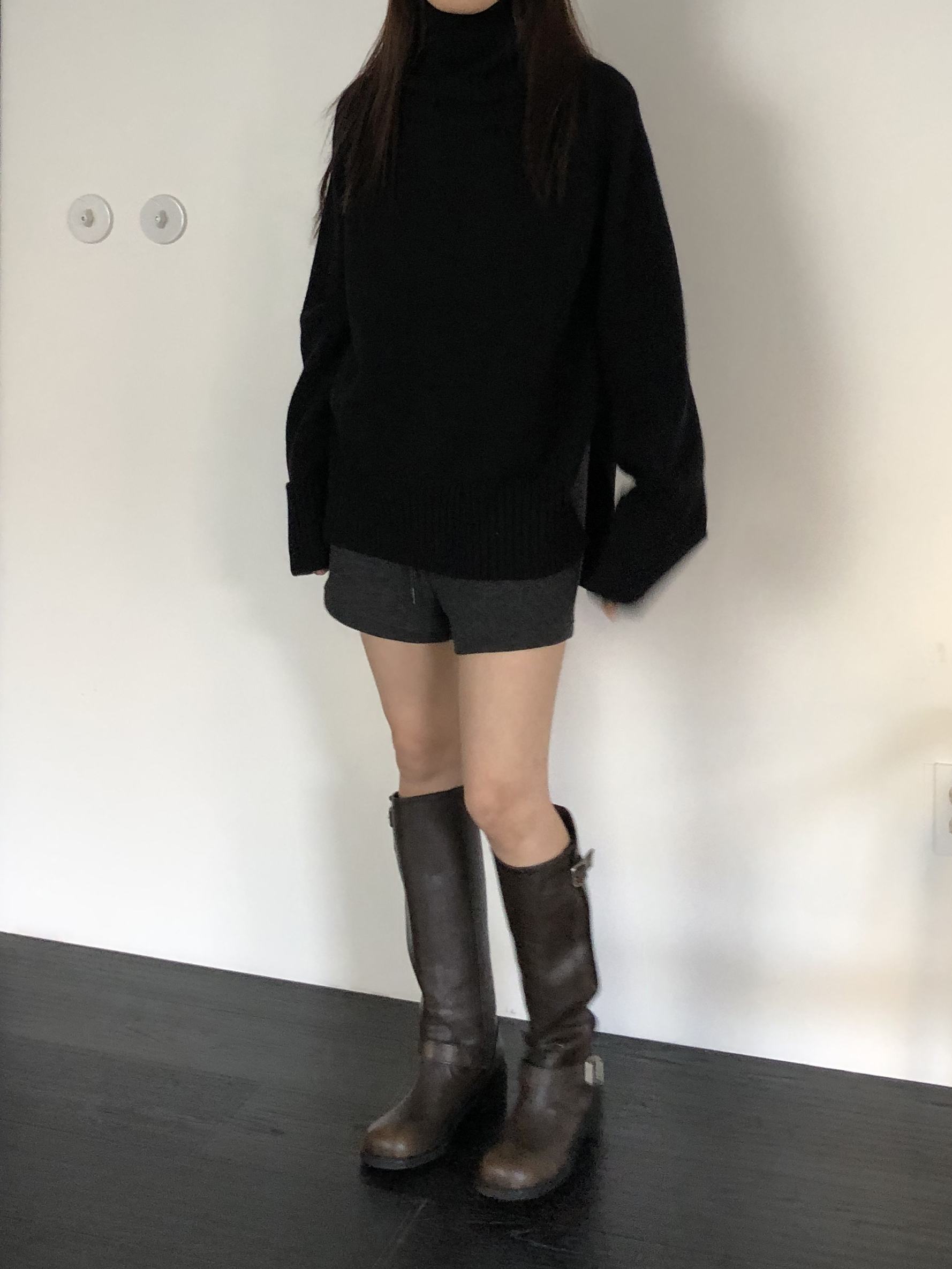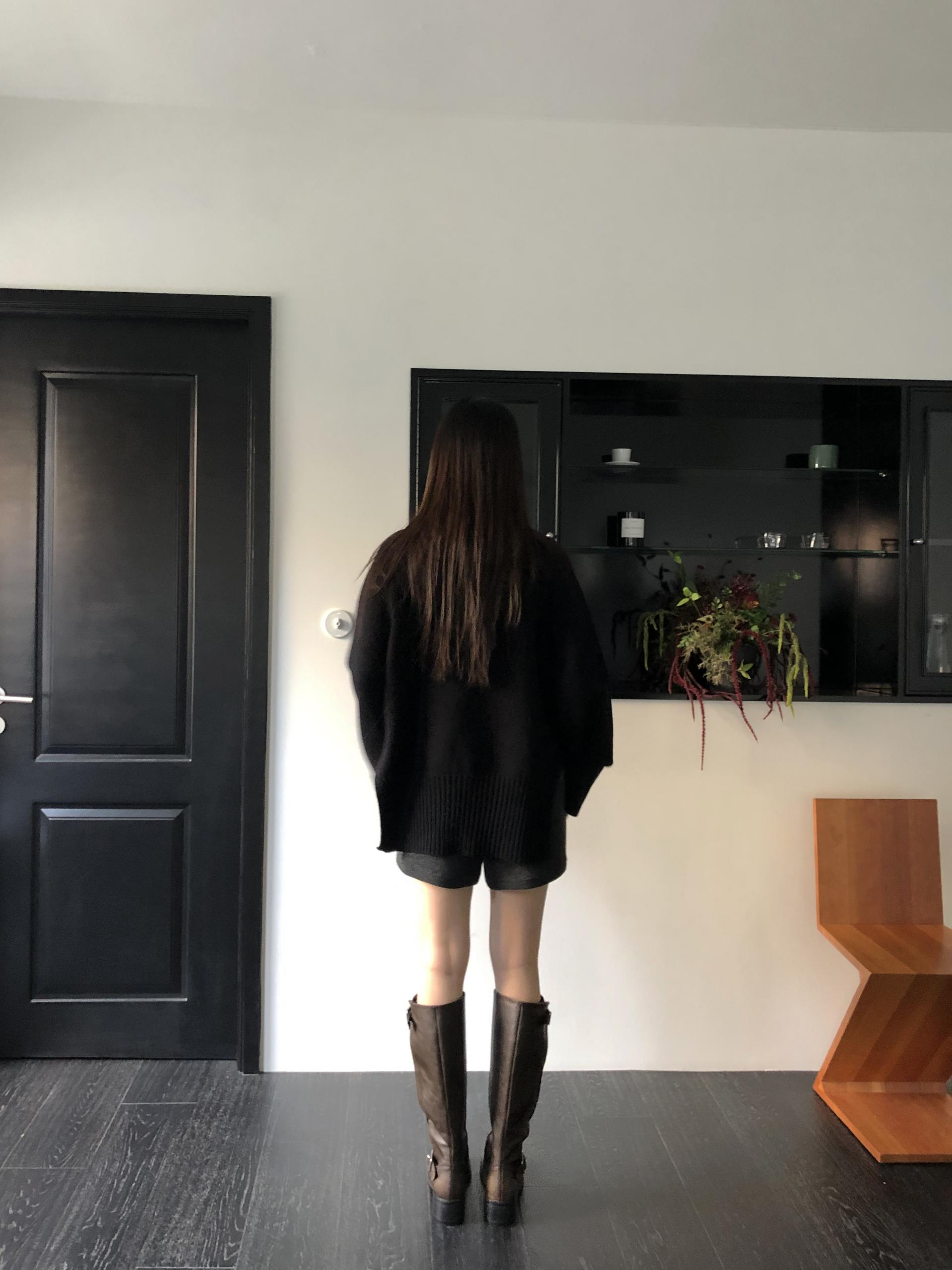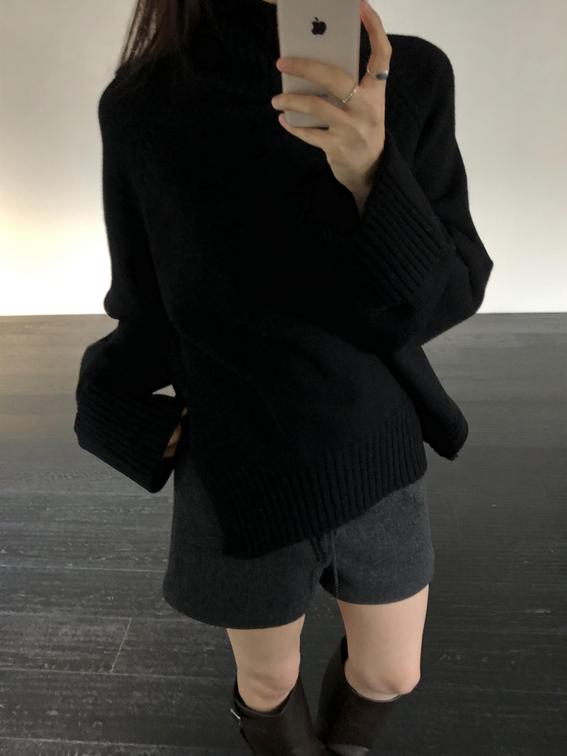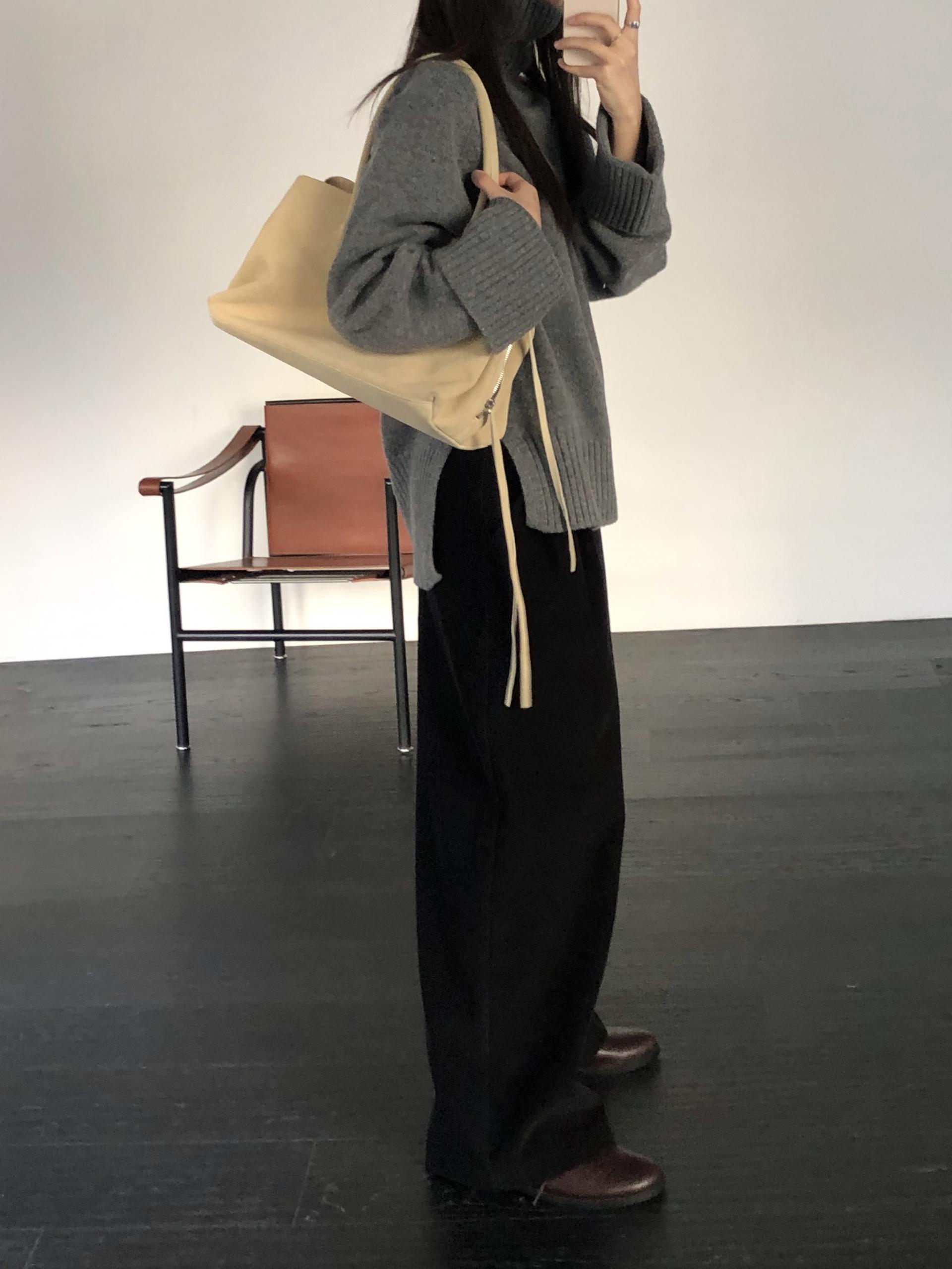 한눈에 봐도 존재감이 느껴지는, 목을 넉넉하게 감싸는 와이드한 터틀넥 라인이 겨울의 니트하면 떠오르는 장면을 그대로 담고 있어요 .소매와 밑단 역시 와이드하게 짜인 시보리가 확인됩니다. 전체적으로 포인트가 확실하면서도 담백하게 연출되어요.