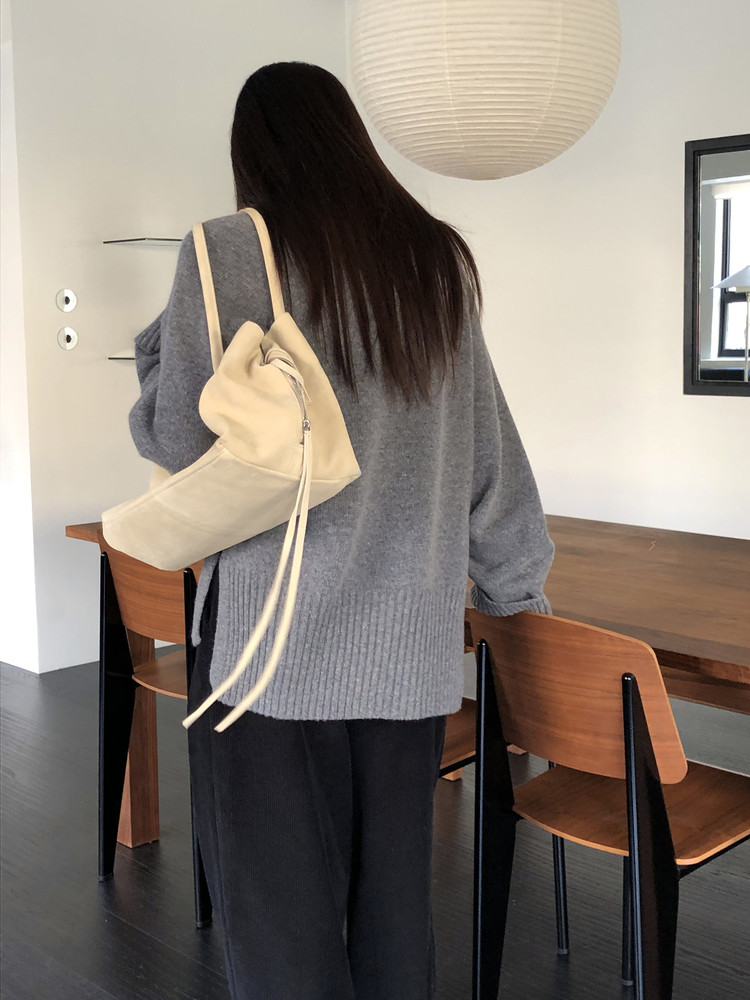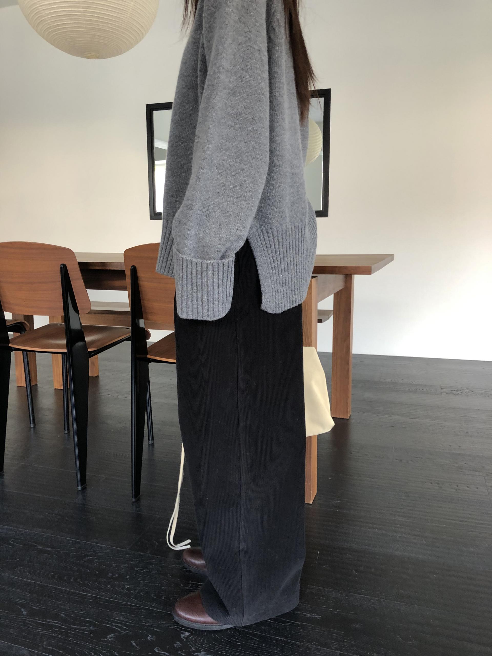 양옆으로 길게 들어간 슬릿 디테일은 볼드한 니트 특유의 무게감을 살짝 덜어주어요. 이너 아이템을 매치했을 때 살짝 드러나는 효과도 볼 수 있습니다. 코트 안에 이 니트 하나만 더해도 겨울 특유의 묵직한 분위기가 자연스럽게 완성됩니다. 특별하게 힘주지 않아도 무드가 충분히 만들어져요.