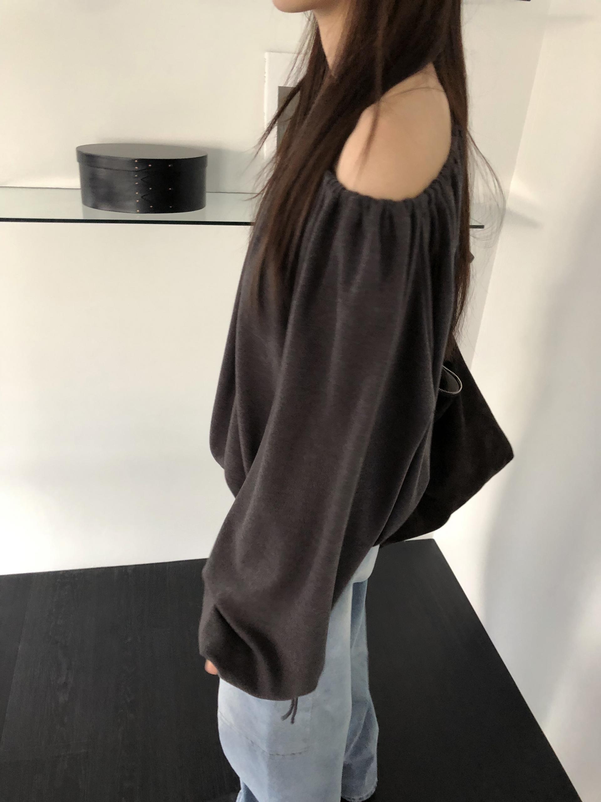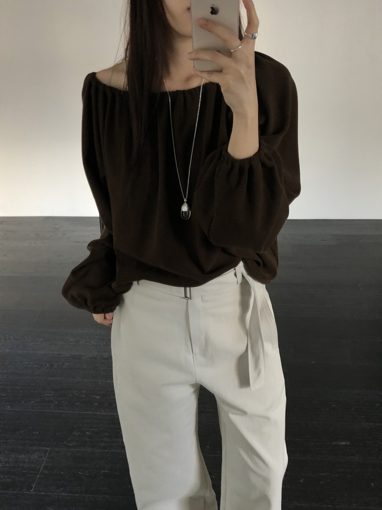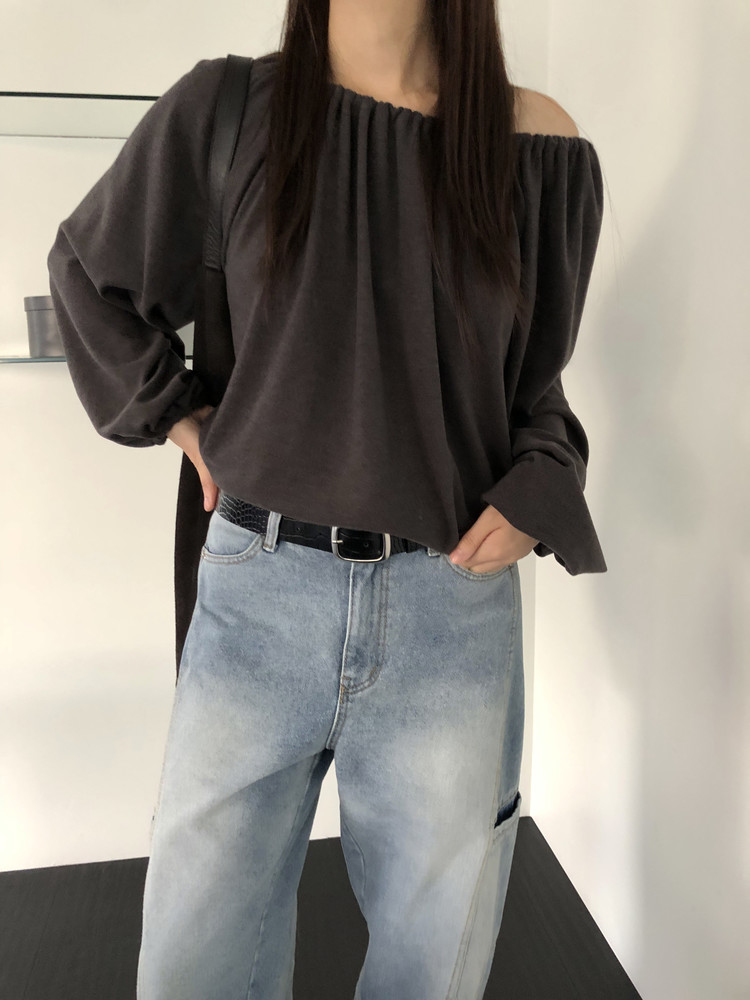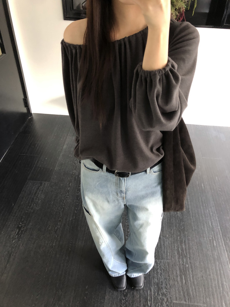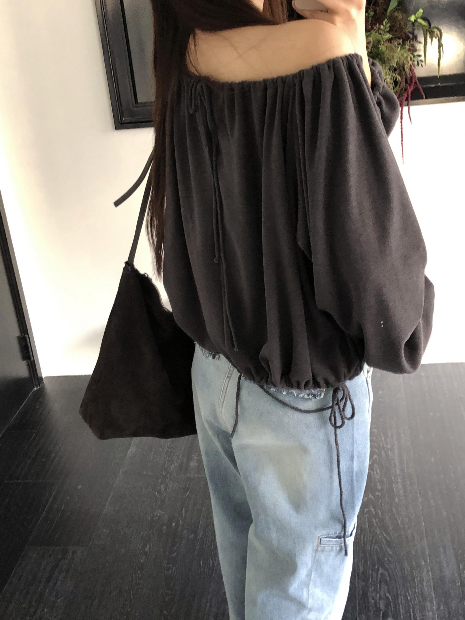스트링을 느슨하게 풀면 와이드한 보트넥처럼, 더 조여 원숄더부터 오프숄더까지 폭 넓게 스타일링할 수 있어요. 보트넥으로 연출할 때는 이너에 얇은 티셔츠나 터틀넥과 함께 매치해 더 따뜻하게 코디할 수도 있습니다.
