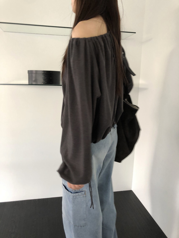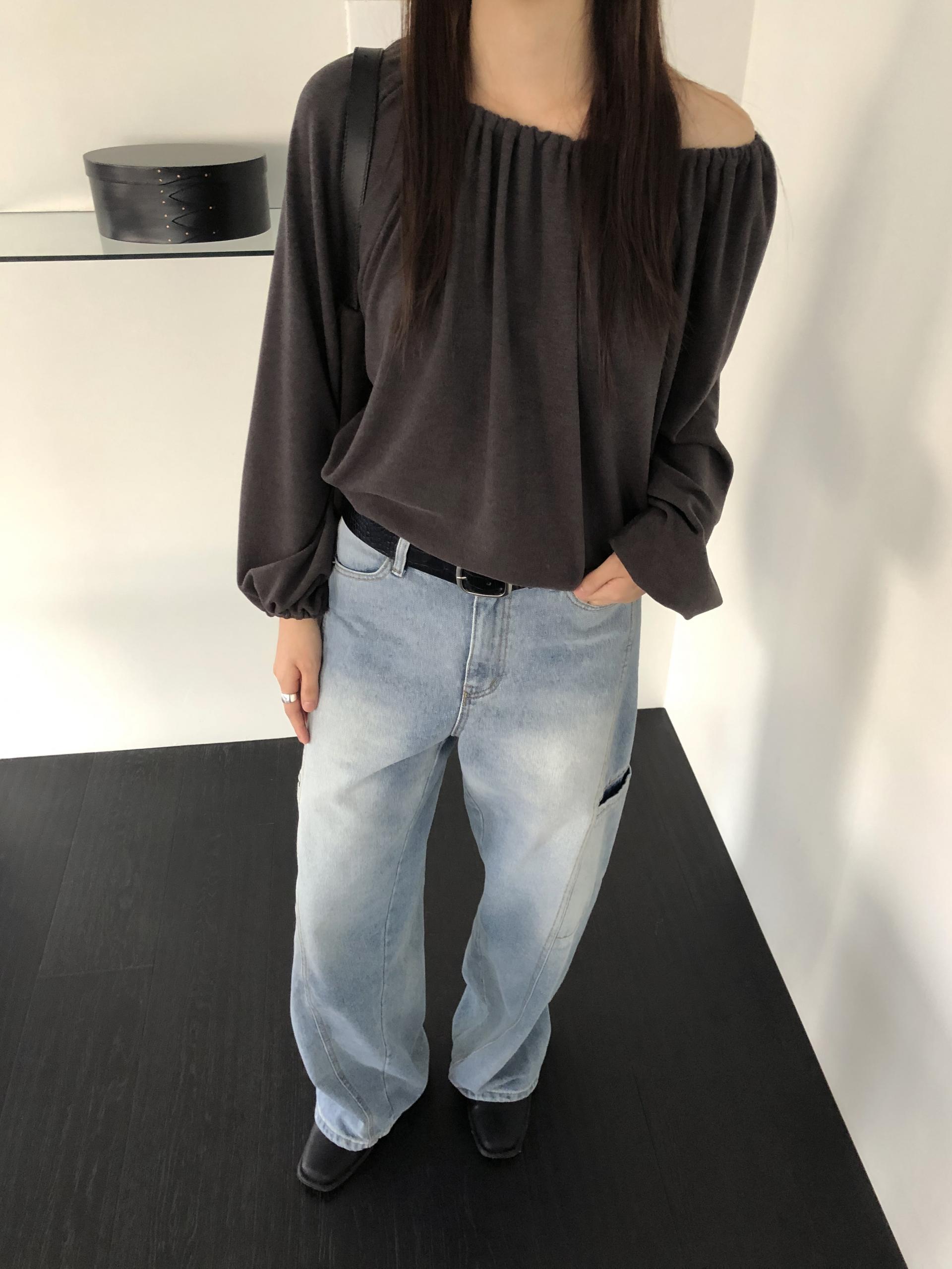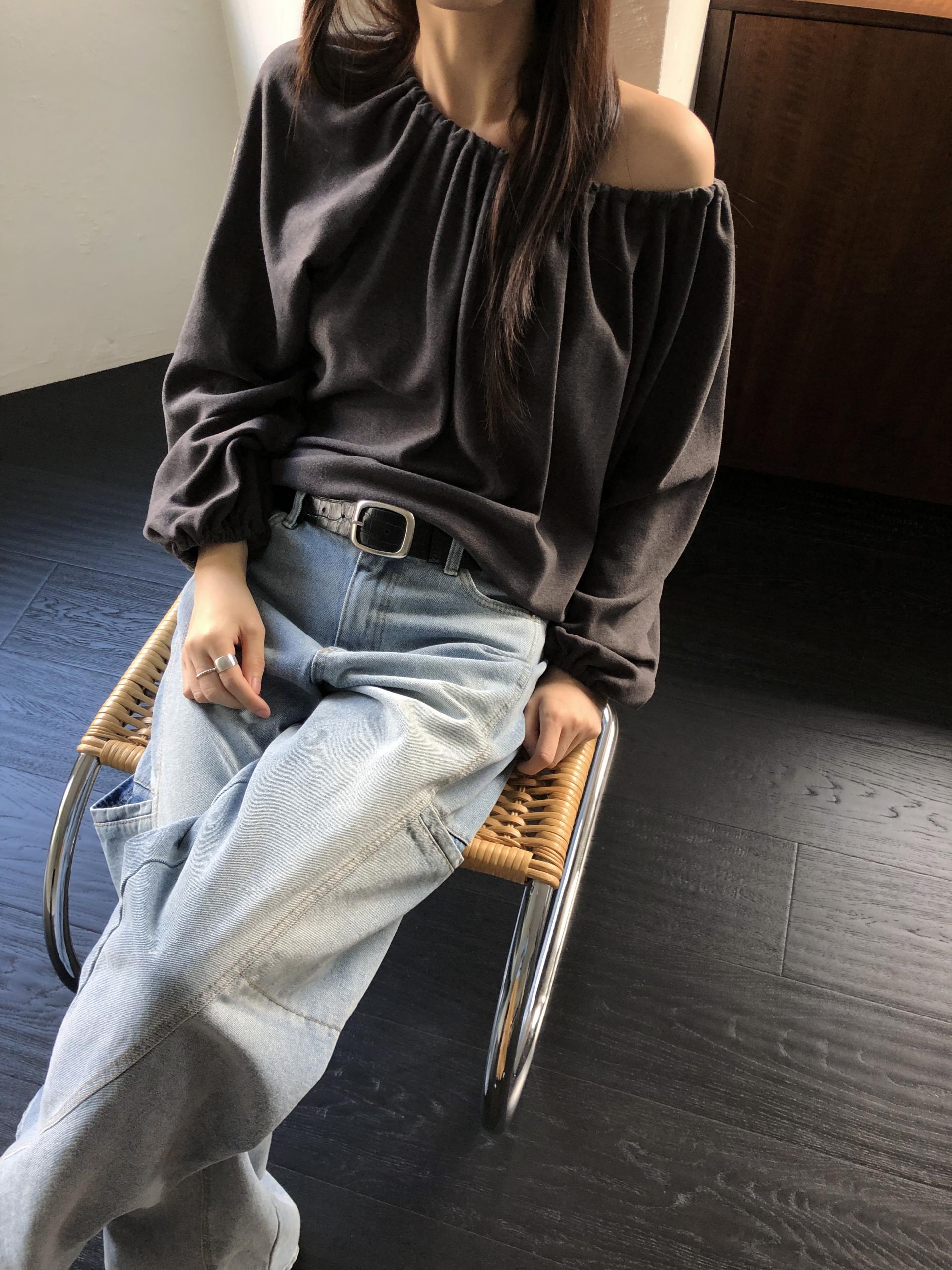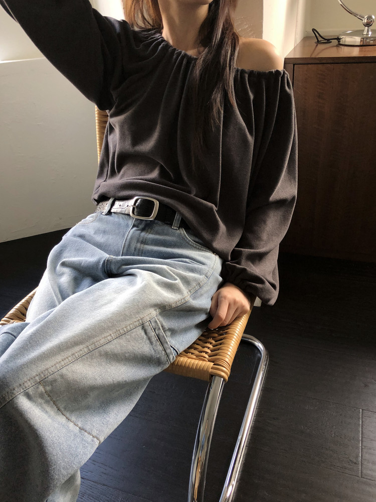 스트링을 느슨하게 풀면 와이드한 보트넥처럼, 더 조여 원숄더부터 오프숄더까지 폭 넓게 스타일링할 수 있어요. 보트넥으로 연출할 때는 이너에 얇은 티셔츠나 터틀넥과 함께 매치해 더 따뜻하게 코디할 수도 있습니다.