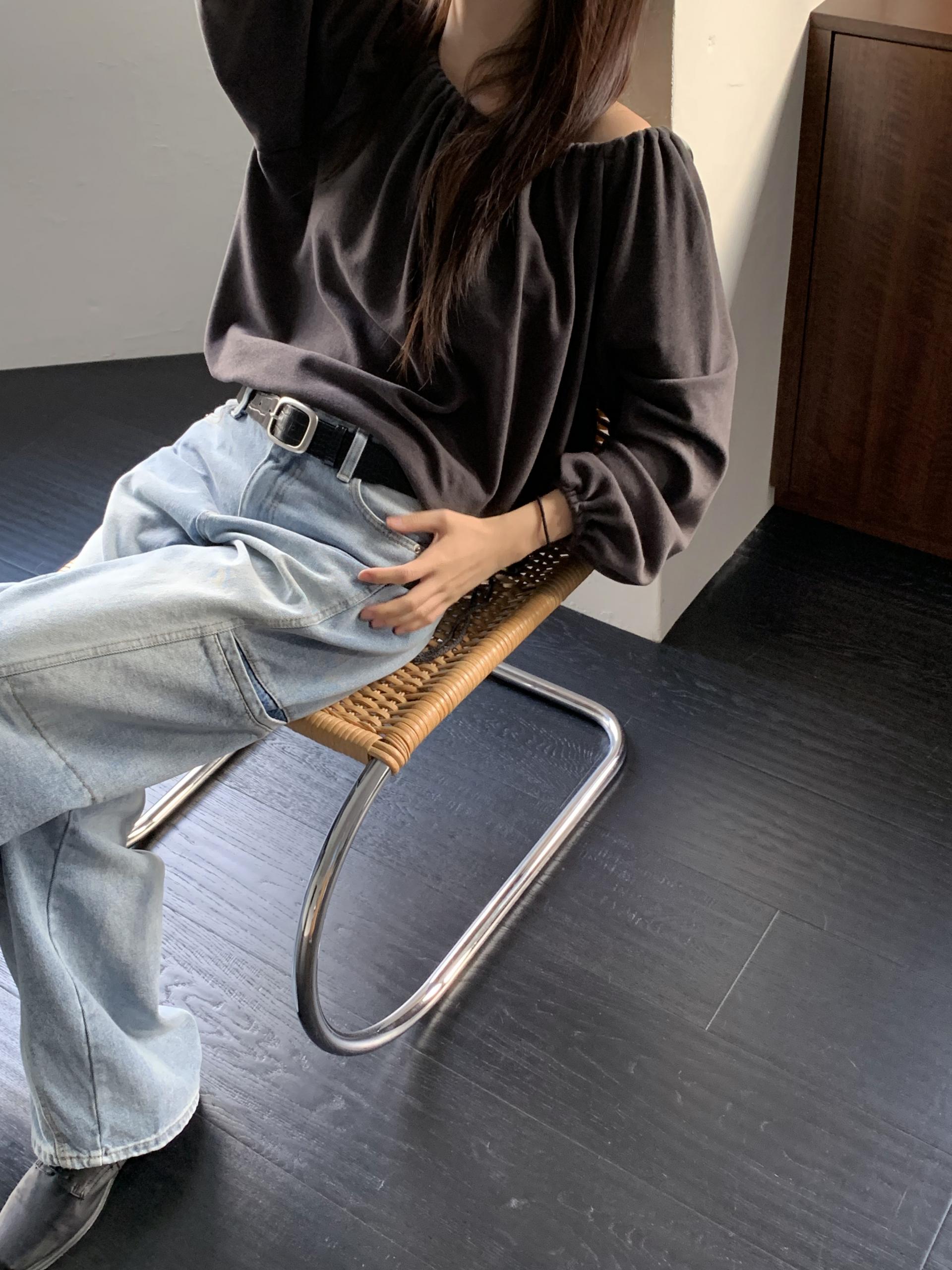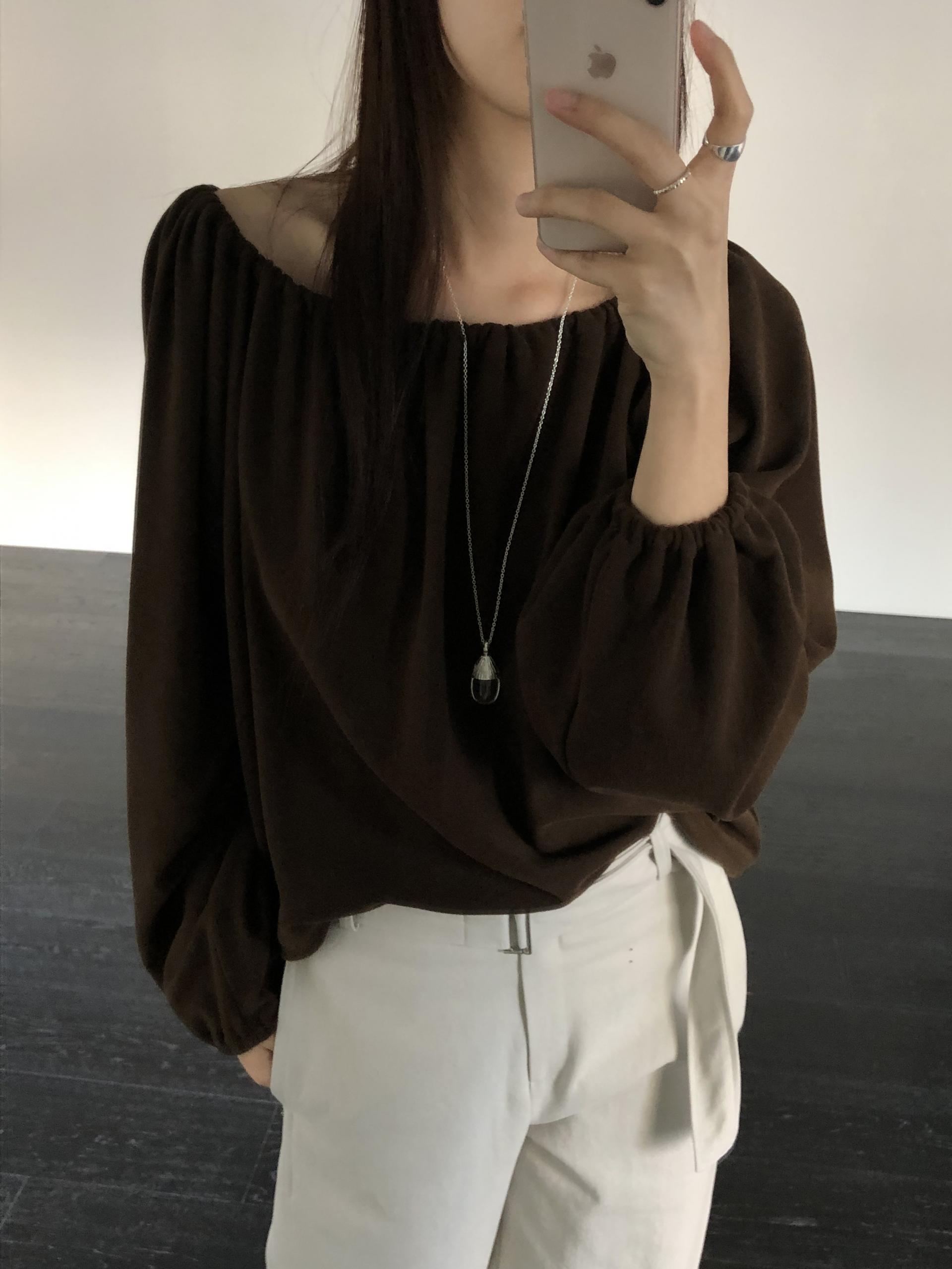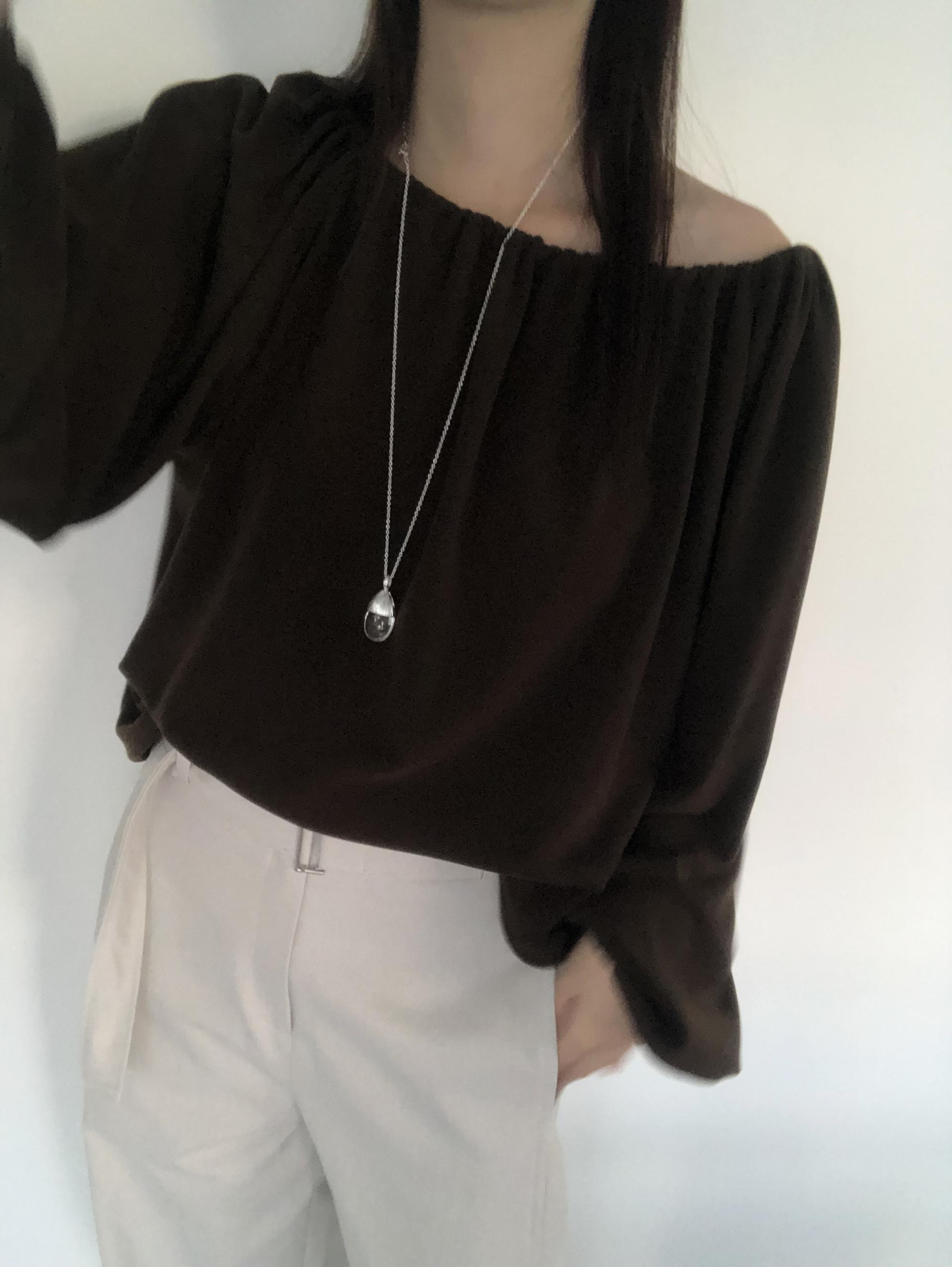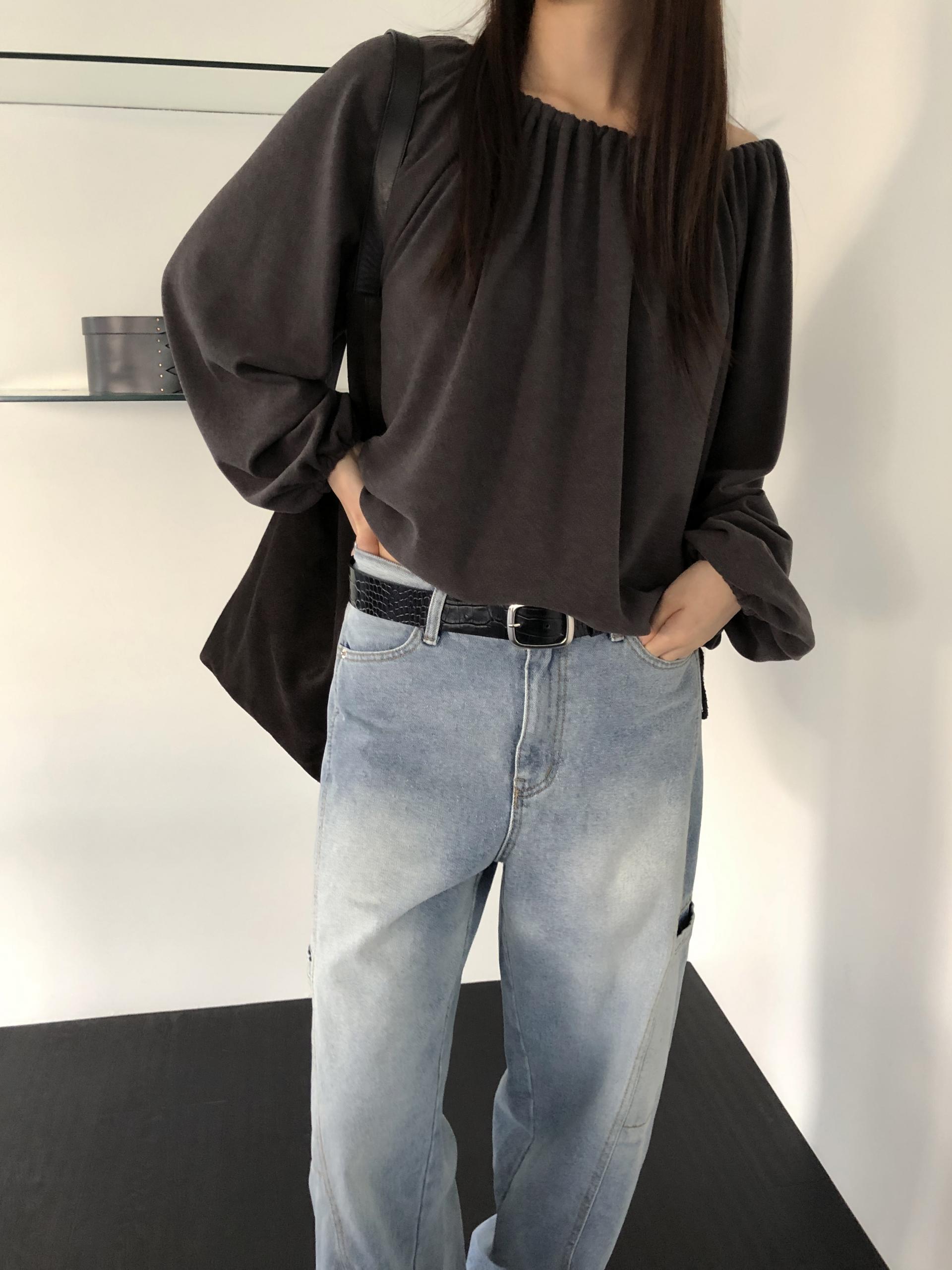 스트링을 느슨하게 풀면 와이드한 보트넥처럼, 더 조여 원숄더부터 오프숄더까지 폭 넓게 스타일링할 수 있어요. 보트넥으로 연출할 때는 이너에 얇은 티셔츠나 터틀넥과 함께 매치해 더 따뜻하게 코디할 수도 있습니다.