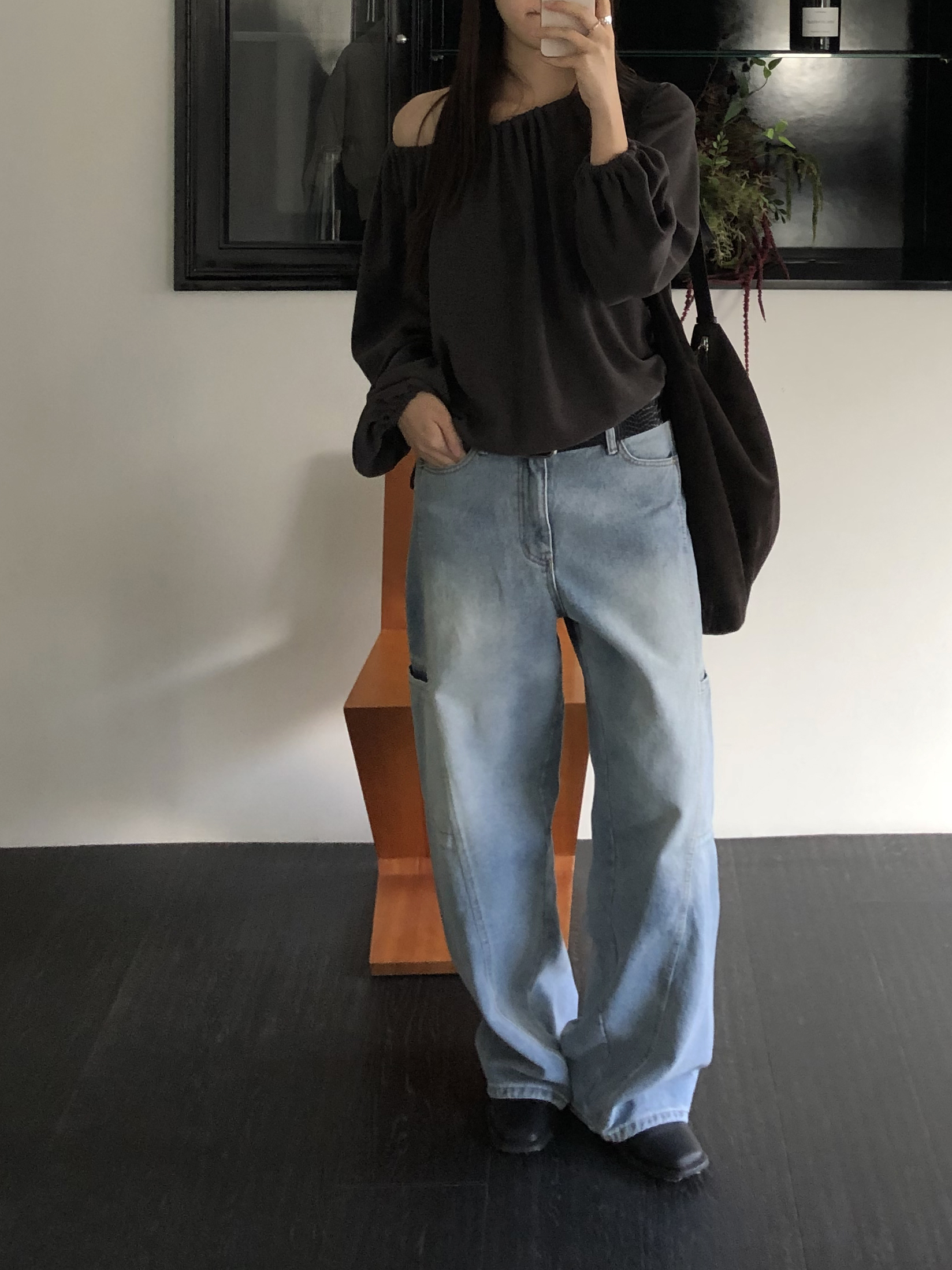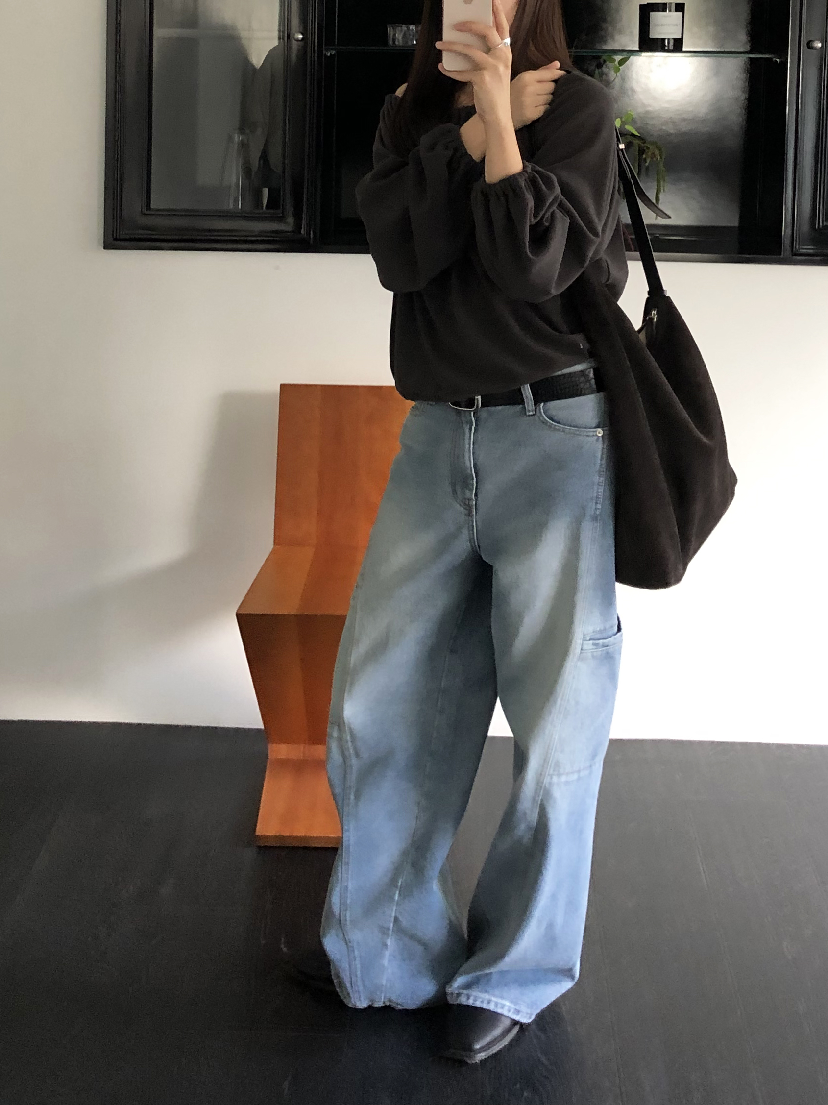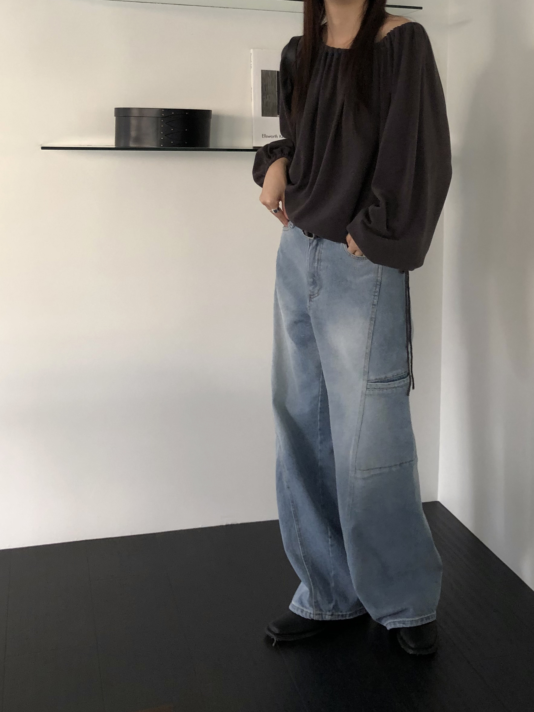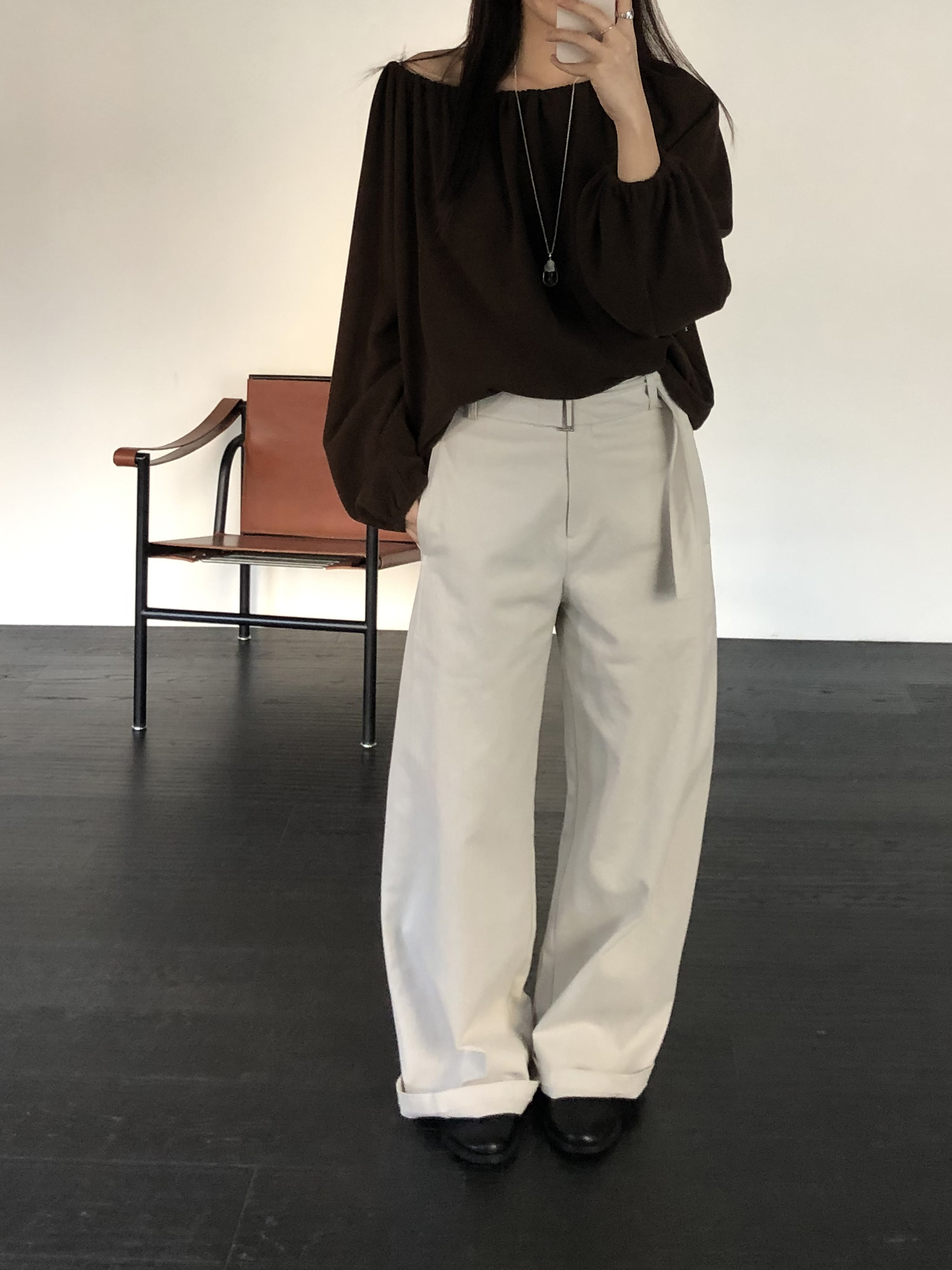밑단 역시 스트링으로 조절이 가능해 자연스럽게 볼륨있는 핏을 만들거나 혹은 셔링이 잡힌 네크라인과 대비되도록 느슨하게 연출해도 좋았어요. 카키와 카멜빛이 잘 섞인 브라운과 차콜 두가지 컬러입니다. 과하지 않게, 적당히 신경쓴 듯한 분위기를 낼 수 있는 아이템입니다.