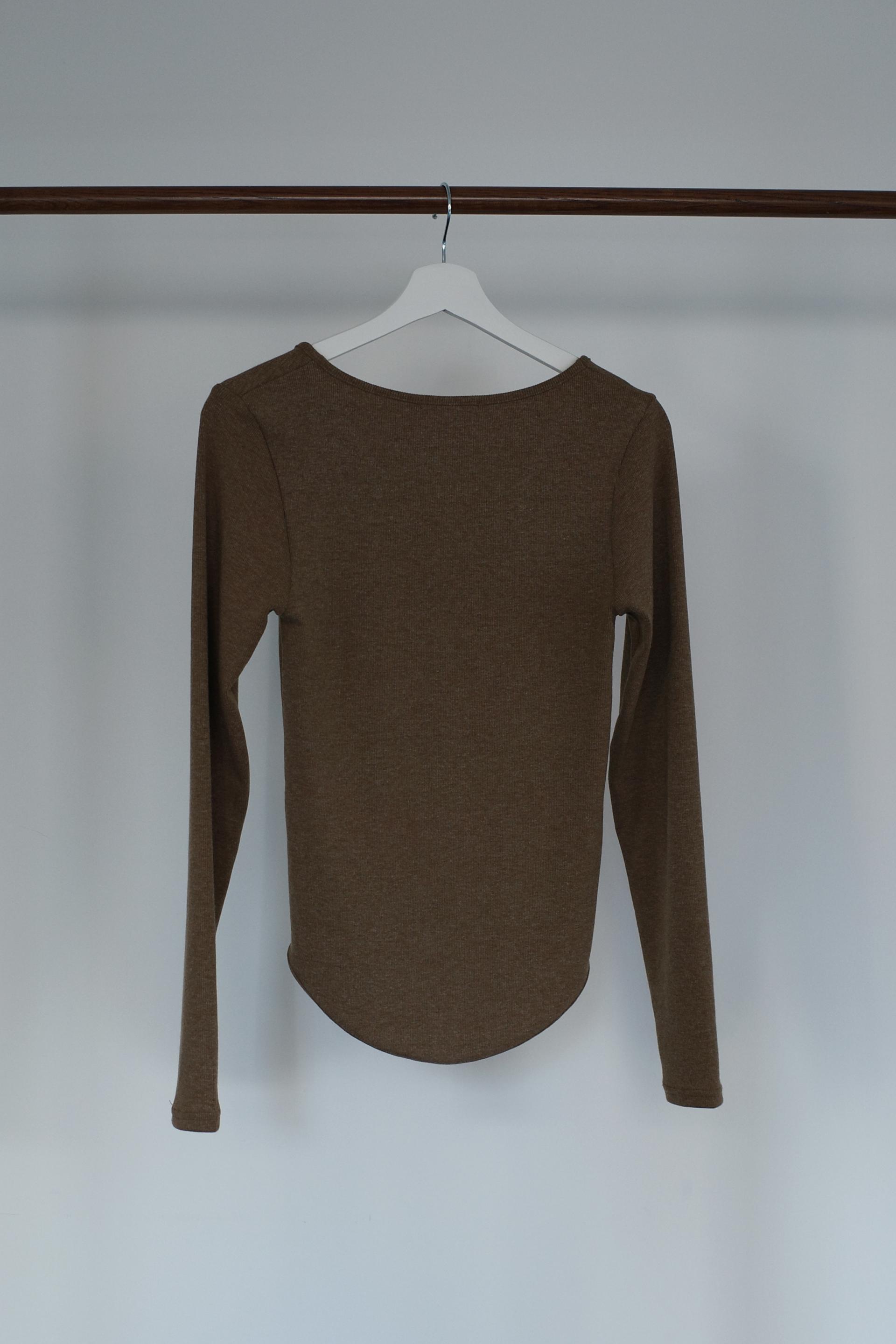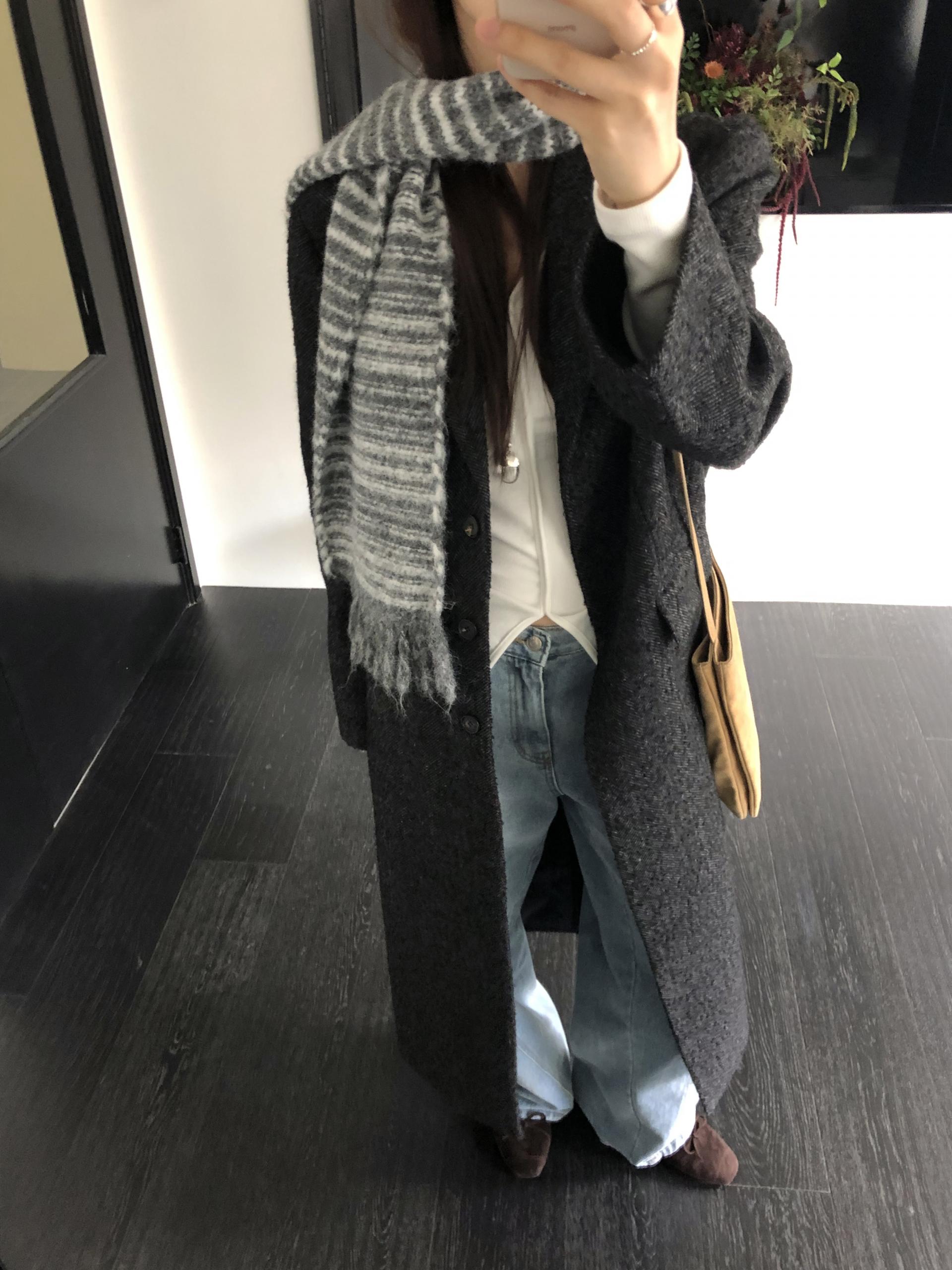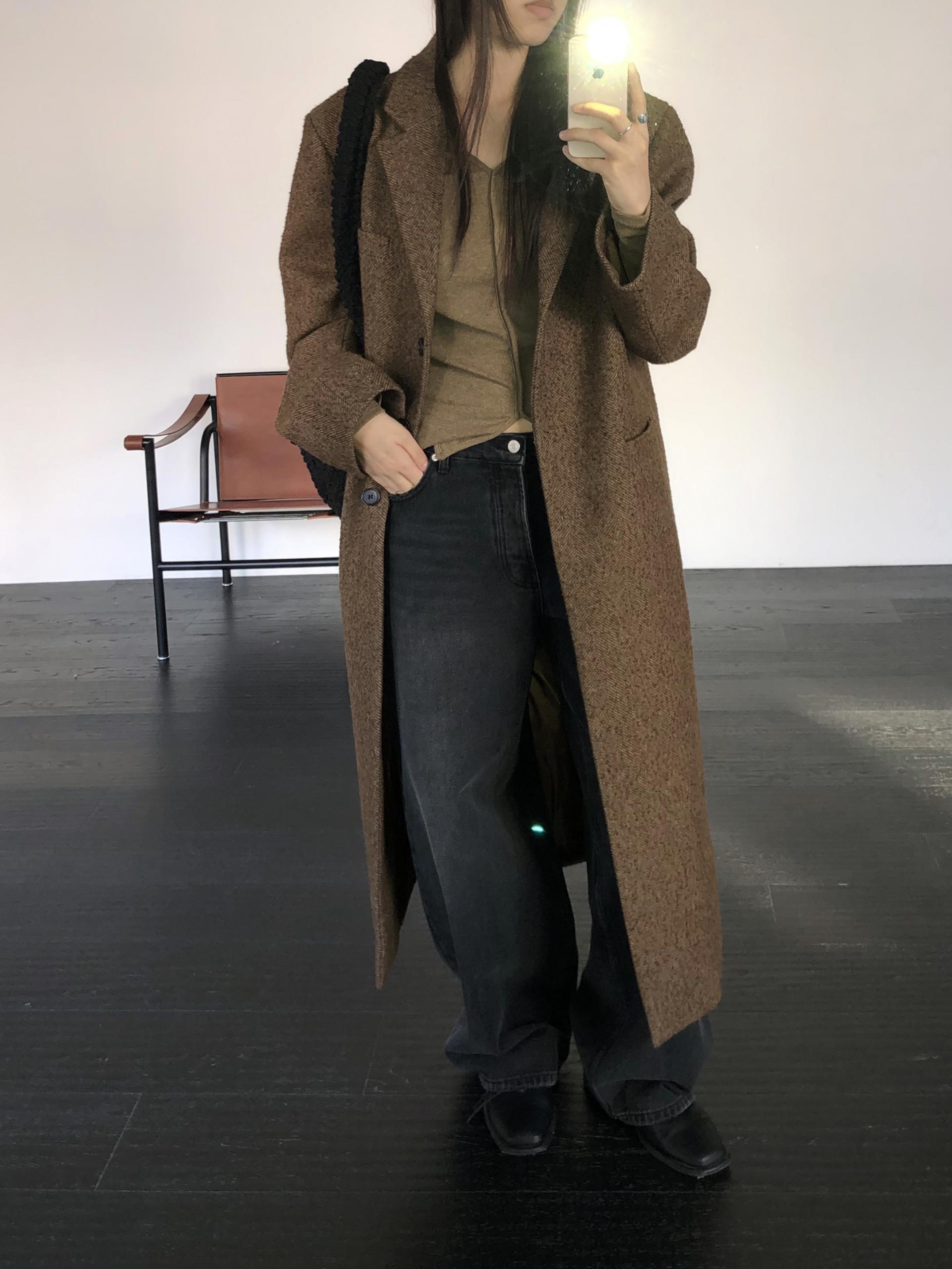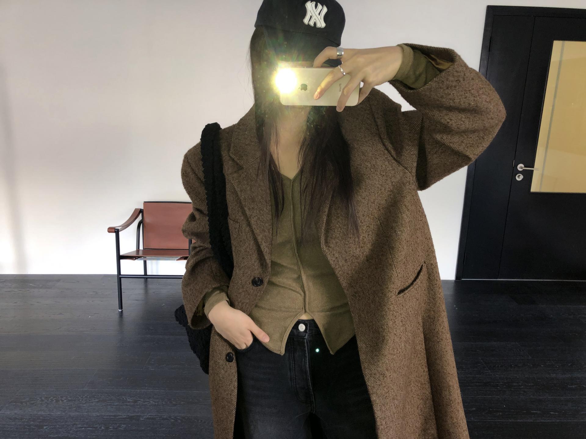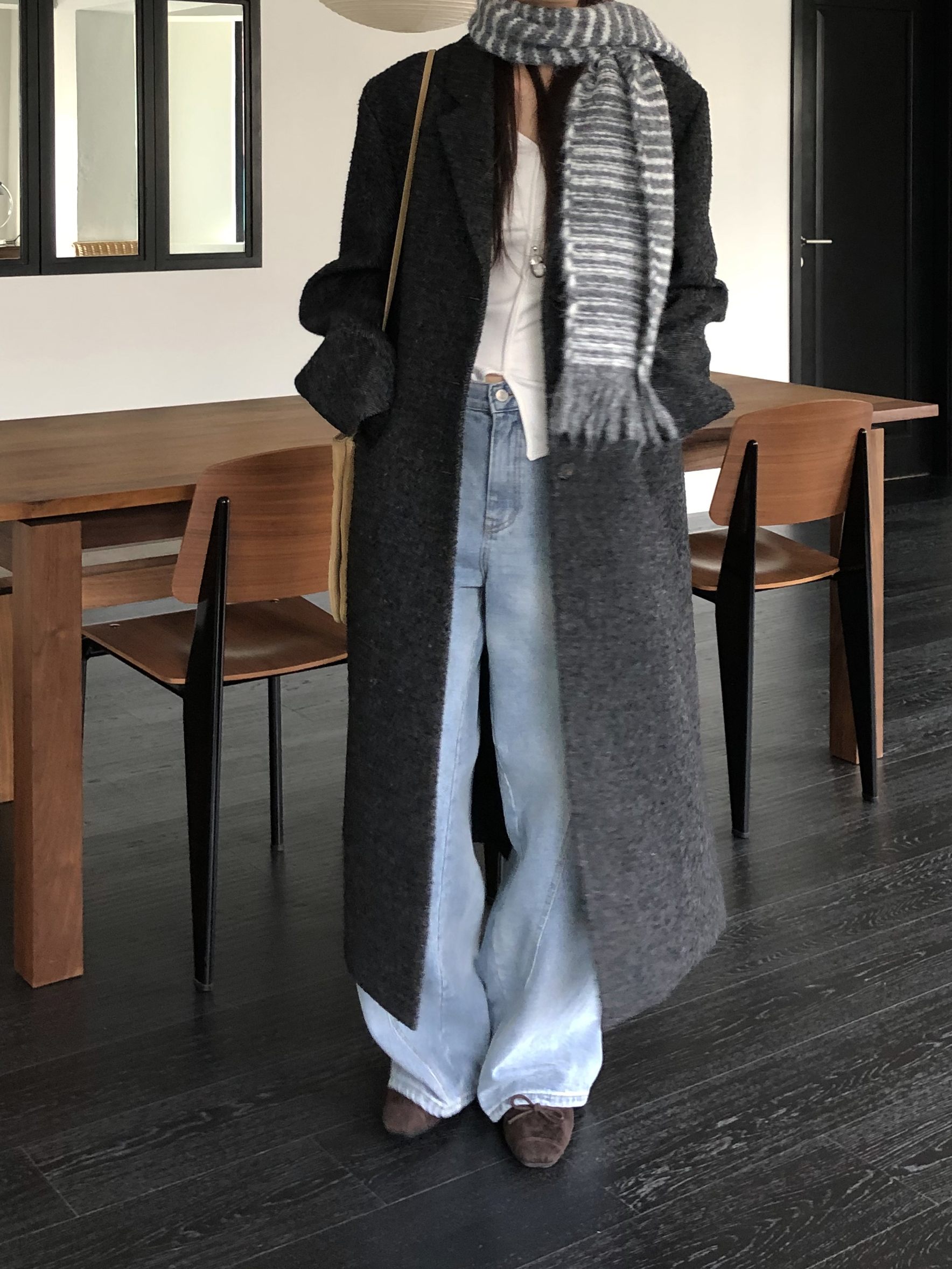 과하지 않은 브이 네크라인으로 헤비한 아우터를 걸쳐도 답답해 보이지 않게 균형을 잡아주고, 목선과 쇄골 라인을 자연스럽게 드러냅니다.