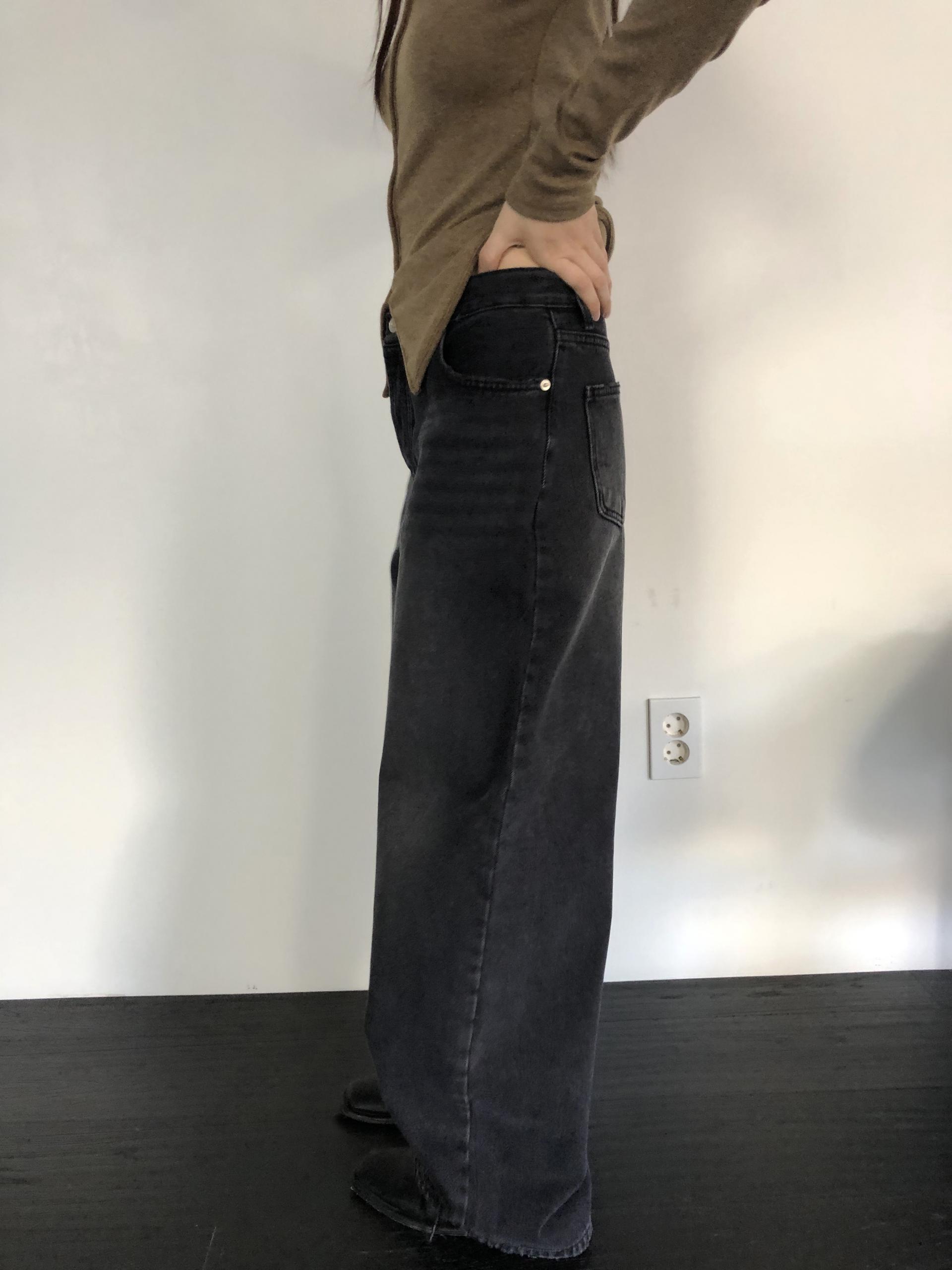 이 티셔츠의 포인트인 밑단의 트임. 사선으로 떨어지는 헴라인 중앙에 트임을 더해 은근한 변주를 주었어요. 꺼내 입어 디테일을 드러내다 한쪽만 살짝 넣어 연출하기에도 좋습니다.