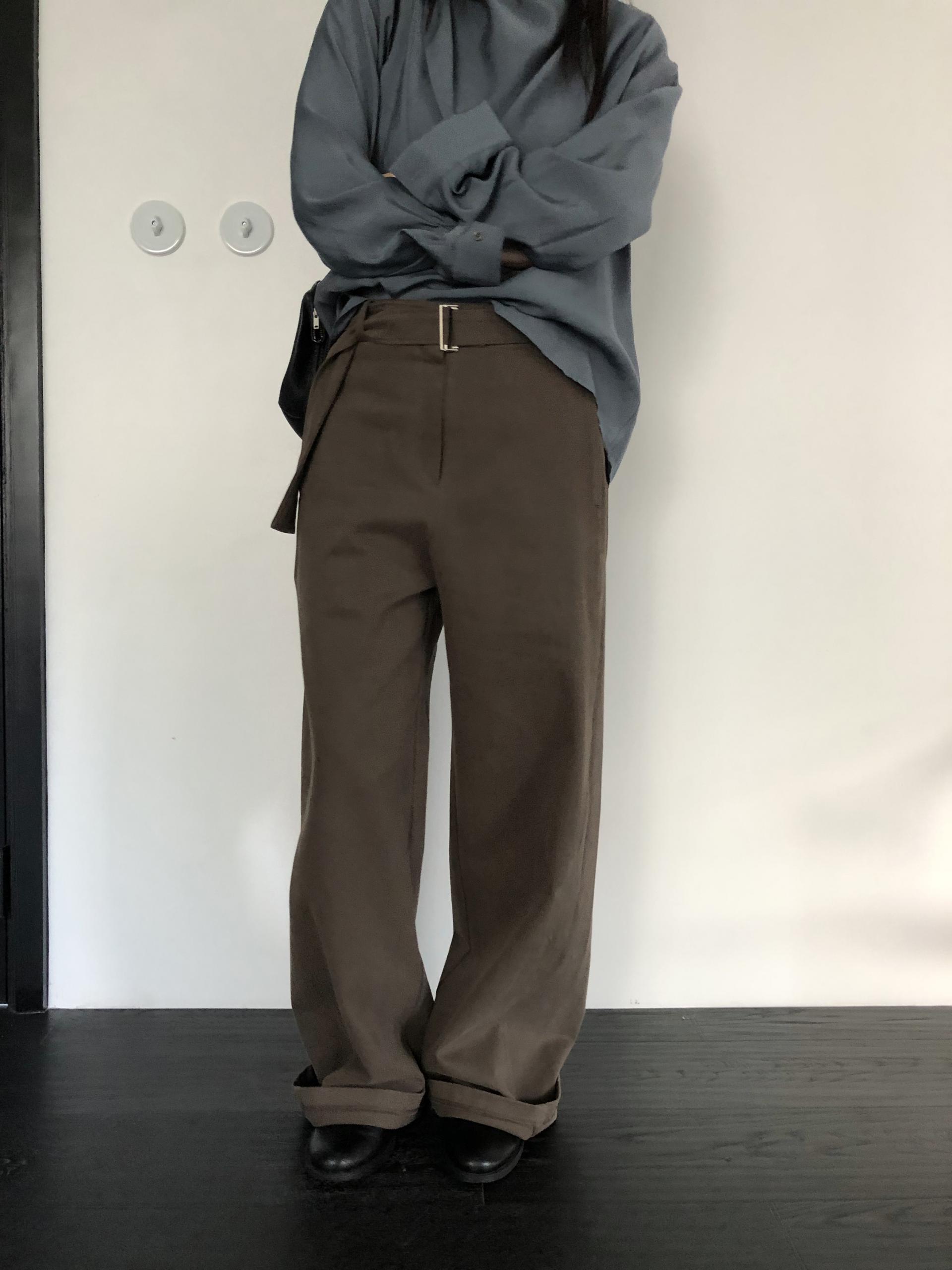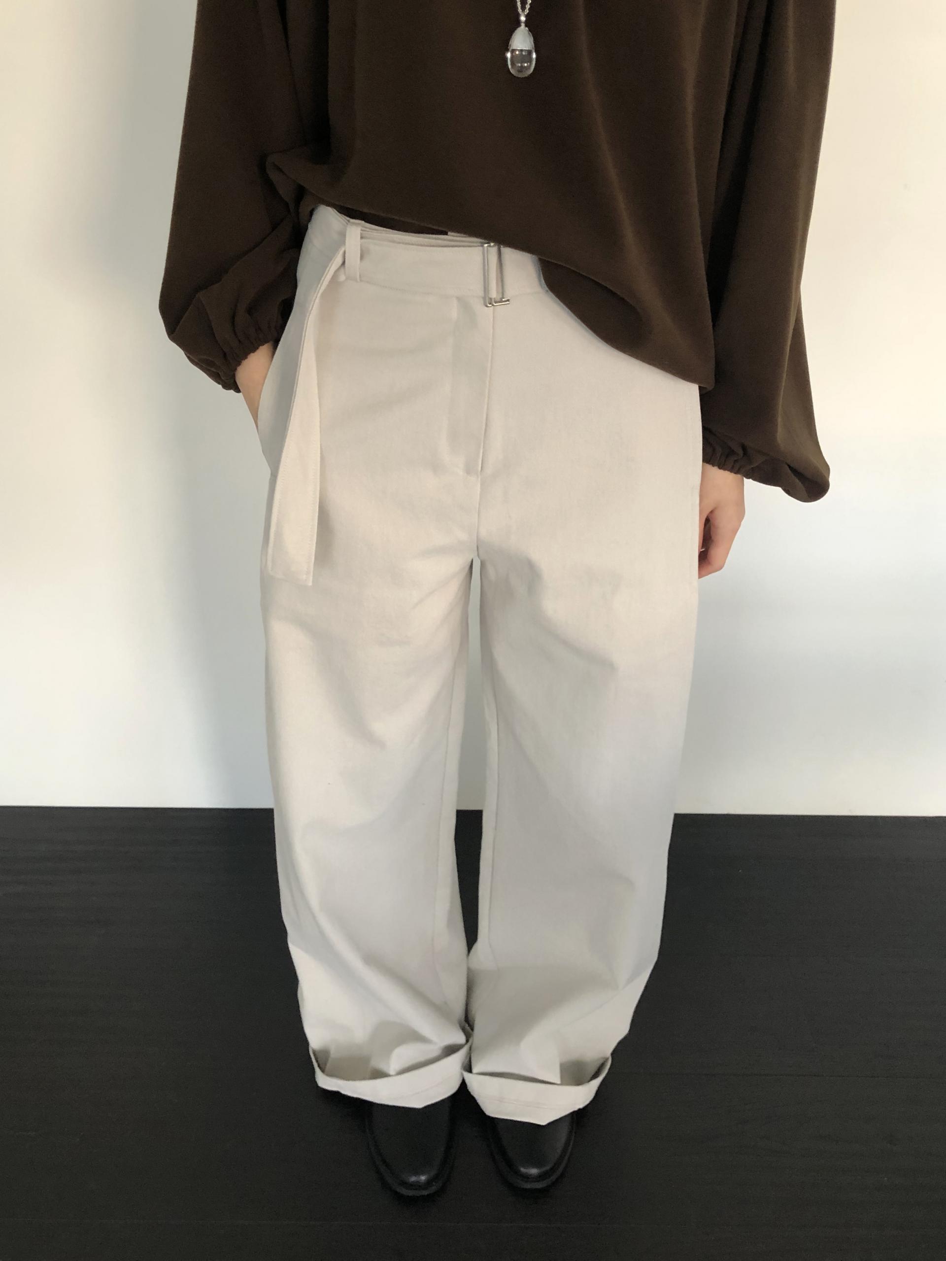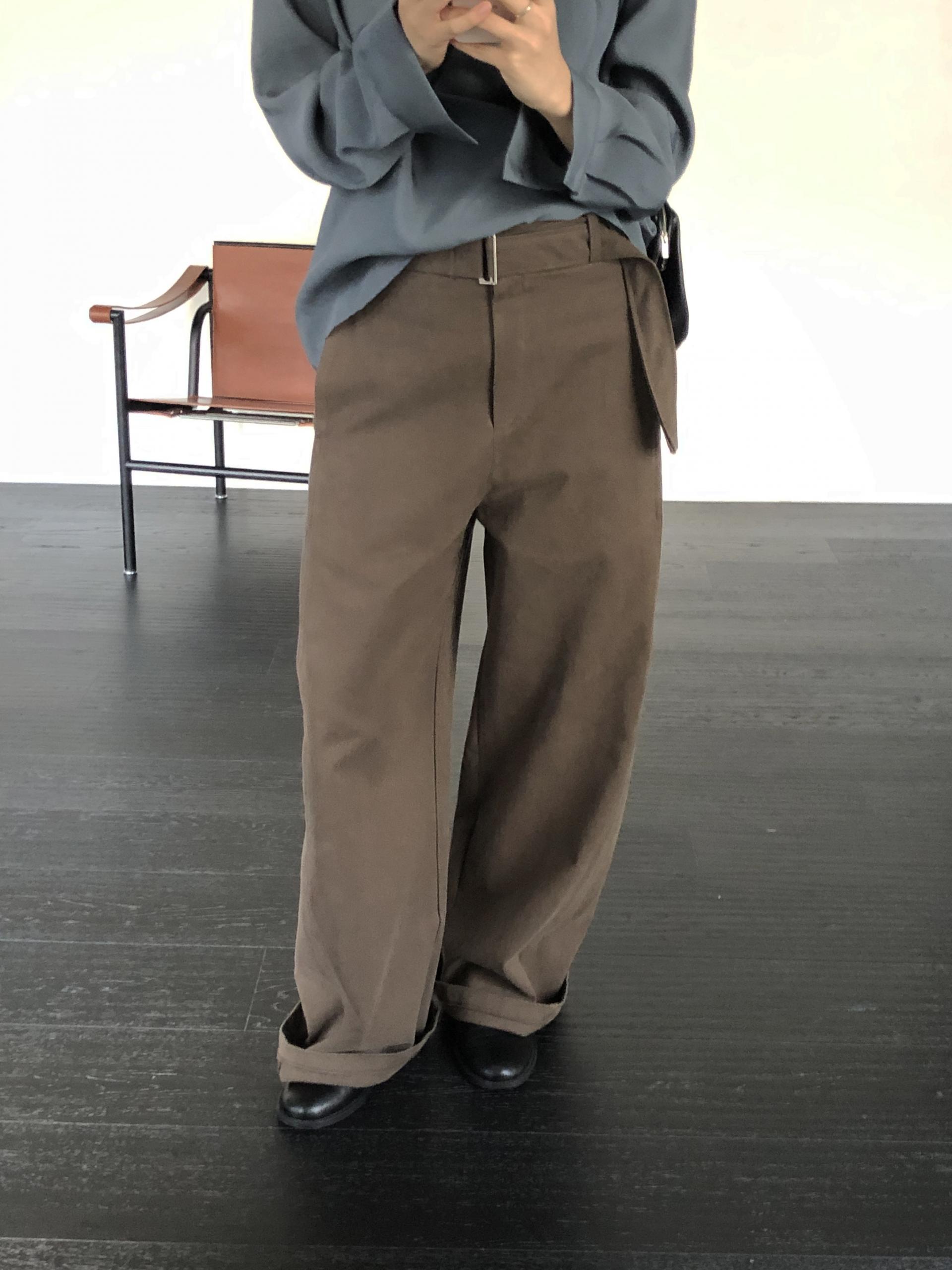 허리에는 제원단으로 제작된 탈부착이 가능한 벨트가 더해졌습니다. 기장이 긴 편이라 밑단을 살짝 접어 연출해도 예뻐요. 착용해보신 분들은 아시겠지만 정말 어디에나 매치하기 좋습니다. 깔끔한 핏으로 룩을 한층 더 정돈되어 보이게 하는 매력적인 제품입니다.