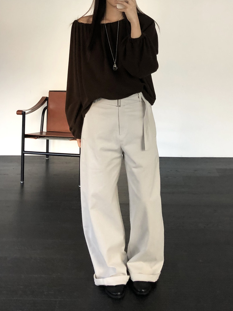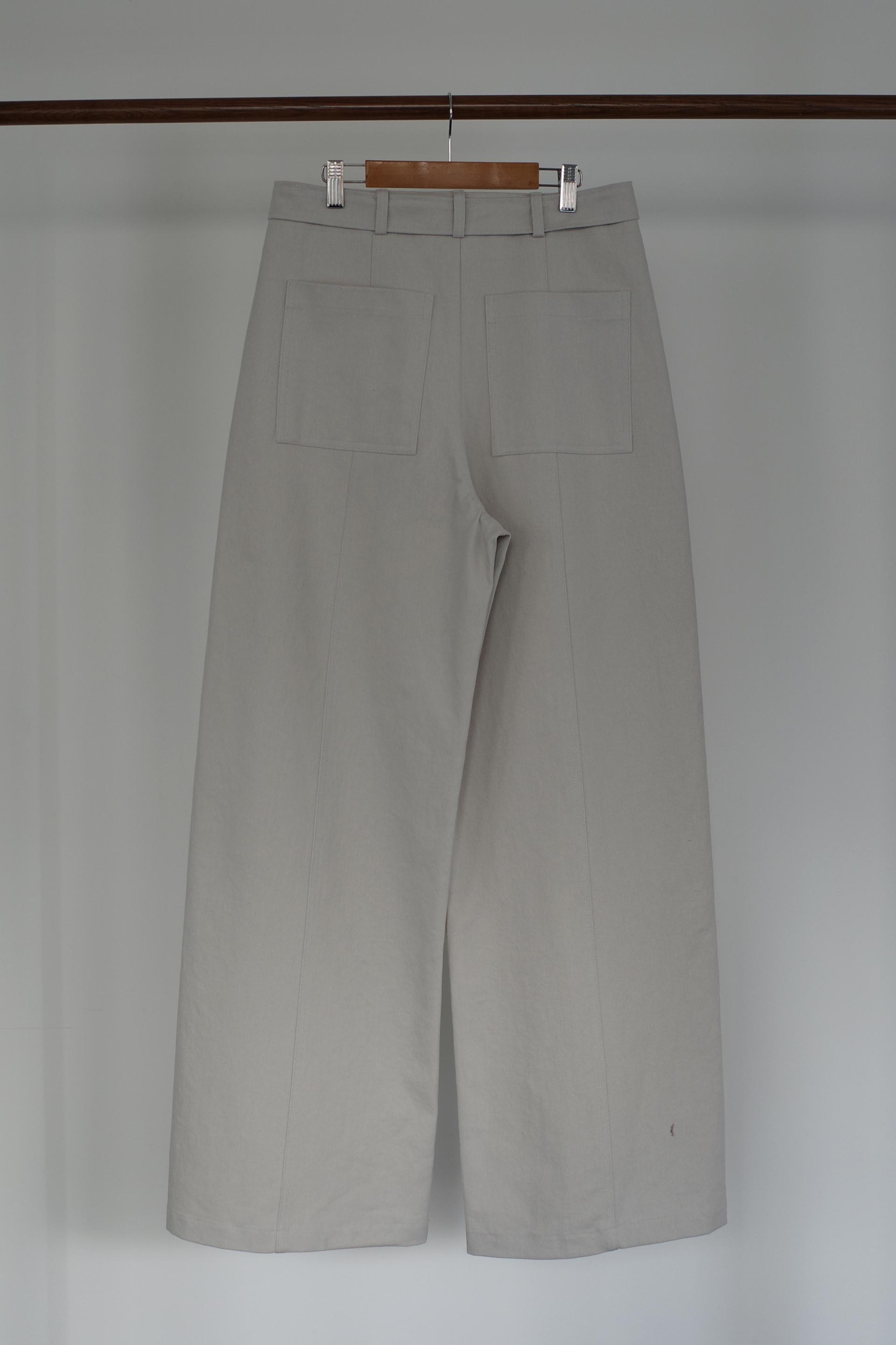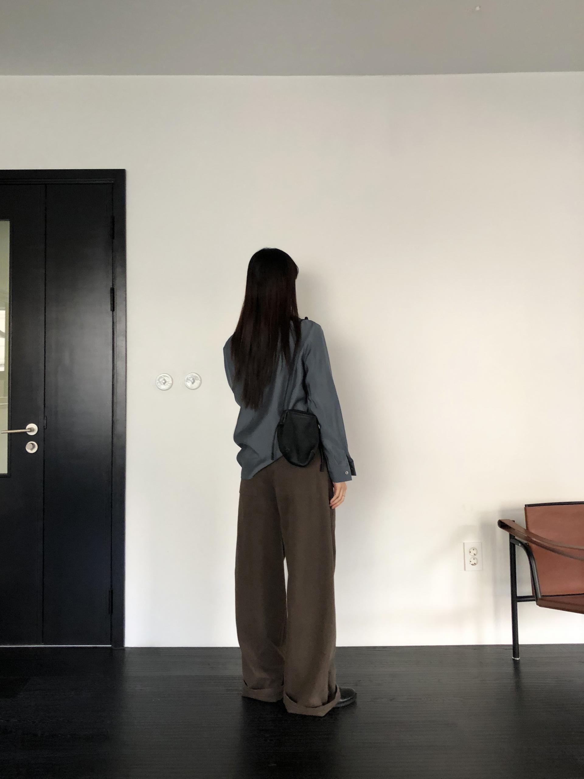 허리에는 제원단으로 제작된 탈부착이 가능한 벨트가 더해졌습니다. 기장이 긴 편이라 밑단을 살짝 접어 연출해도 예뻐요. 착용해보신 분들은 아시겠지만 정말 어디에나 매치하기 좋습니다. 깔끔한 핏으로 룩을 한층 더 정돈되어 보이게 하는 매력적인 제품입니다.