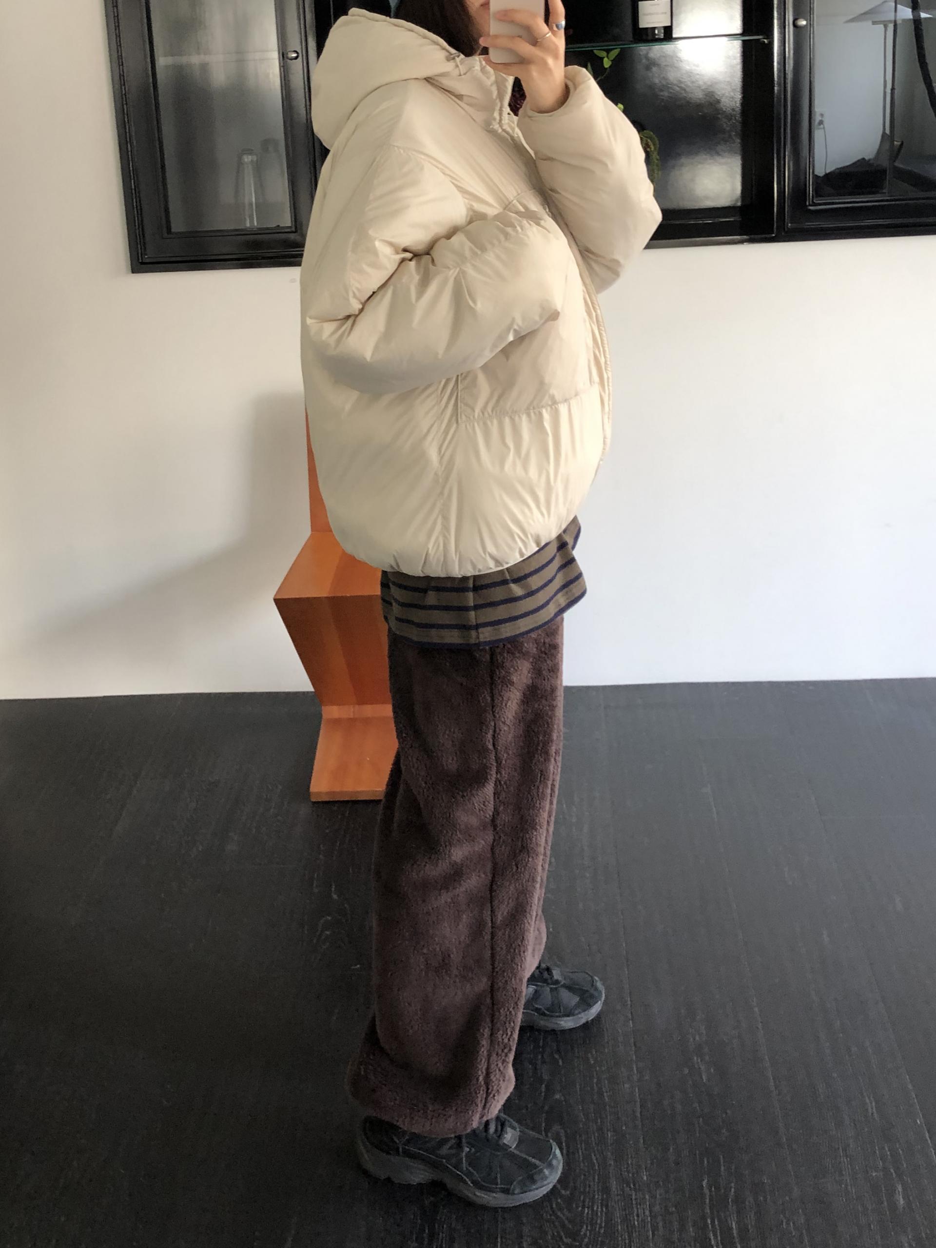 보기에는 헤비한 실루엣이지만 가벼운 착용감도 한 몫 합니다. 움직이거나 하는데에 불편함이 전혀 없어서 여행지에서도 편하게 입기 좋을 것 같아요. 보온력은 물론 겨울의 포근한 무드를 쉽게 연출할 수 있는 팬츠예요. 특히나 추위에 약하신 분들께 고민없이 추천드립니다.. !!