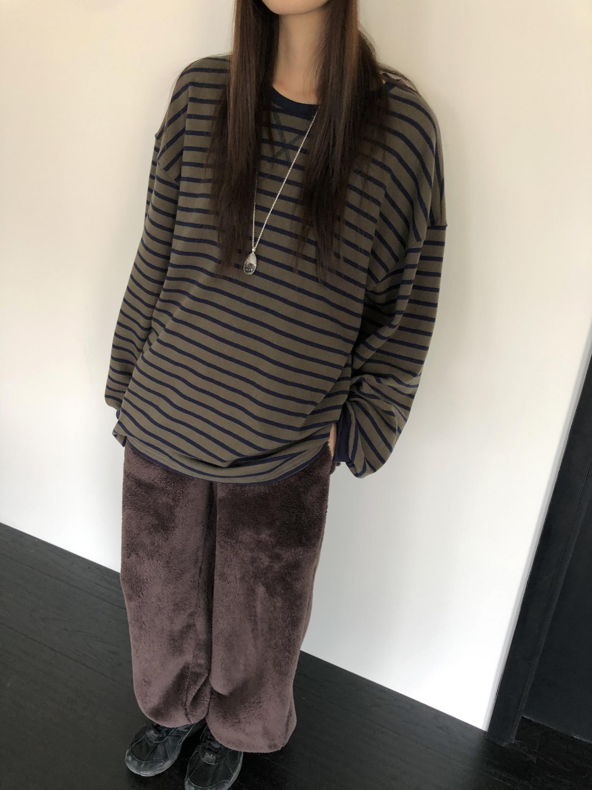 포근포근 부드러운 퍼 소재로 원단을 아낌없이 사용해 보는 것처럼 도톰한 볼륨감이 느껴지는 팬츠예요. 아마 여태 진행했던 모든 팬츠 라인중에 가장 두껍고 따뜻한 겨울 바지가 아닐까 싶어요 !