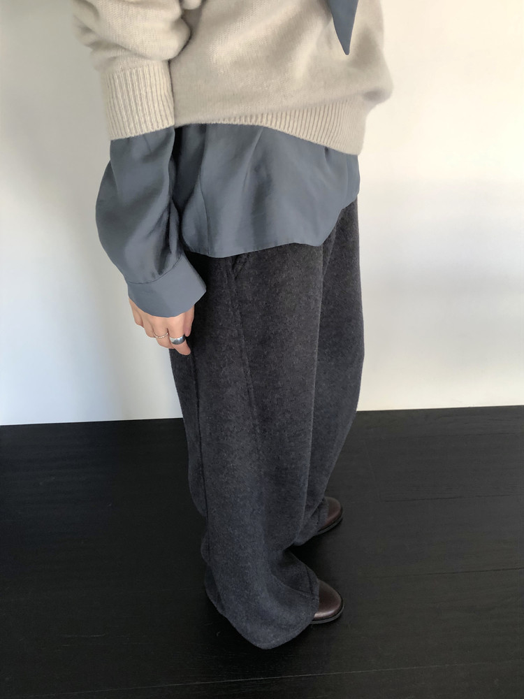 울 팬츠 특유의 까슬함을 떠올리기 쉽지만, 전혀 그렇지 않아요. 부드럽고 유연한 촉감으로 편하게 착용됩니다.