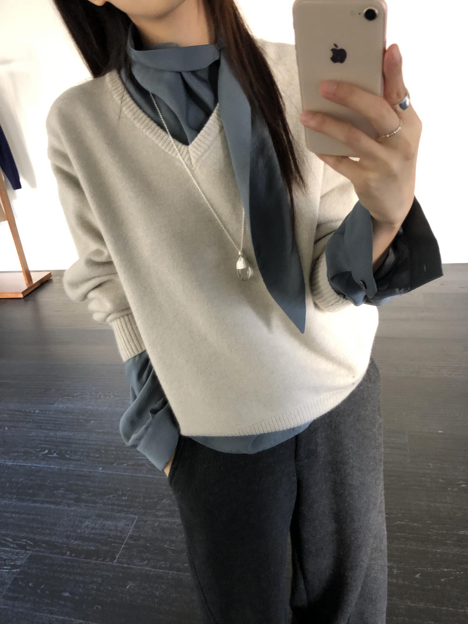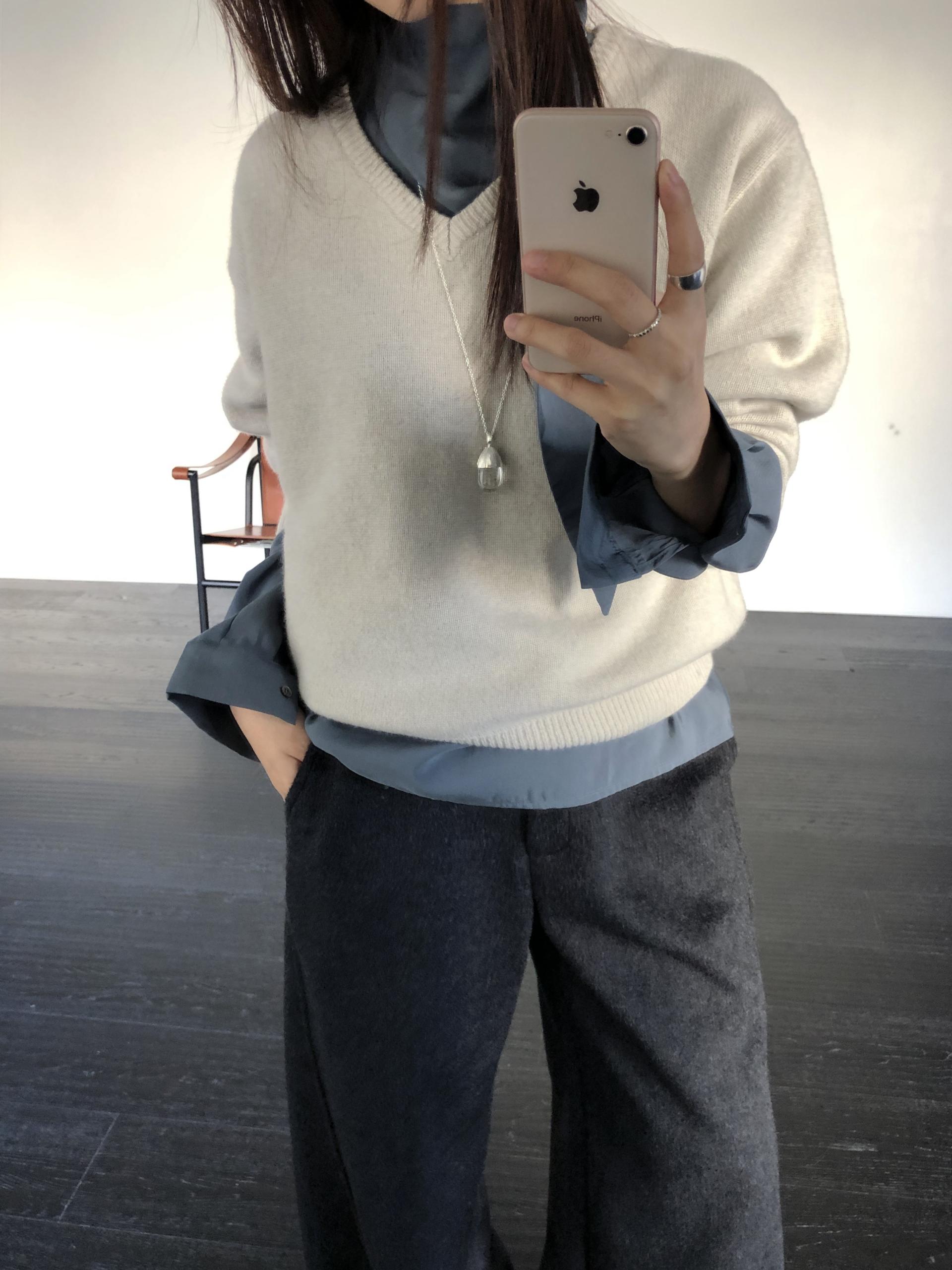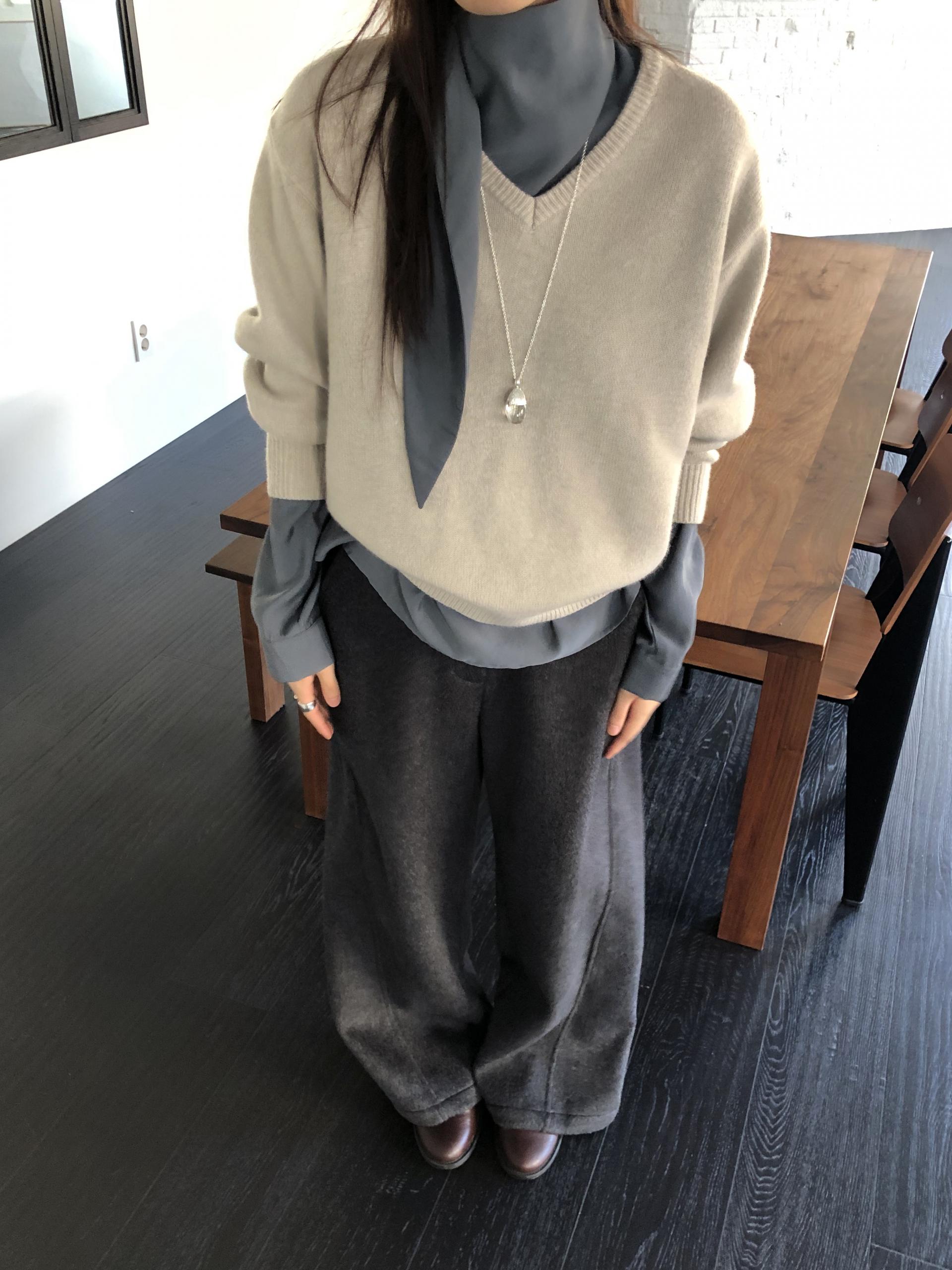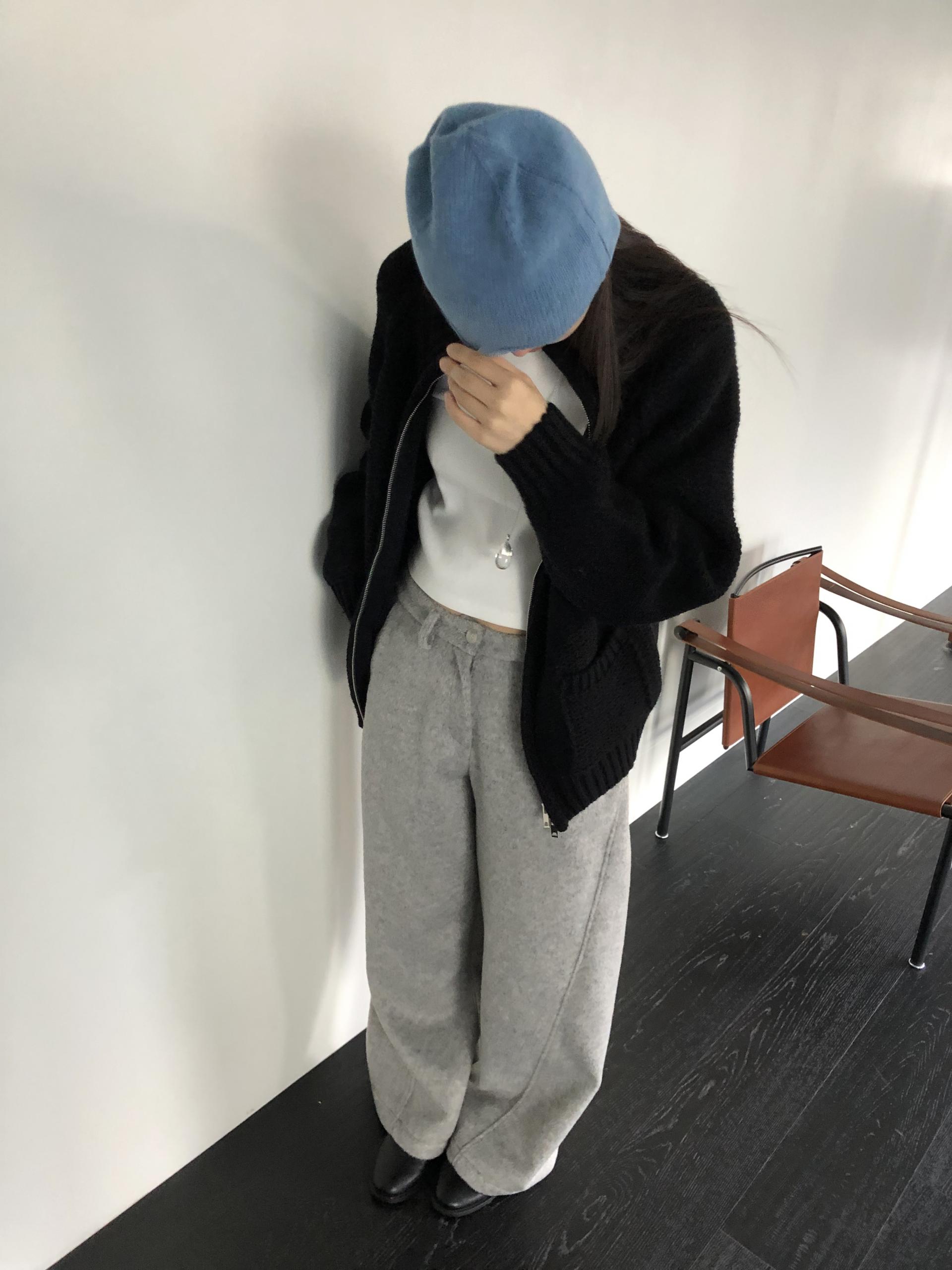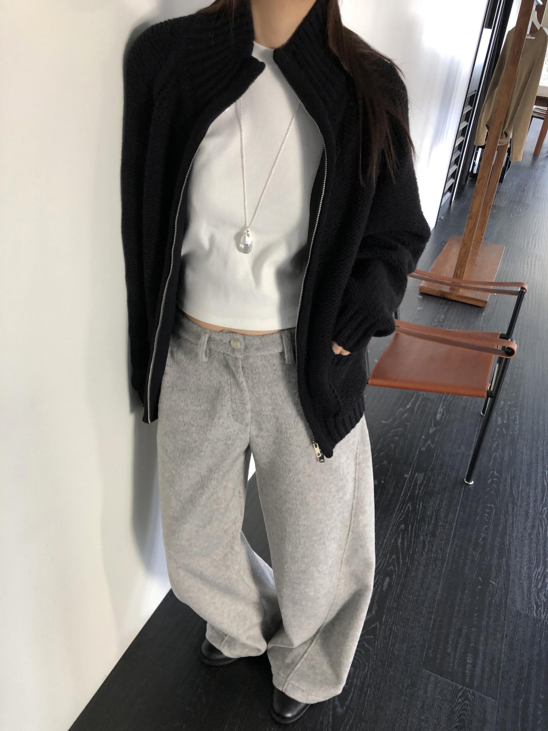 컬러는 멜란지 그레이와 차콜 두가지. 특히 멜란지 그레이는 소재의 결감이 더 잘 드러나 한층 포근하고 부드러운 이미지를 연출합니다.