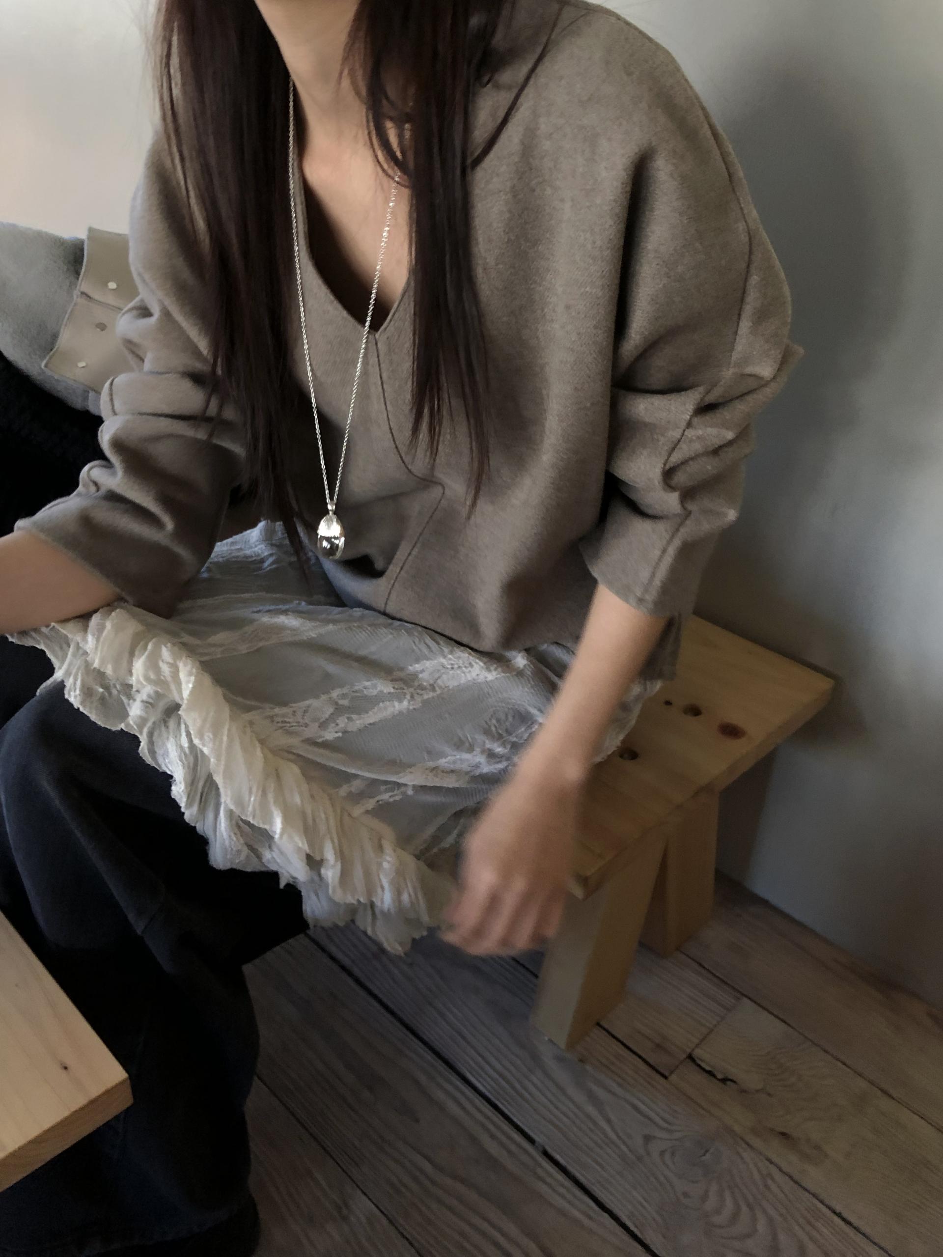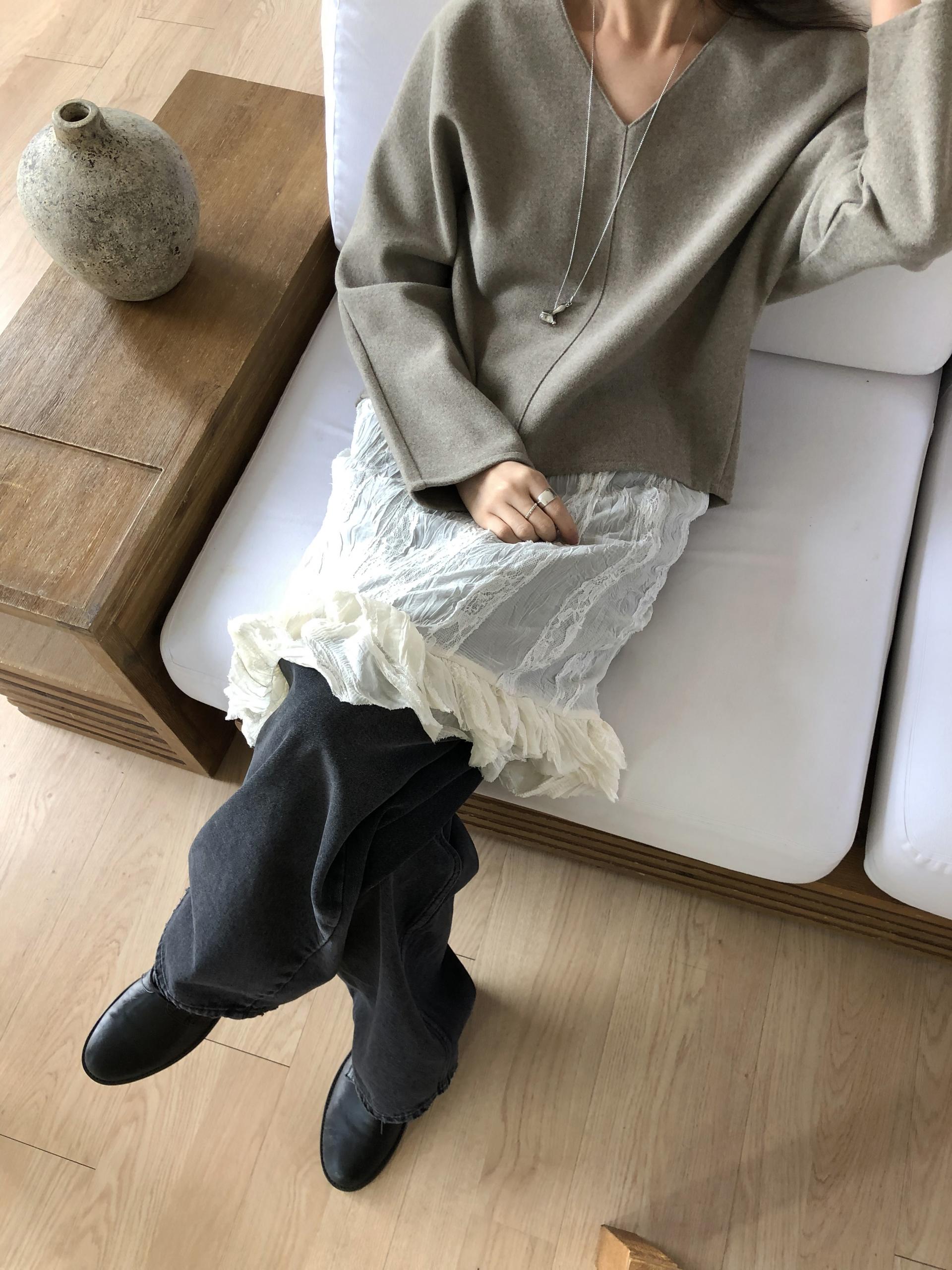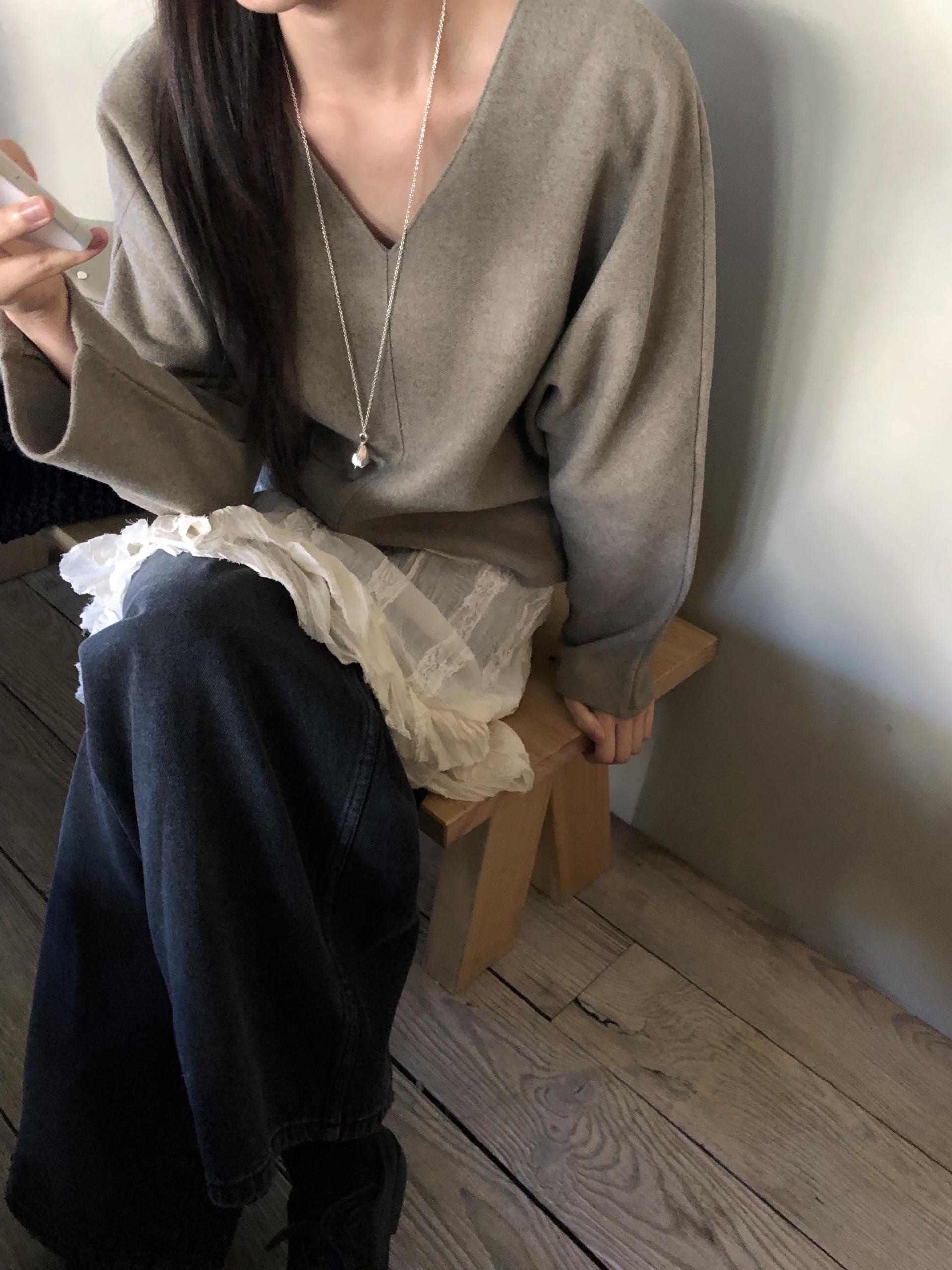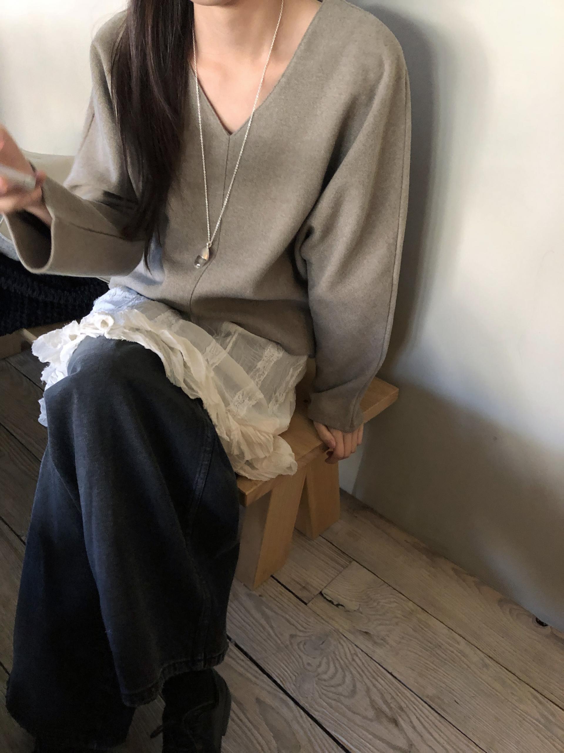 많이 깊지 않은 브이넥이라 격식있는 자리에도 함께하기 좋고, 이너 탑이나 셔츠등을 레이어드 하기에도 좋아요.