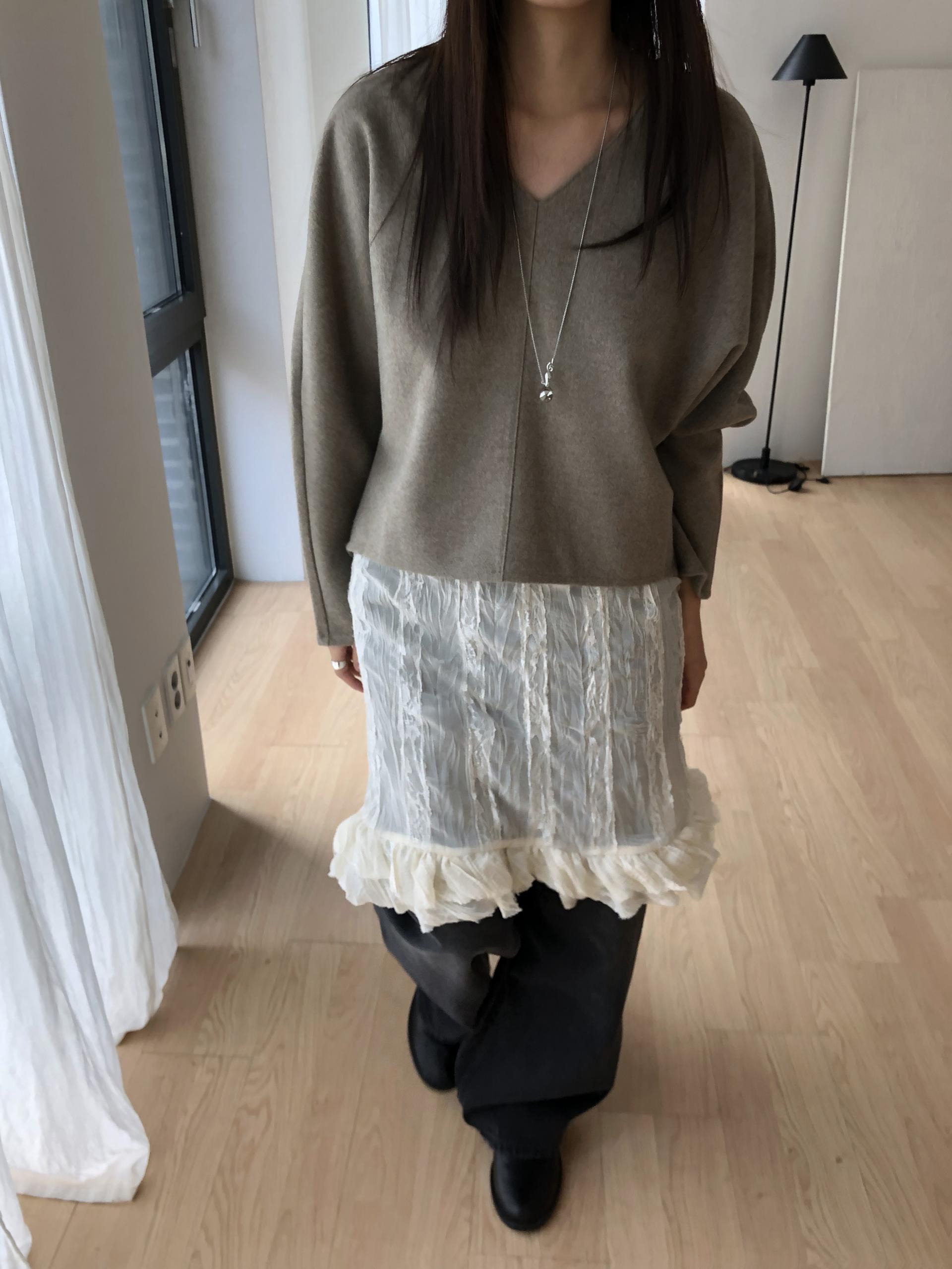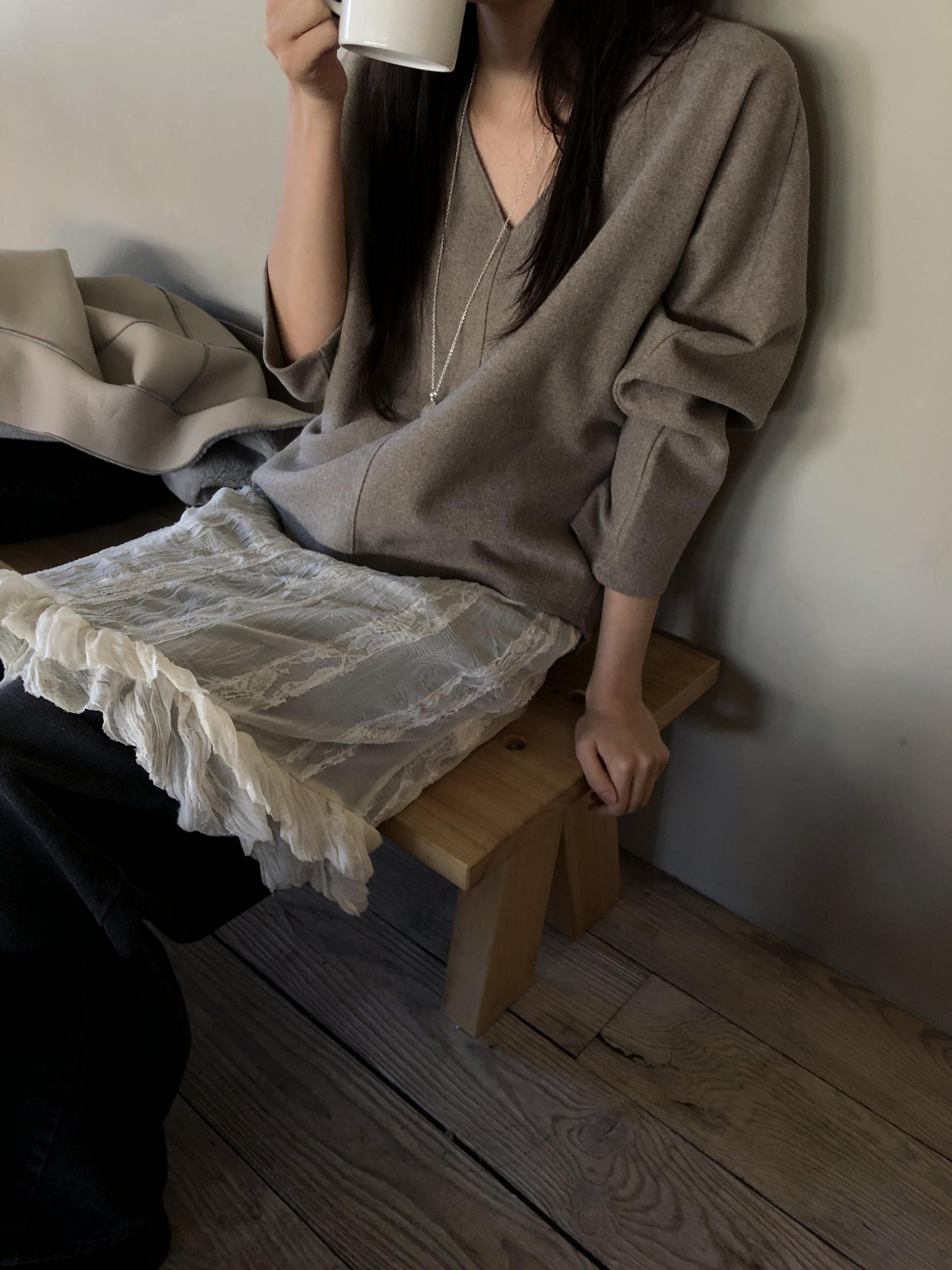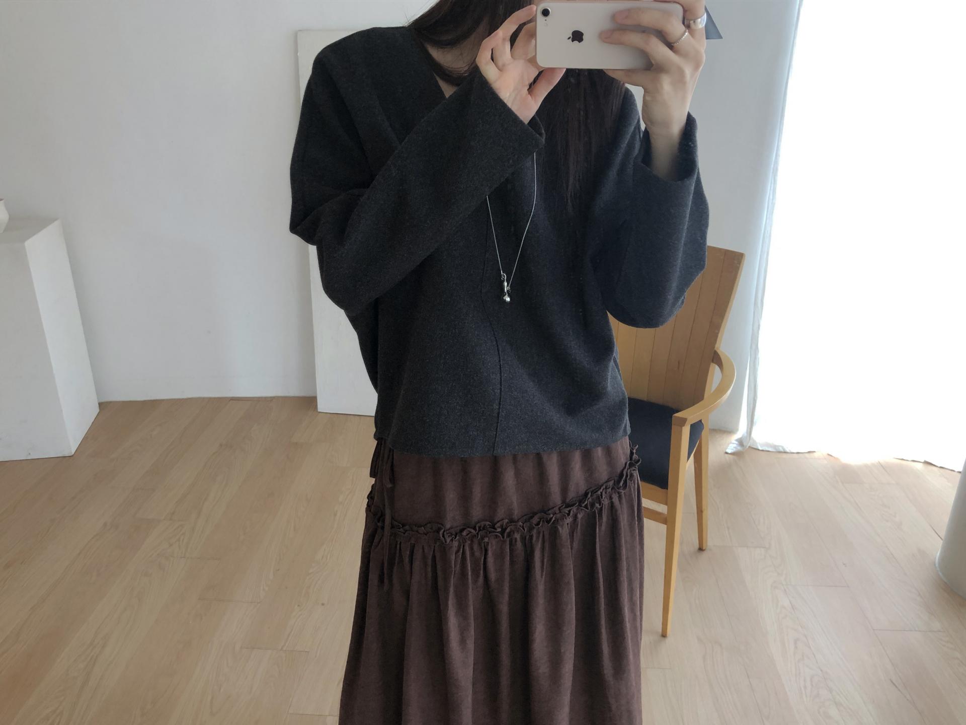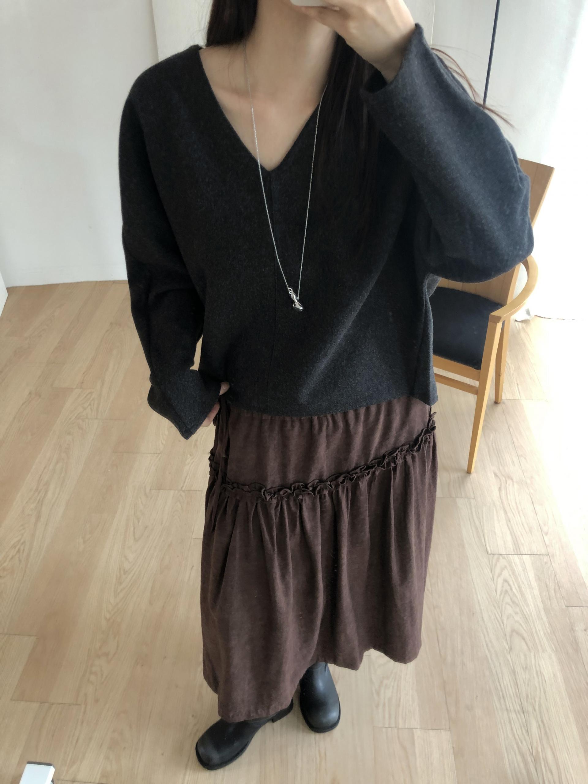 많이 깊지 않은 브이넥이라 격식있는 자리에도 함께하기 좋고, 이너 탑이나 셔츠등을 레이어드 하기에도 좋아요.