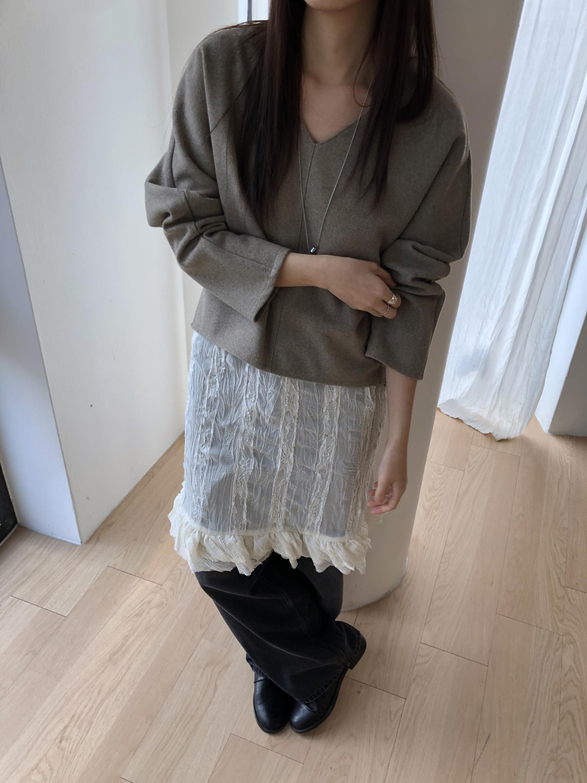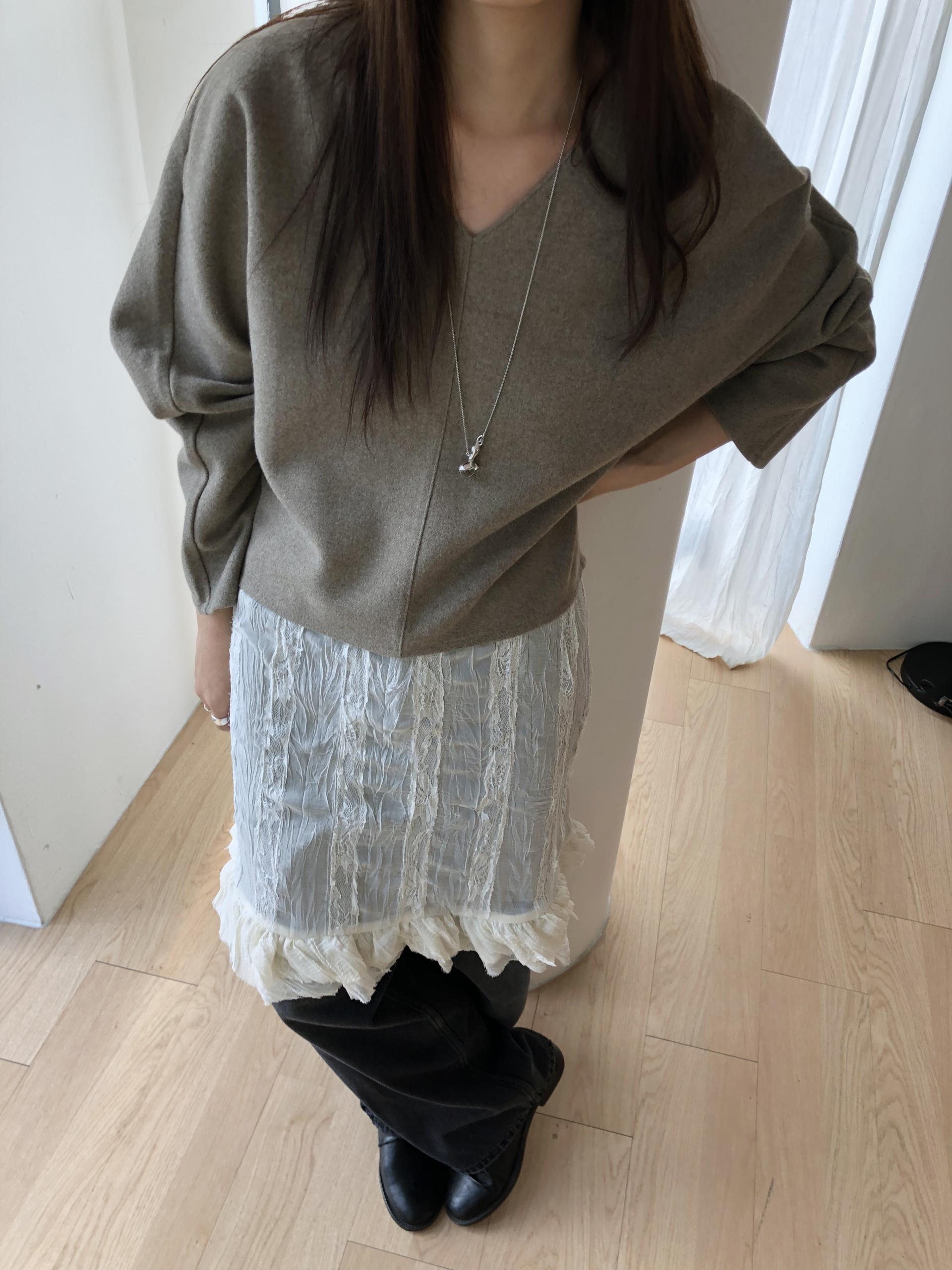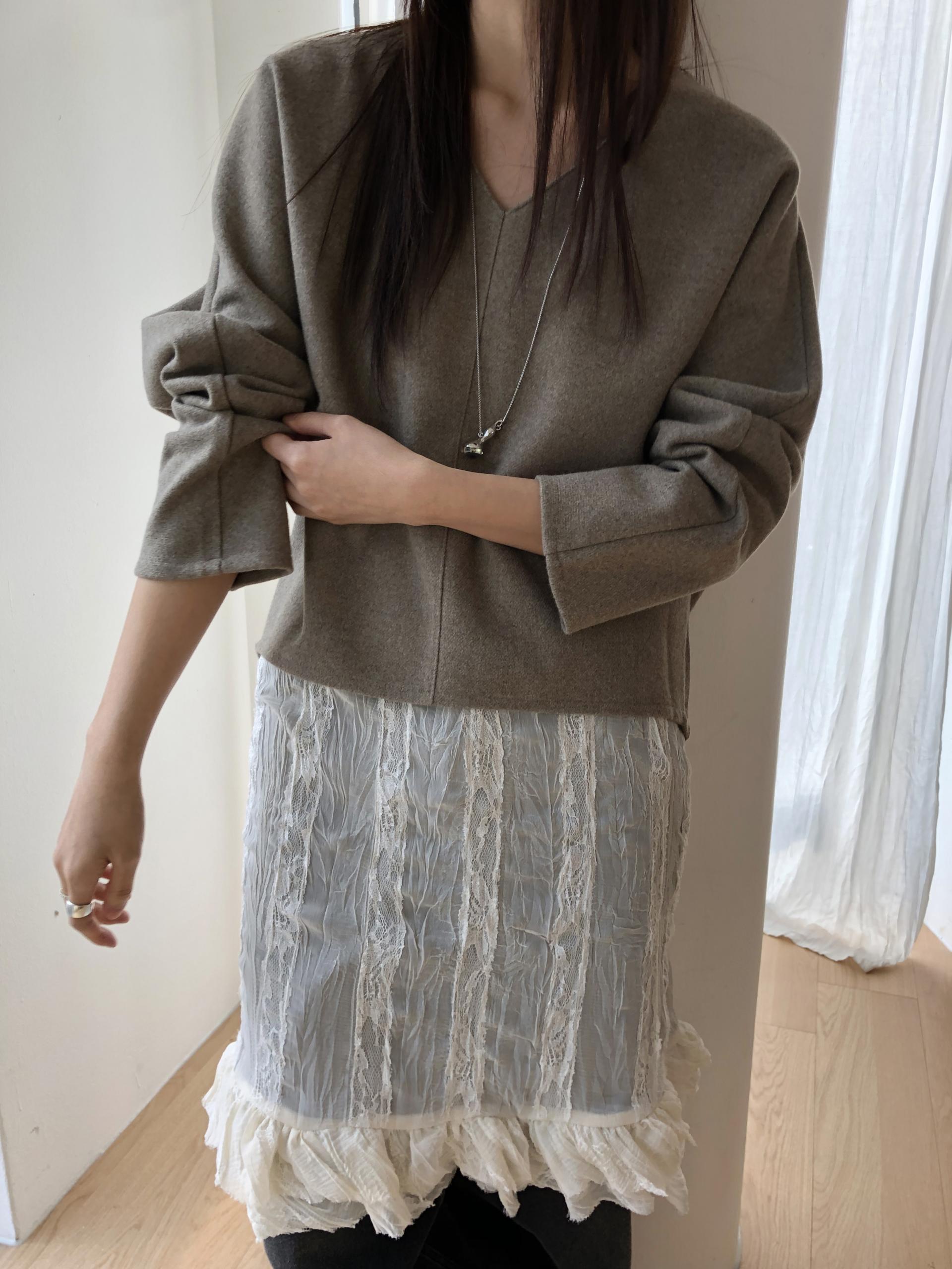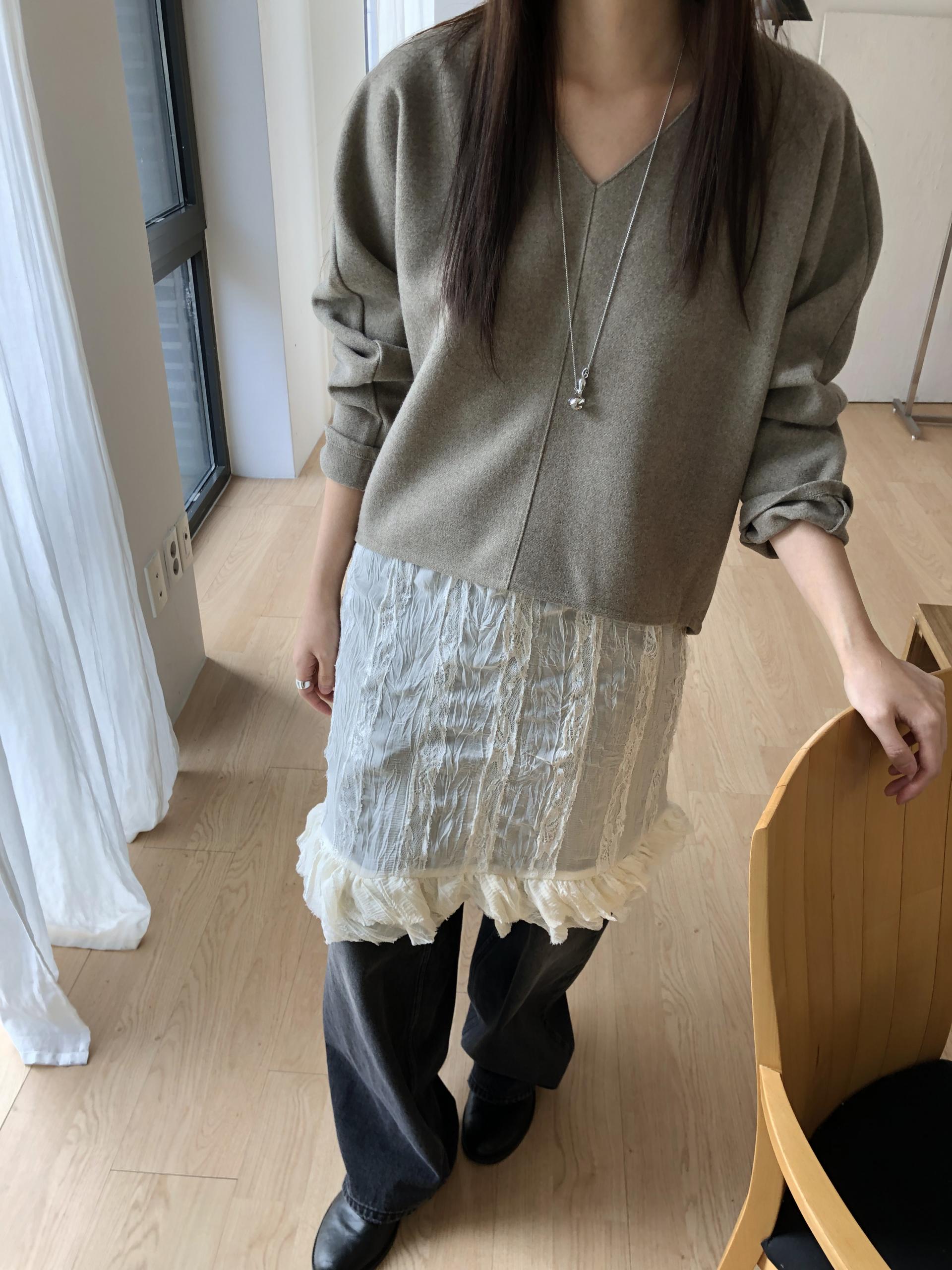 많이 깊지 않은 브이넥이라 격식있는 자리에도 함께하기 좋고, 이너 탑이나 셔츠등을 레이어드 하기에도 좋아요.