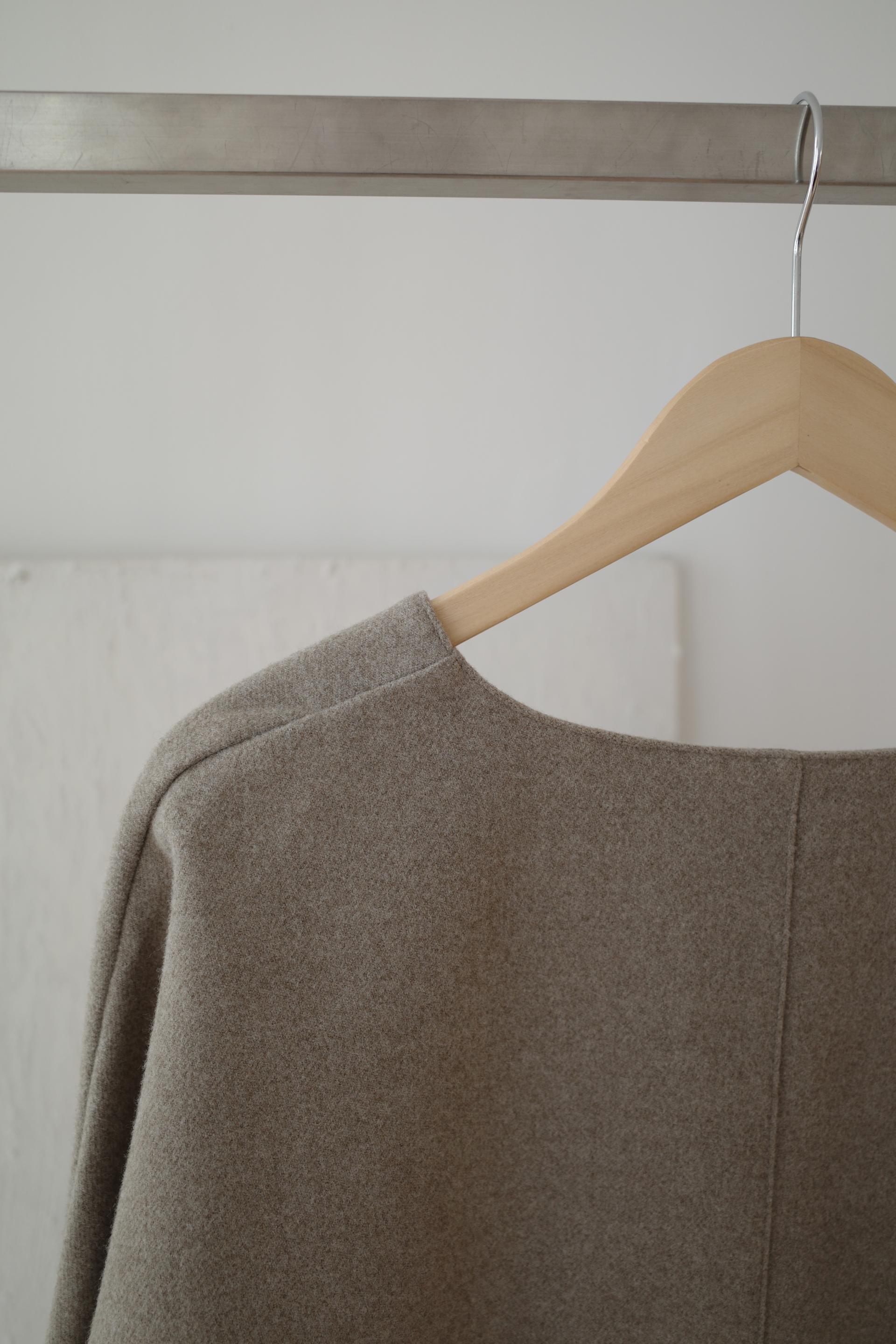 소매와 몸판이 자연스럽게 이어져 곡선감이 살아있는 실루엣이에요.