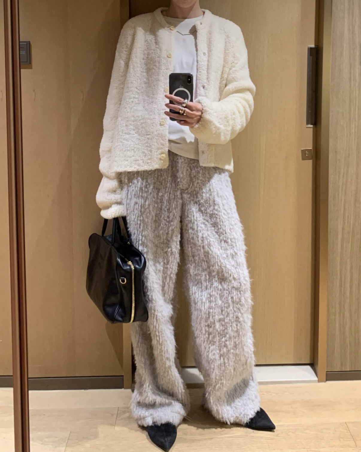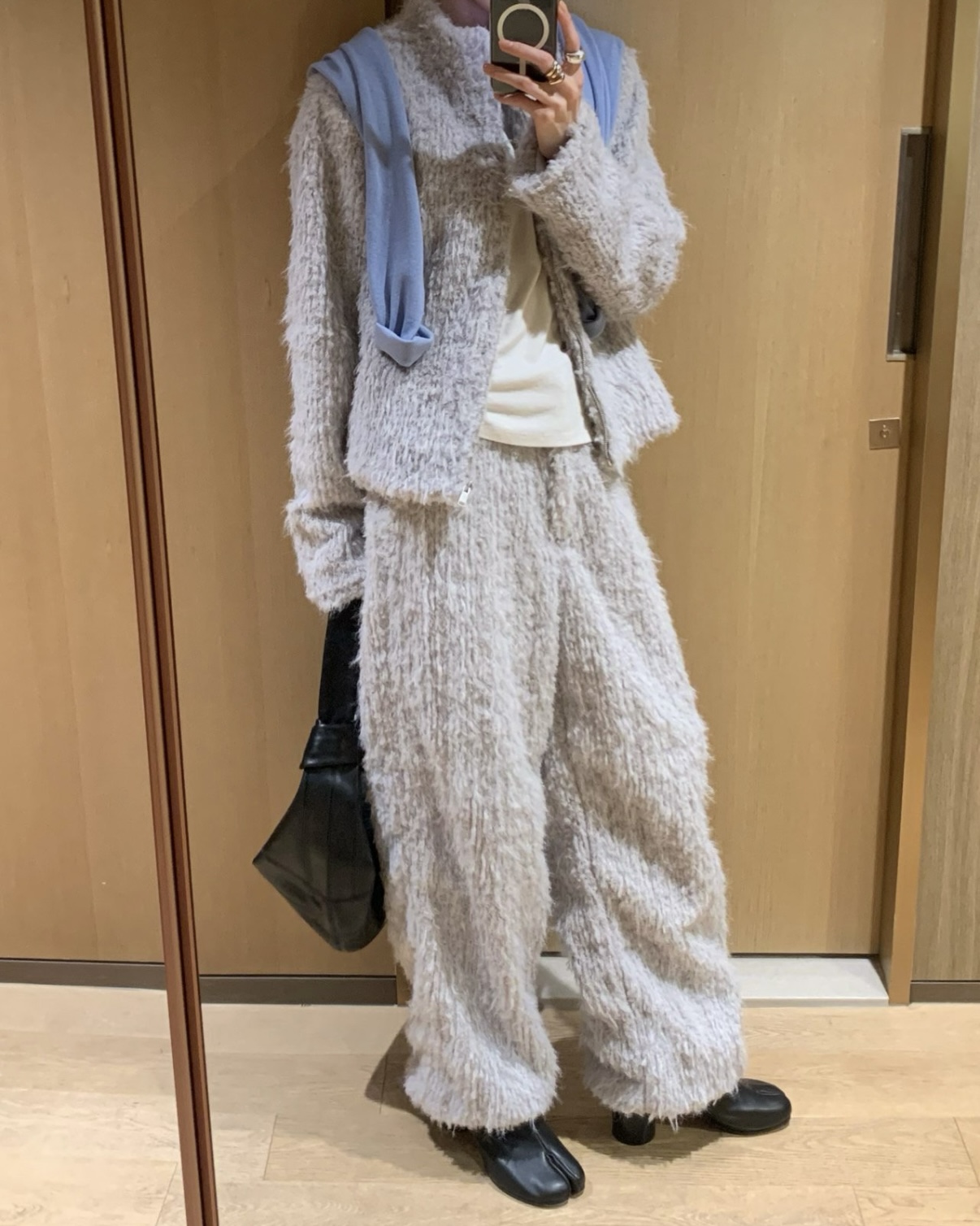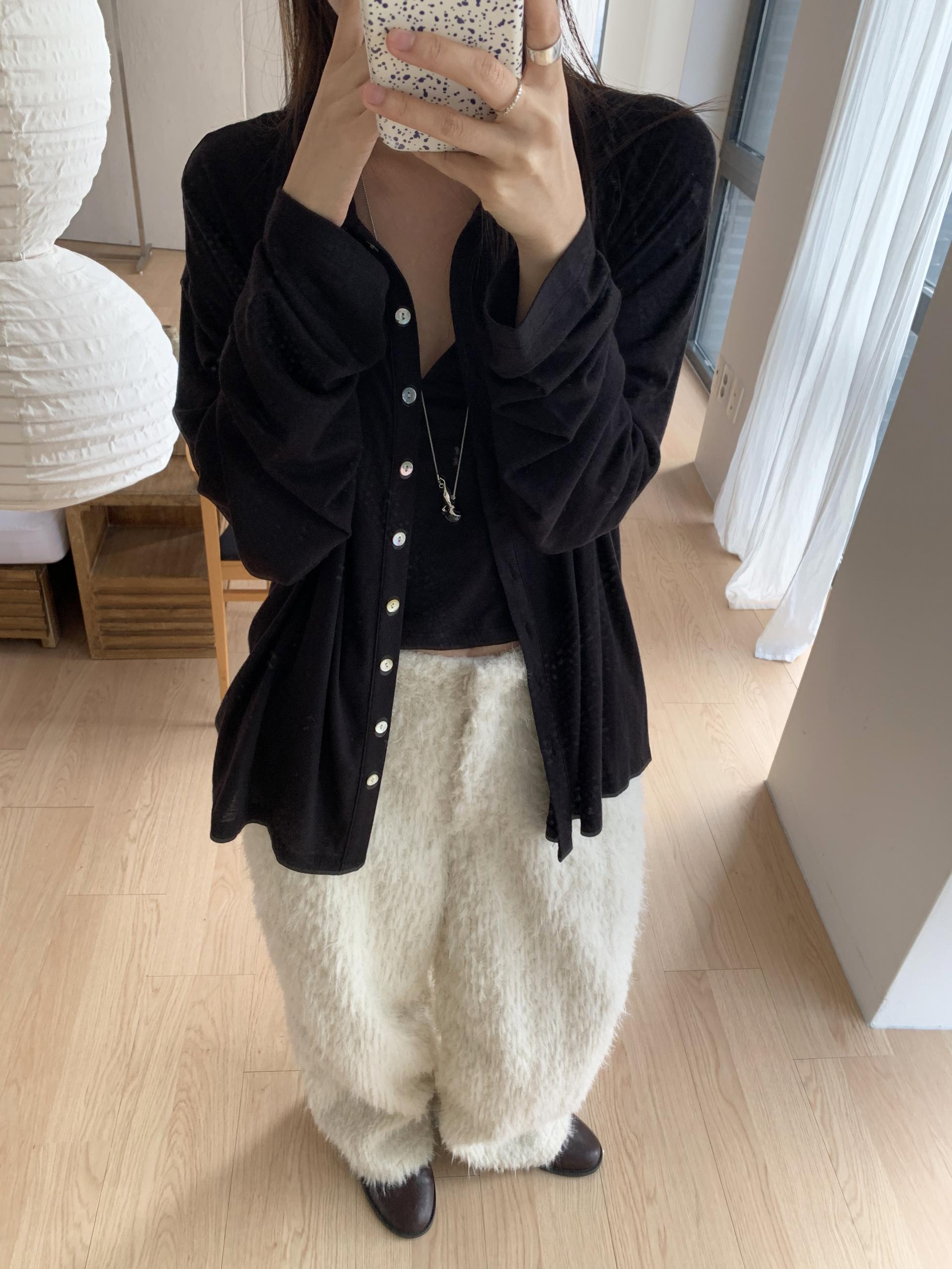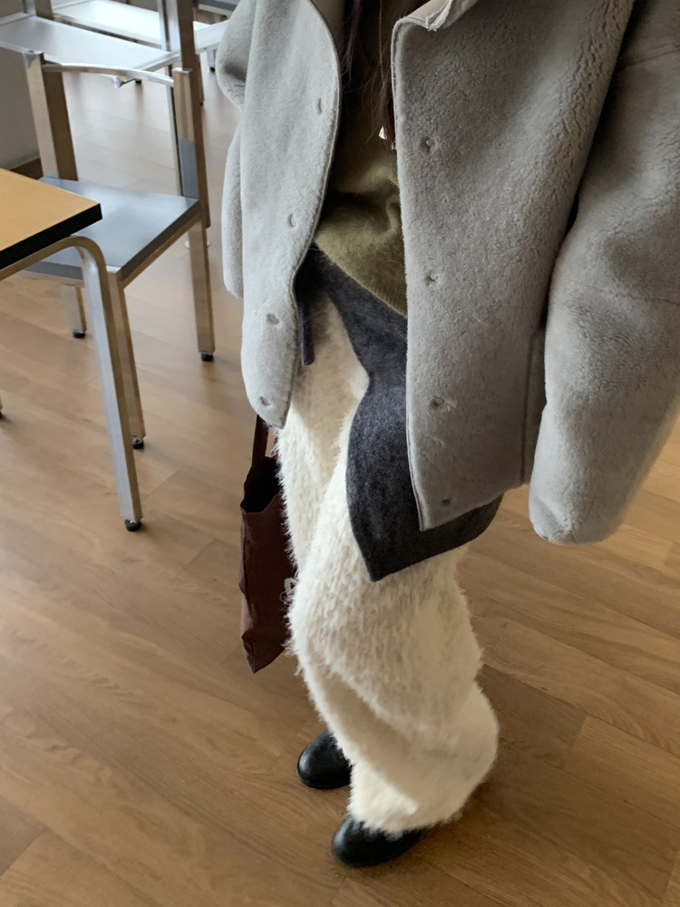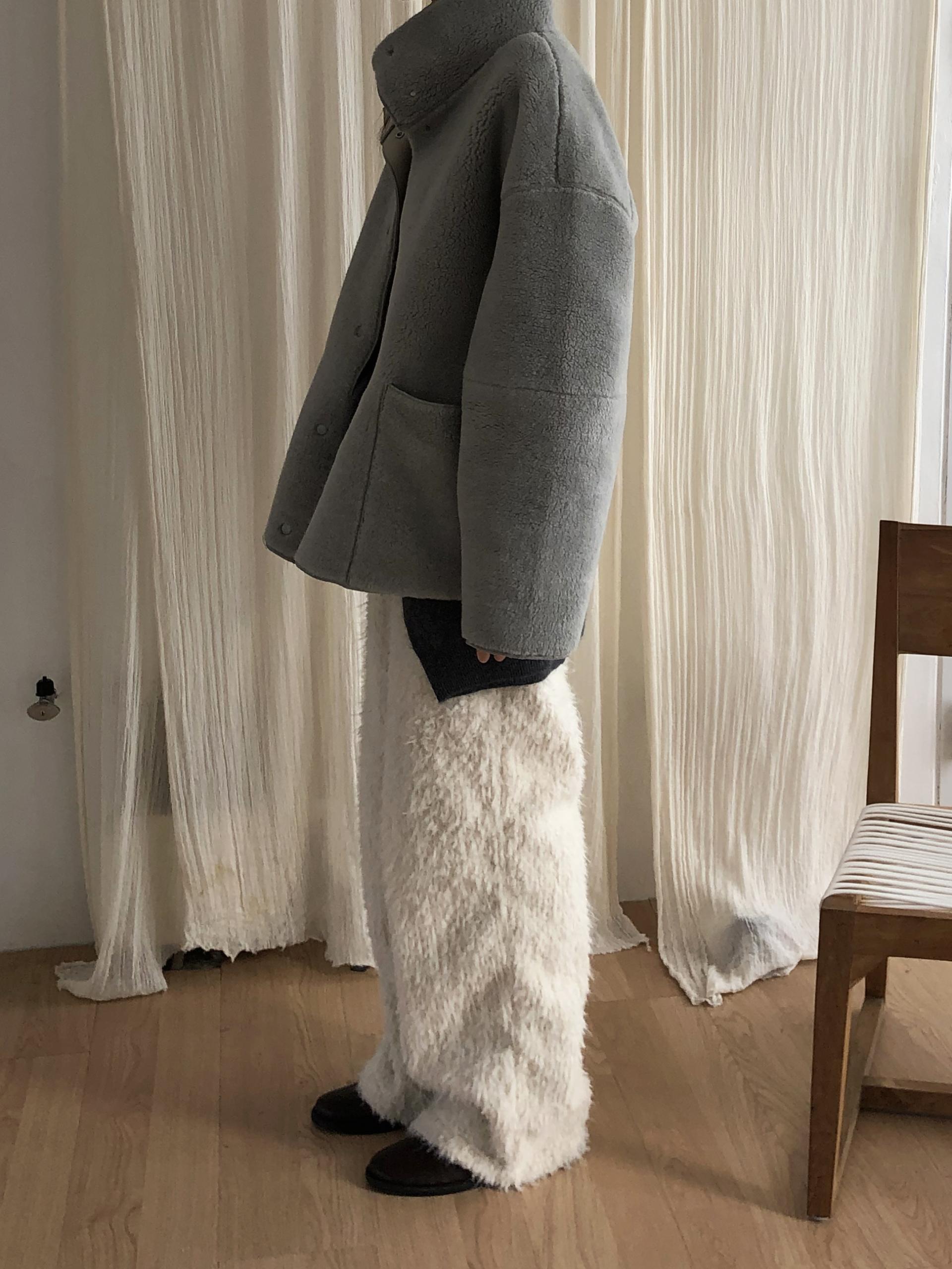 함께 업데이트 된 퍼지 점퍼와 동일한 원단으로 제작된 제품이에요. 도톰한 두께와 더불어 퍼자켓같은 복실복실한 헤어가 더해져 더욱 따뜻해요.