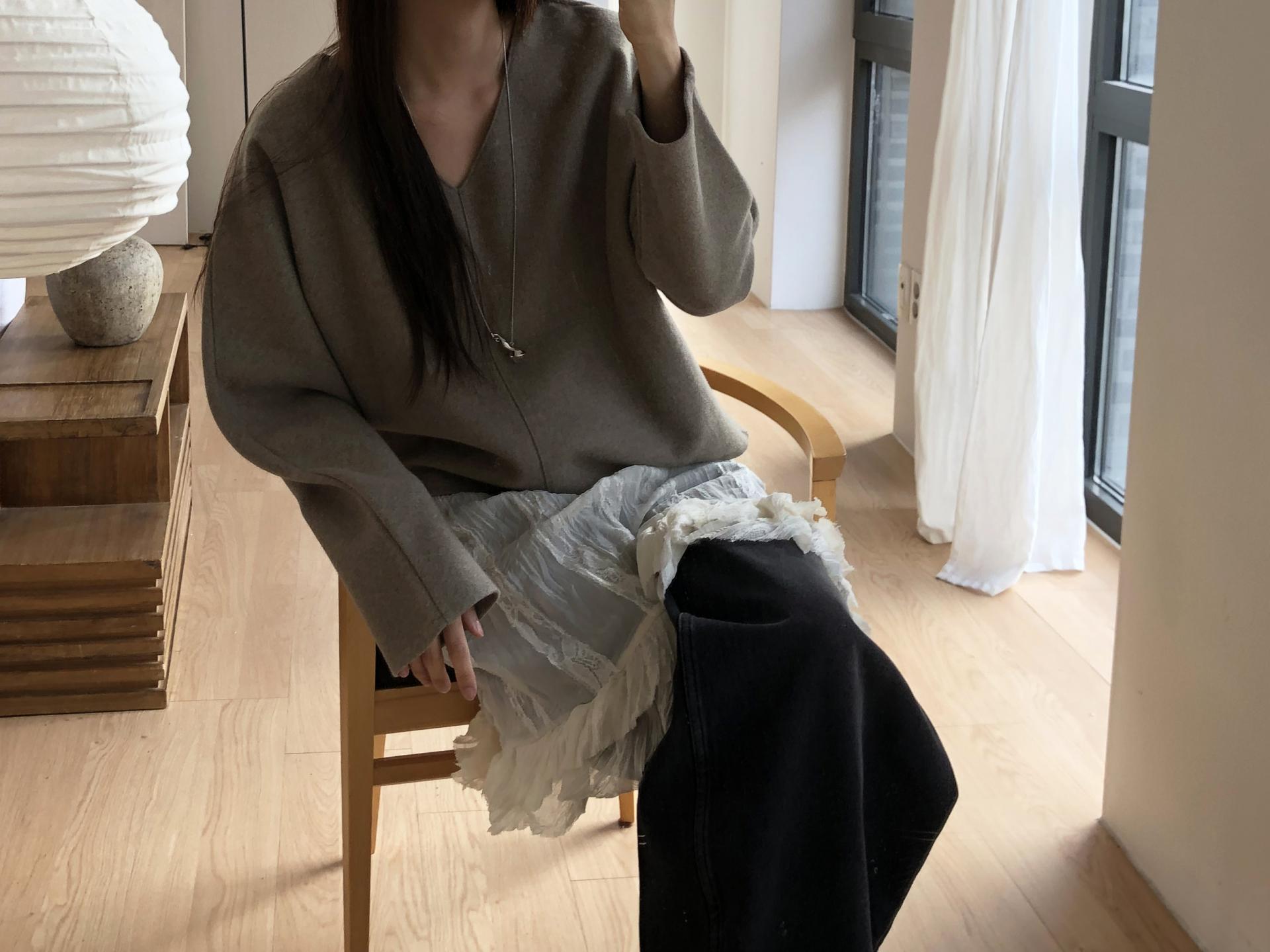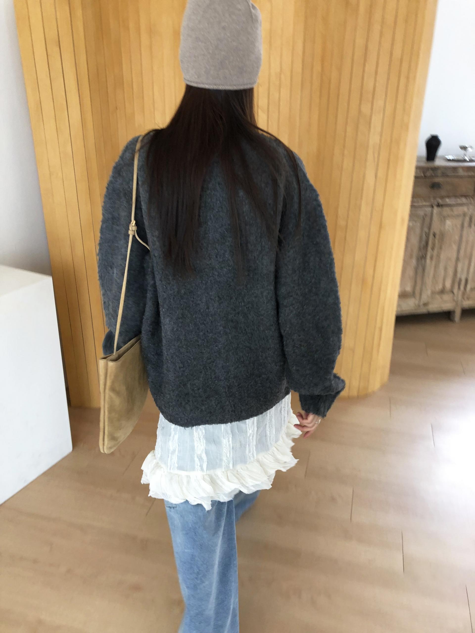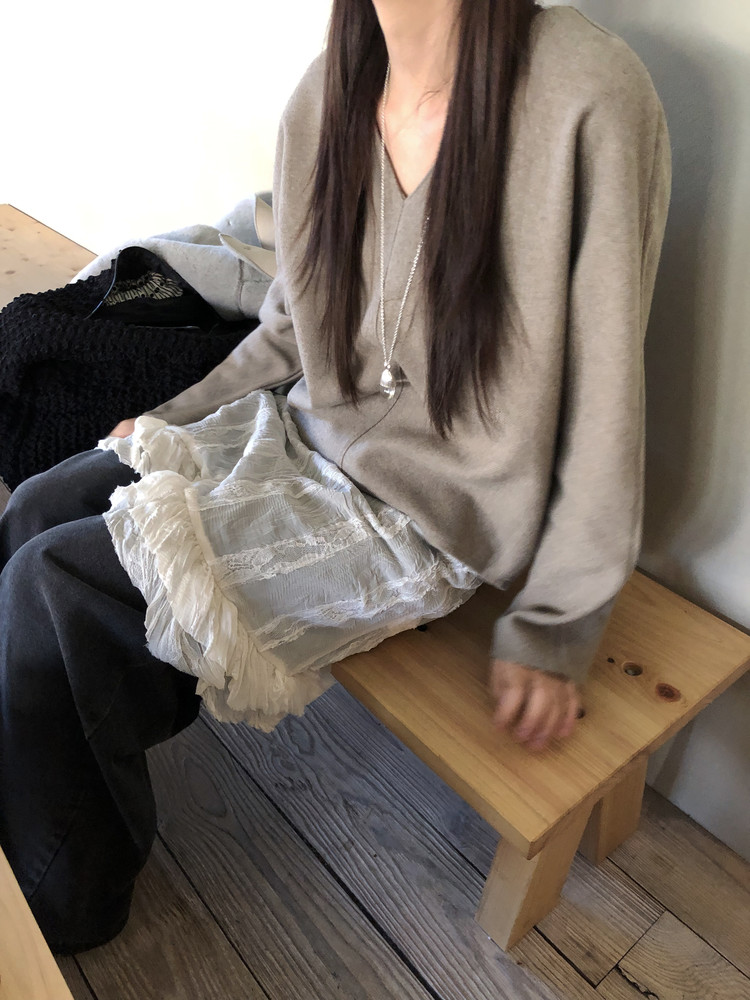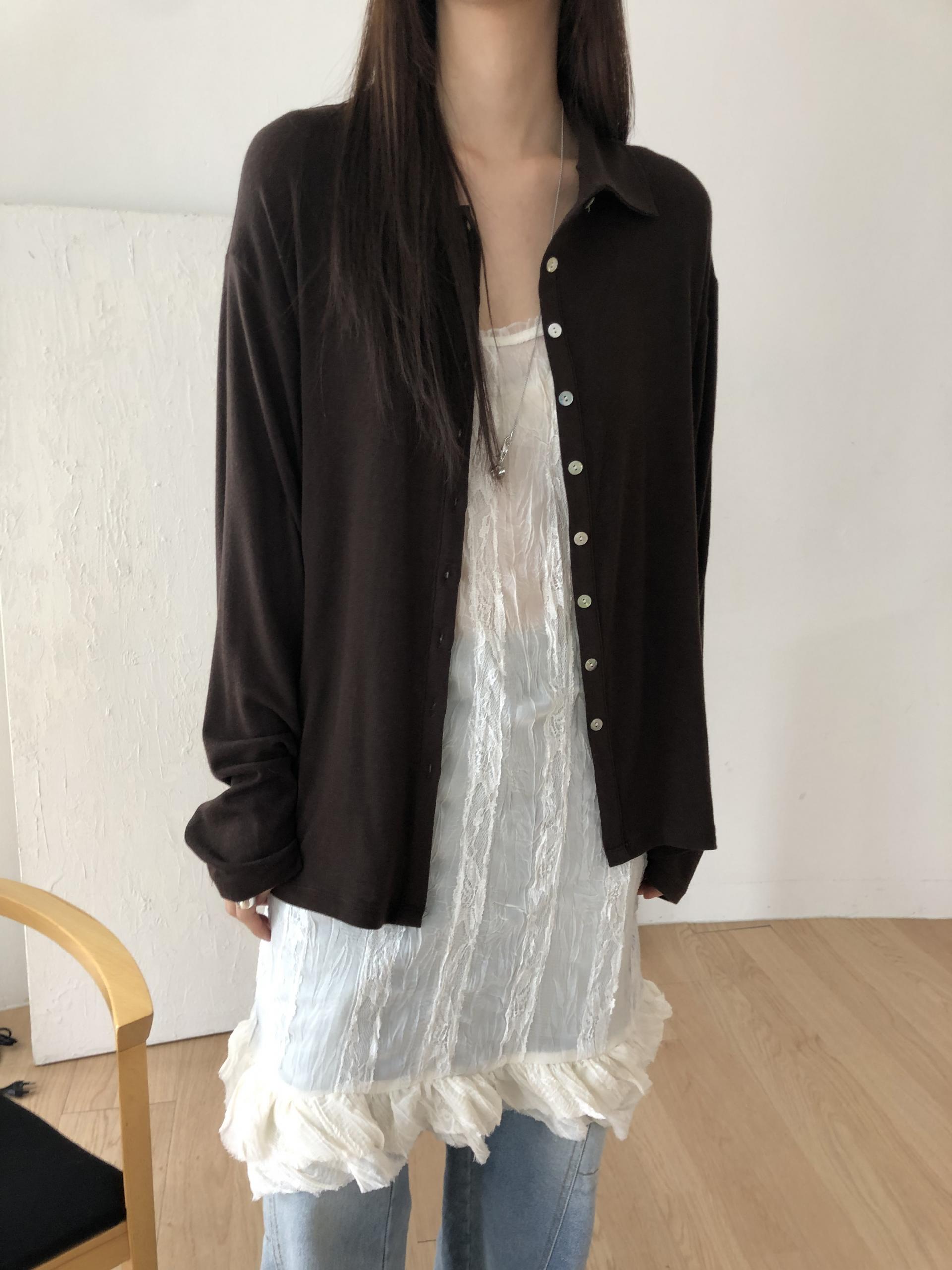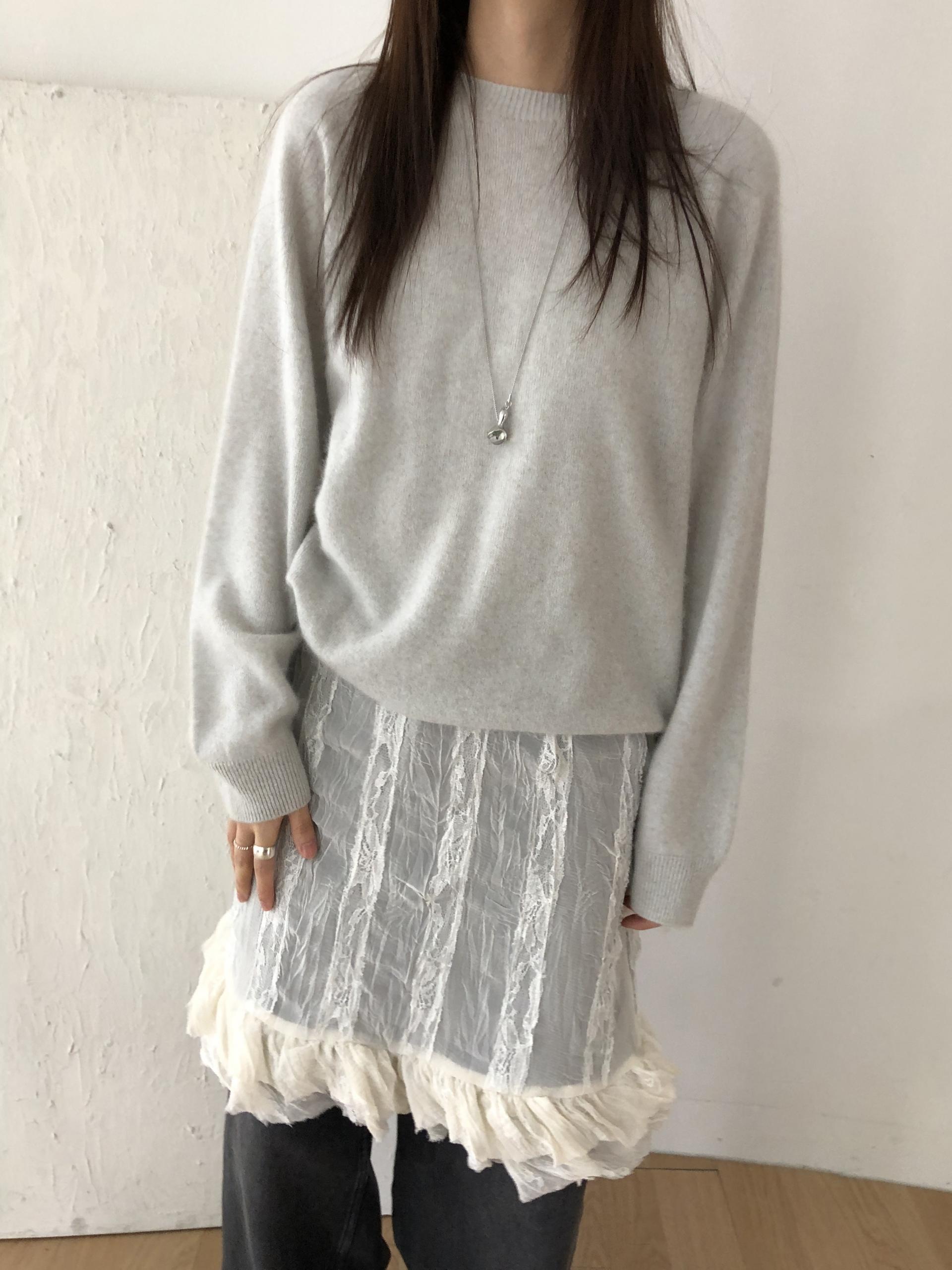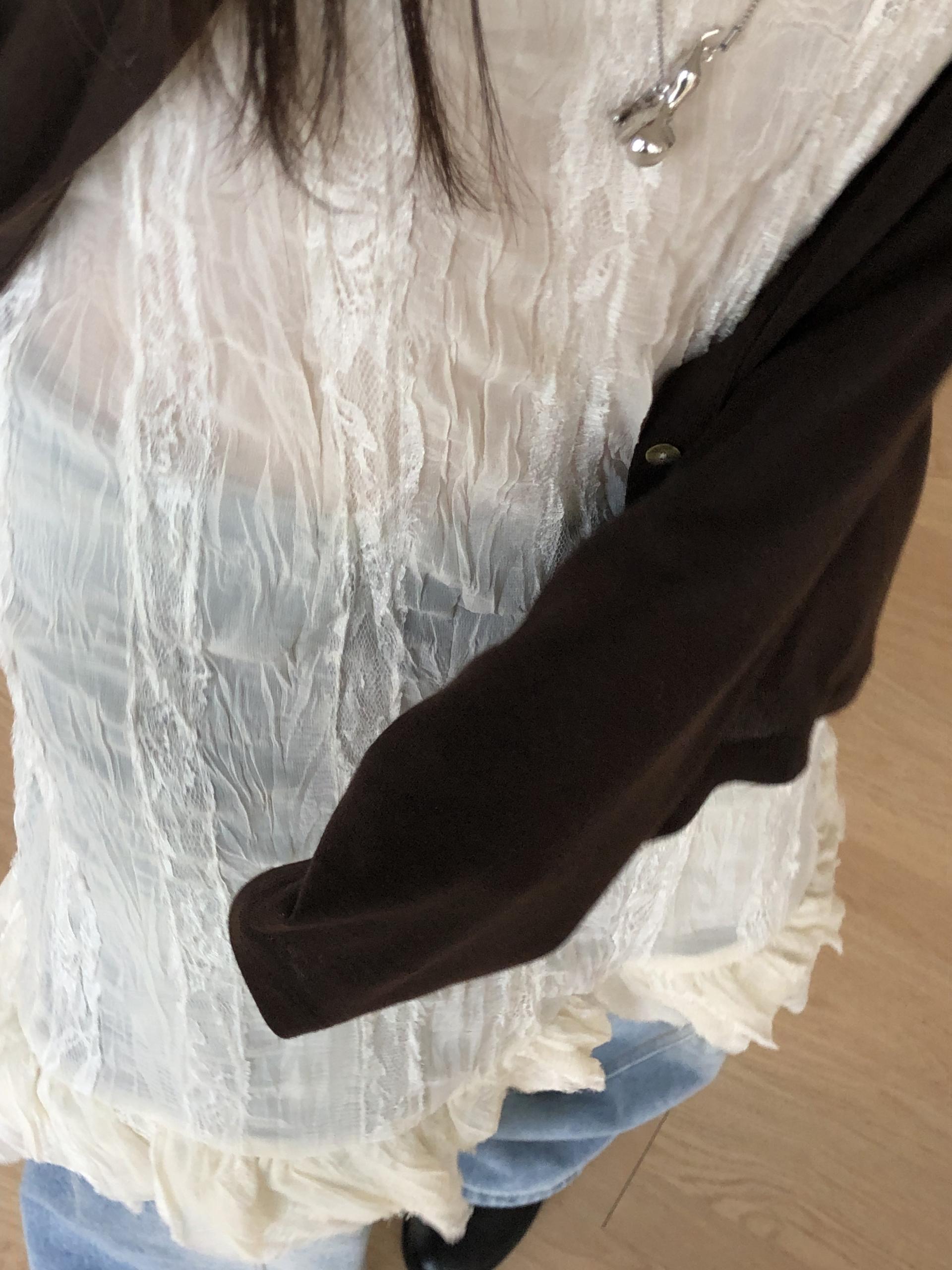 시어한 소재에 레이스를 포인트로 한 디자인으로 겹쳐입어도 부해보이지 않게 레이어링 할 수 있어 더욱 마음에 들었던 아이템이에요. 살짝 파여있는 라운드넥이라 원피스 안에 탑을 입어주어도 답답함없이 깔끔한 실루엣으로 연출됩니다.