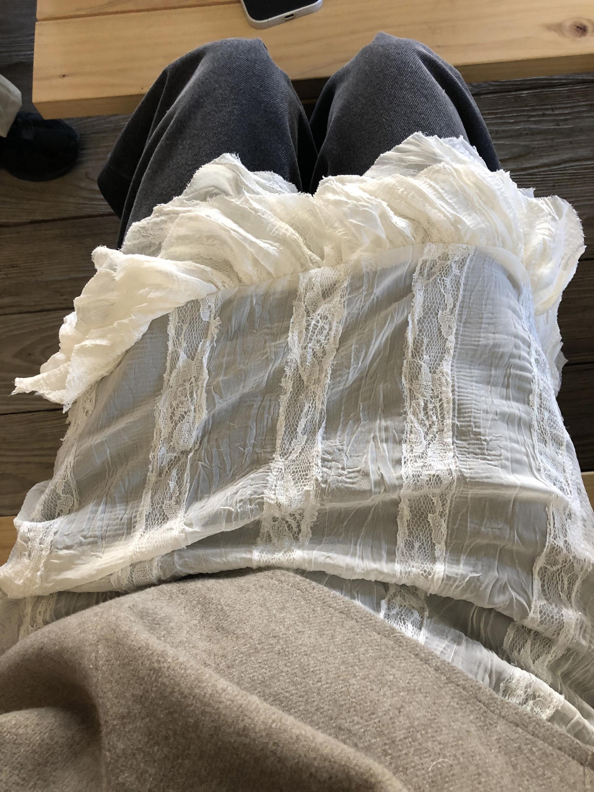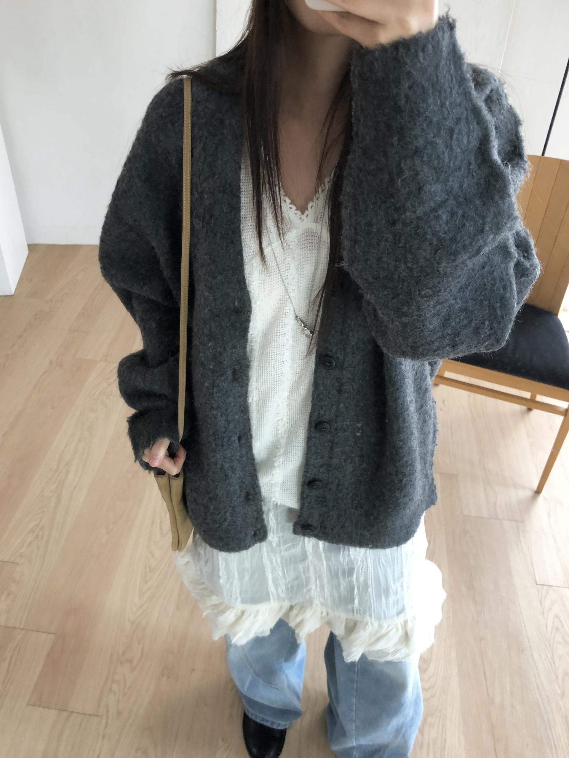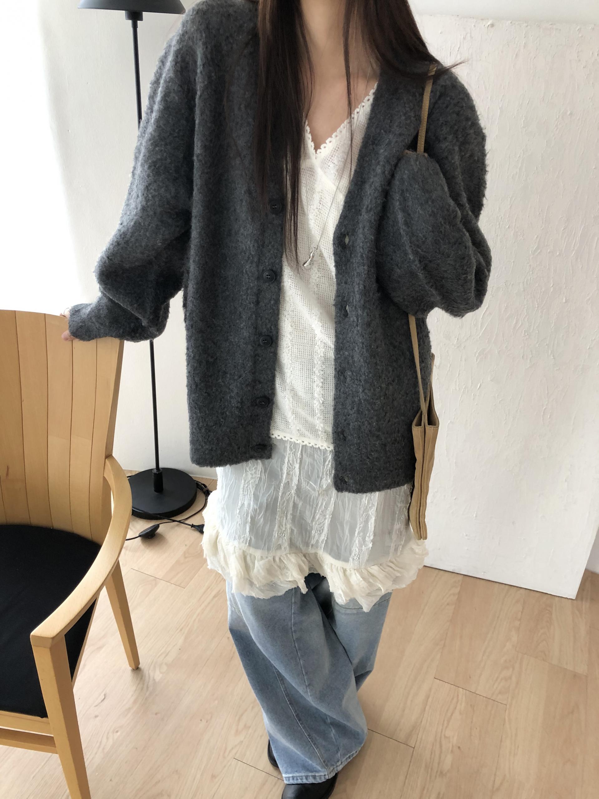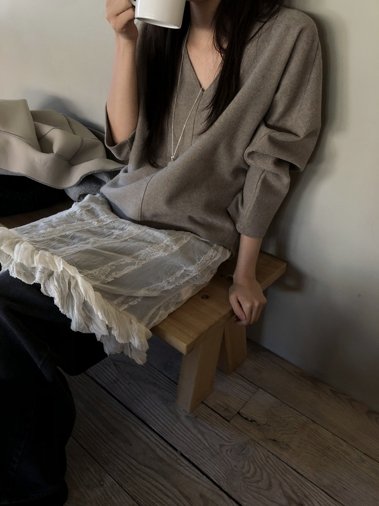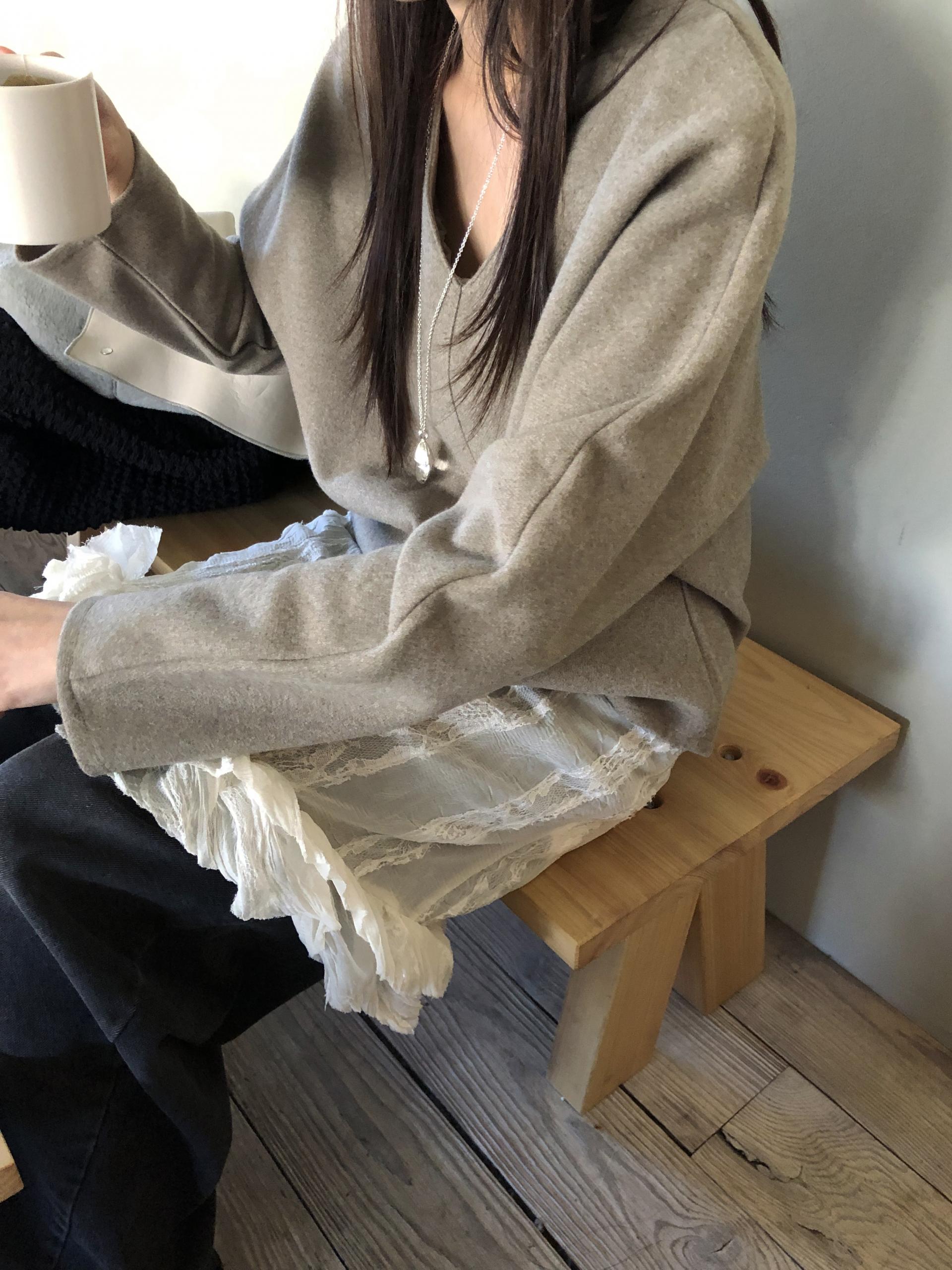 시어한 소재에 레이스를 포인트로 한 디자인으로 겹쳐입어도 부해보이지 않게 레이어링 할 수 있어 더욱 마음에 들었던 아이템이에요. 살짝 파여있는 라운드넥이라 원피스 안에 탑을 입어주어도 답답함없이 깔끔한 실루엣으로 연출됩니다.