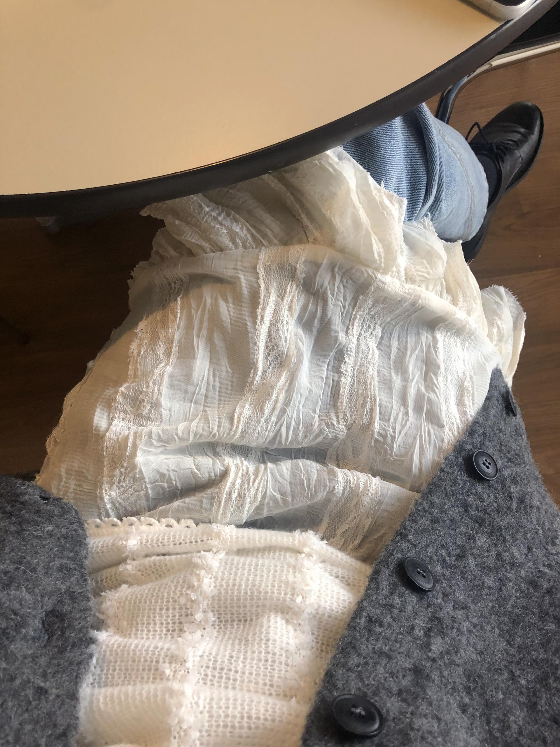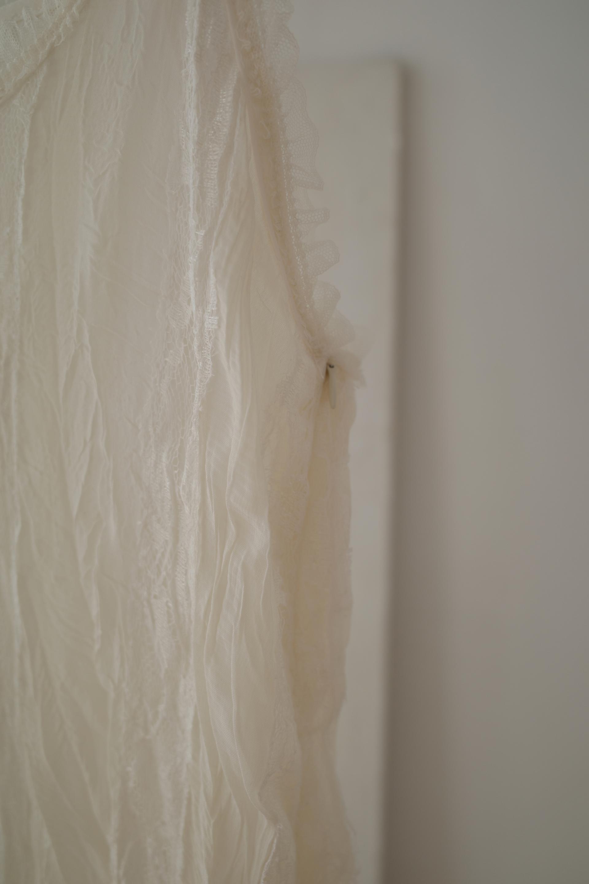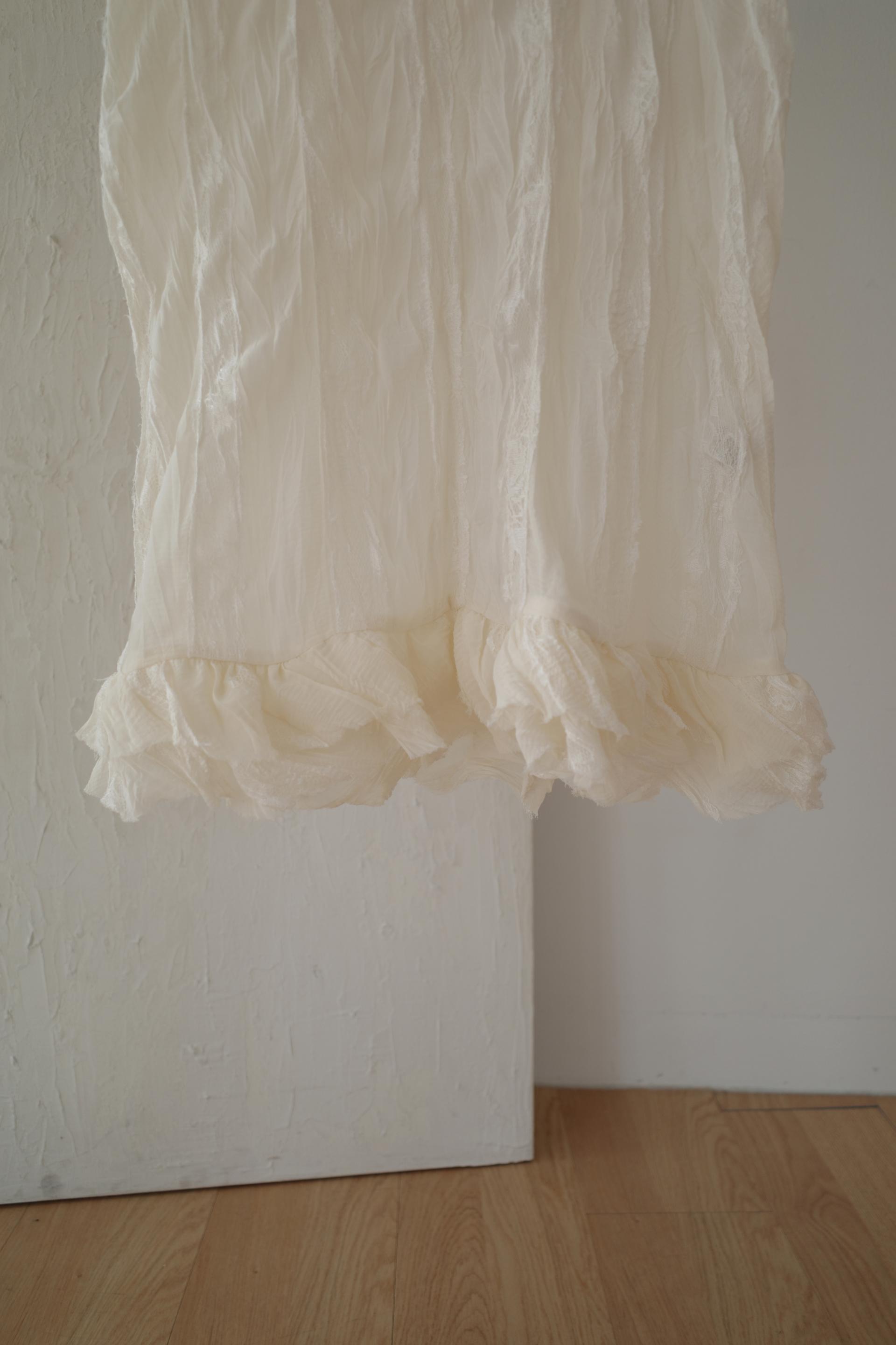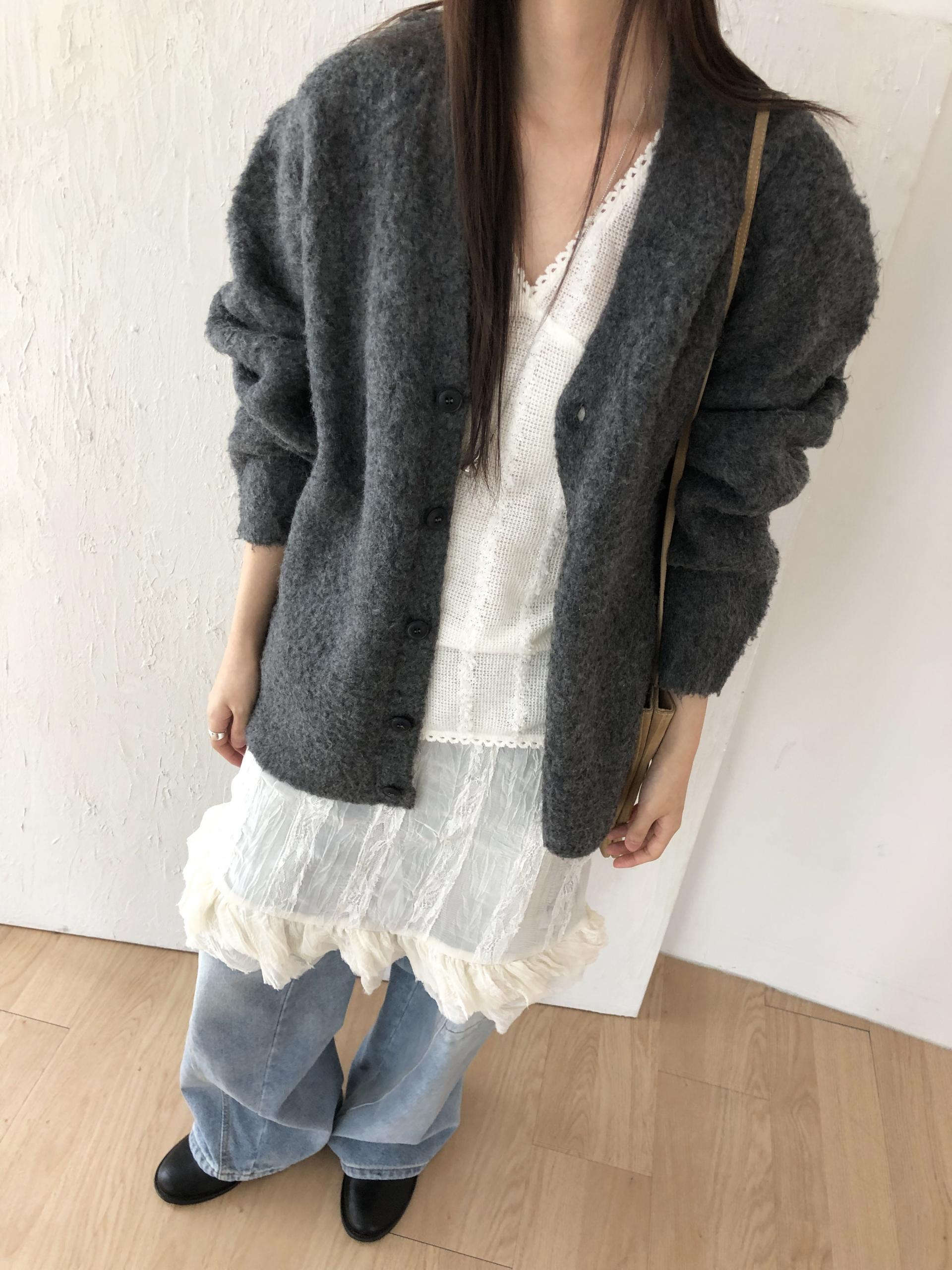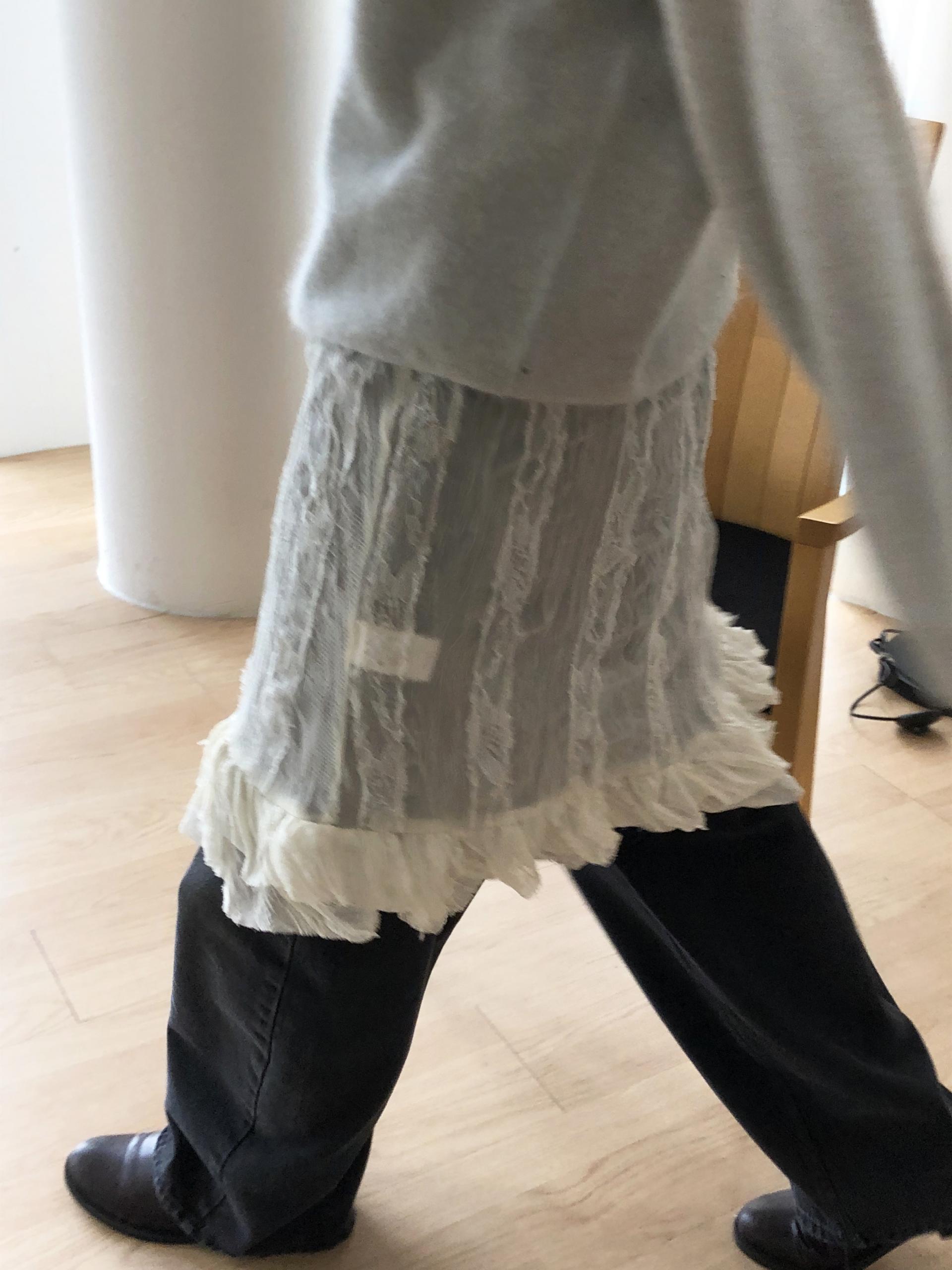 심플한 룩에 자연스럽게 로맨틱한 결이 더해져 마치 빈티지 슬립 드레스를 겹쳐 입은 듯한 분위기를 연출할 수 있습니다. 기장감도 어느정도 있는 편이라 오버핏의 아우터나 니트웨어에도 예쁘게 매치된답니다.