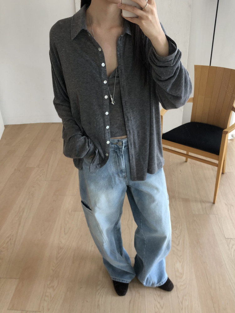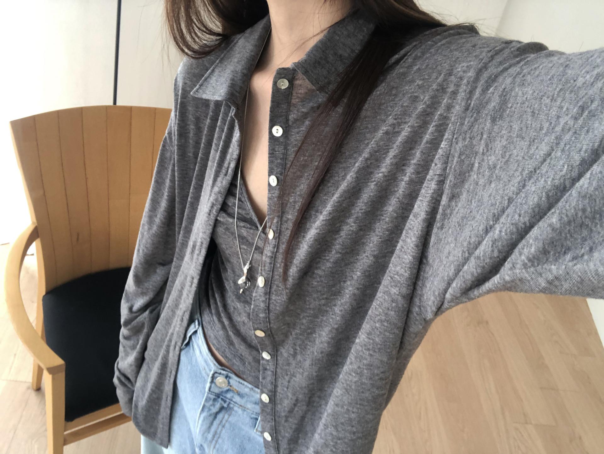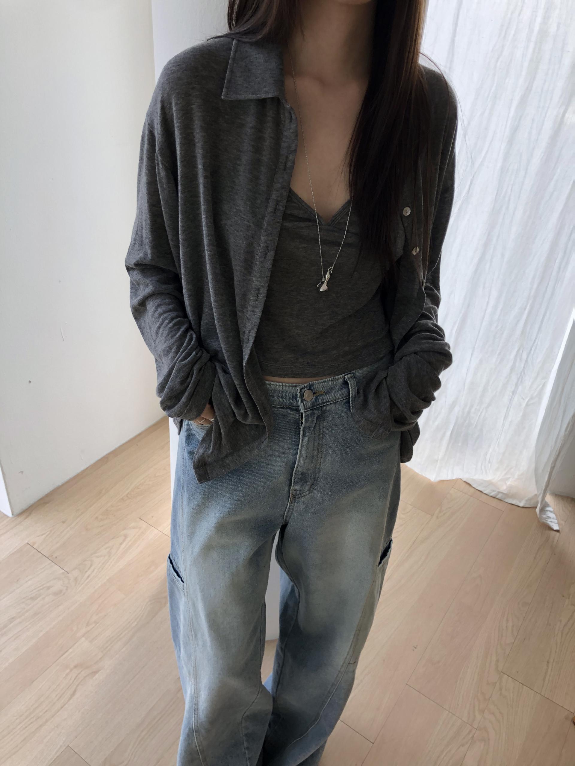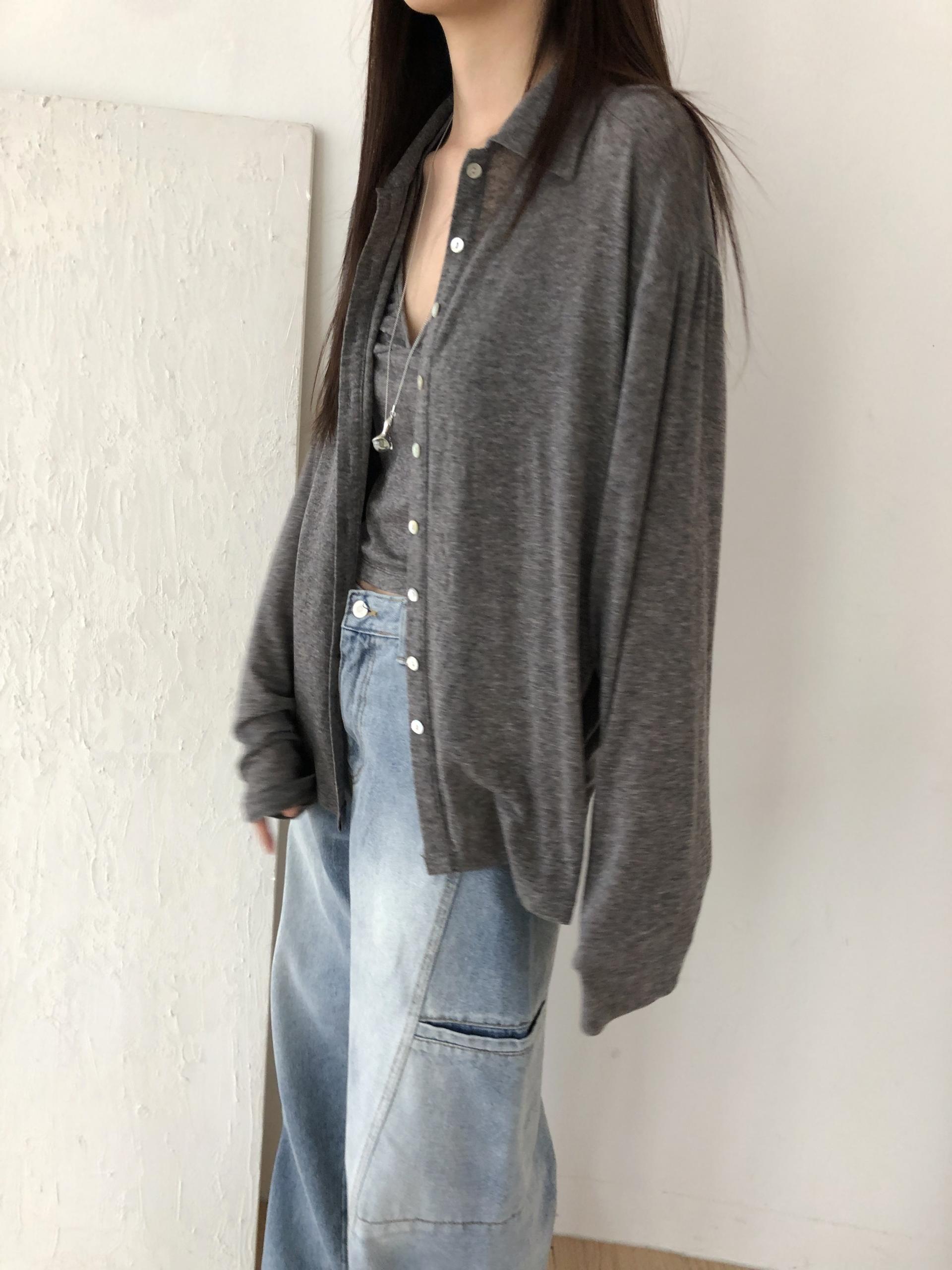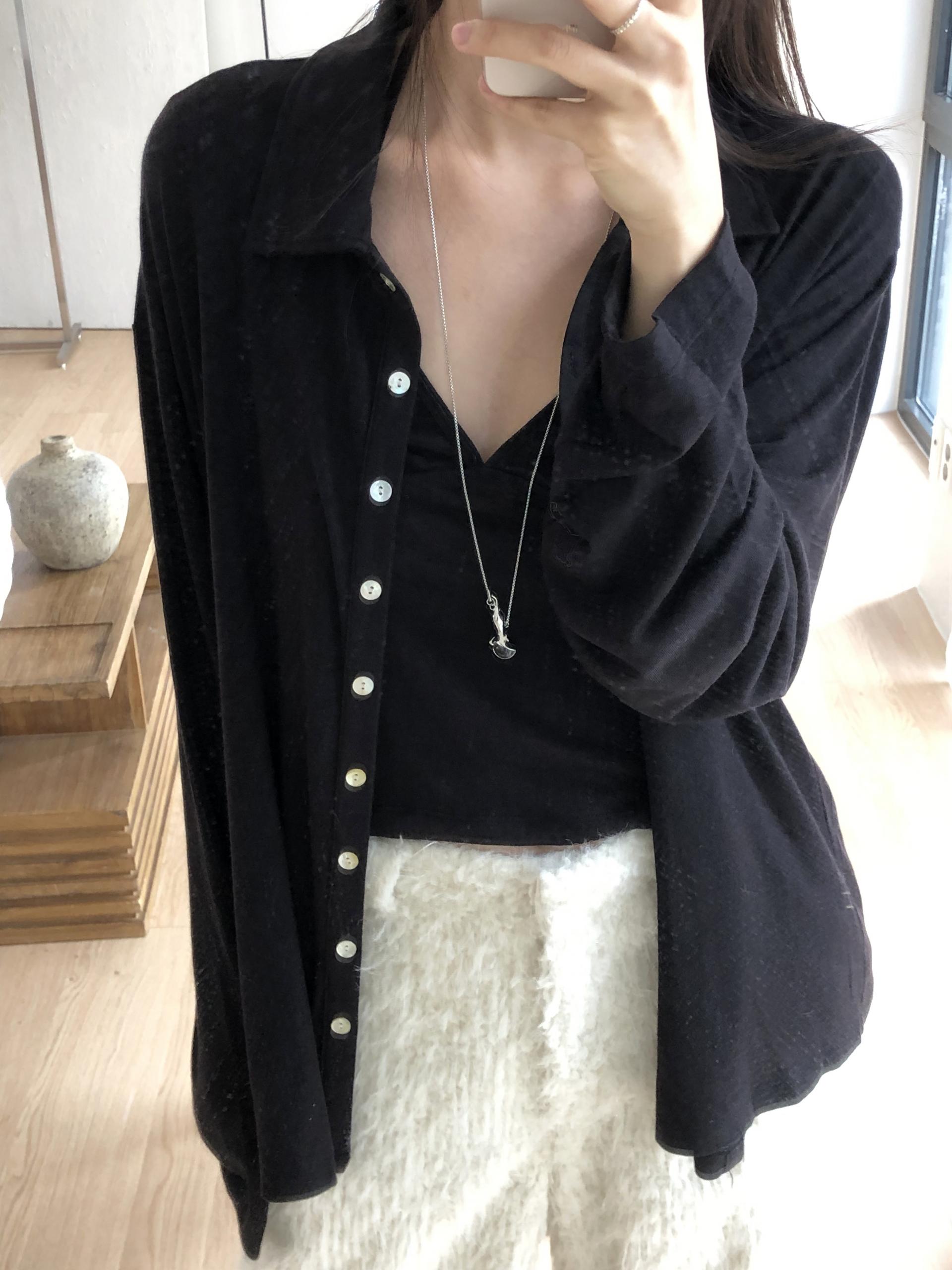 얇은 이너 티셔츠에 레이어드 탑으로 입거나, 가디건이나 니트웨어 안에 입기 좋습니다.