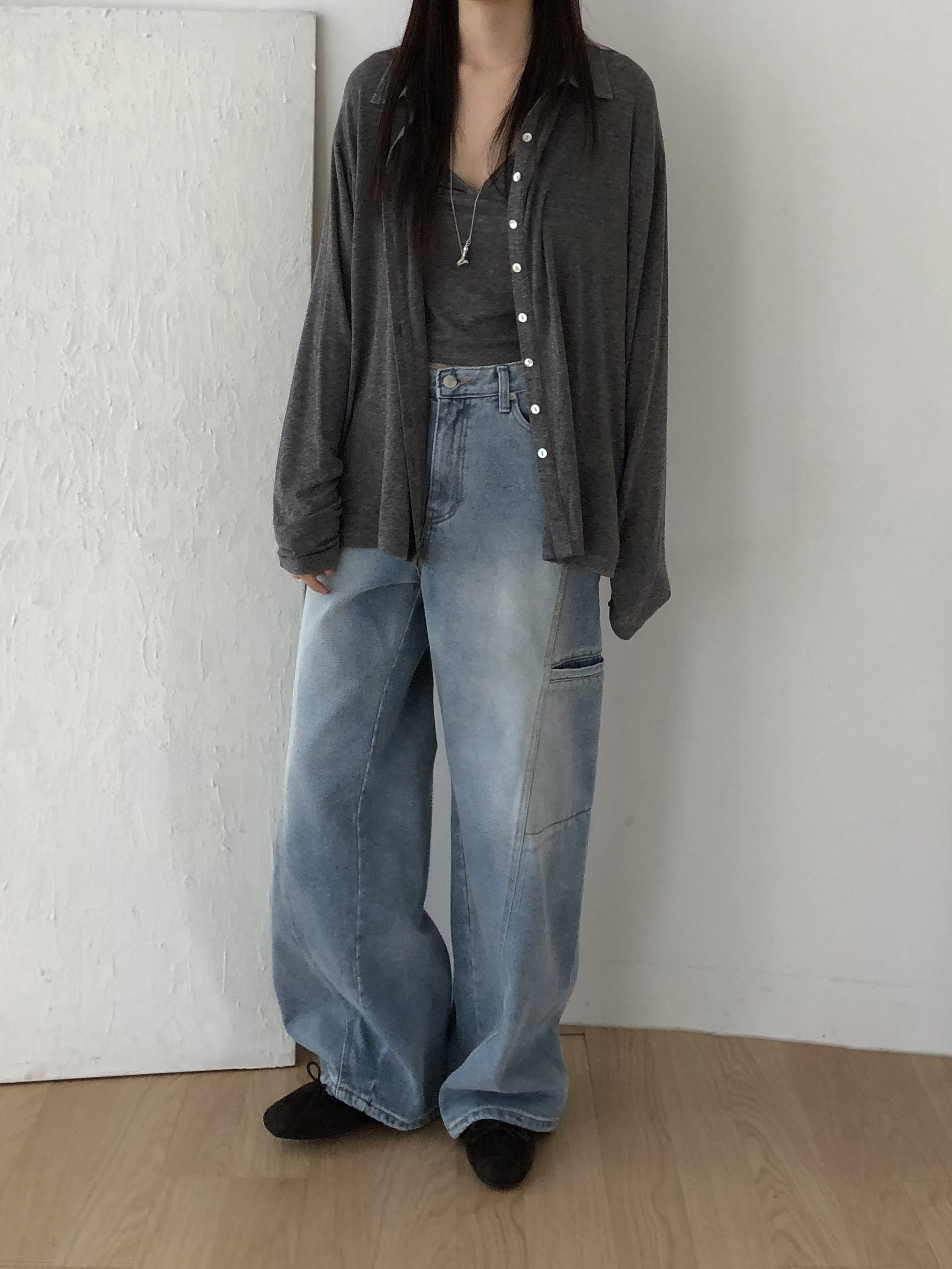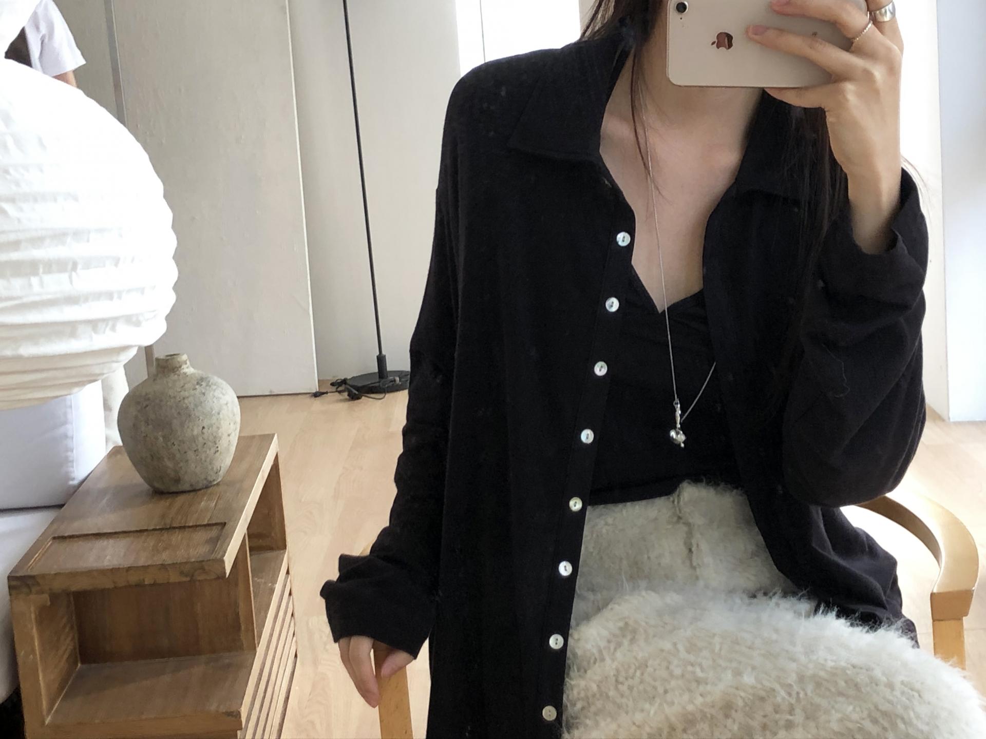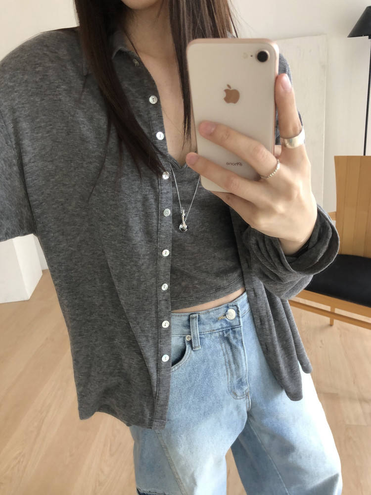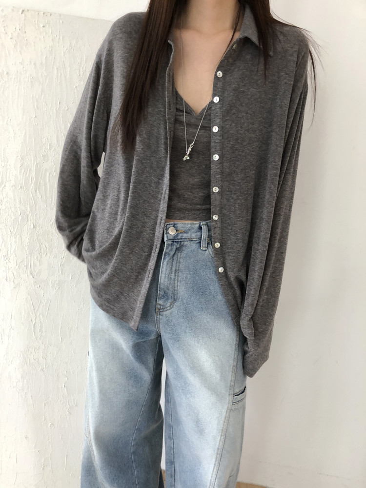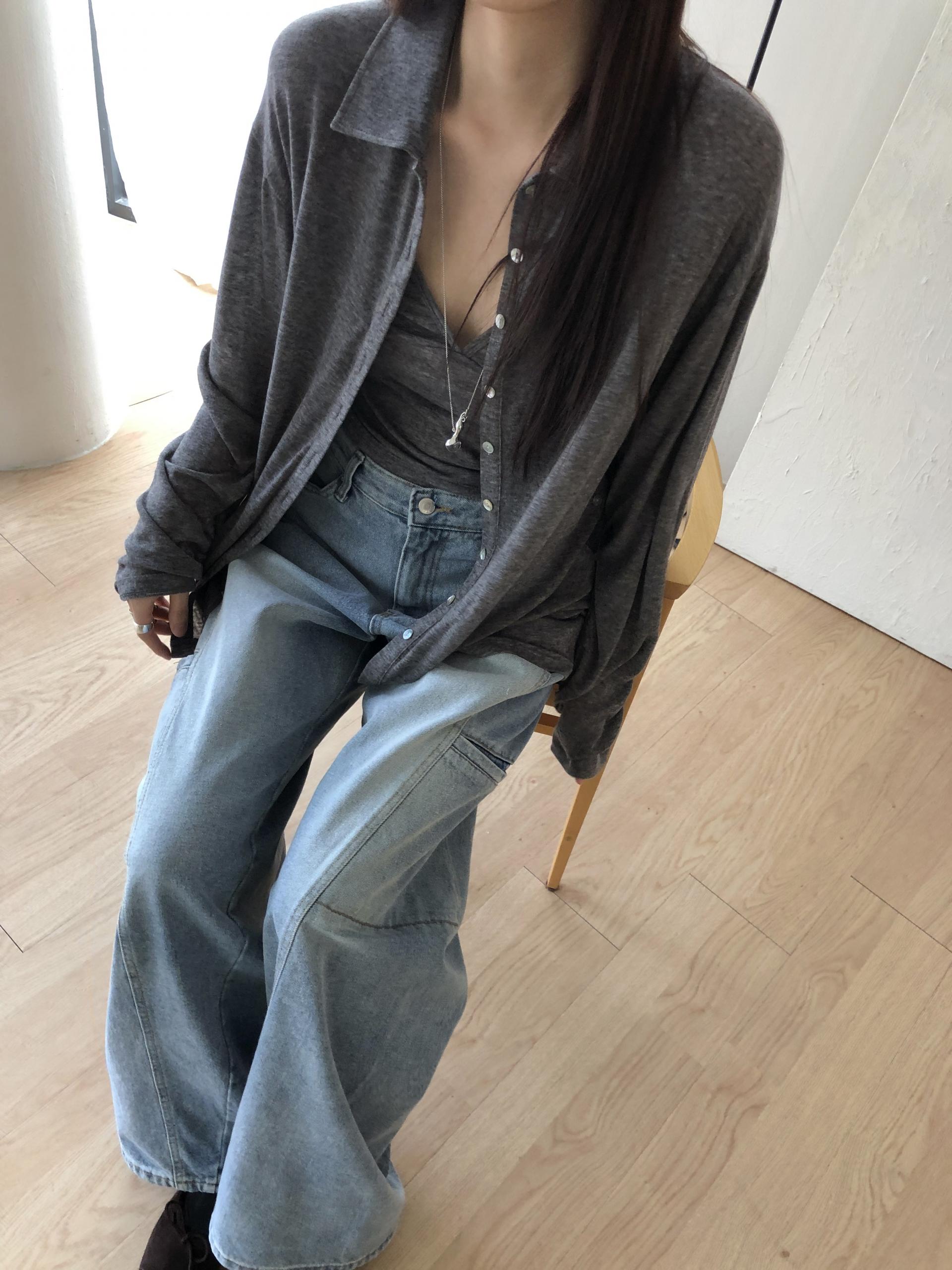 얇은 이너 티셔츠에 레이어드 탑으로 입거나, 가디건이나 니트웨어 안에 입기 좋습니다.