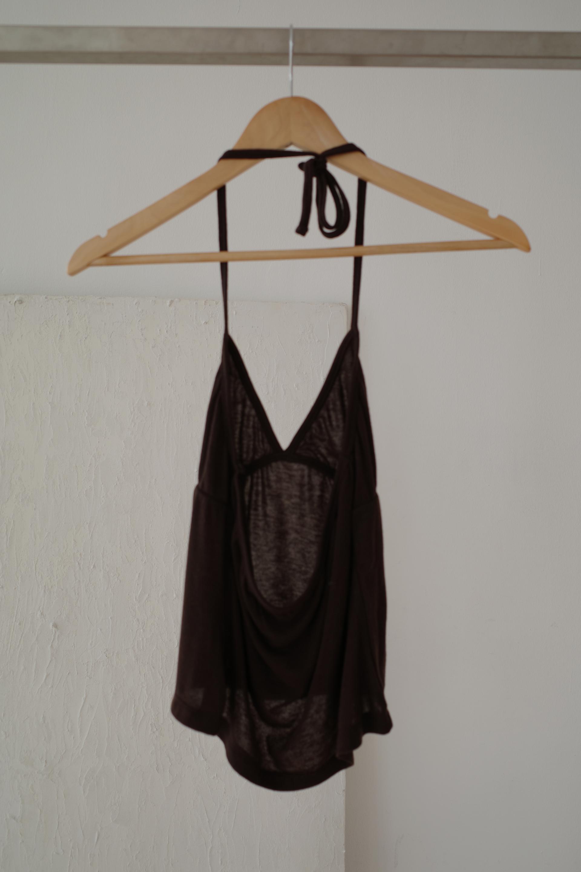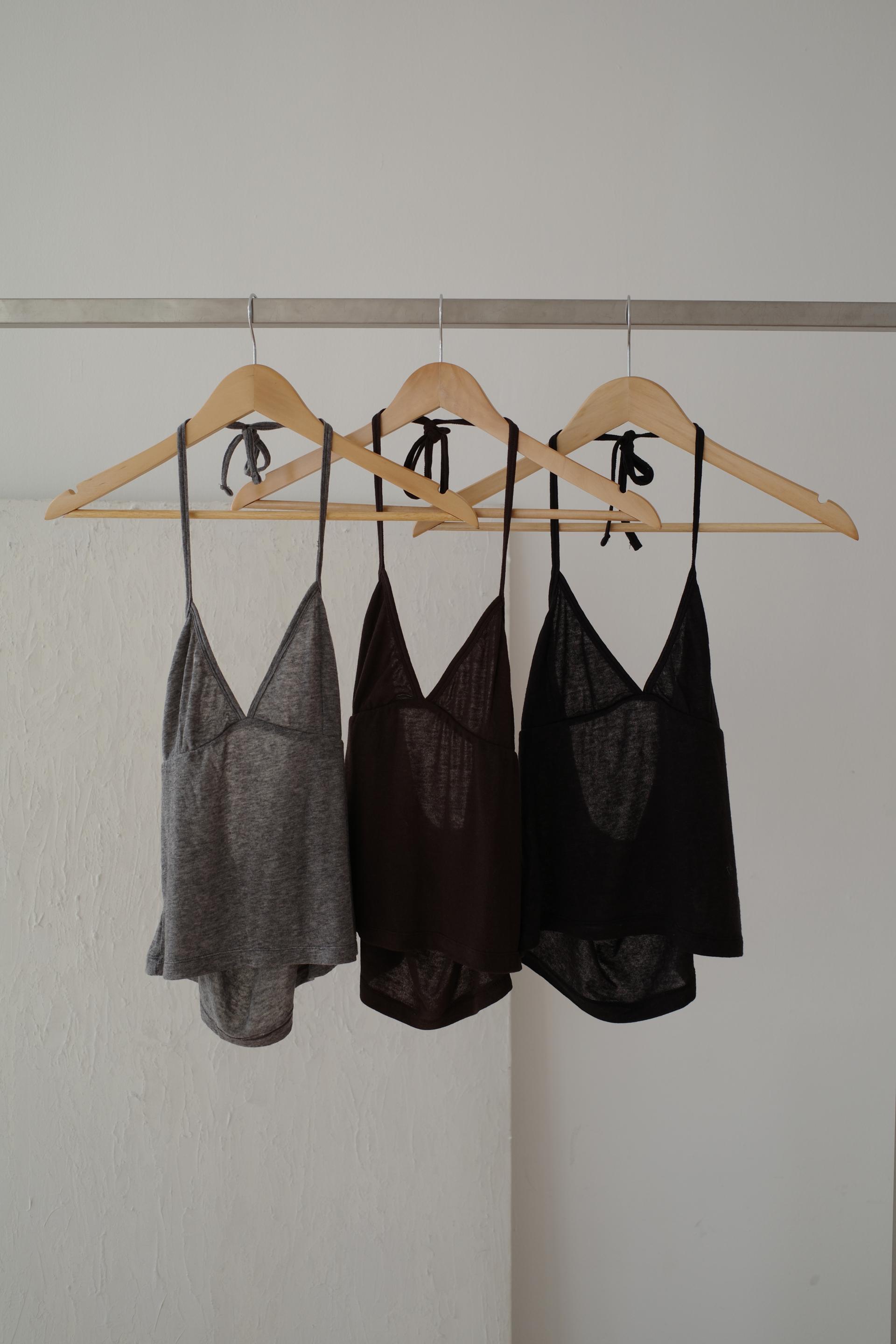 홀터 디자인으로 레이어드 스타일링에 활용하기 좋은 탑입니다.