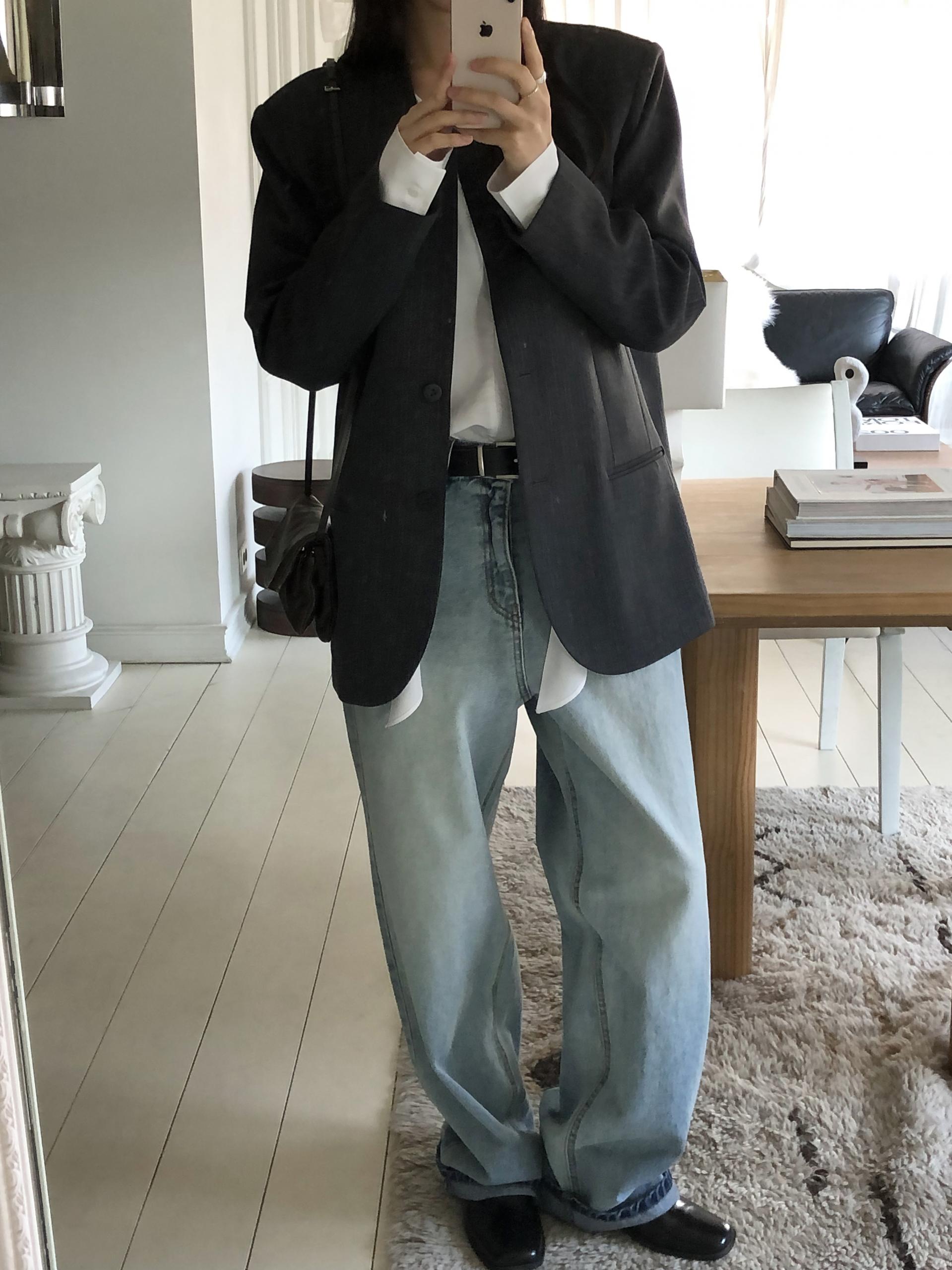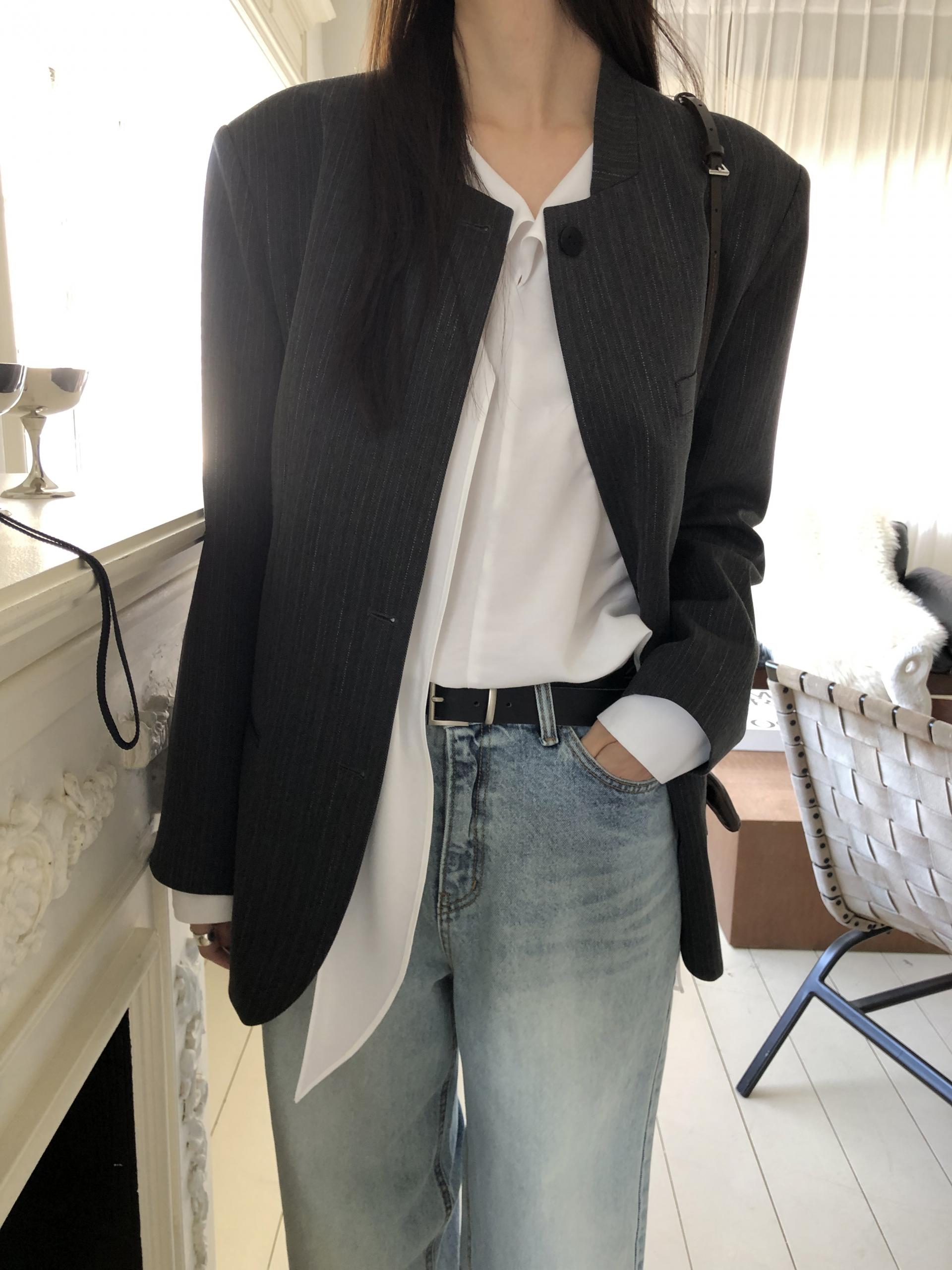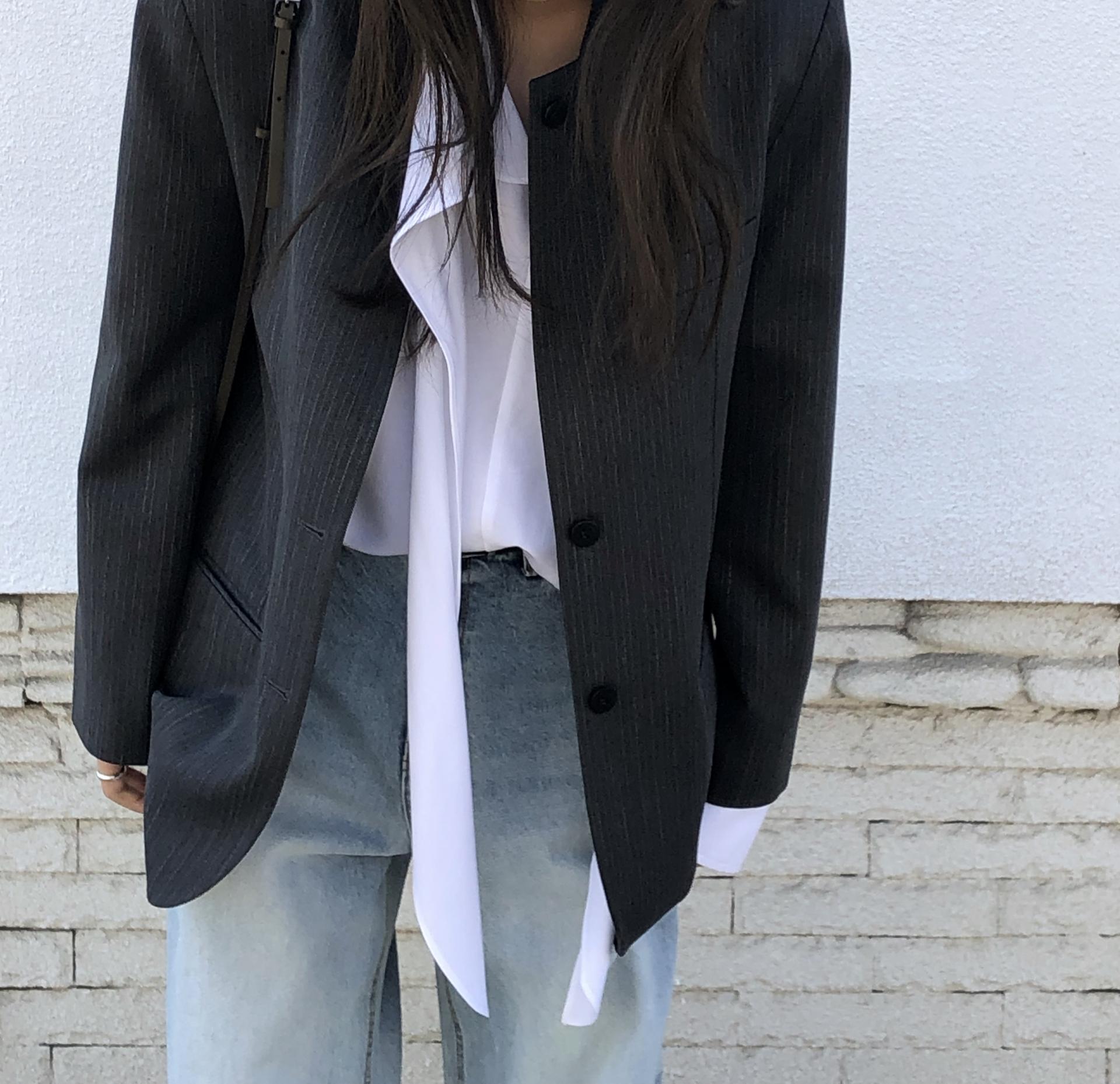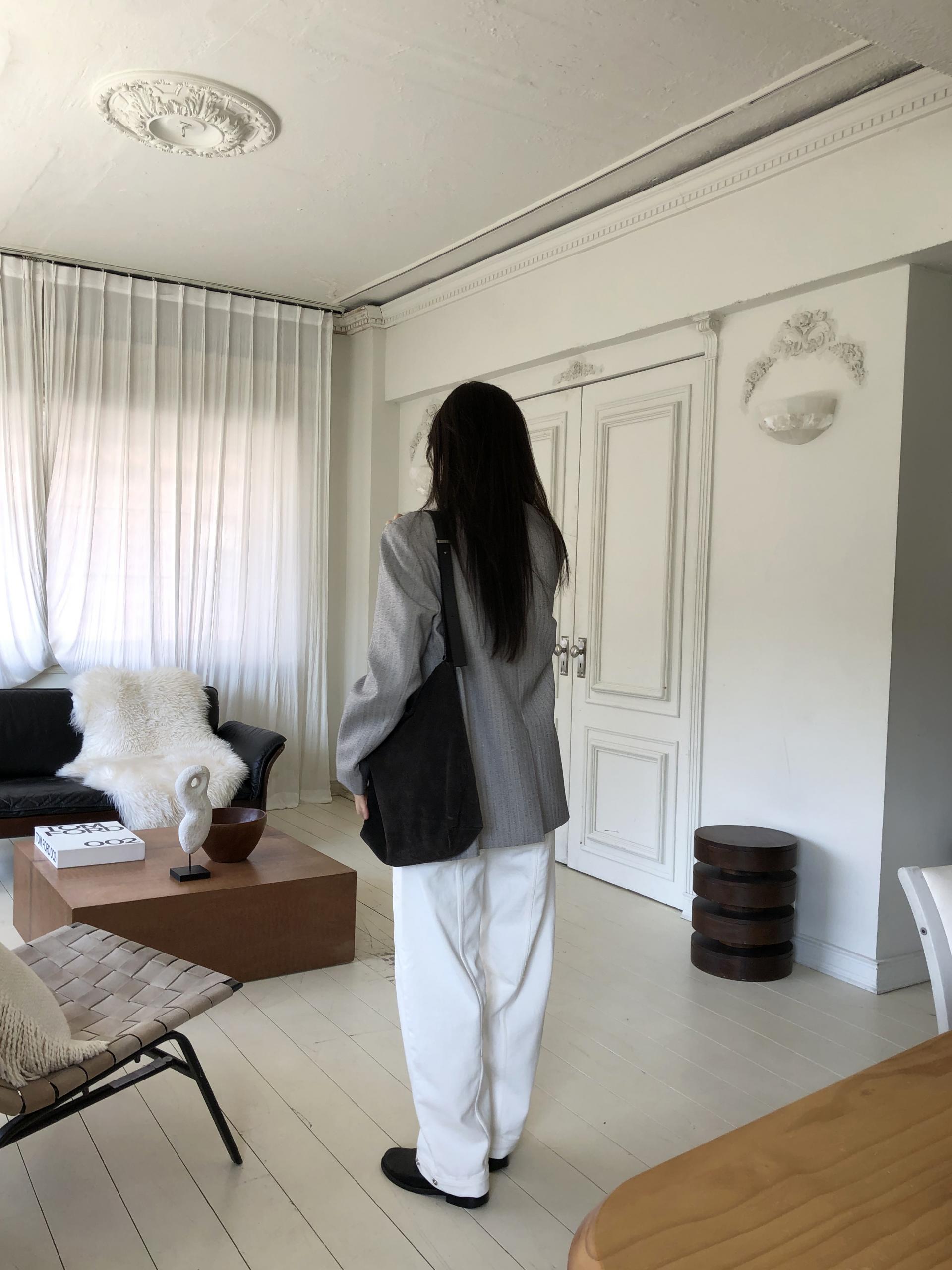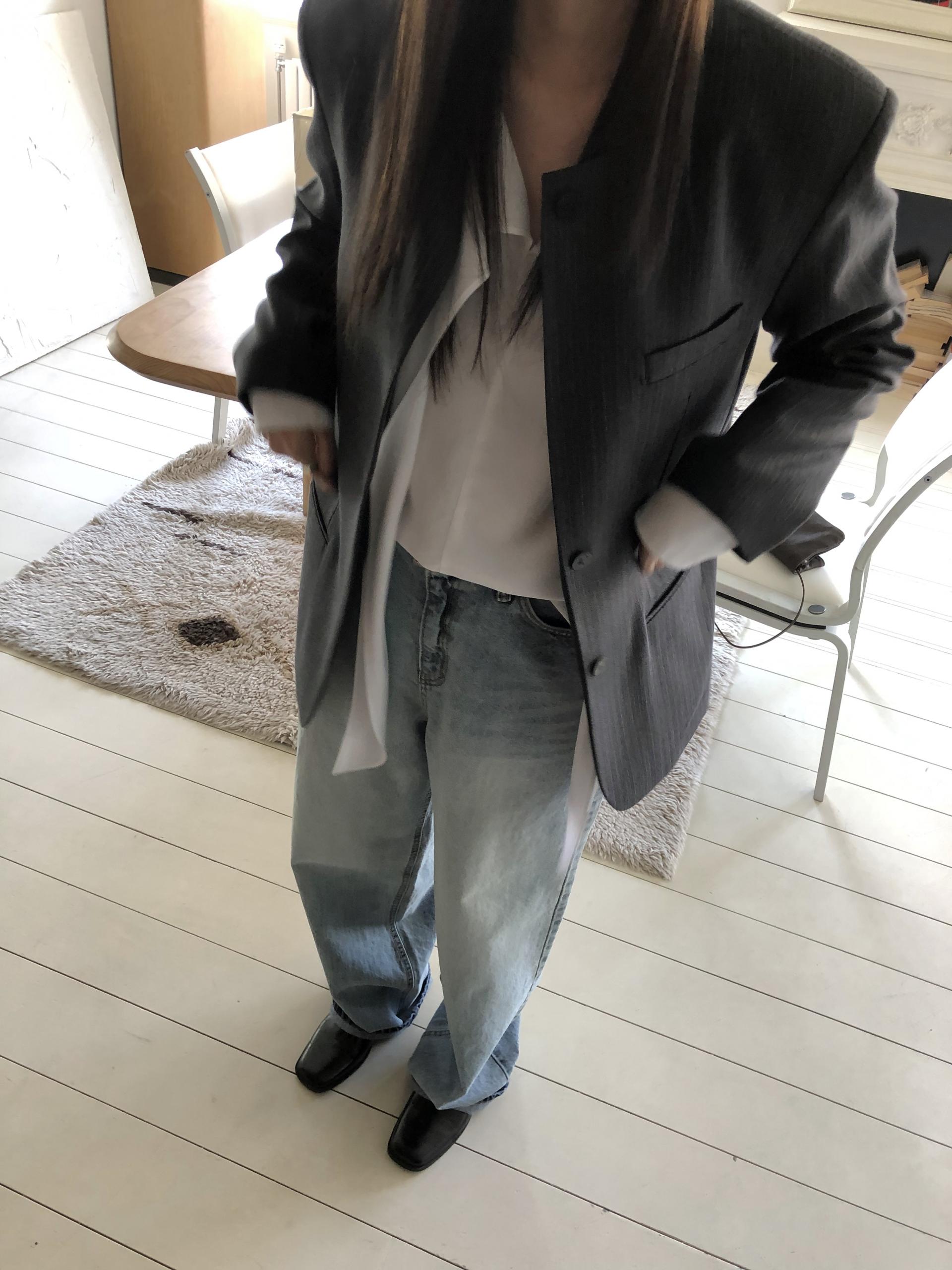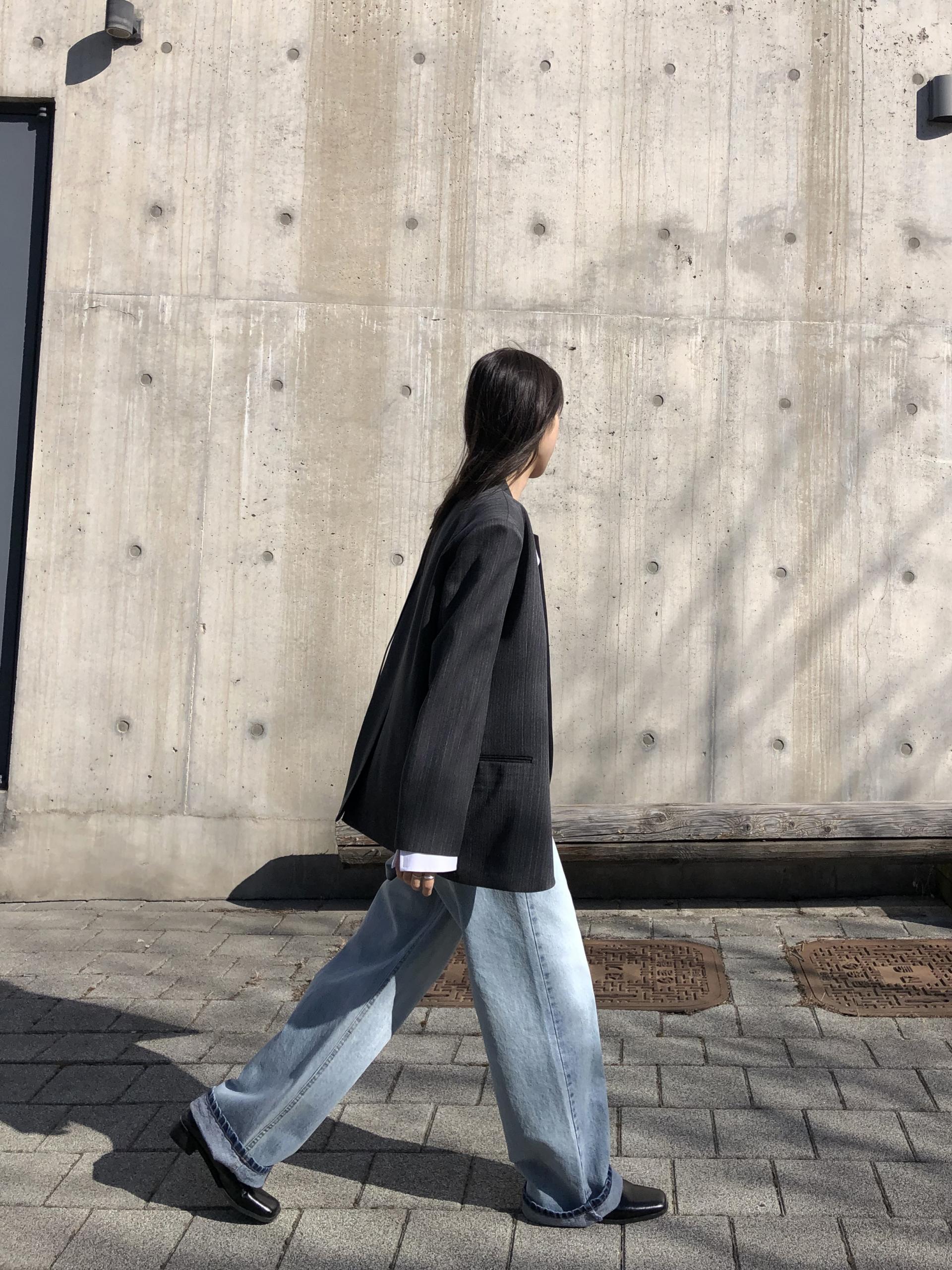 미니멀한 페퍼 자켓의 매력이 잘 드러나는 차콜은 웨어러블하게 스타일링이 가능해 가장 추천드립니다. 트위드 자켓같이 산뜻하고 은은한 매력의 라이트 그레이는 특히나 봄과 잘 어울리는 컬러예요.