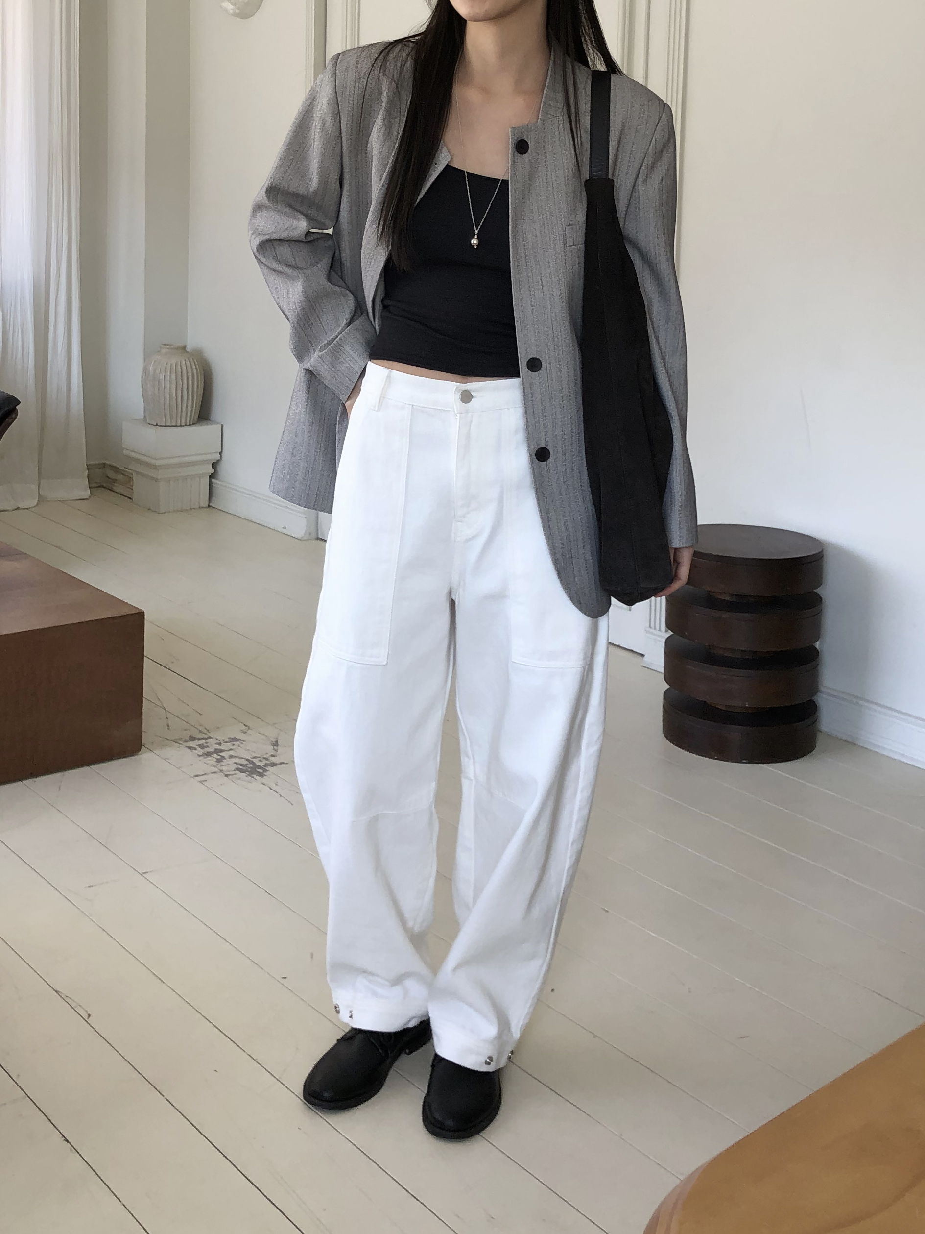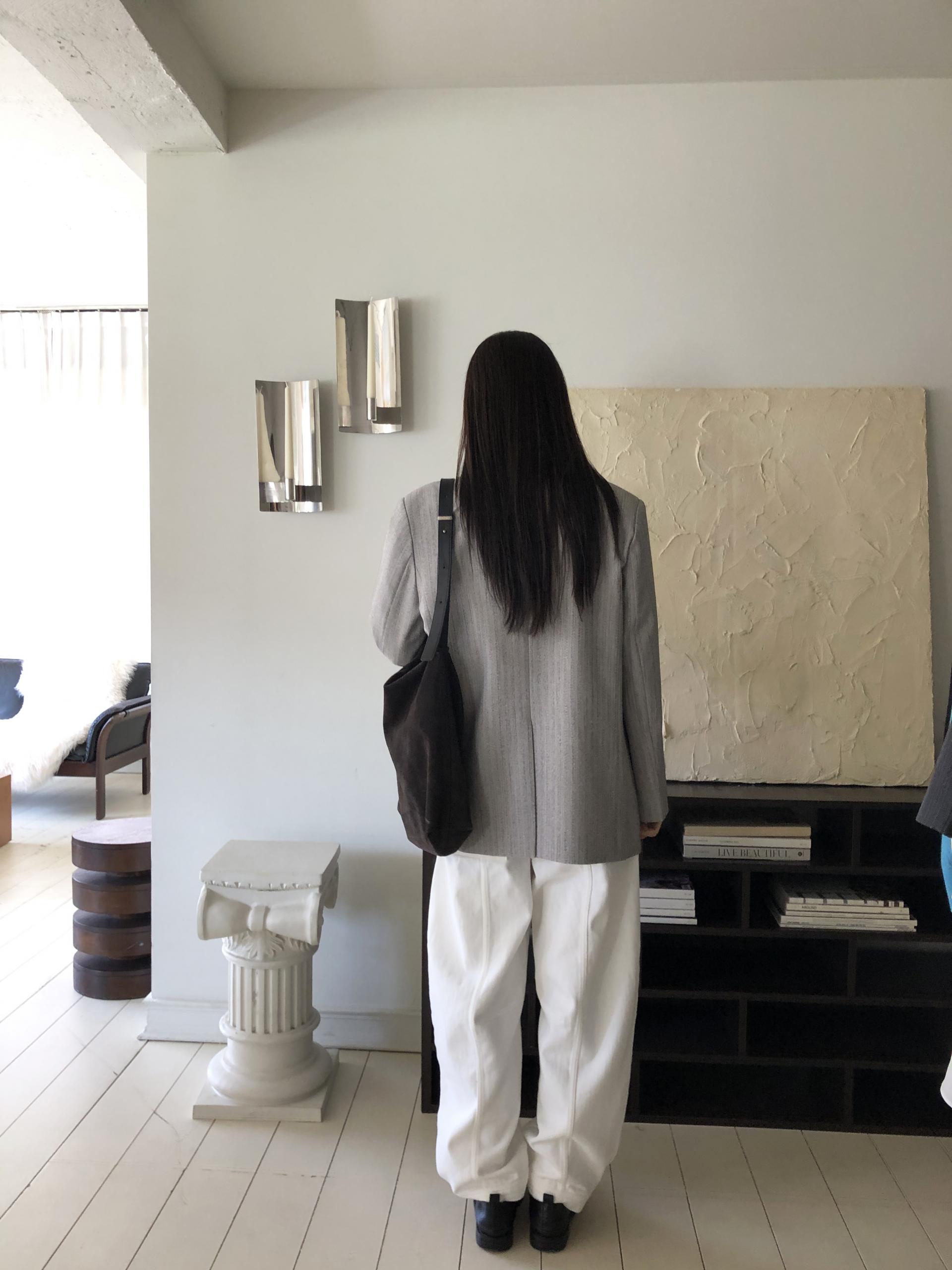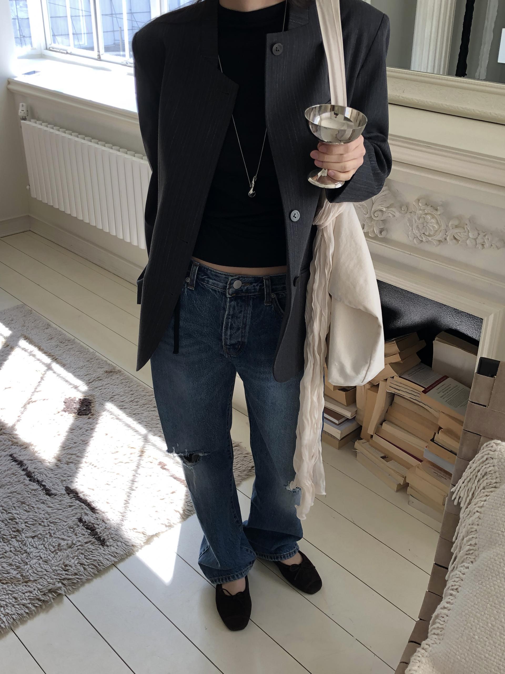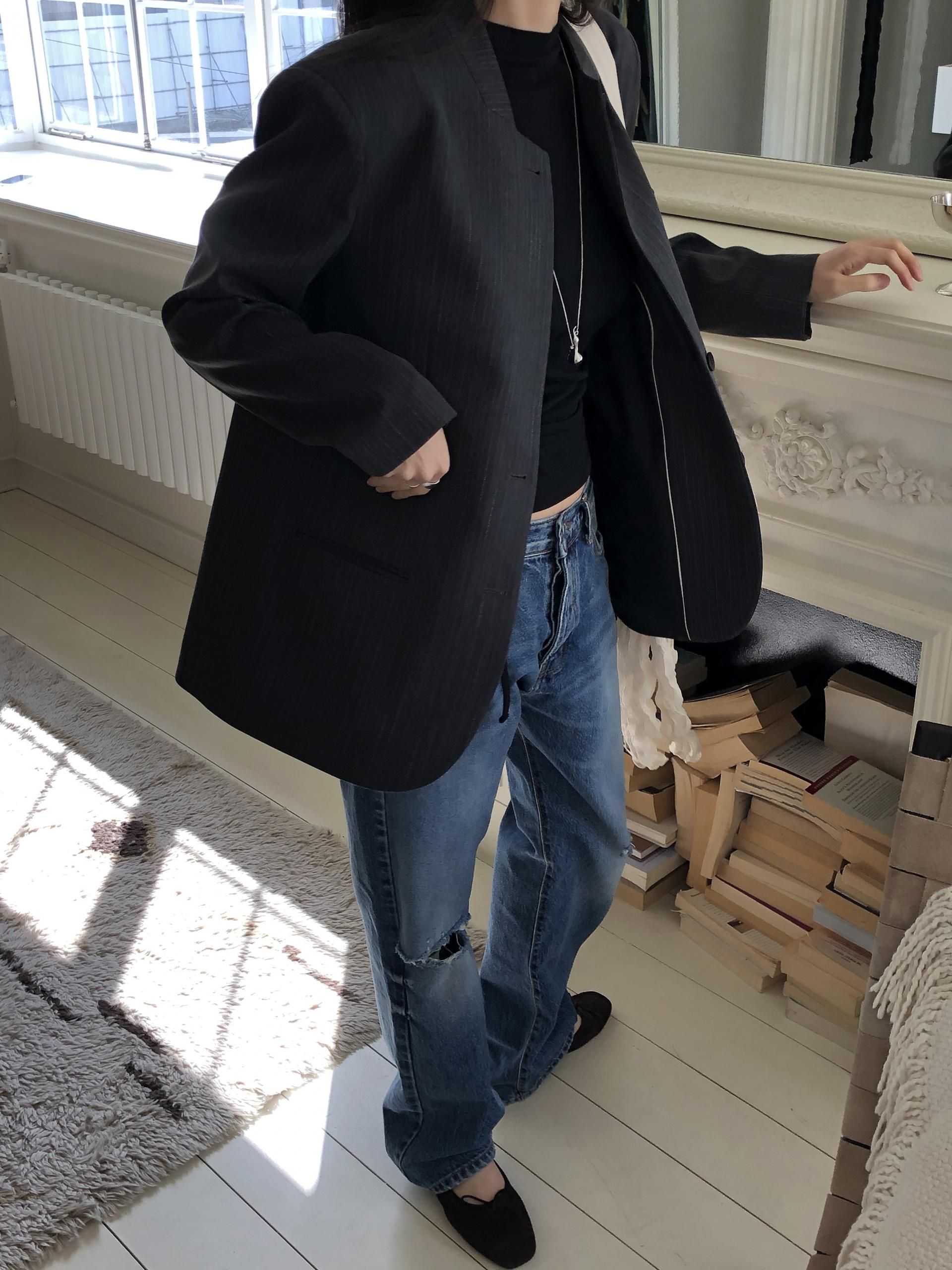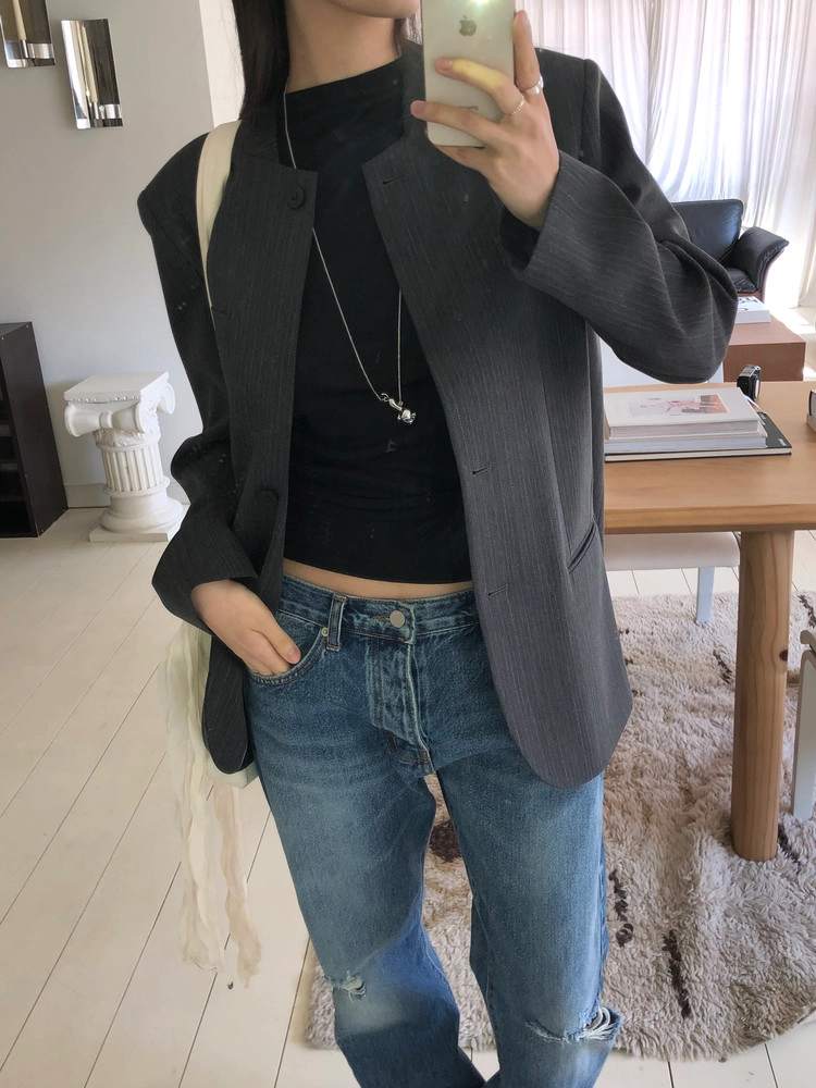 미니멀한 페퍼 자켓의 매력이 잘 드러나는 차콜은 웨어러블하게 스타일링이 가능해 가장 추천드립니다. 트위드 자켓같이 산뜻하고 은은한 매력의 라이트 그레이는 특히나 봄과 잘 어울리는 컬러예요.