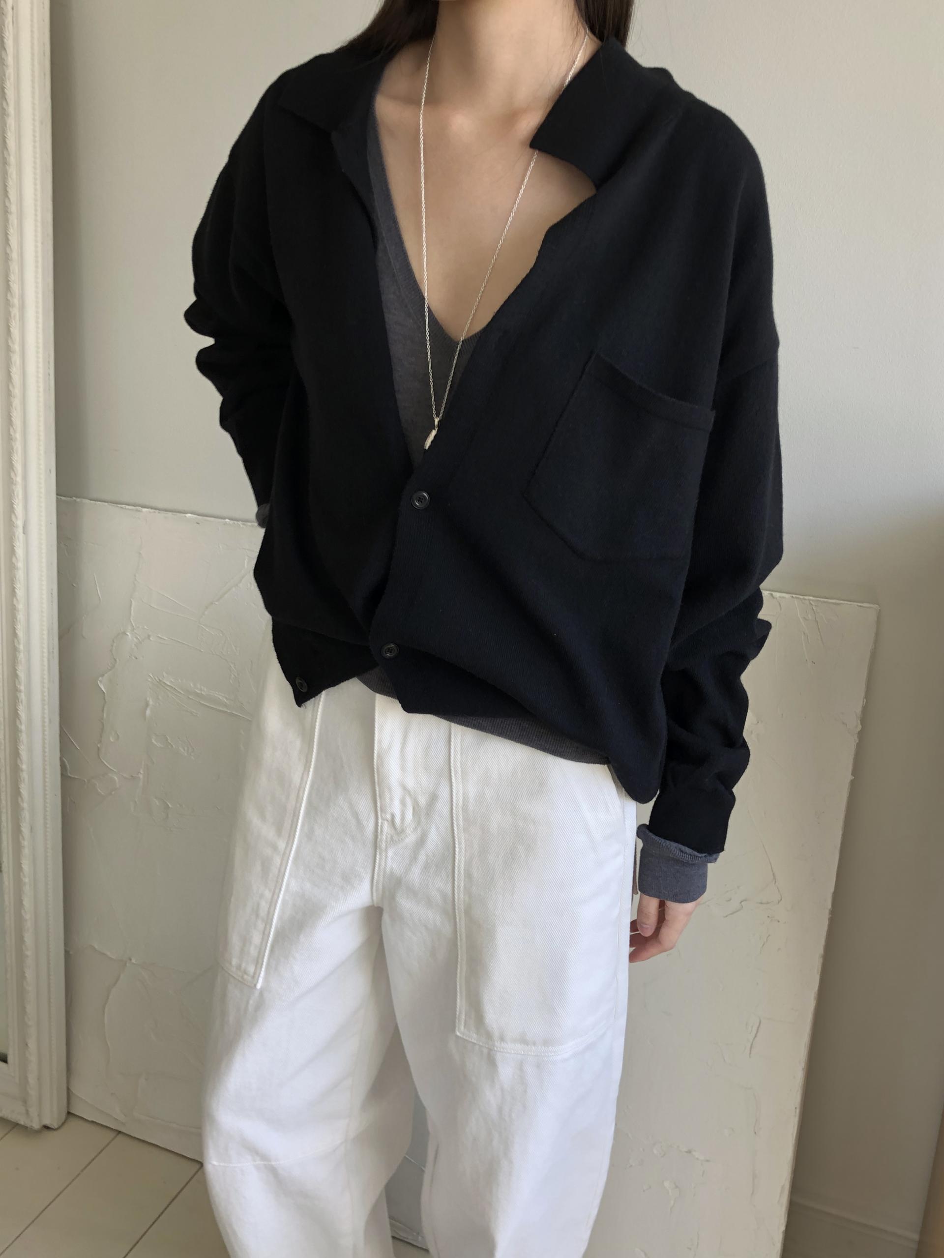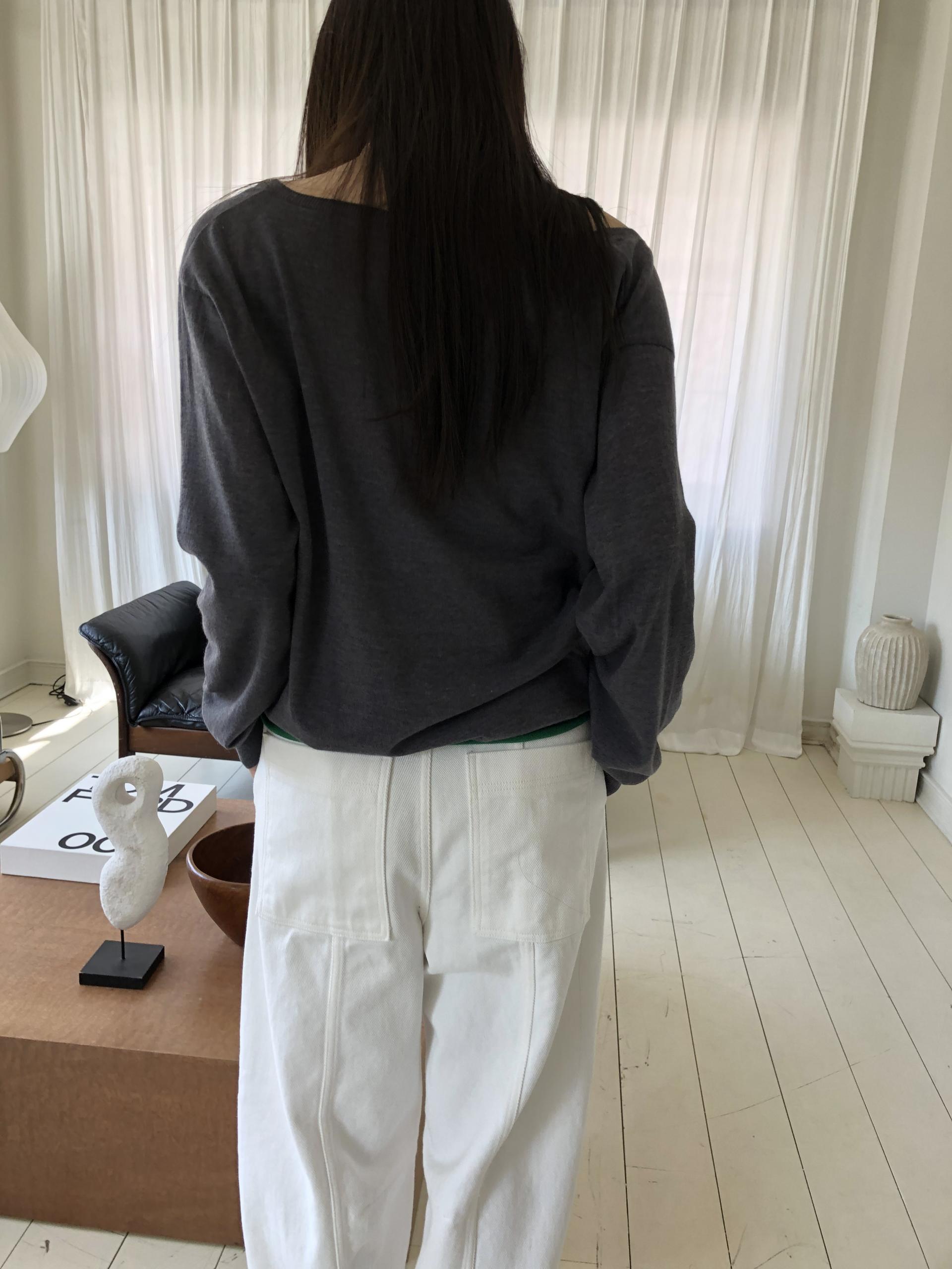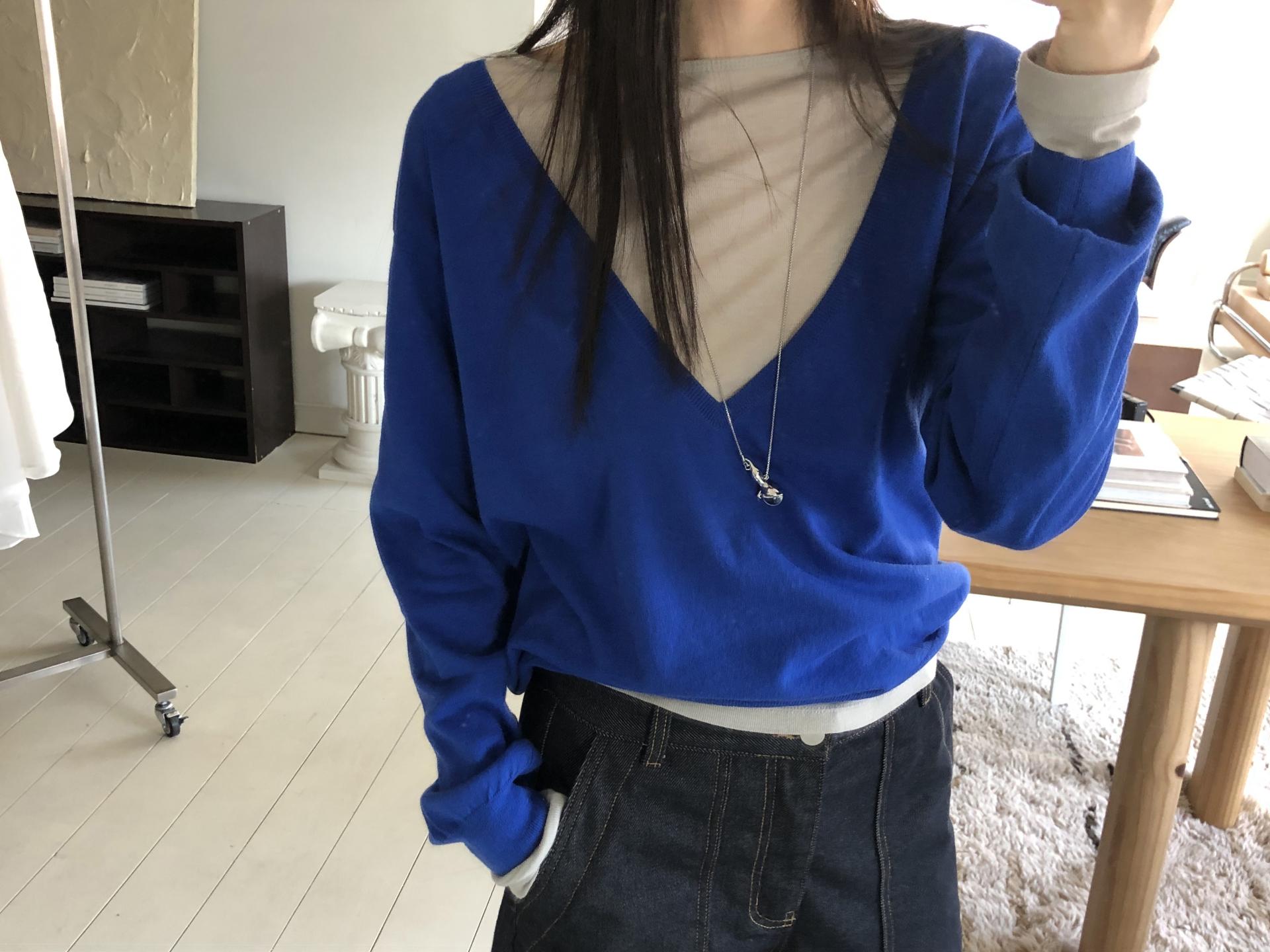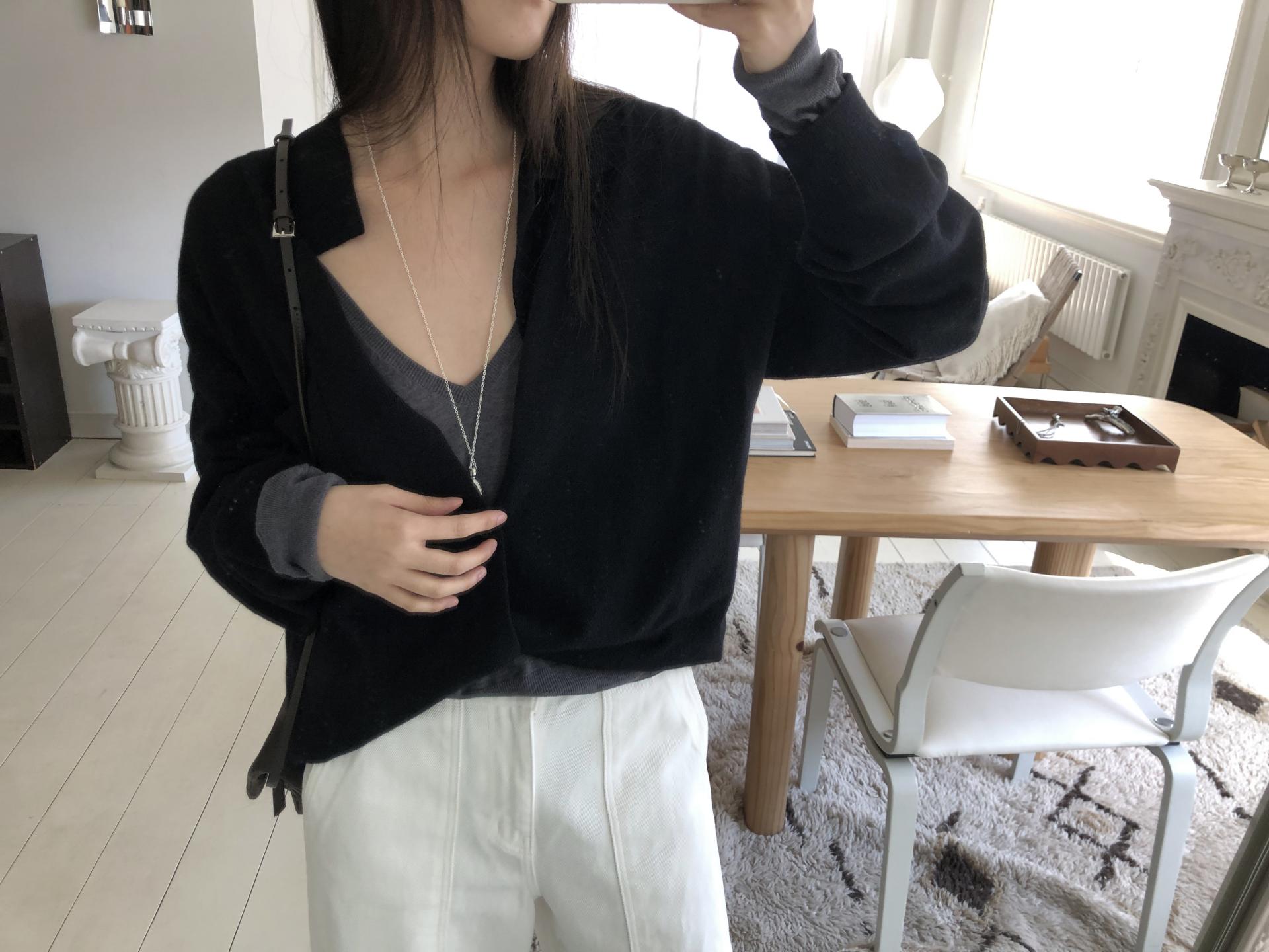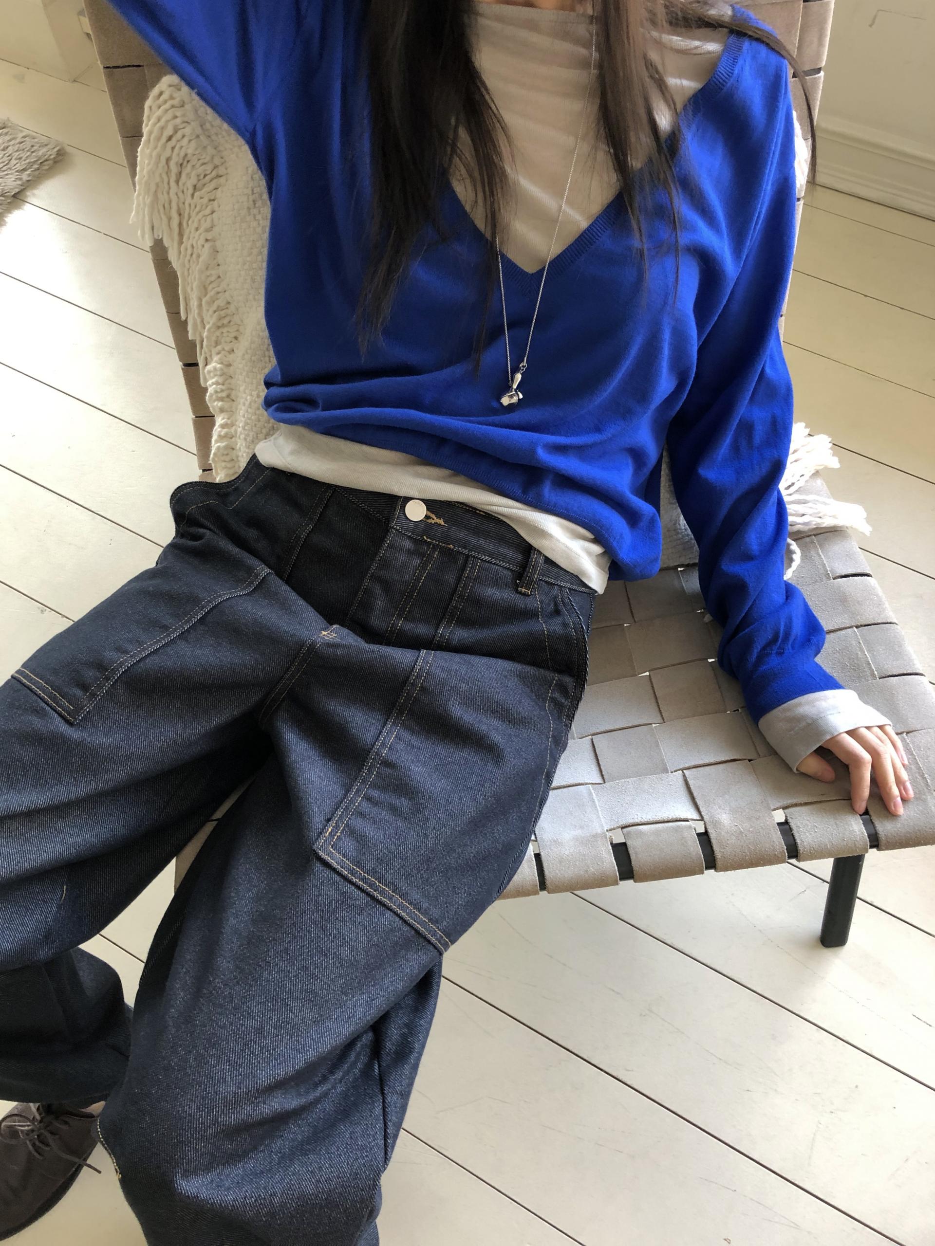 깊은 네크라인과 텁텁하지 않게 착용되는 얇은 두께감. 봄 시즌 브이넥 니트를 고르며 가장 중요하게 생각했던 두가지를 모두 담아낸 아이템입니다.