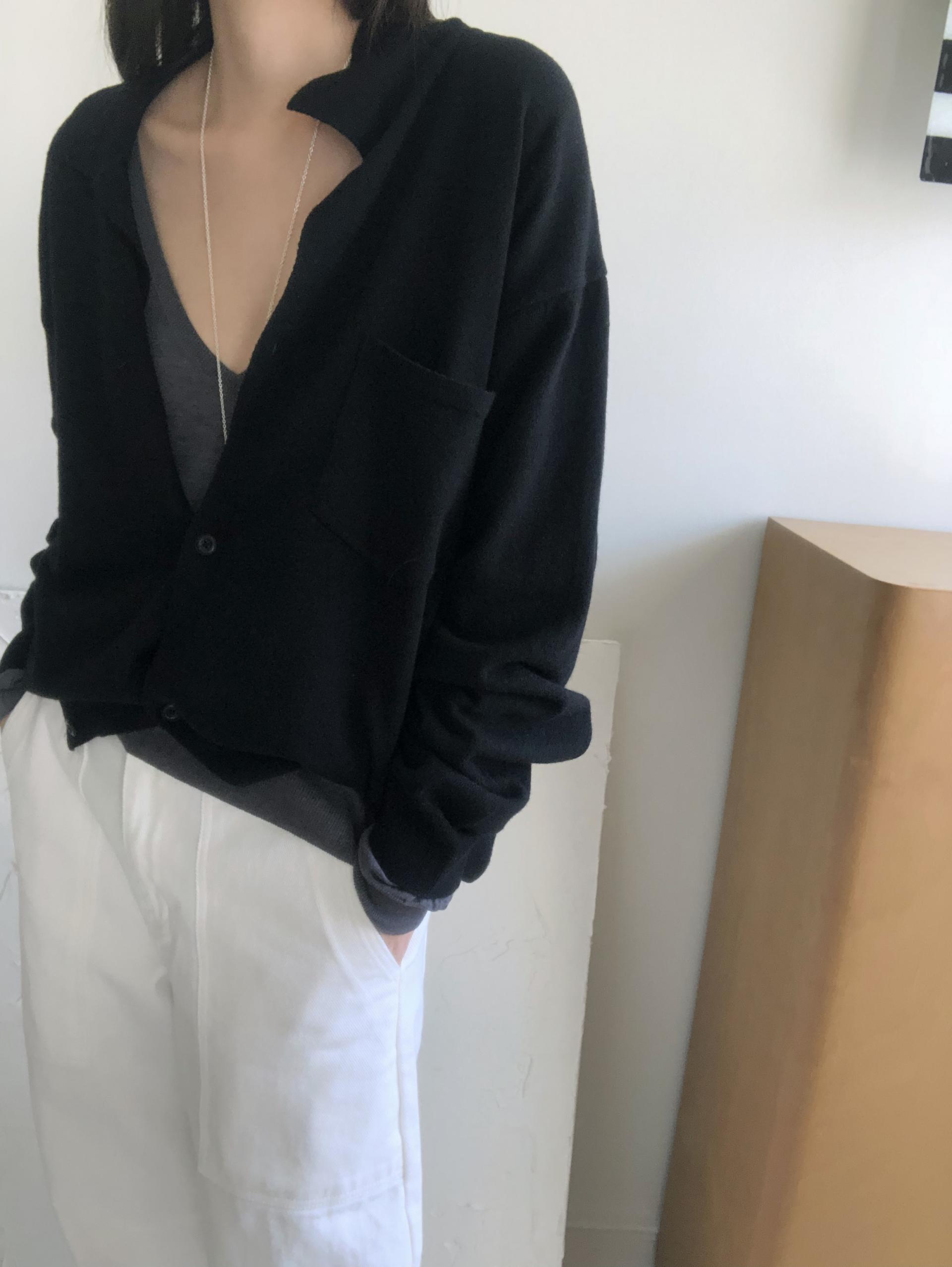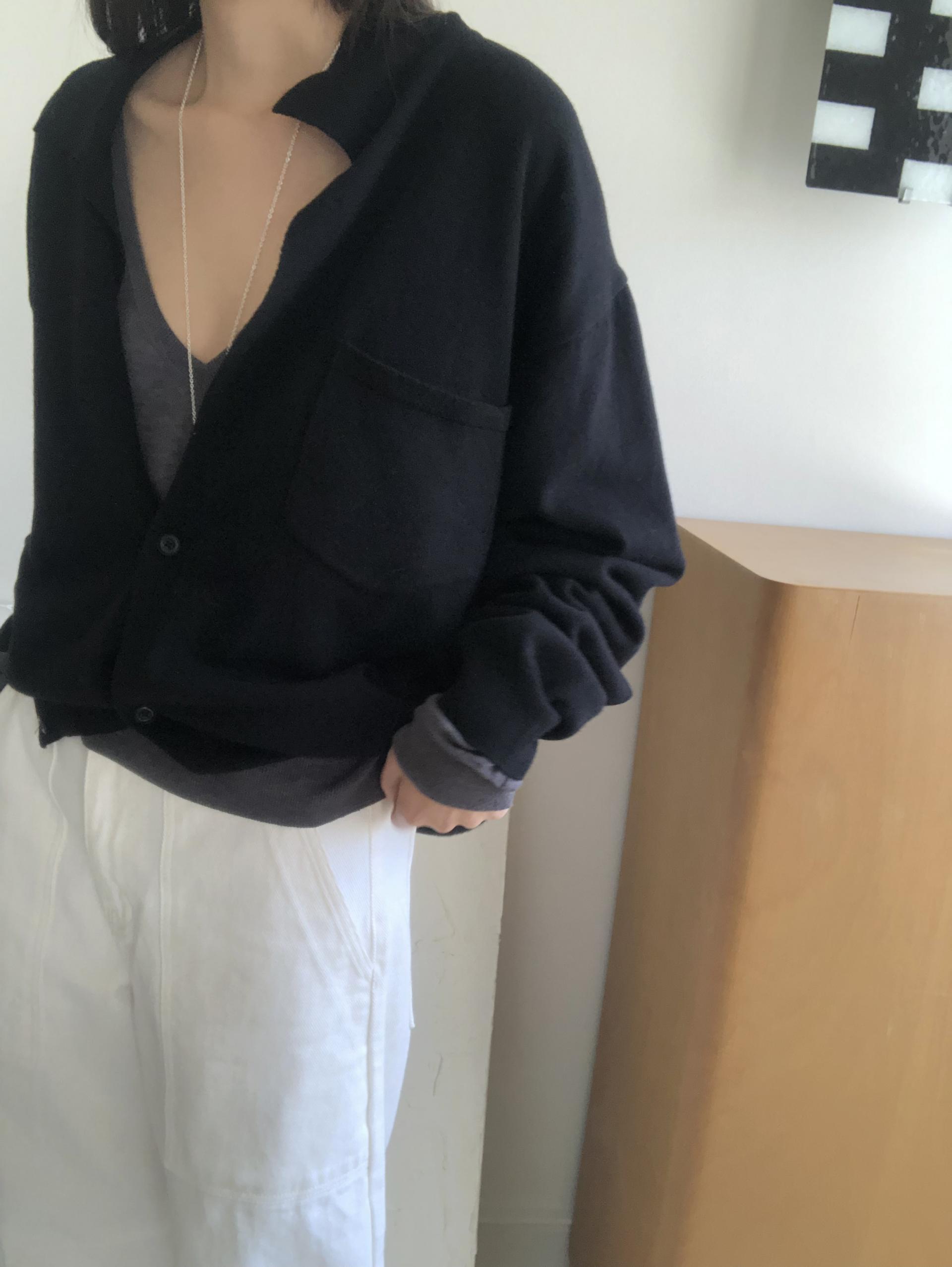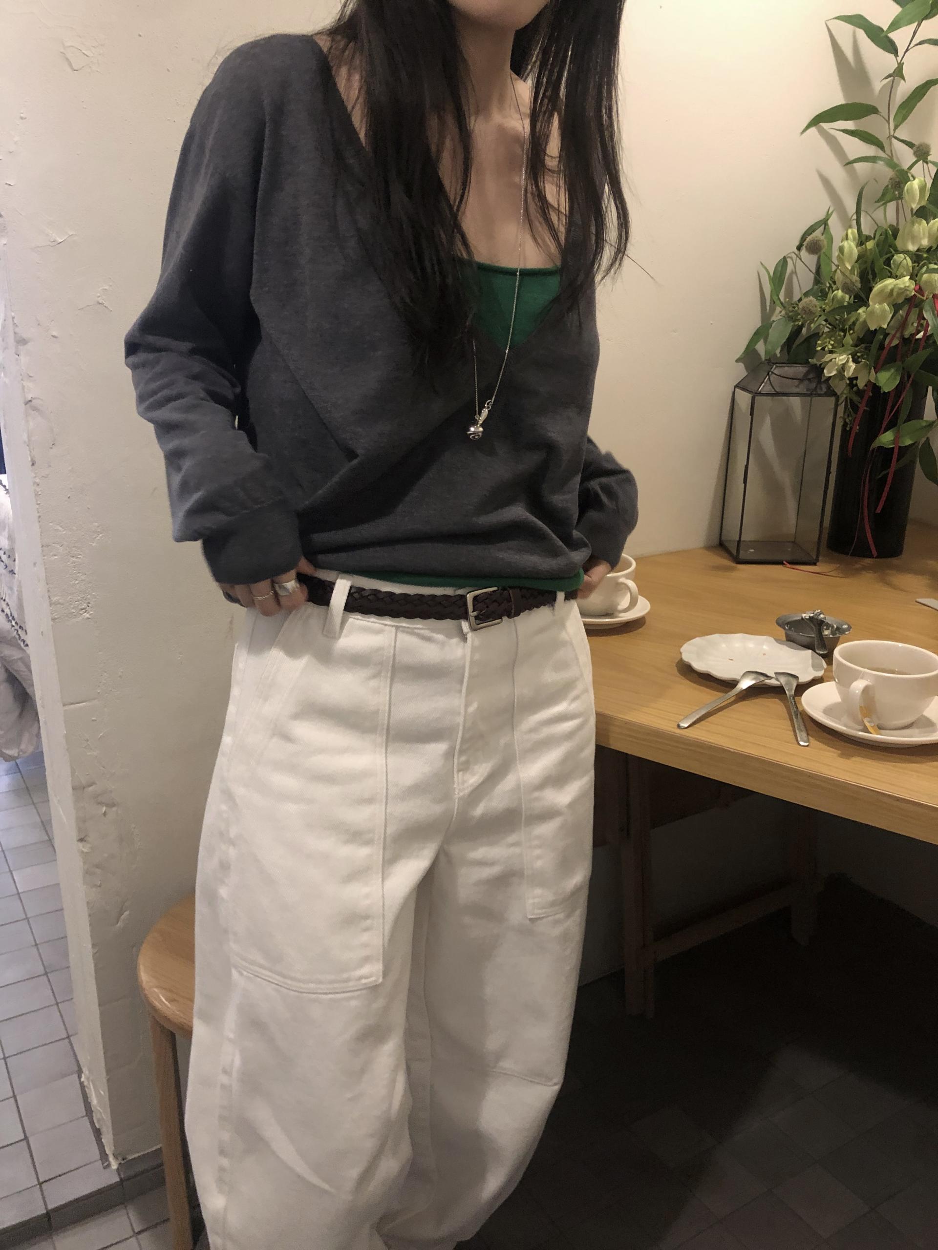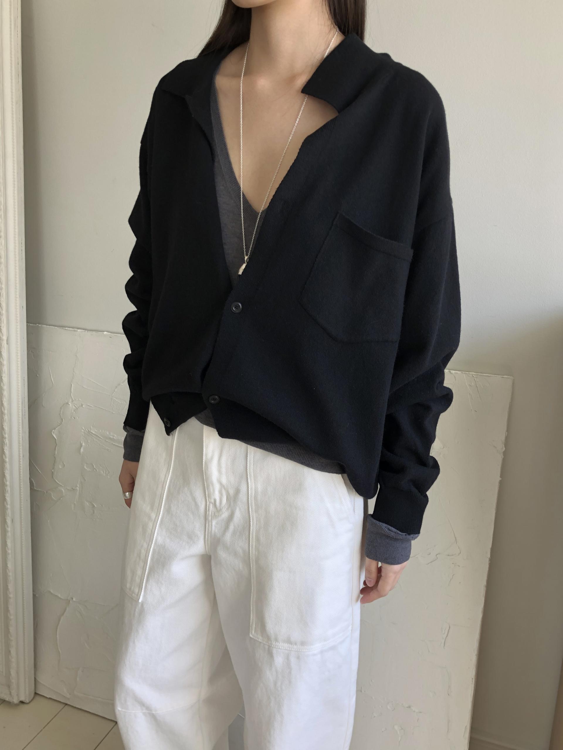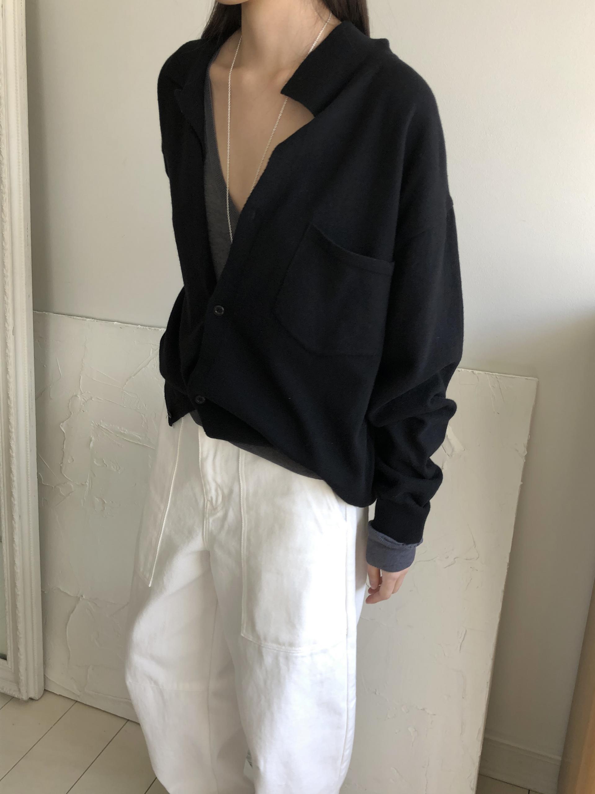 깊은 네크라인과 텁텁하지 않게 착용되는 얇은 두께감. 봄 시즌 브이넥 니트를 고르며 가장 중요하게 생각했던 두가지를 모두 담아낸 아이템입니다.
