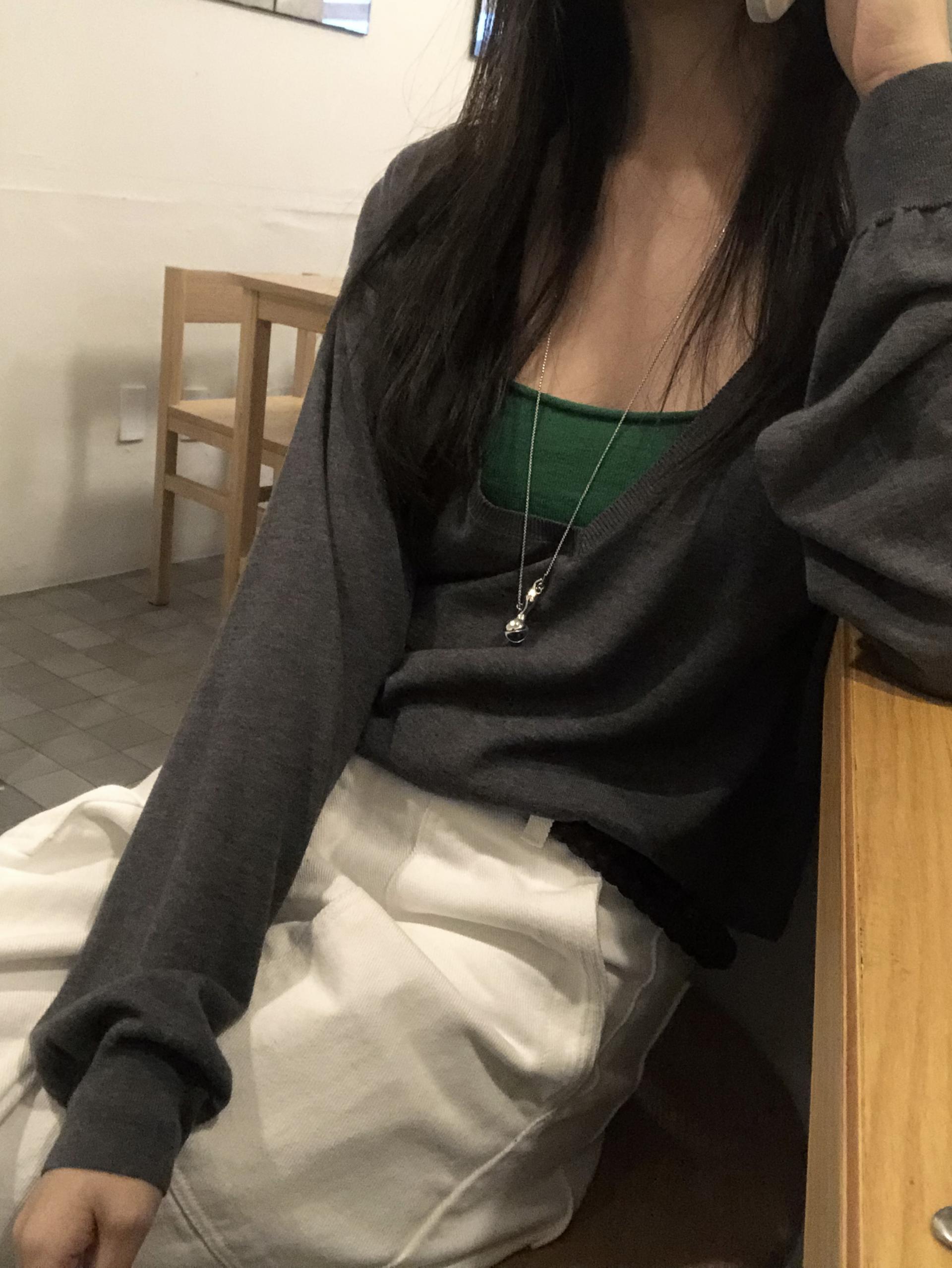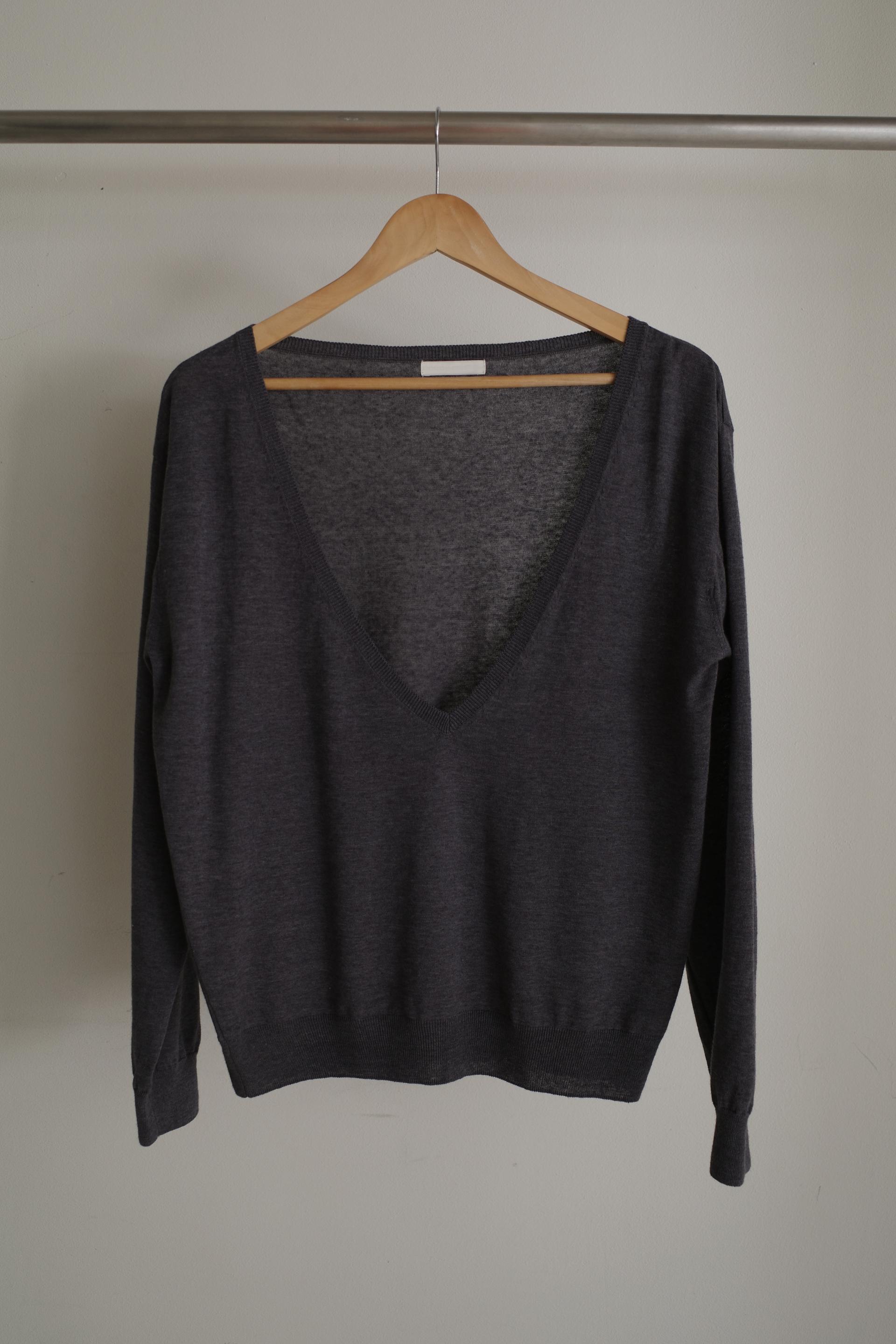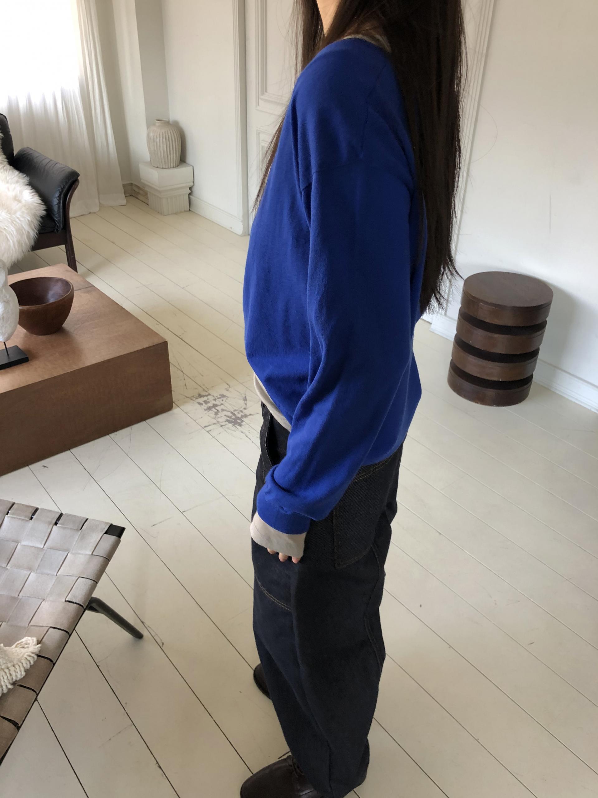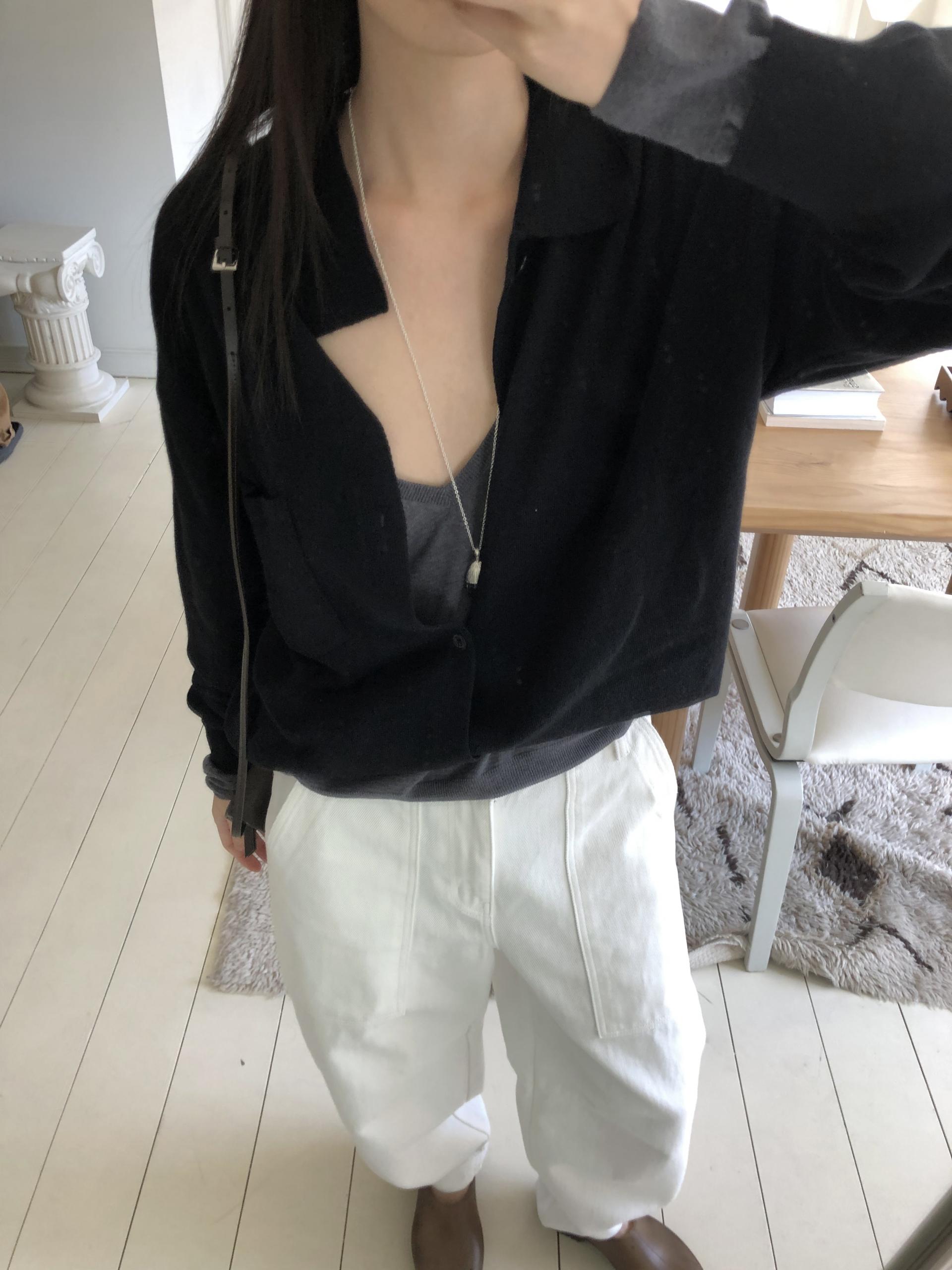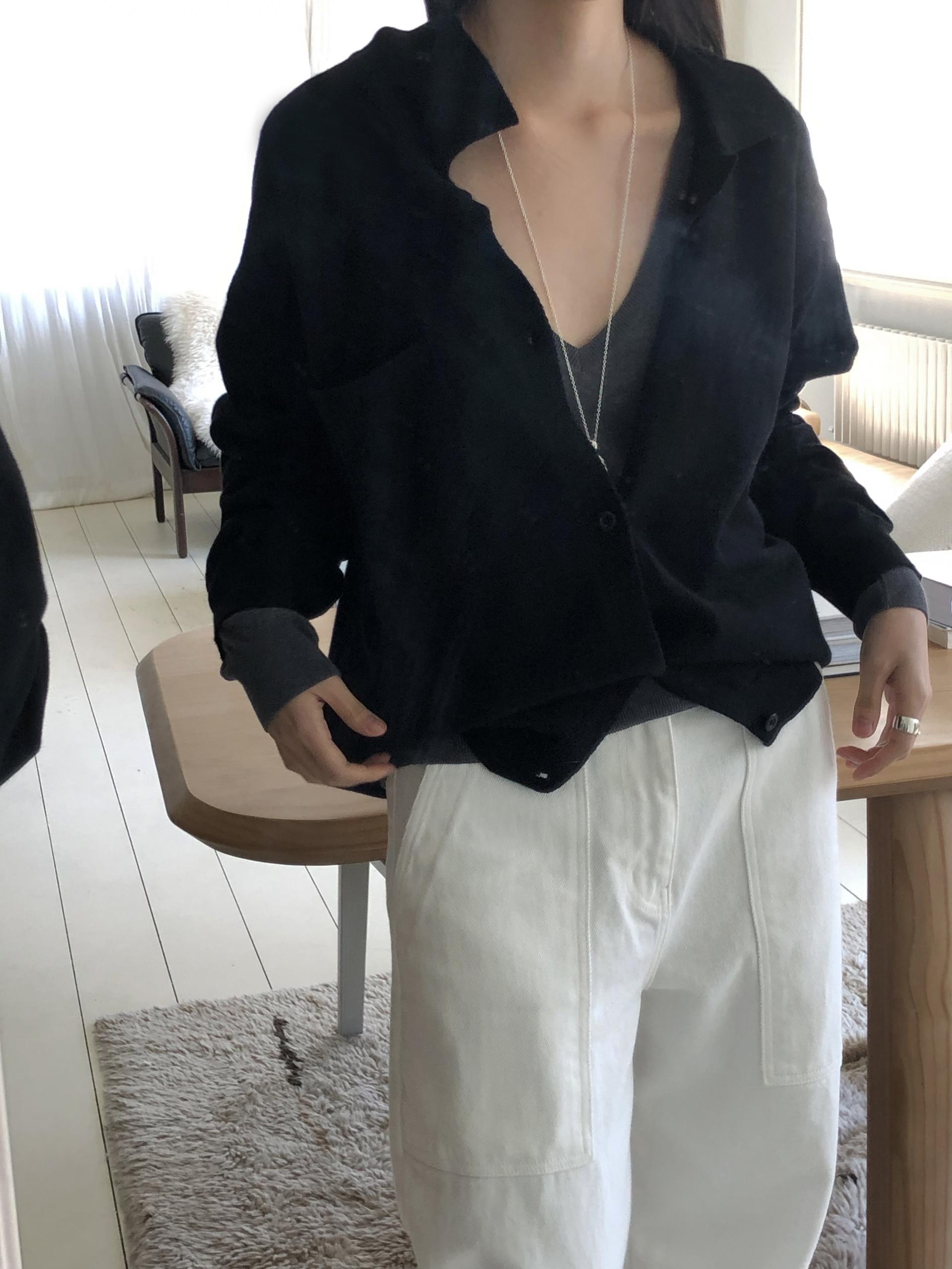 깊은 네크라인과 텁텁하지 않게 착용되는 얇은 두께감. 봄 시즌 브이넥 니트를 고르며 가장 중요하게 생각했던 두가지를 모두 담아낸 아이템입니다.