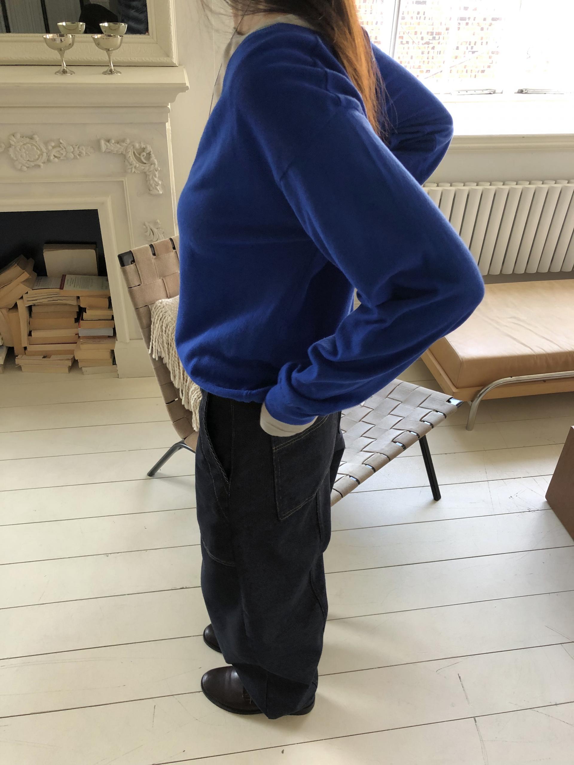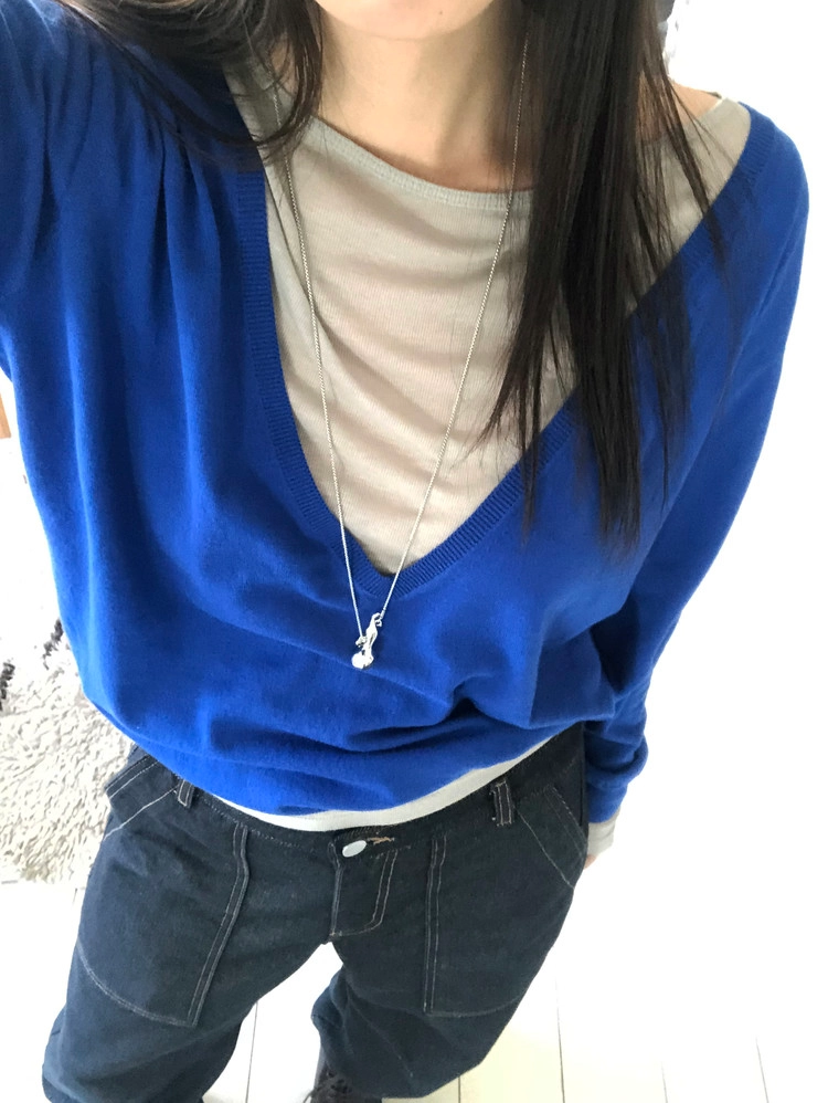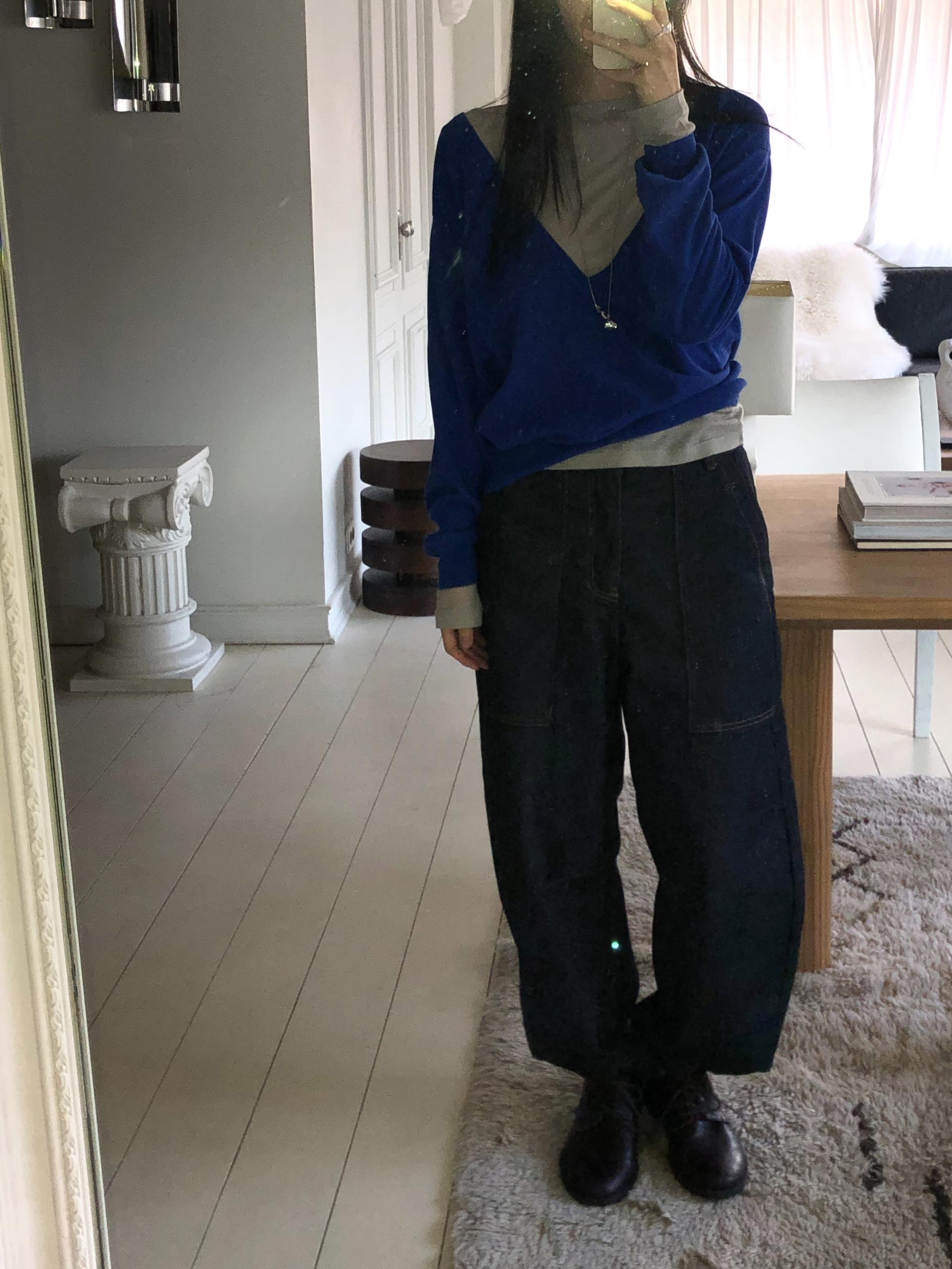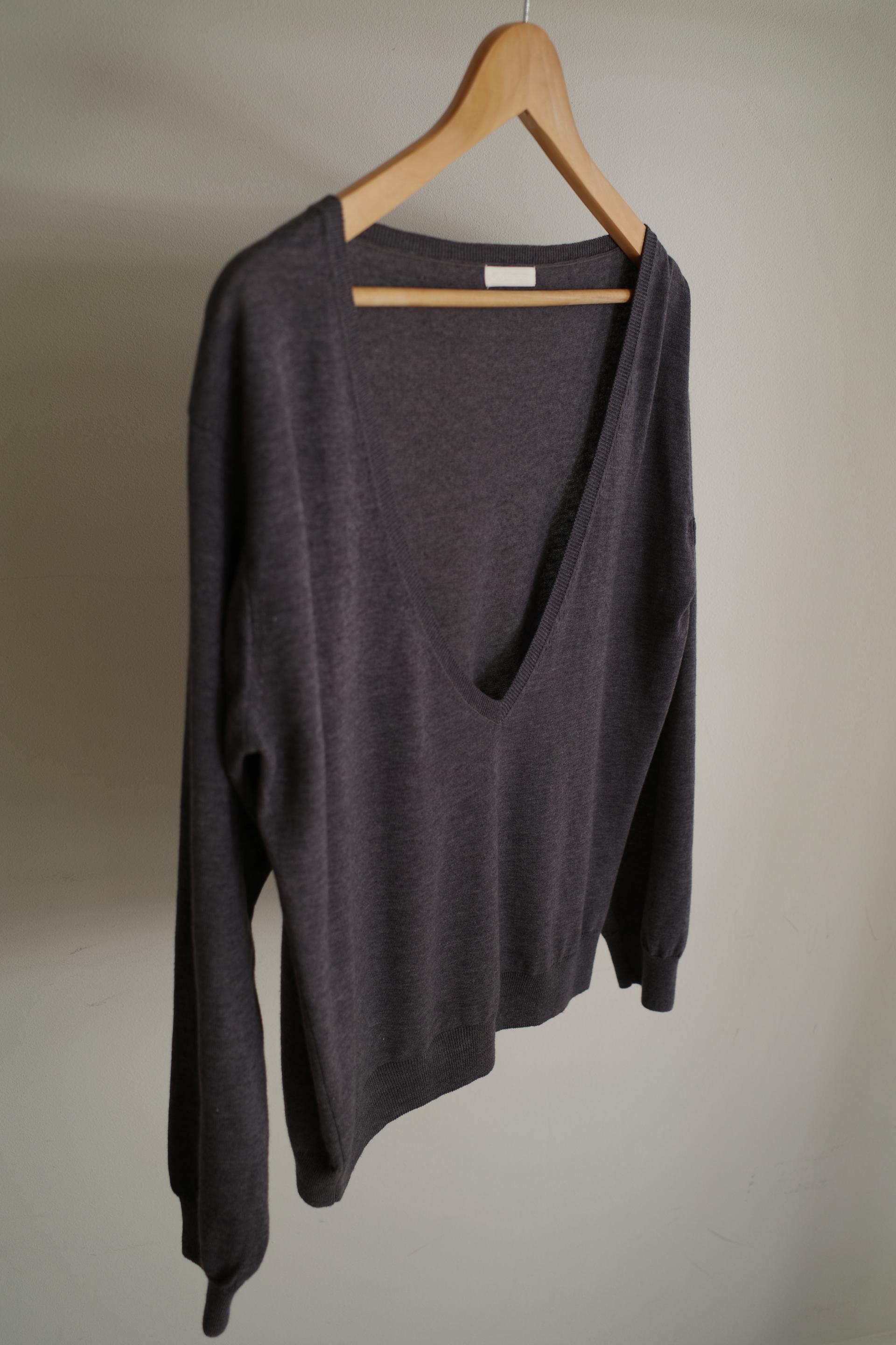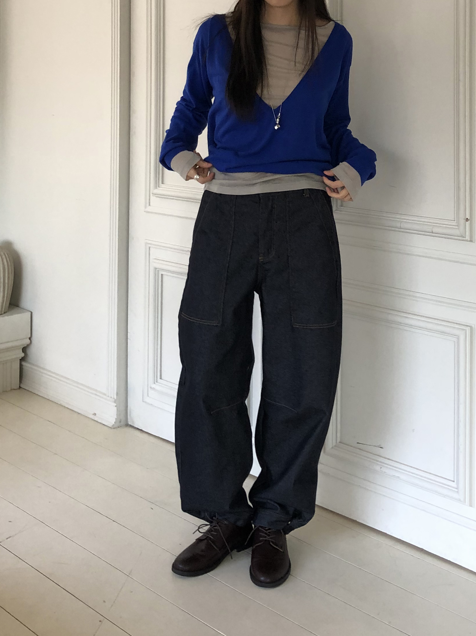 깊은 네크라인과 텁텁하지 않게 착용되는 얇은 두께감. 봄 시즌 브이넥 니트를 고르며 가장 중요하게 생각했던 두가지를 모두 담아낸 아이템입니다.