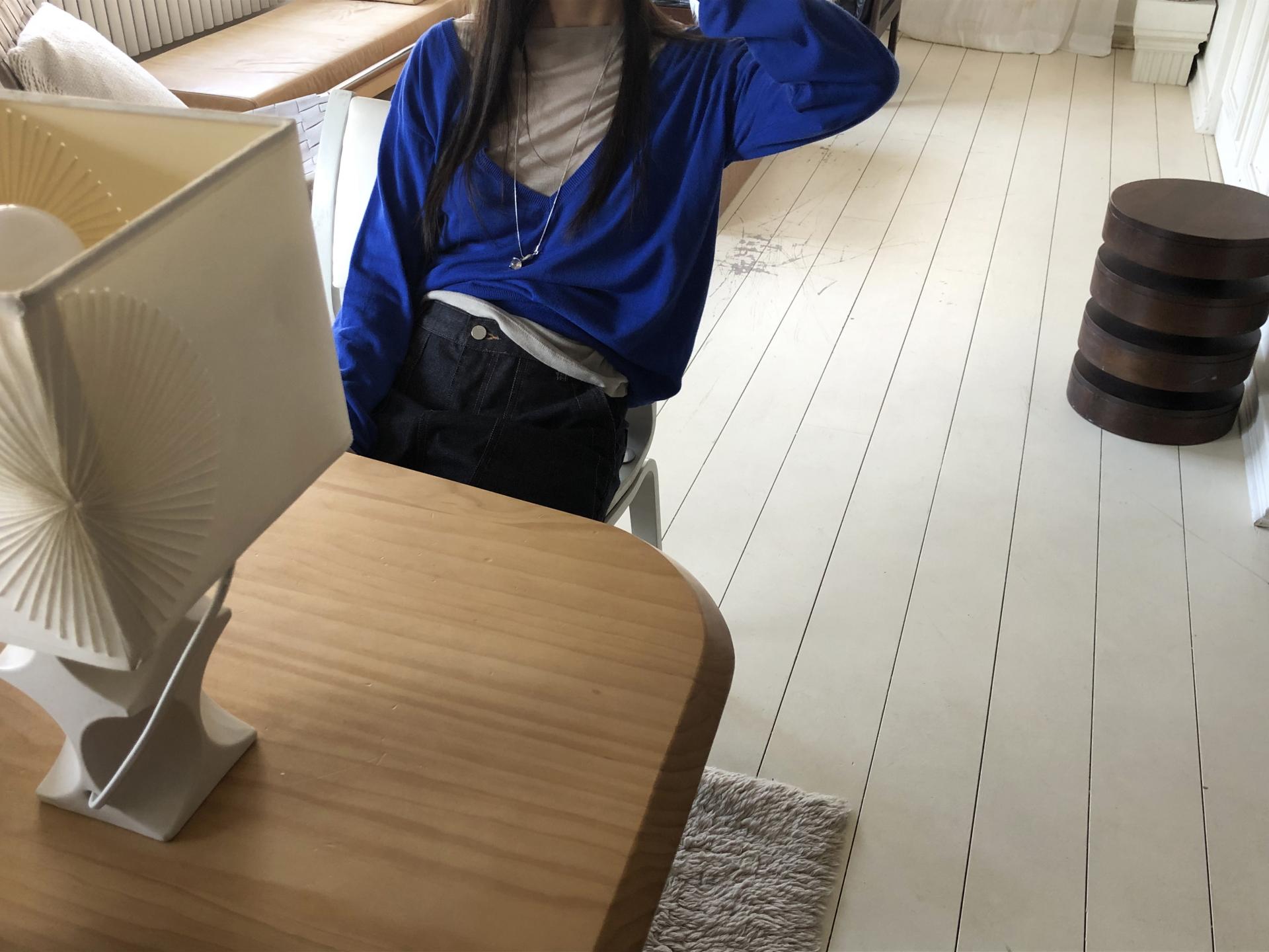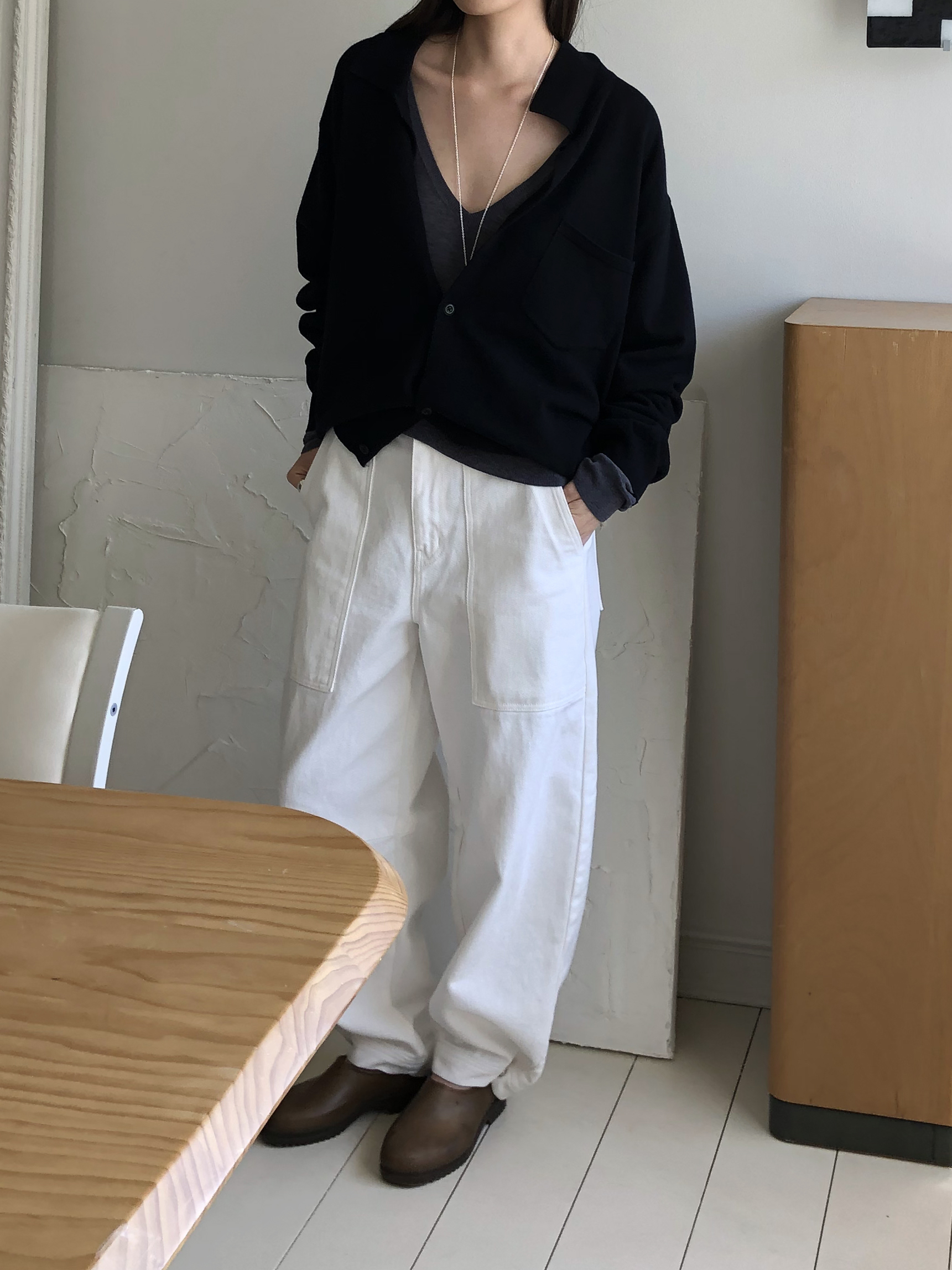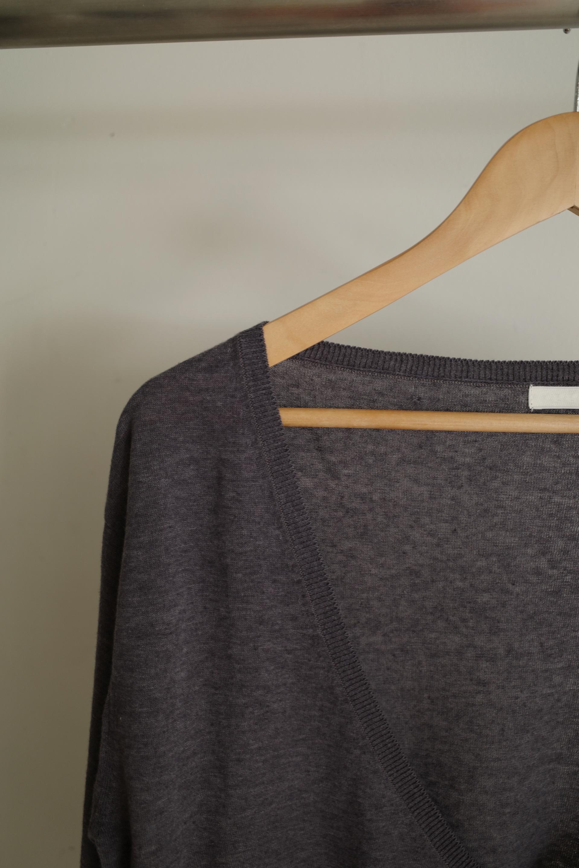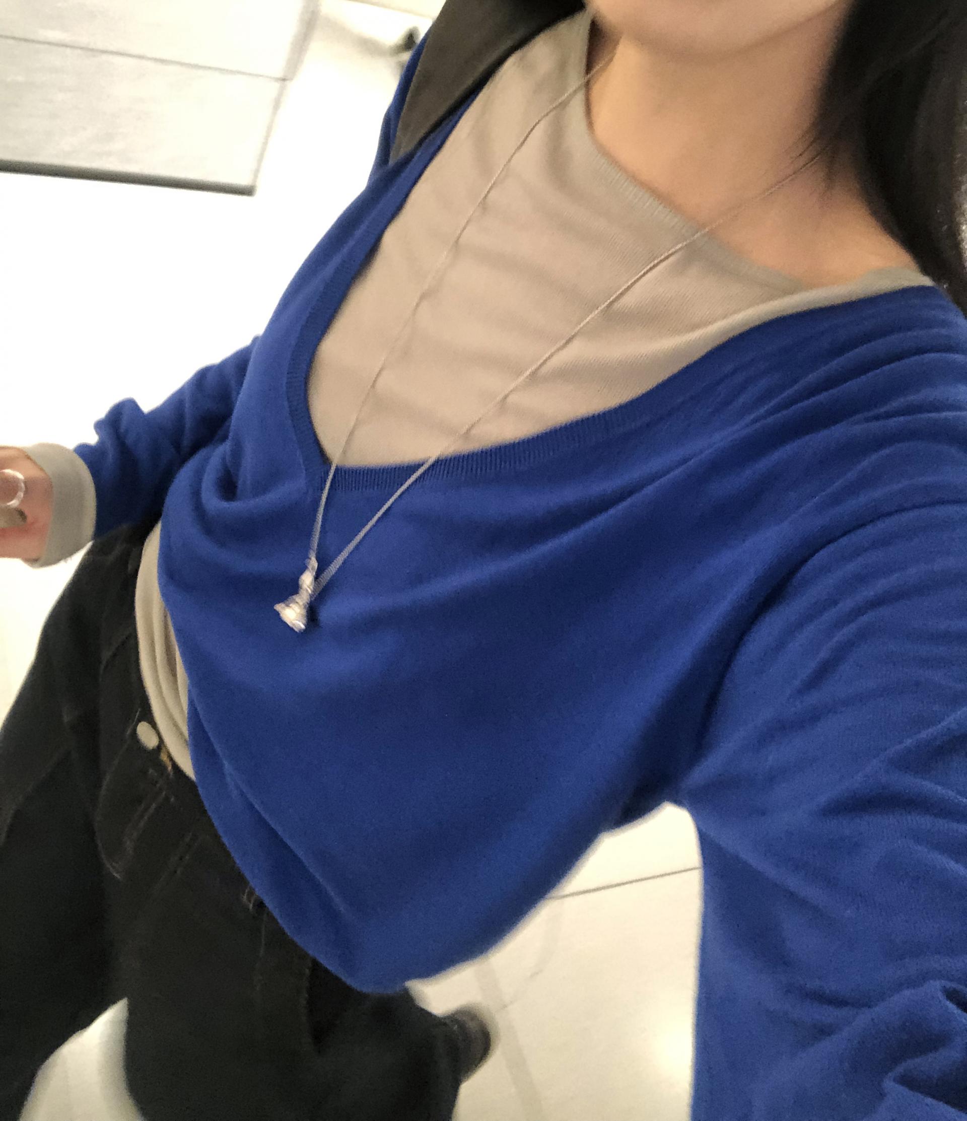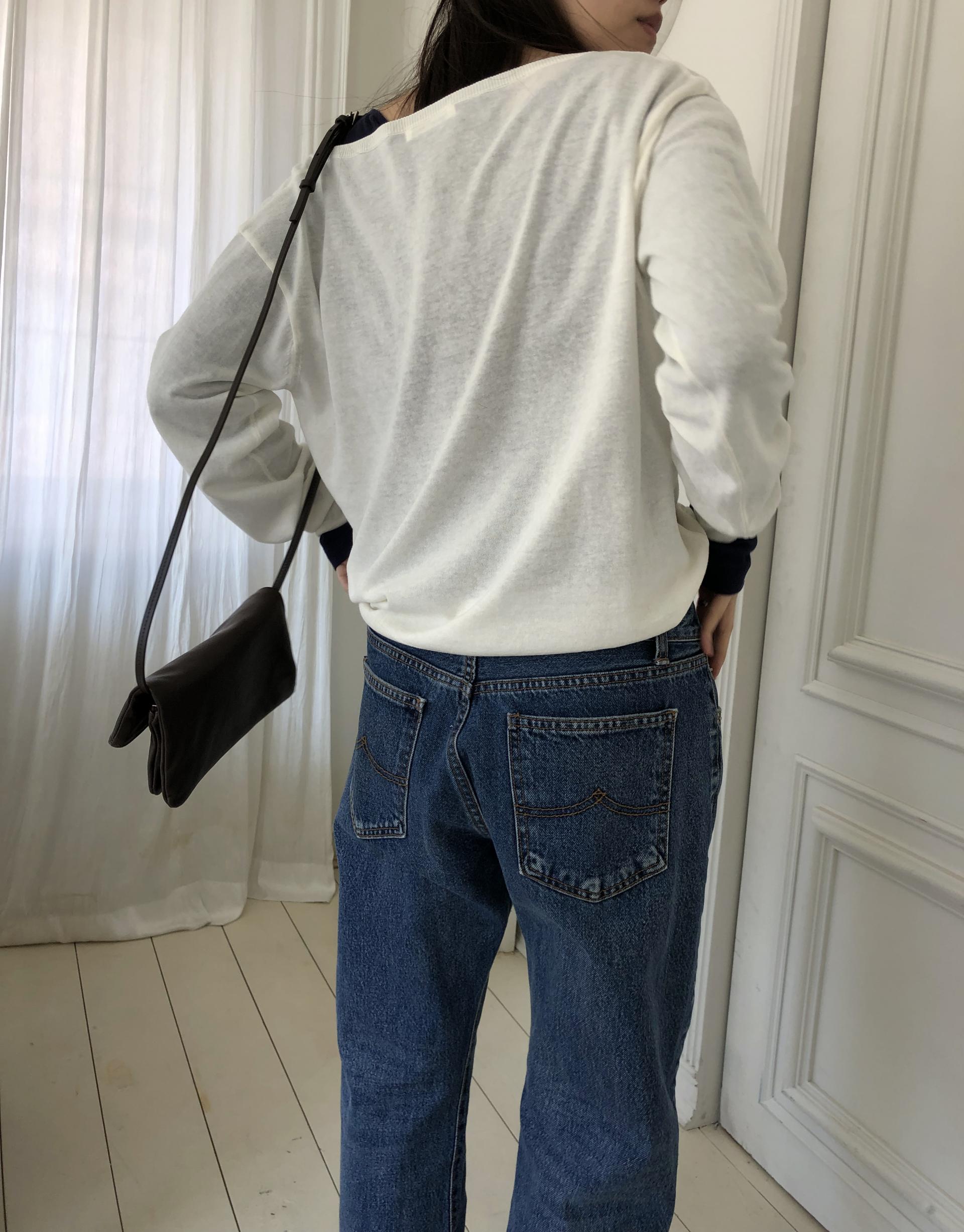 깊은 네크라인과 텁텁하지 않게 착용되는 얇은 두께감. 봄 시즌 브이넥 니트를 고르며 가장 중요하게 생각했던 두가지를 모두 담아낸 아이템입니다.