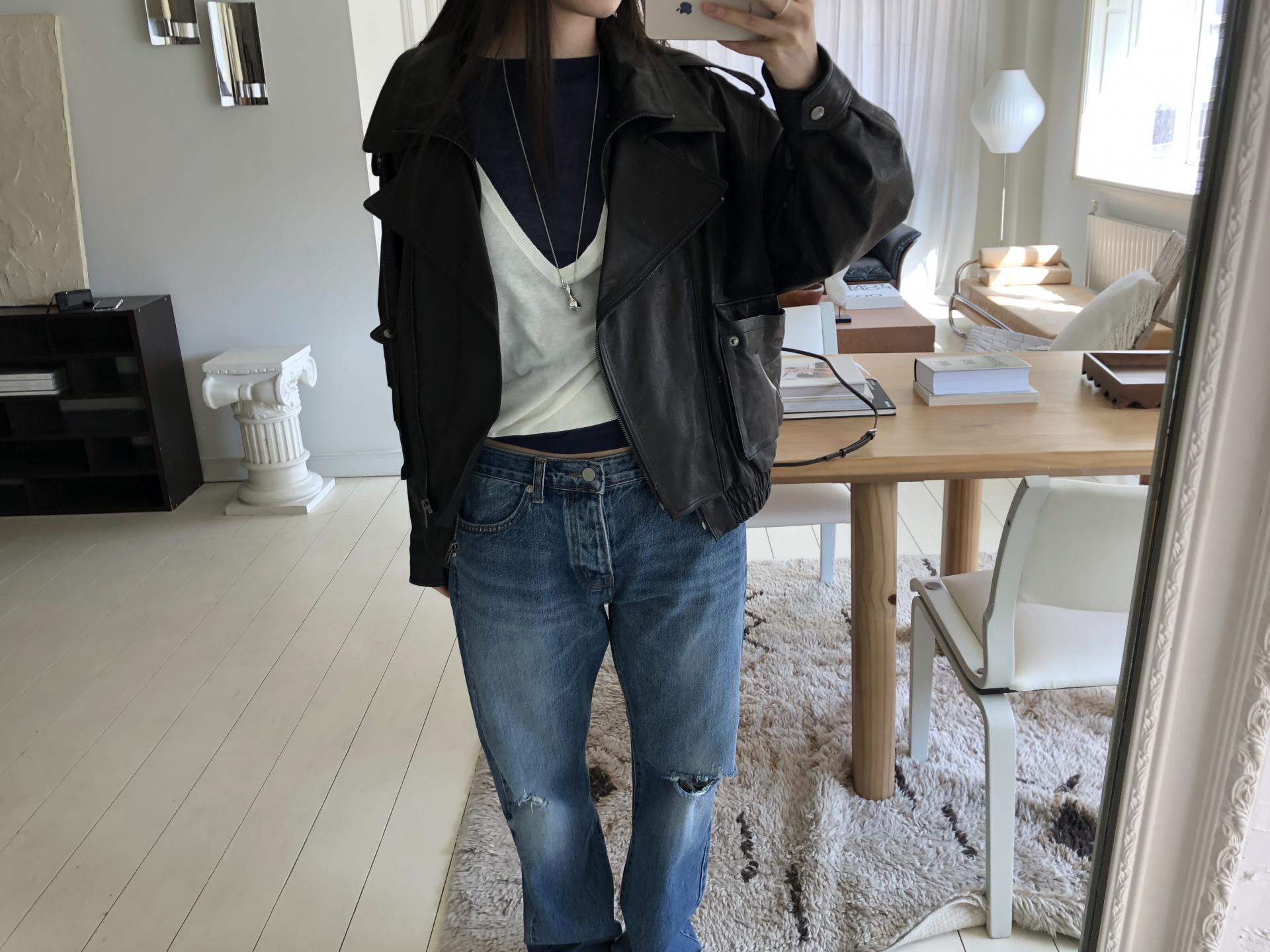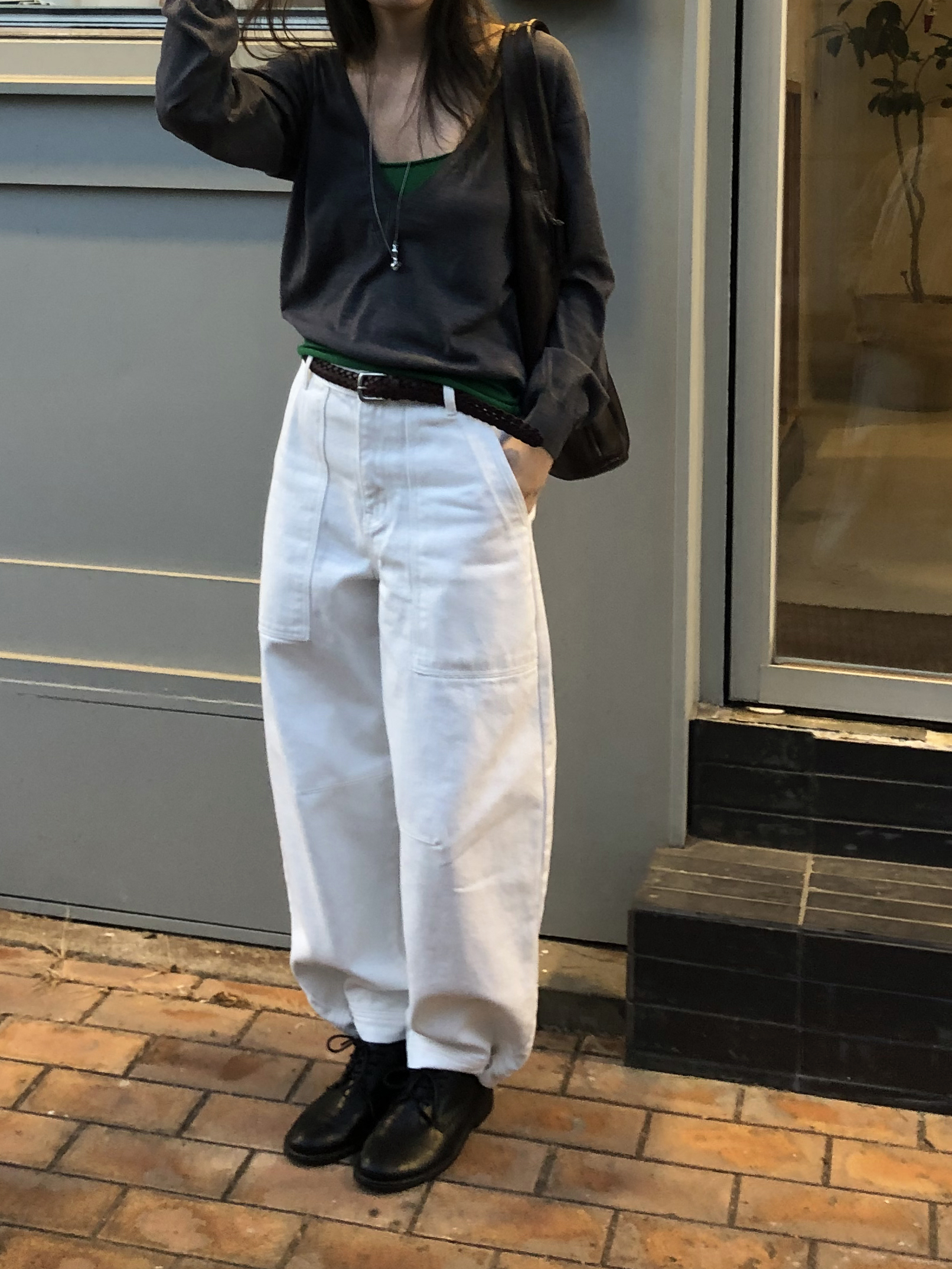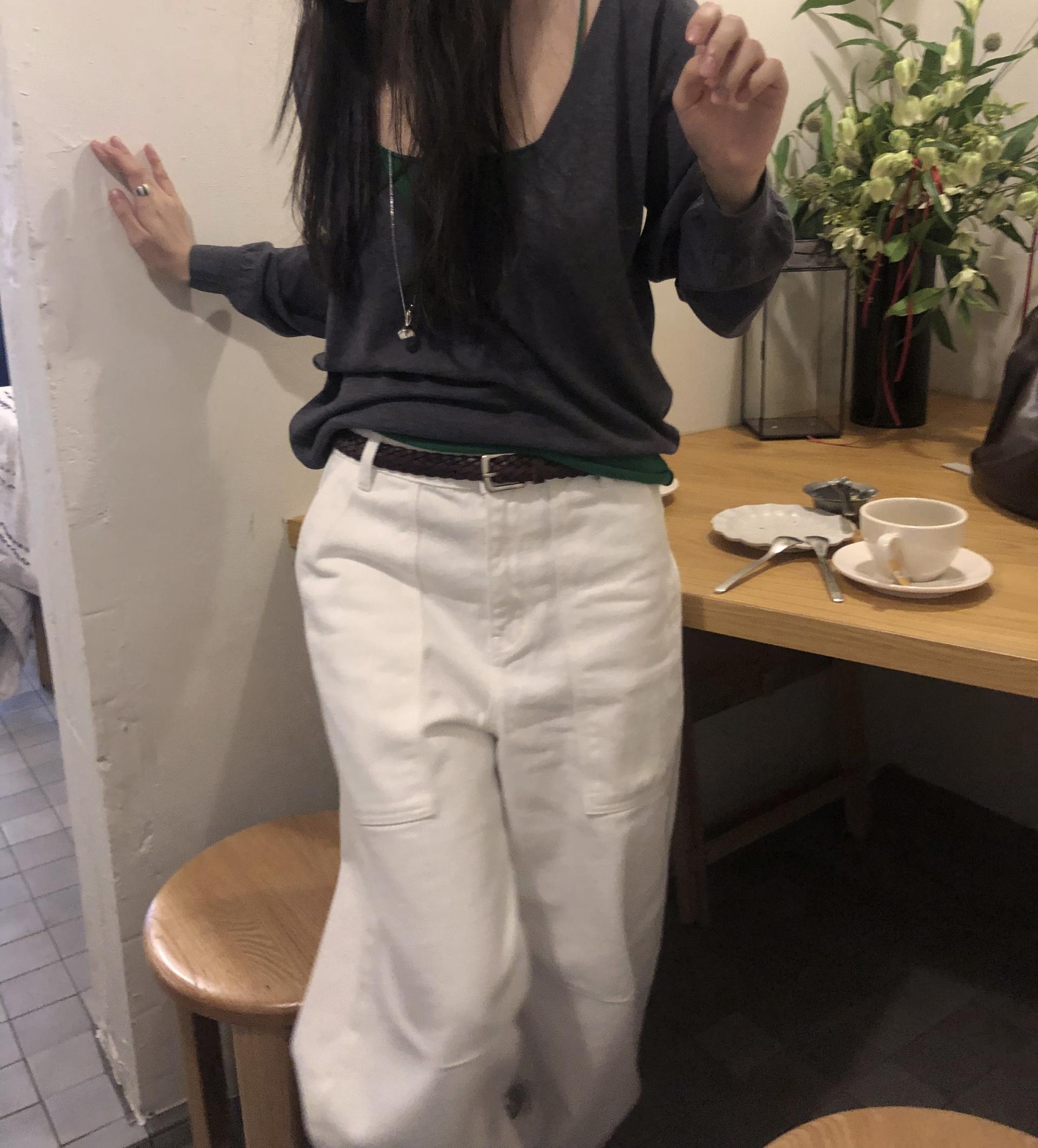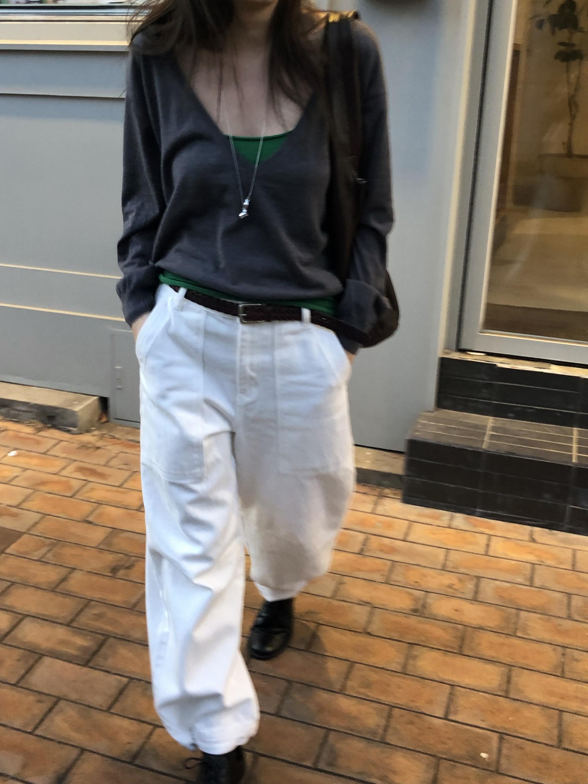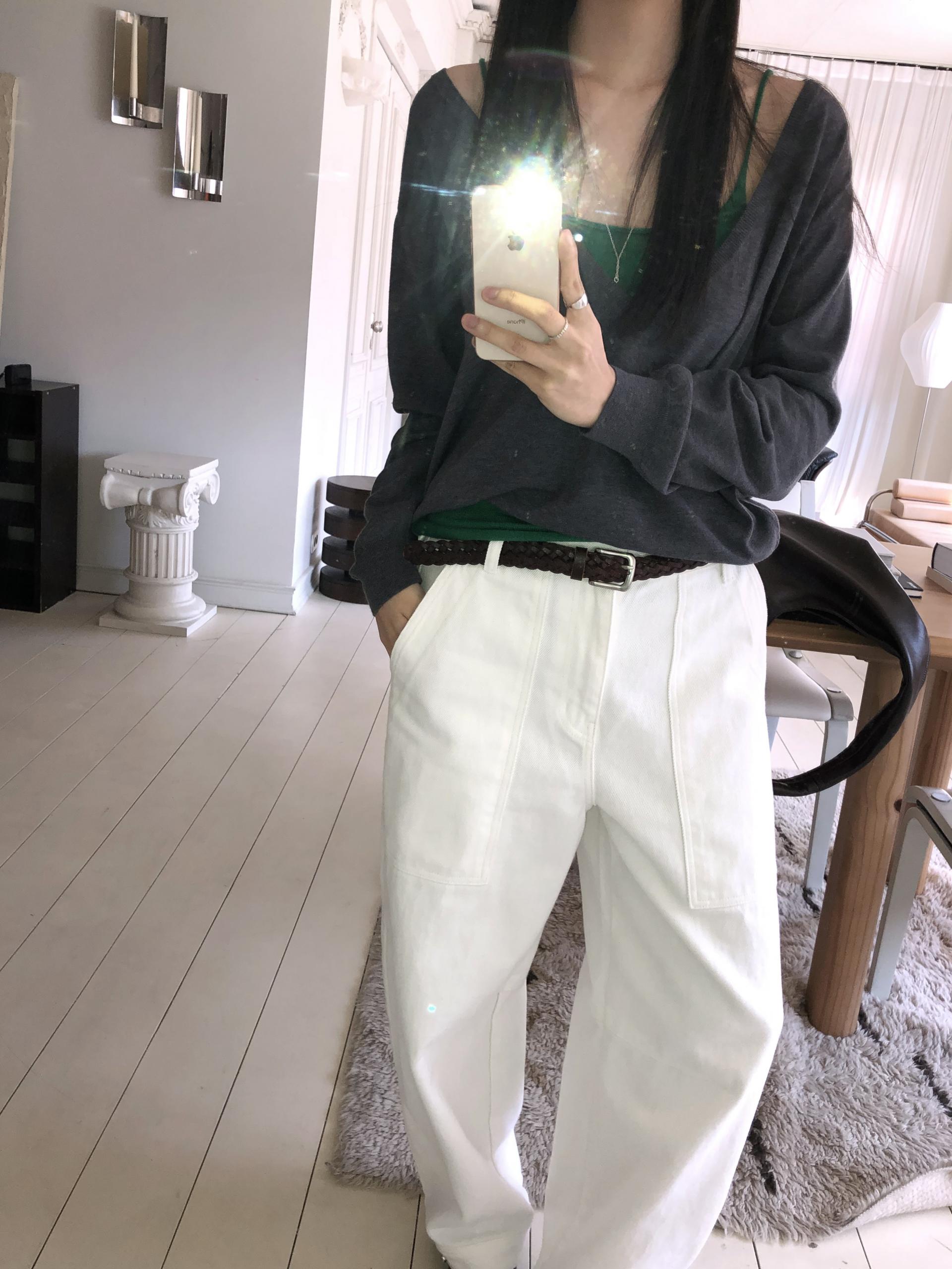 적당히 루즈한 핏으로 여유로운 실루엣을 보여주며 딥하게 파인 네크라인으로 이너 레이어드를 추천드립니다. 얇고 가벼운 두께감이라 이너를 더했을 때도 답답하지 않아 좋아요. 레이스 포인트의 슬리브리스나 미니멀한 민소매, 얇은 티셔츠나 블라우스 등 레이어드하는 재미가 쏠쏠하답니다. 브이넥의 여백이 깊어 이너에 따라 전혀 다른 무드를 연출합니다.