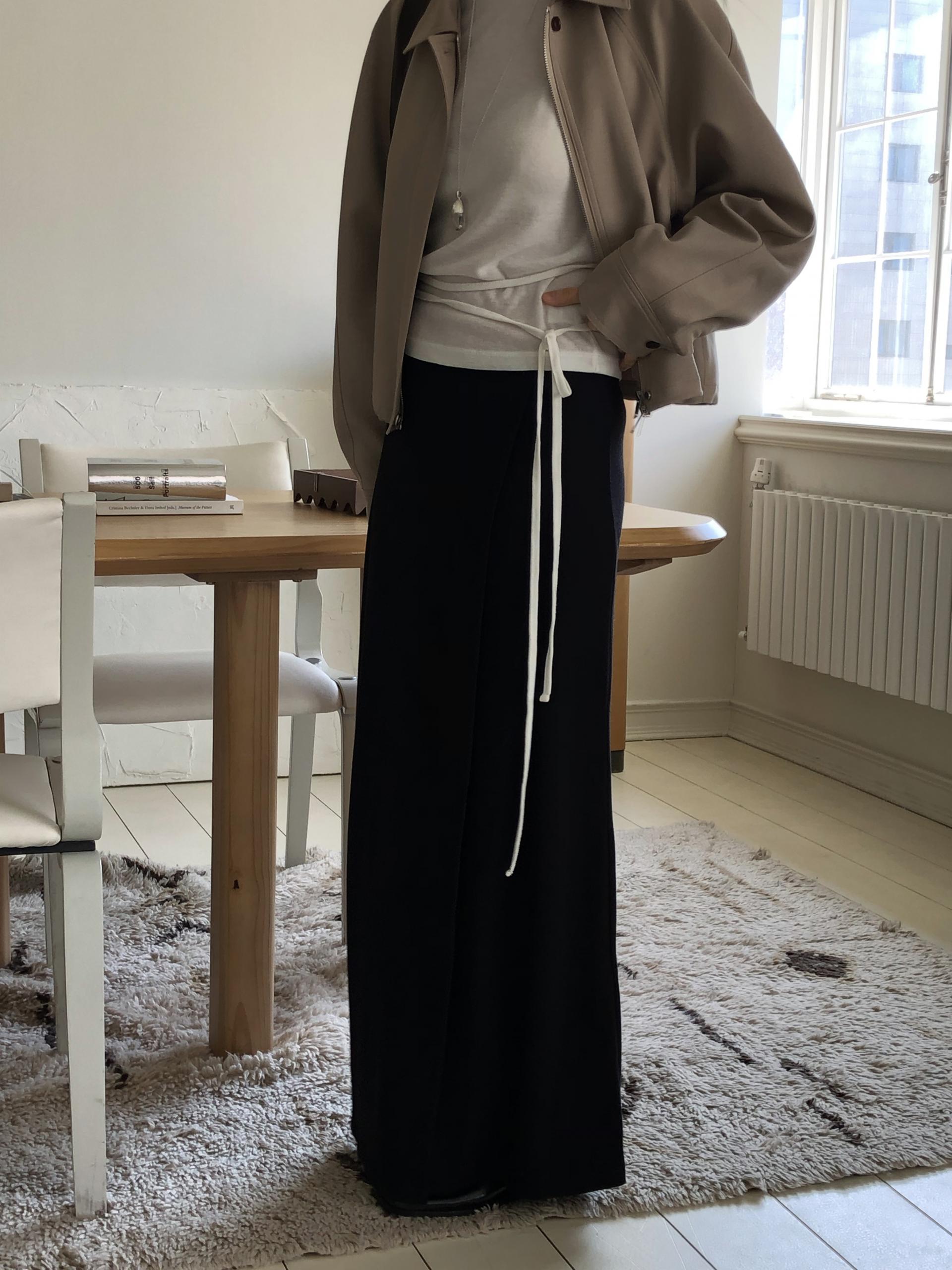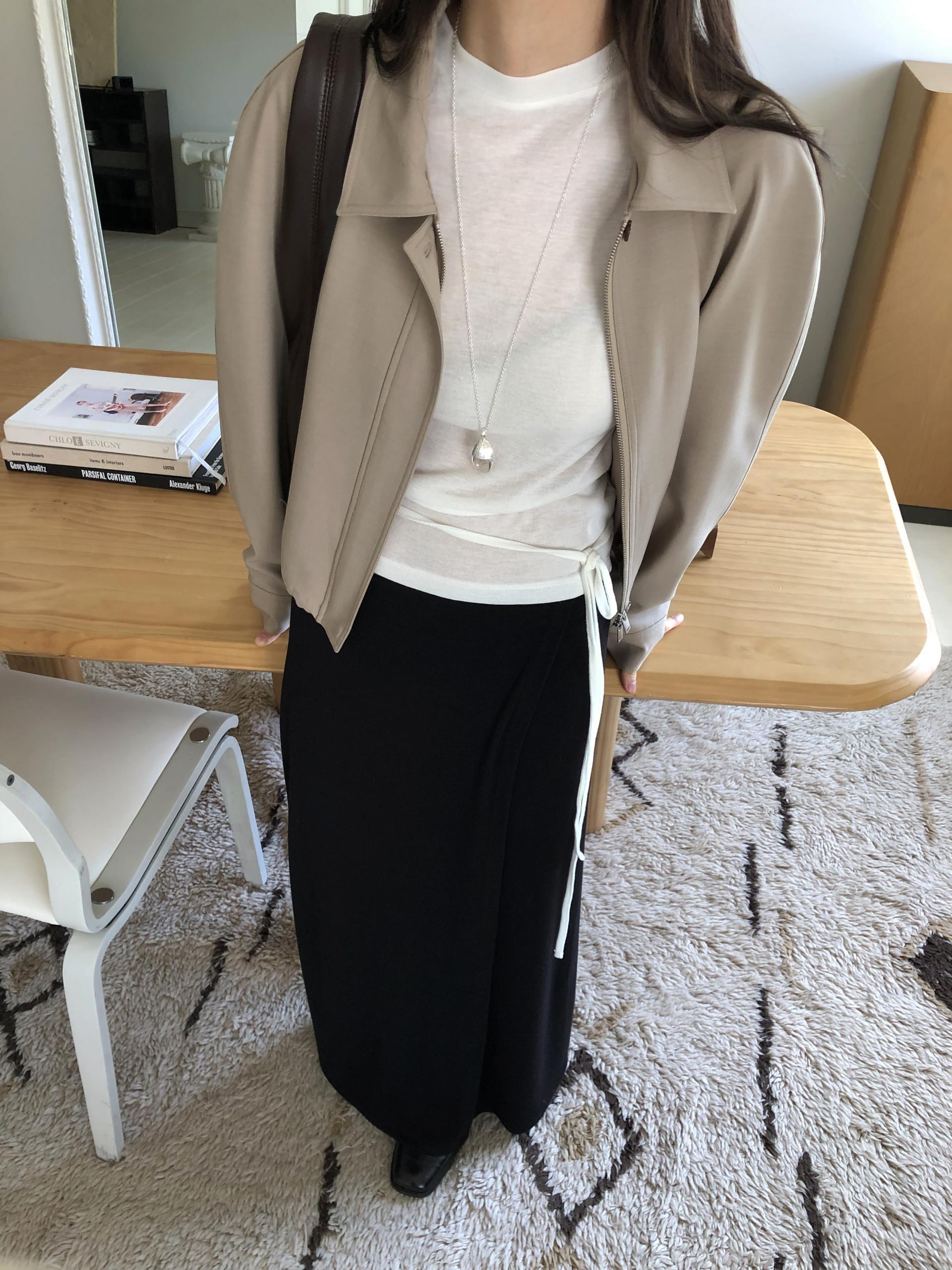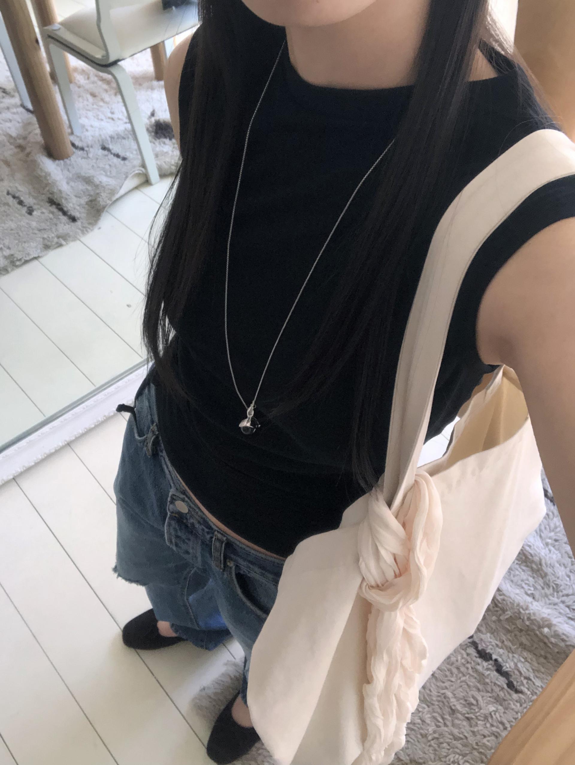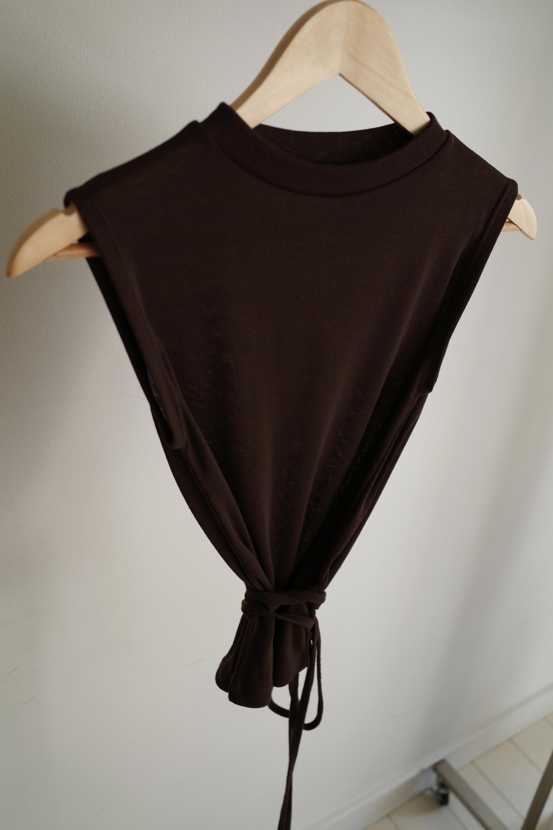 약하게 올라오는 라운드넥과 깔끔하게 떨어지는 어깨 라인이 미니멀하고 클린한 핏을 만들어줍니다. 탈부착이 가능한 끈을 허리 고리에 걸어 연출할 수 있습니다. 베이직한 탑에서 디테일있는 탑으로 바뀌어 단독은 물론 포인트 이너로 활용하기 좋아요.