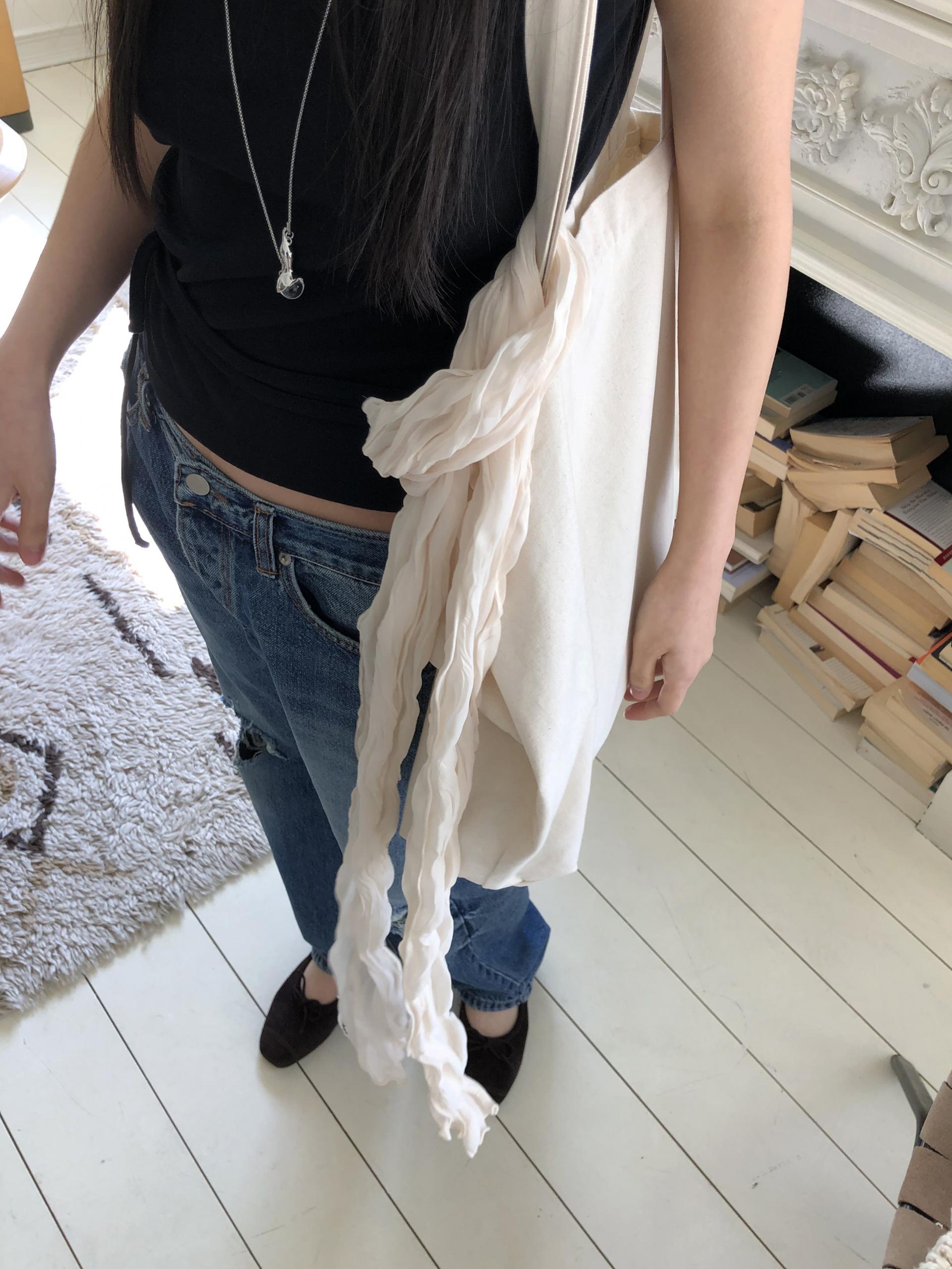 어깨 36 가슴 39 암홀 19 밑단 39.5 총장 54.7 / 끈 길이 258