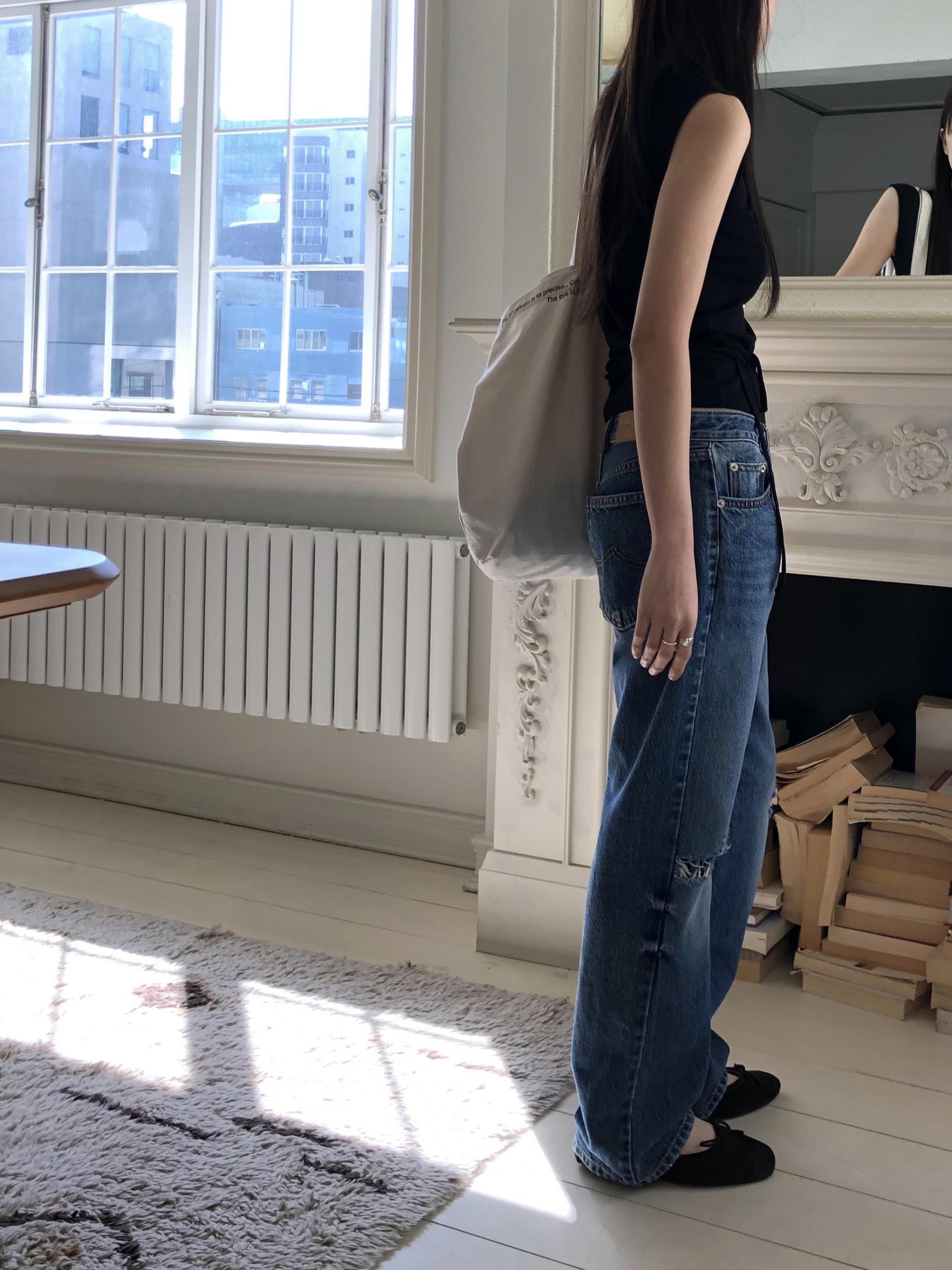원단은 얇고 가벼운 편으로 비침이 있어 답답하지 않게 착용됩니다. 여름에는 단독으로 시원하게, 간절기에는 셔츠나 가디건, 자켓 안에 레이어드해 가볍게 입어주세요. 몸에 과하게 달라붙지 않으면서 자연스럽게 흐르는 슬림핏이라 부담스럽지 않습니다.