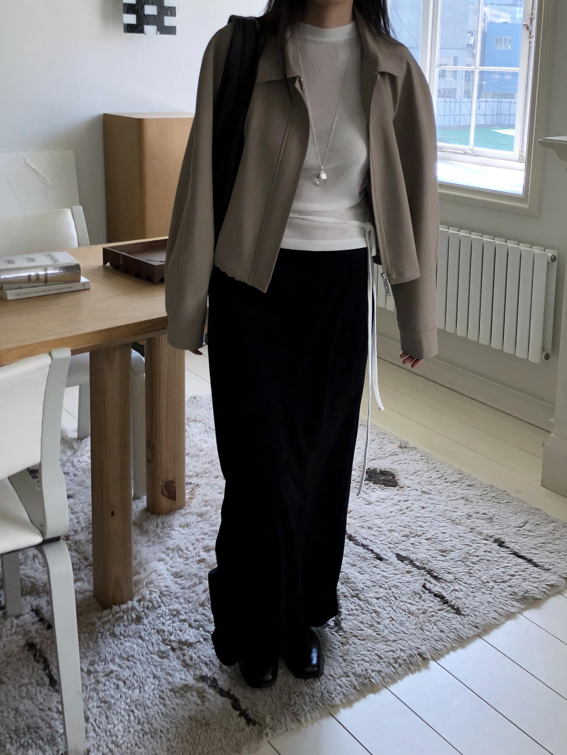 아이보리, 라이트그린, 브라운, 네이비, 차콜, 블랙의 구성입니다. 모두 웨어러블하게 입기 좋은 컬러들로 소장하면 여러 방면으로 스타일링하기 좋으실 거예요.