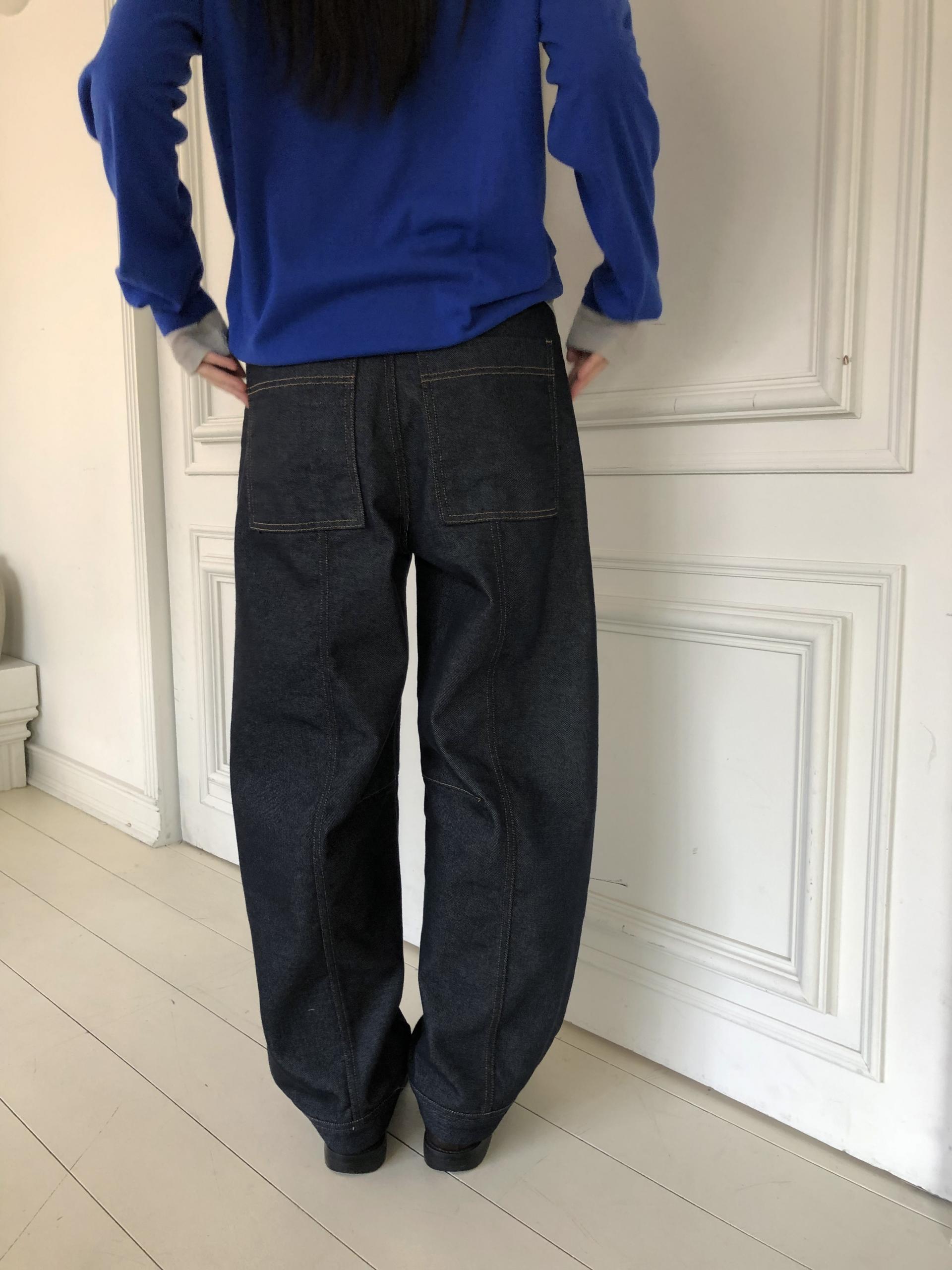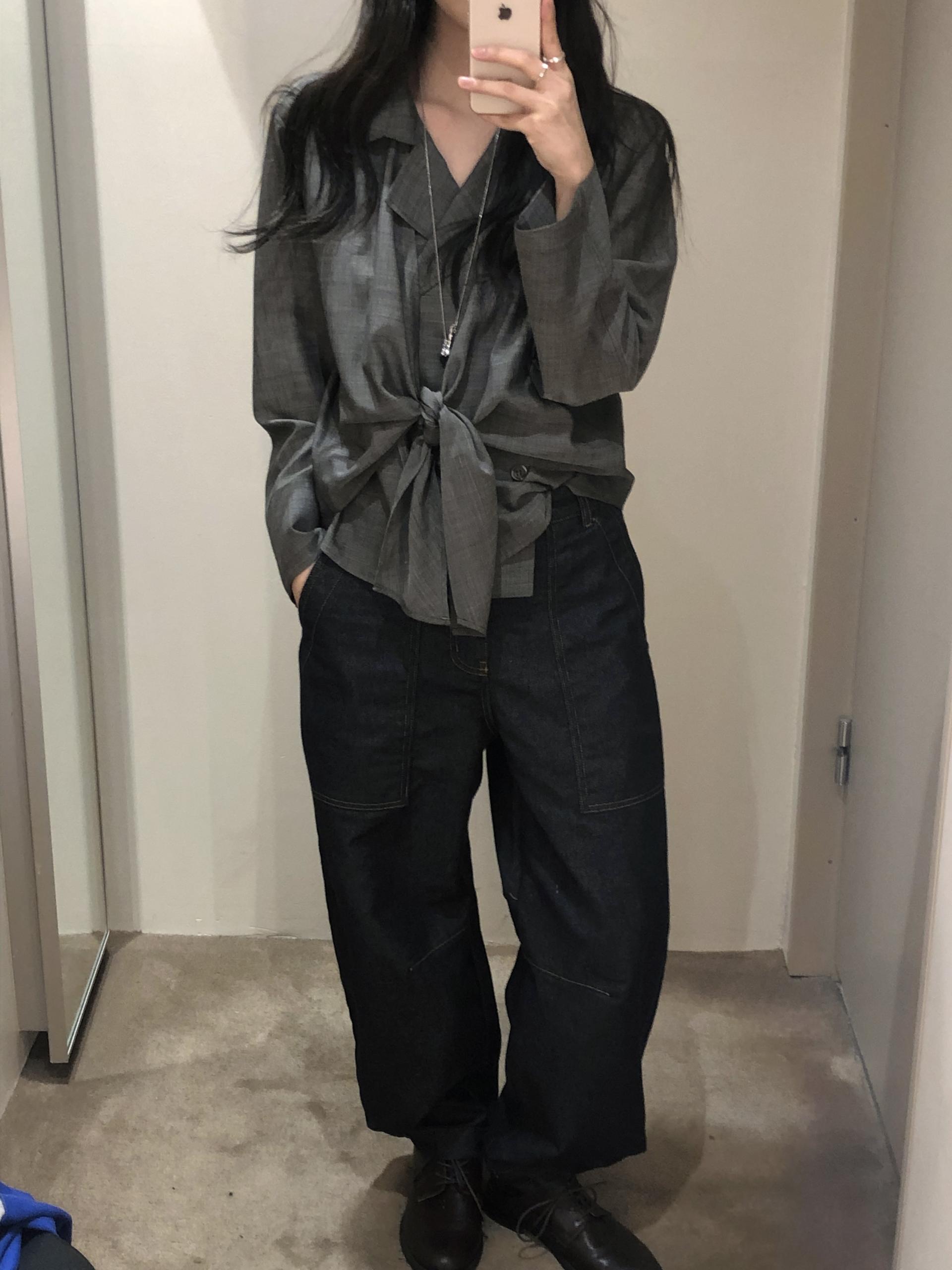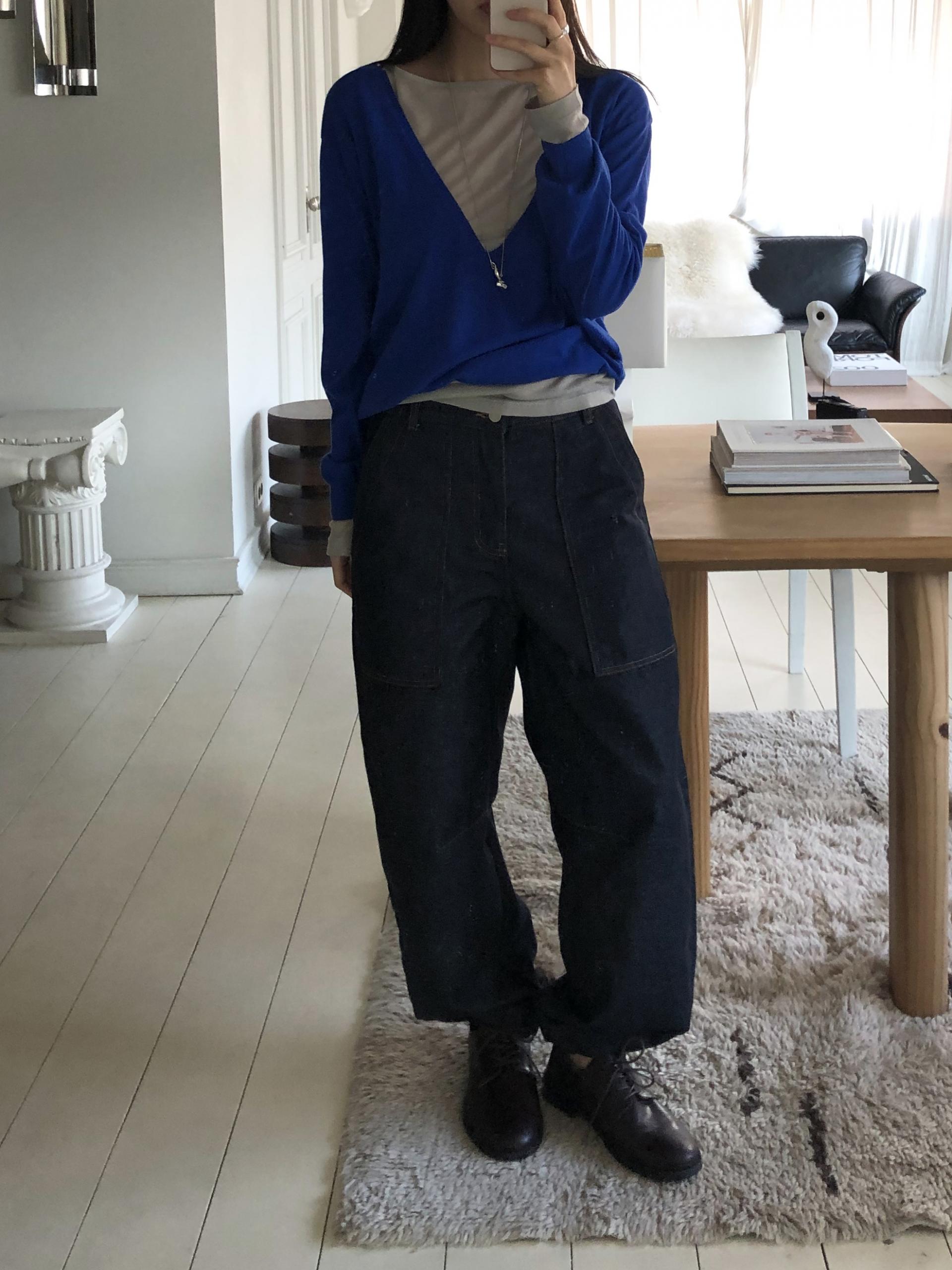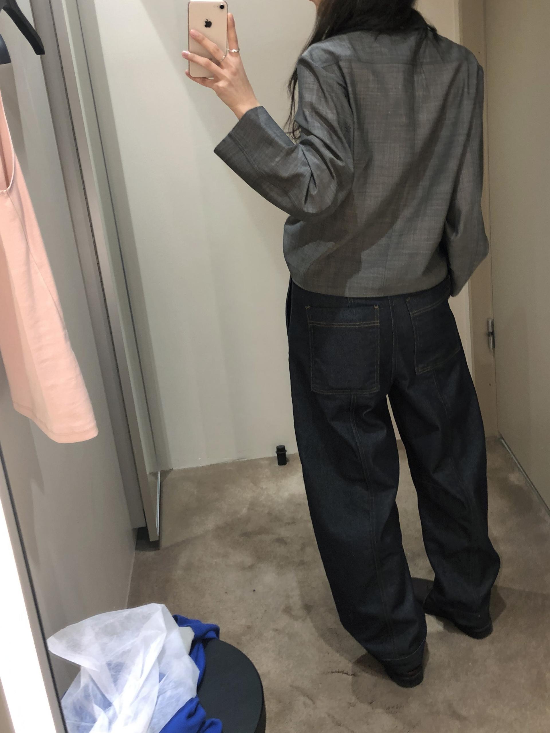 자연스러운 벌룬핏의 얼스 버튼 데님입니다. 벌룬 실루엣은 특히나 조금이라도 과해지면 핏이 요상해지기 쉬운데요, 이 데님은 입었을 때 아 딱 예쁘다, 싶었어요.
