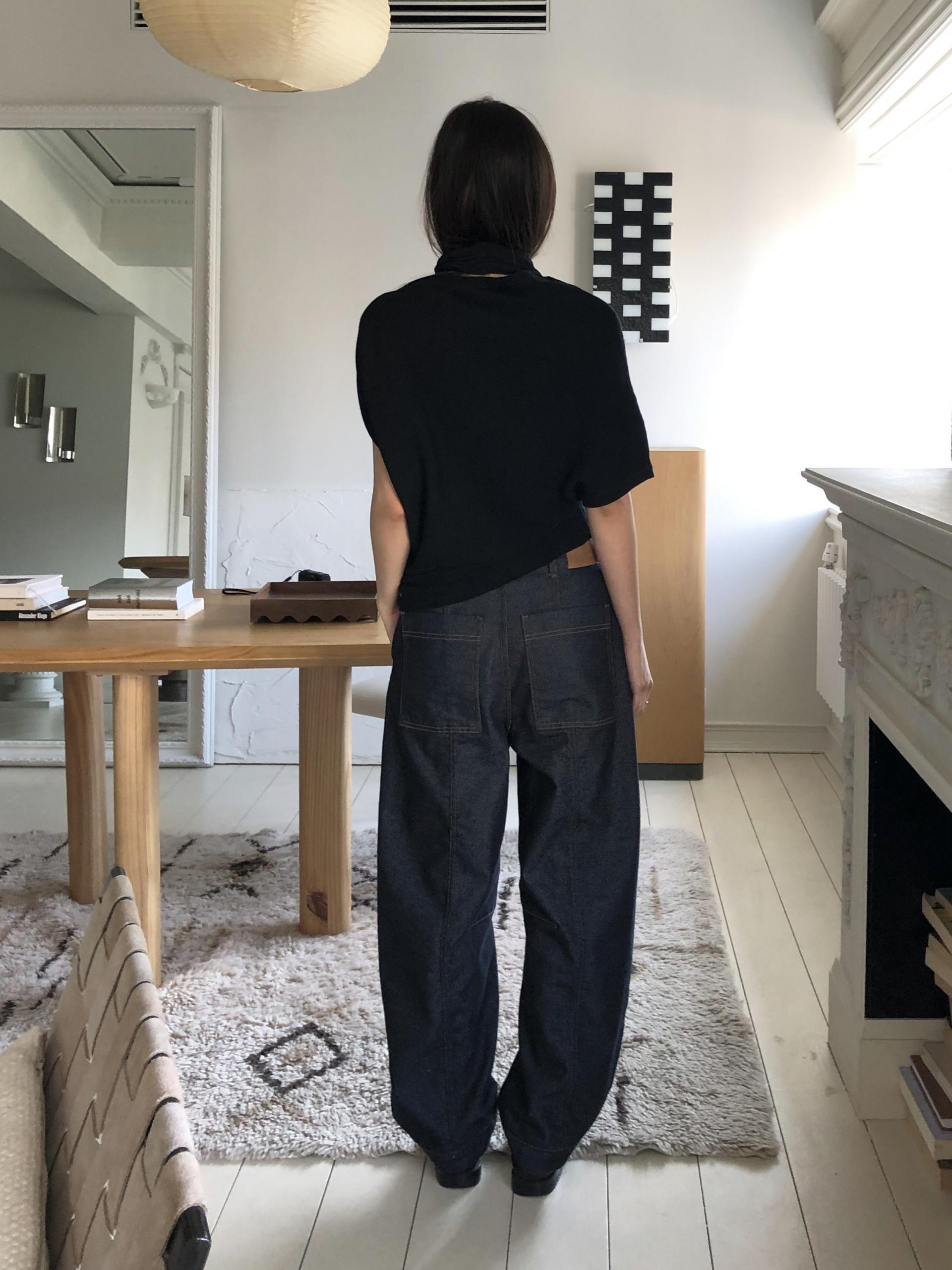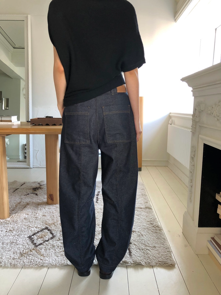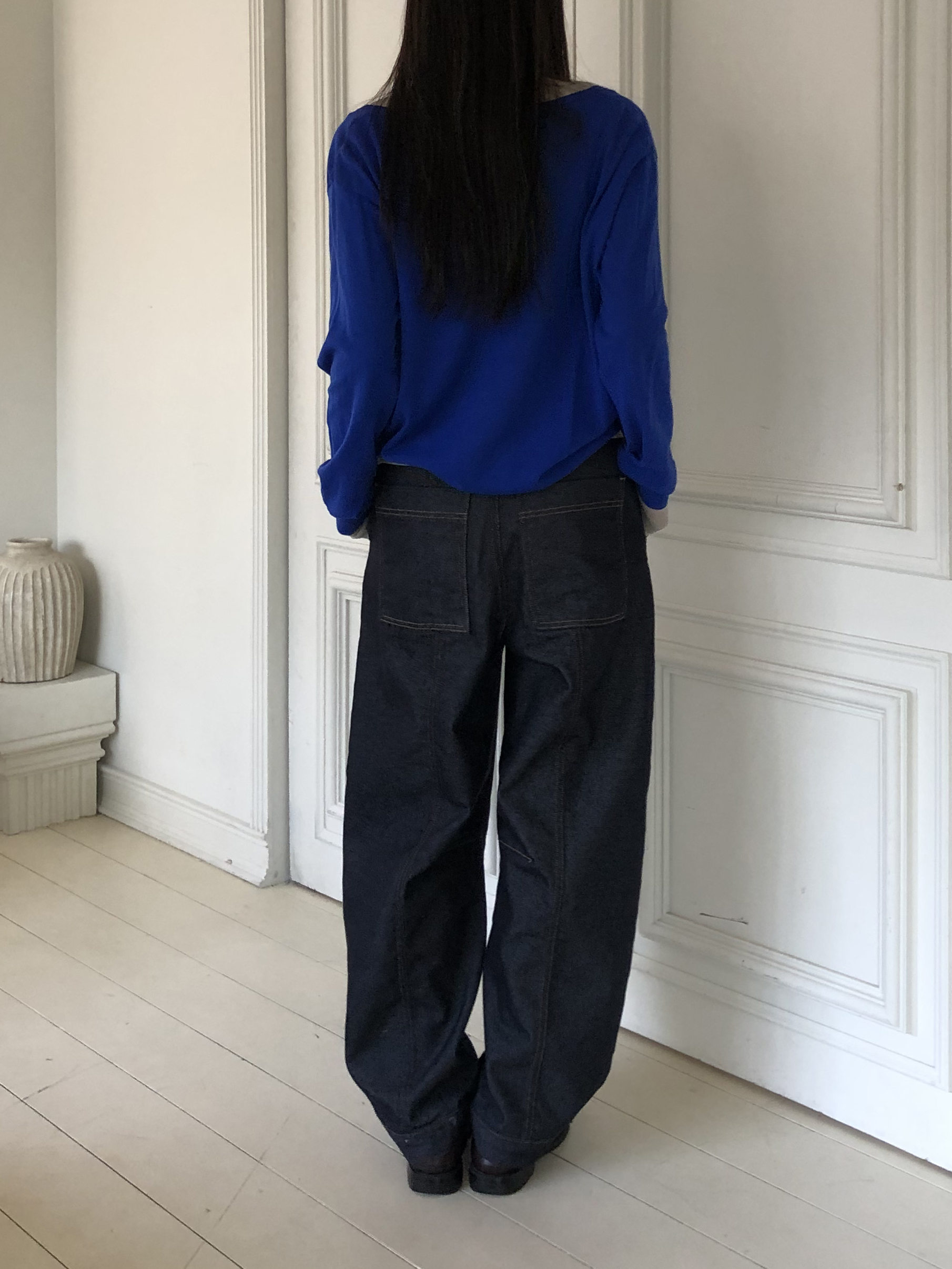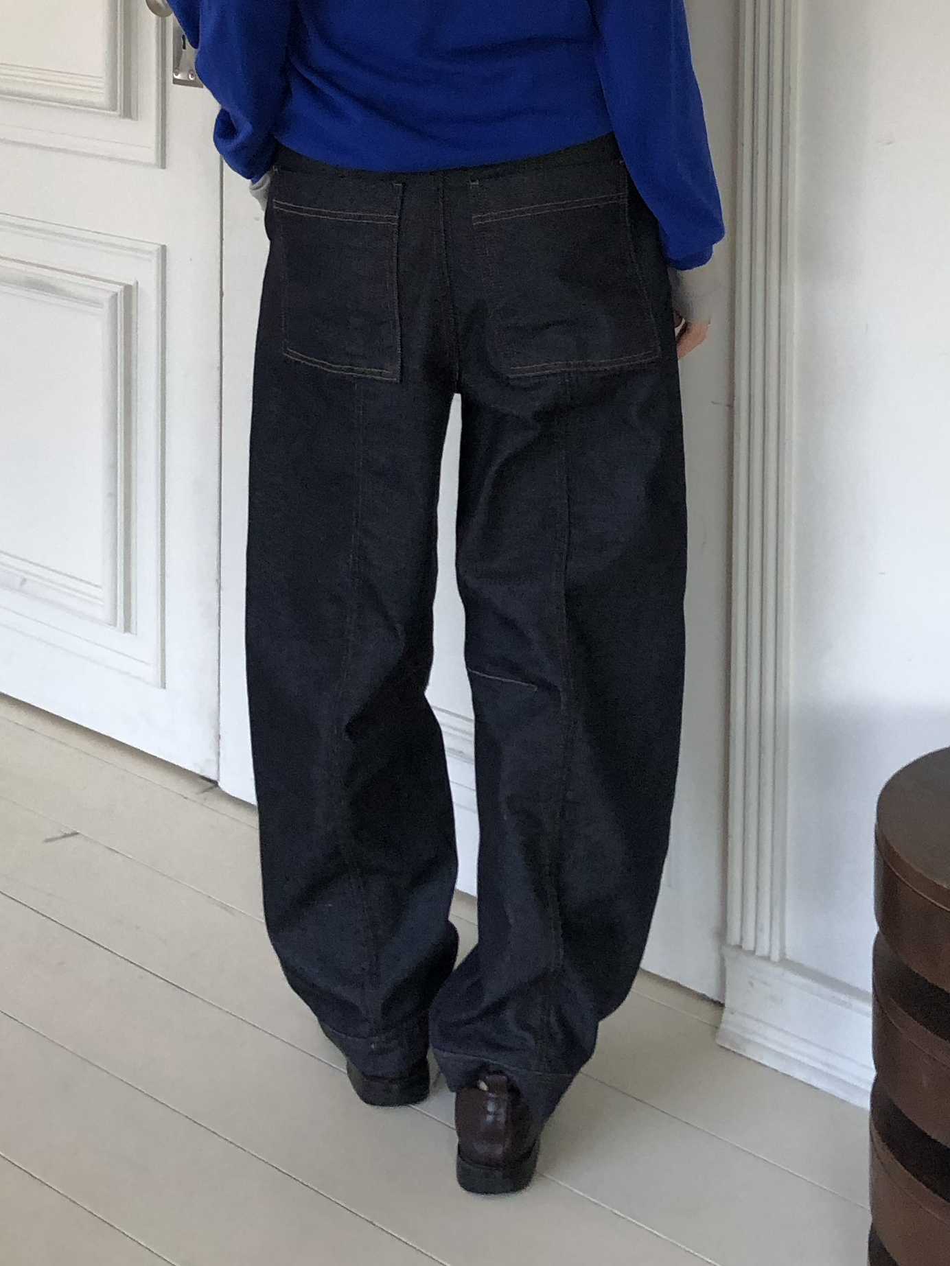 자연스러운 벌룬핏의 얼스 버튼 데님입니다. 벌룬 실루엣은 특히나 조금이라도 과해지면 핏이 요상해지기 쉬운데요, 이 데님은 입었을 때 아 딱 예쁘다, 싶었어요.