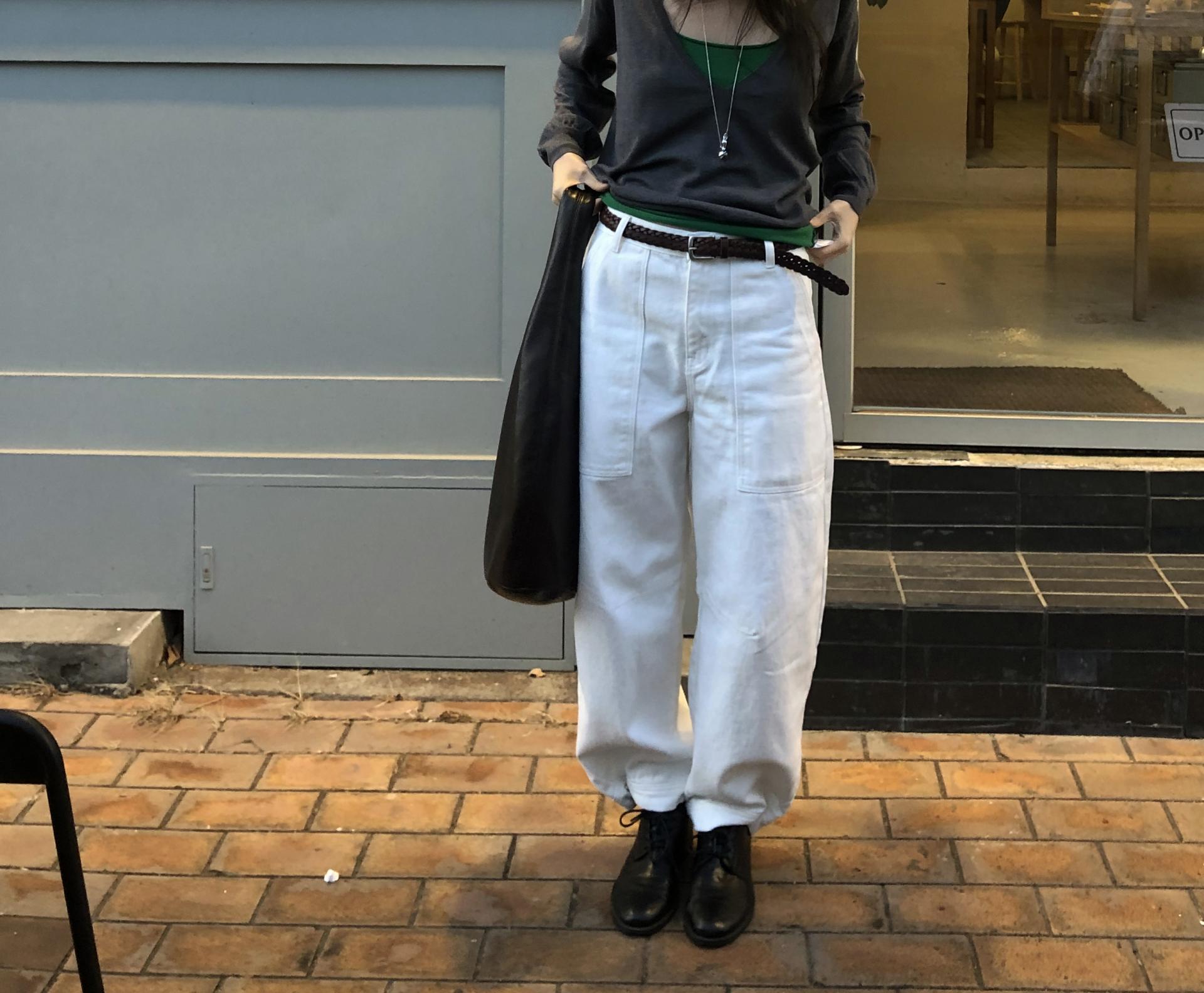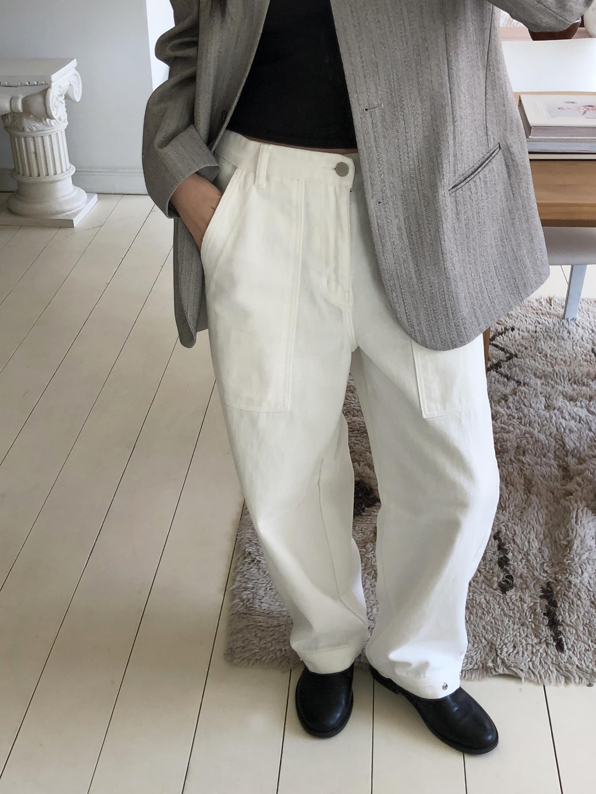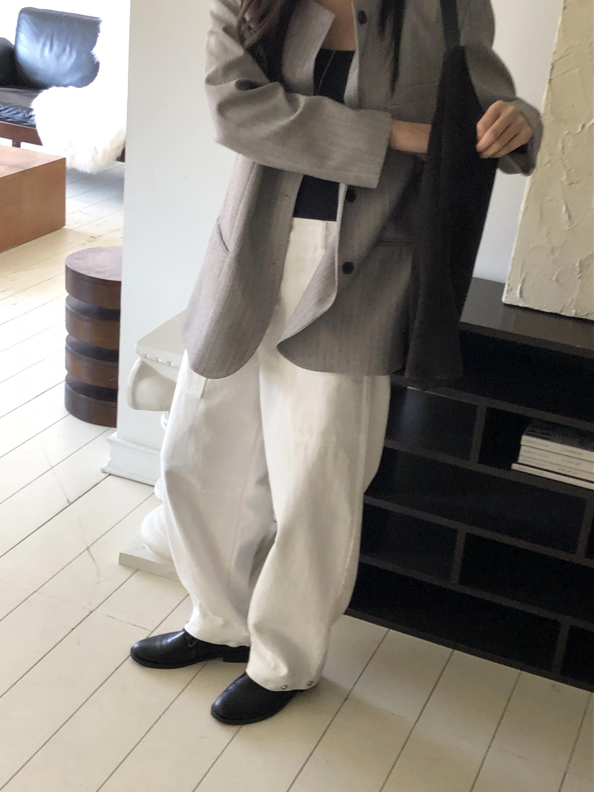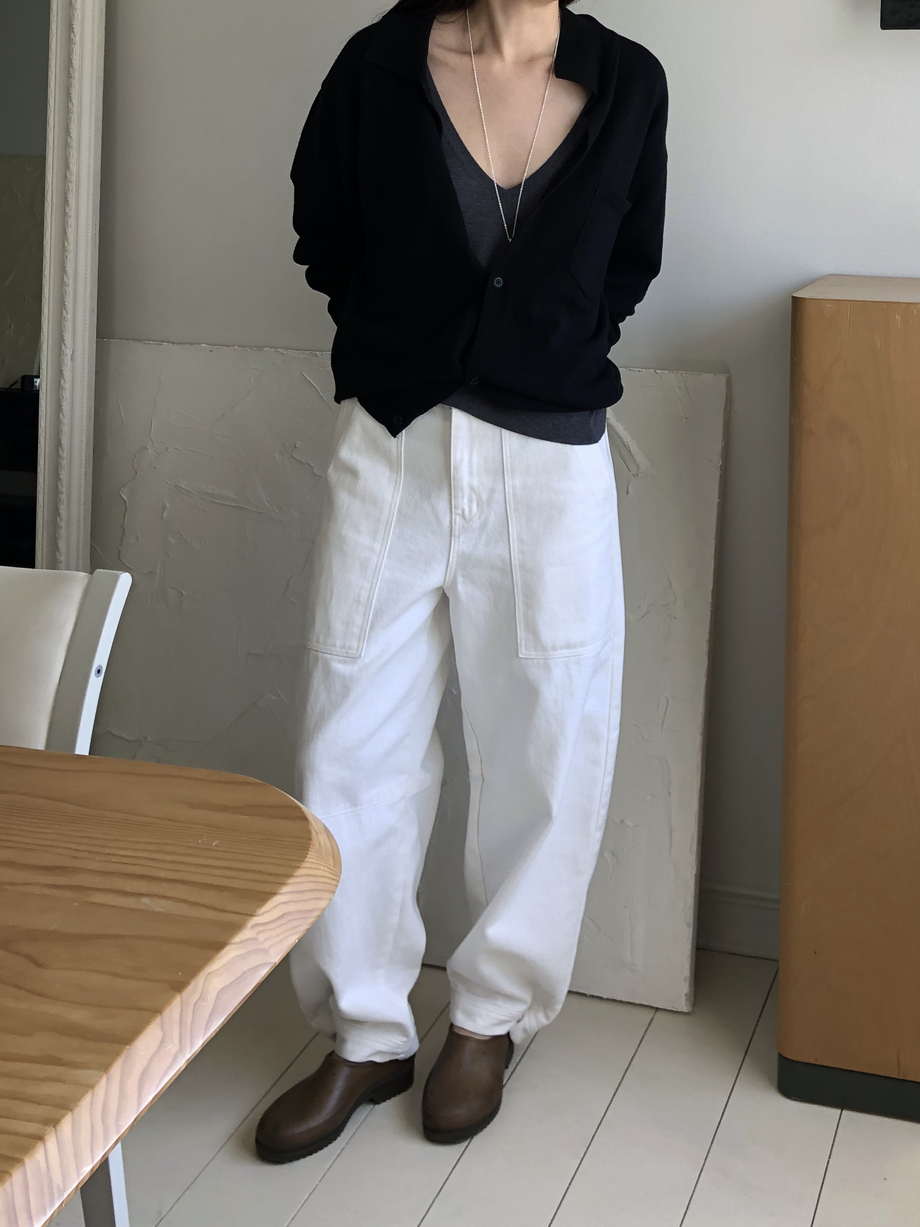 아이보리와 논페이드 데님 두 컬러로 나왔습니다. 실루엣만으로 은근히 차별화되는 데님이라 추천드리는 아이템입니다.