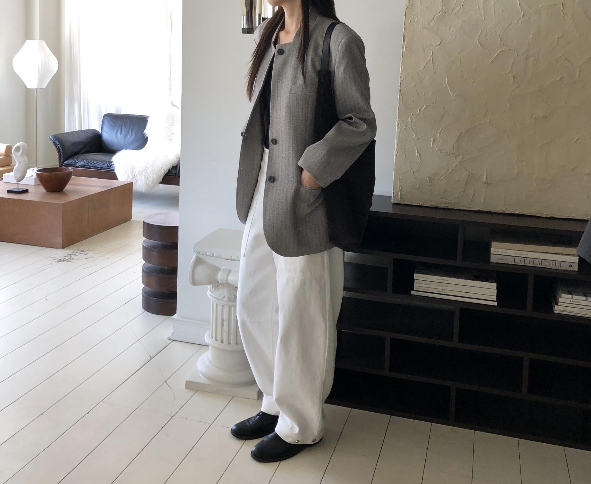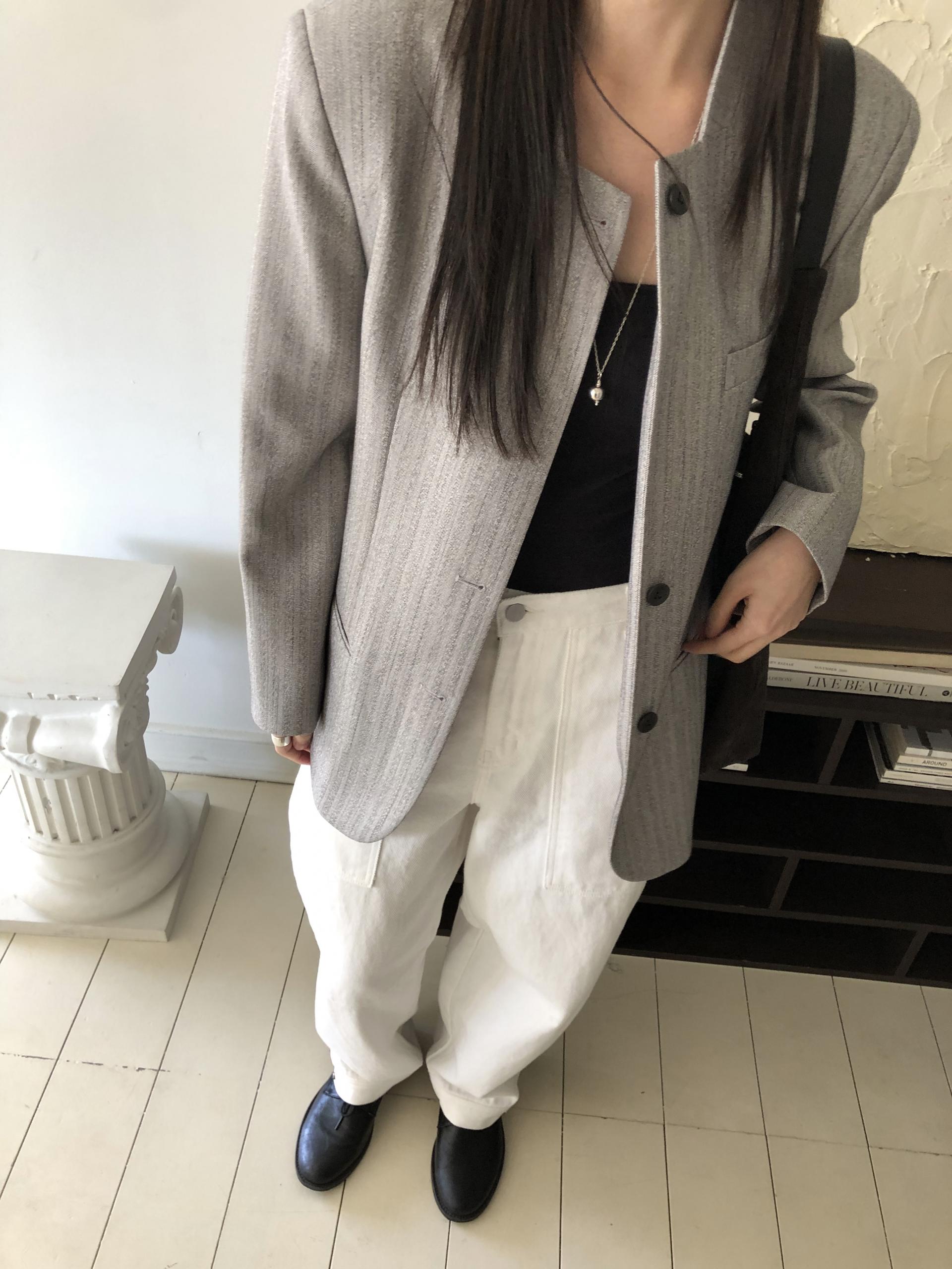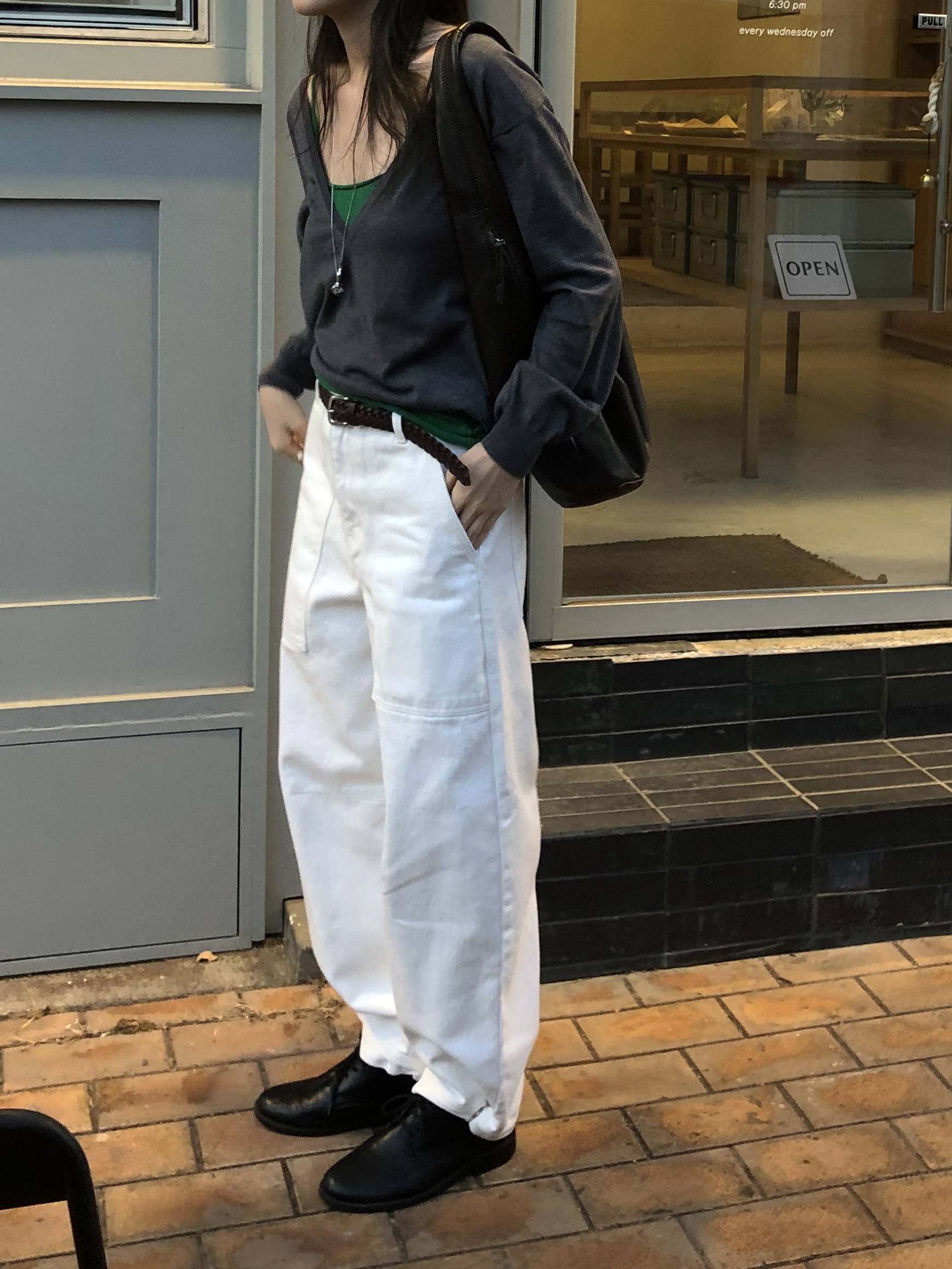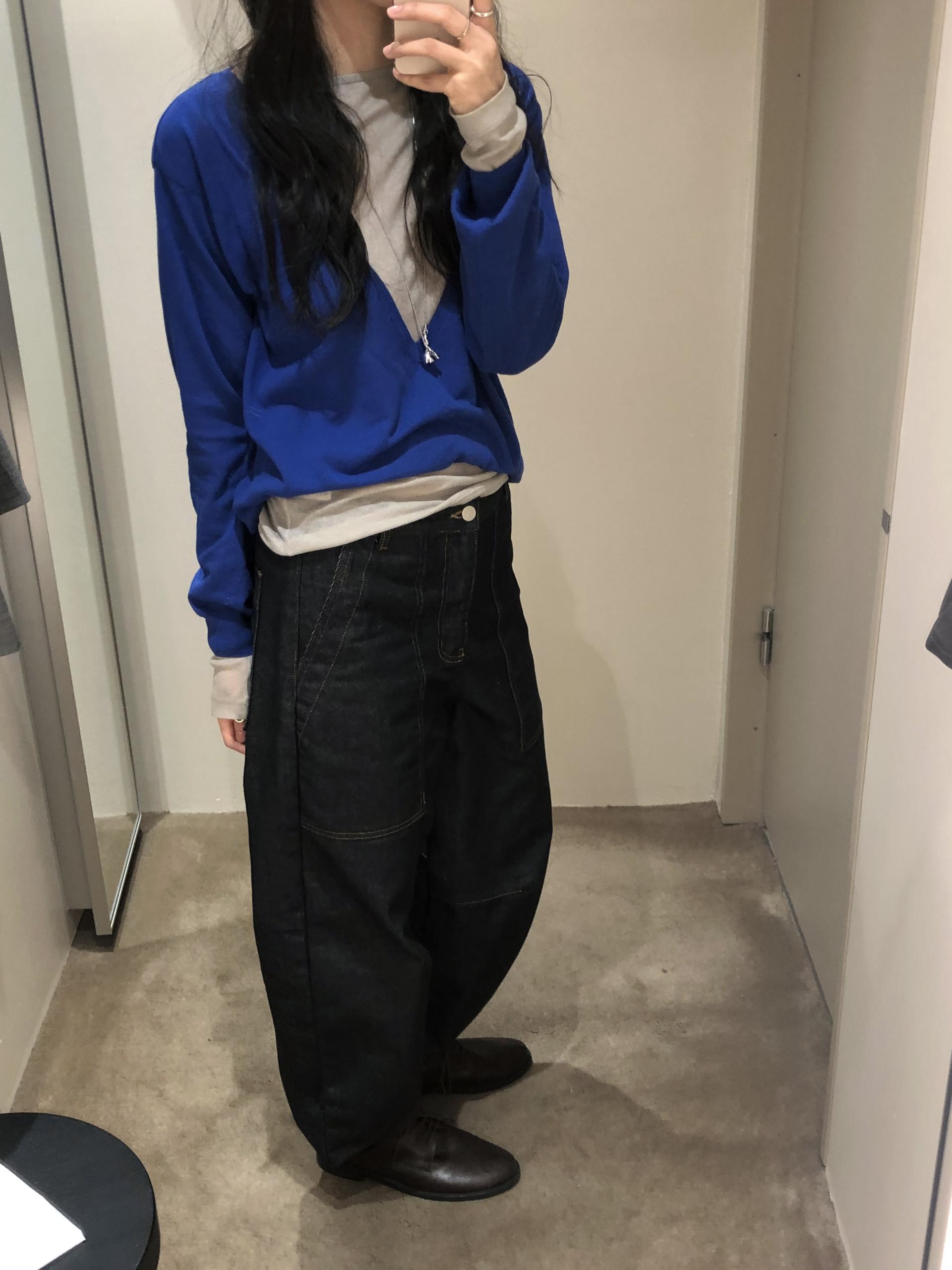 아이보리와 논페이드 데님 두 컬러로 나왔습니다. 실루엣만으로 은근히 차별화되는 데님이라 추천드리는 아이템입니다.