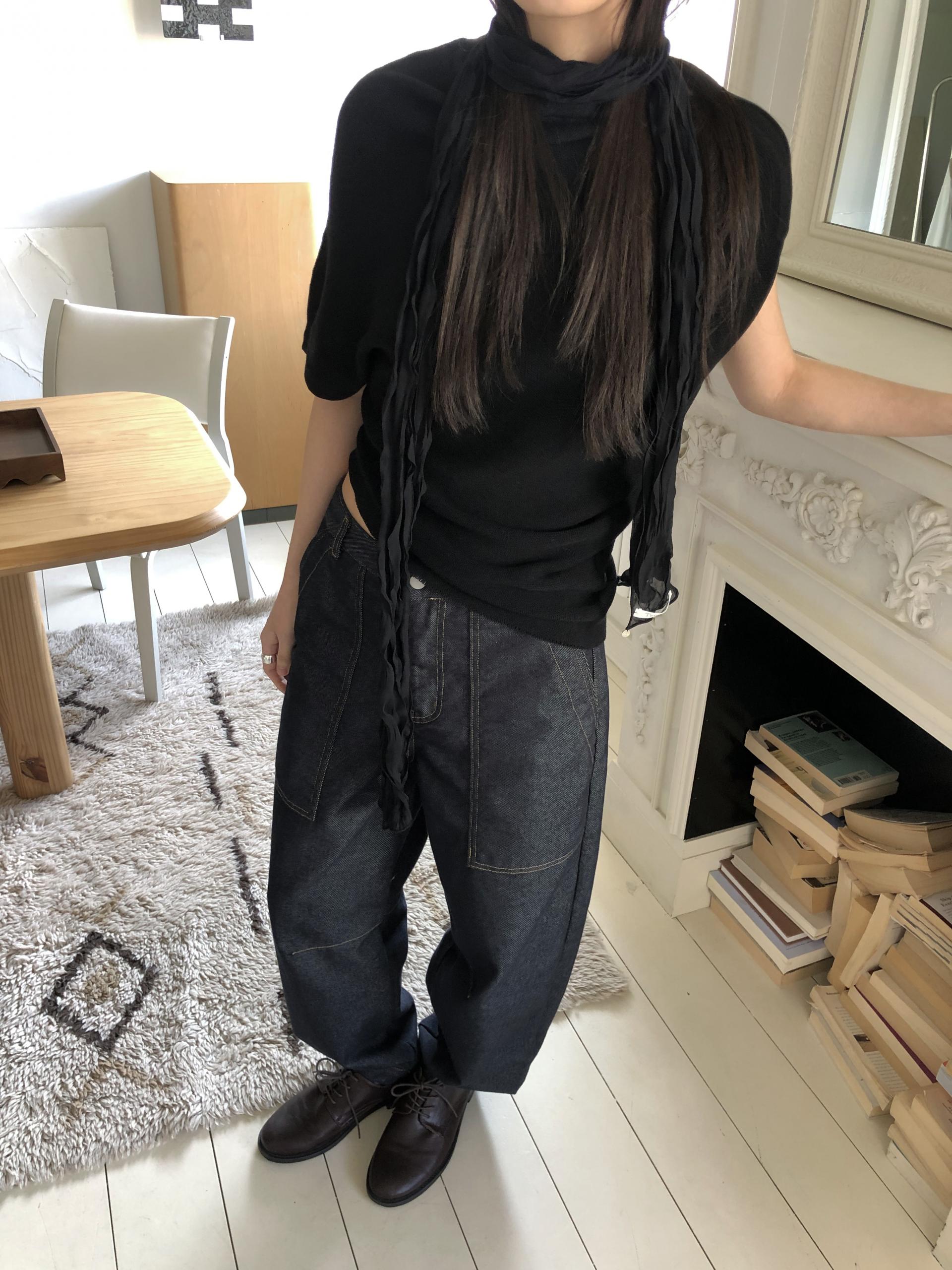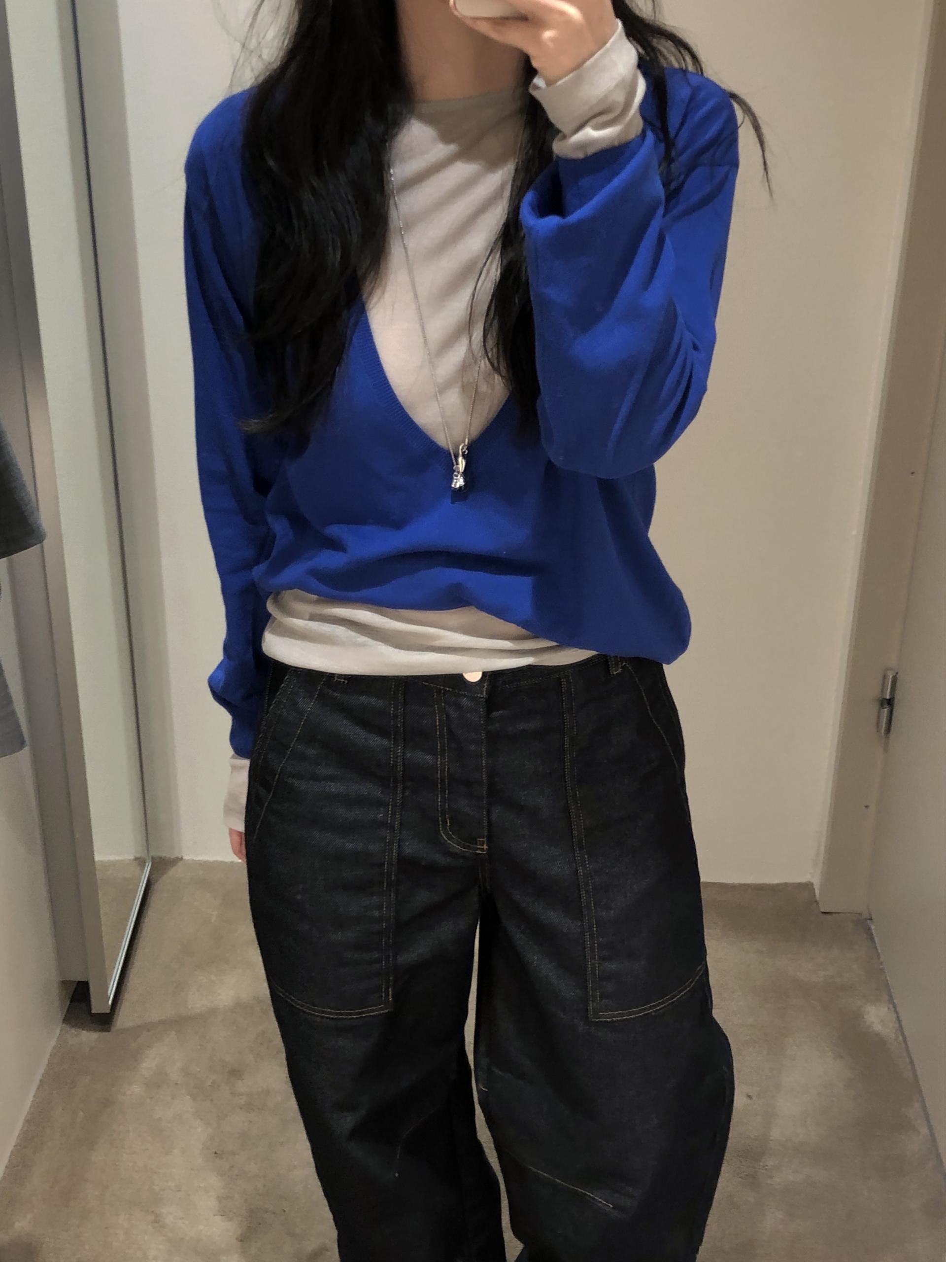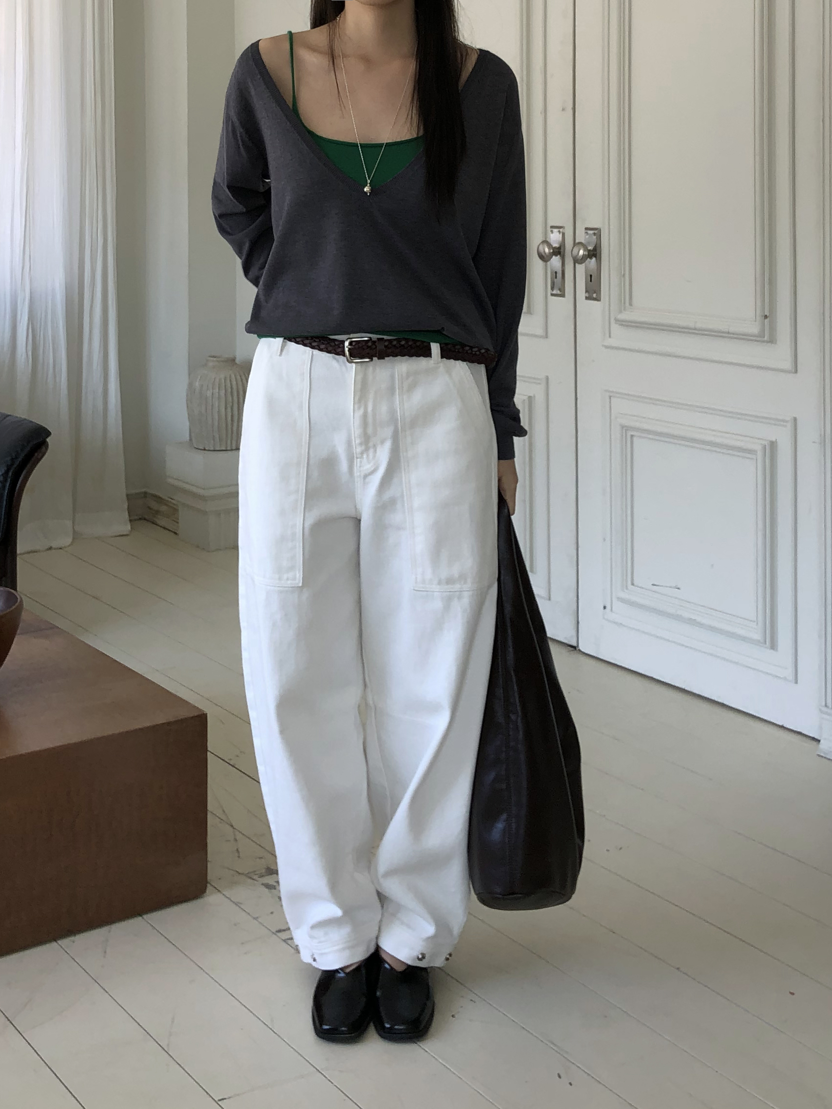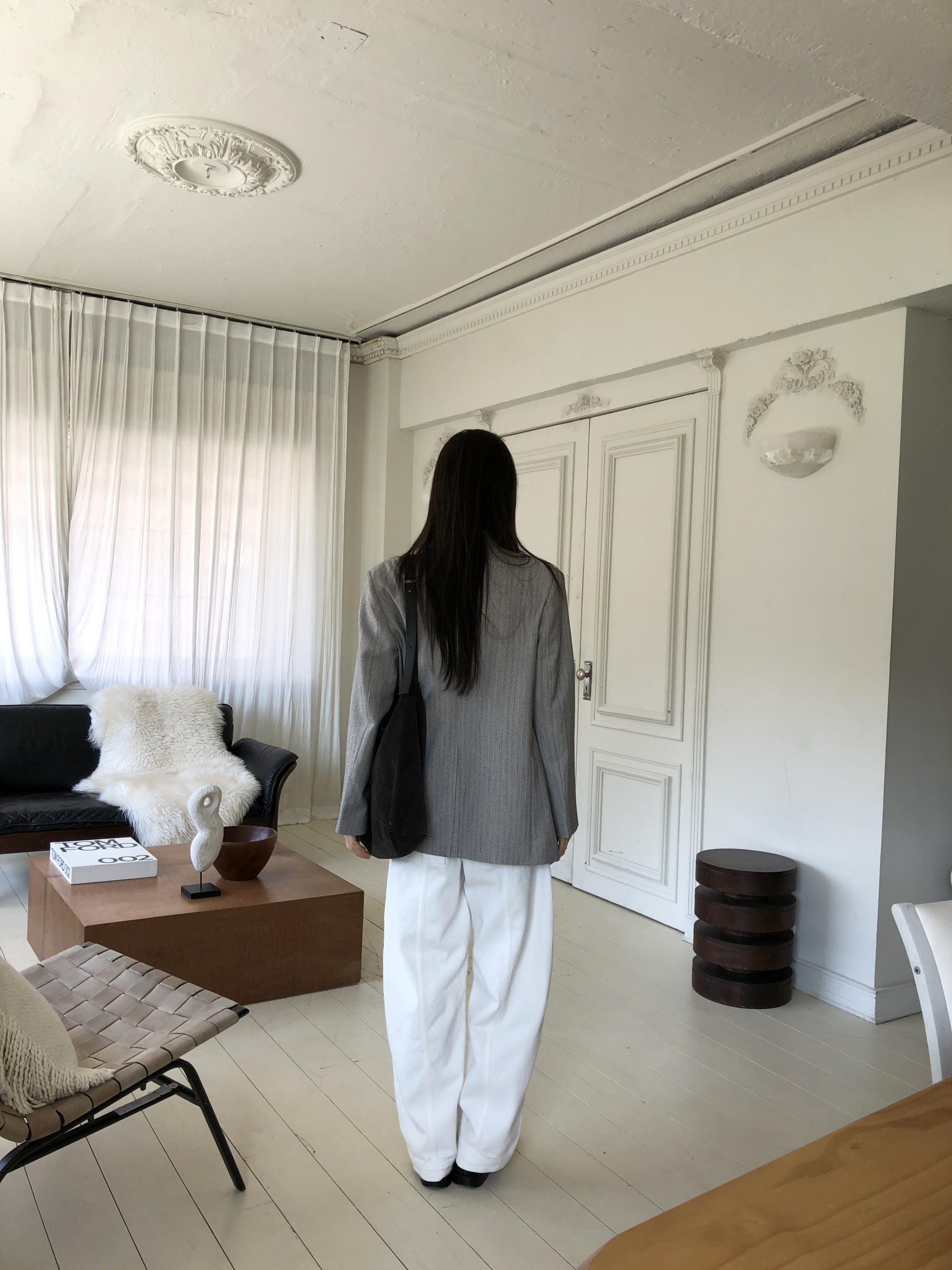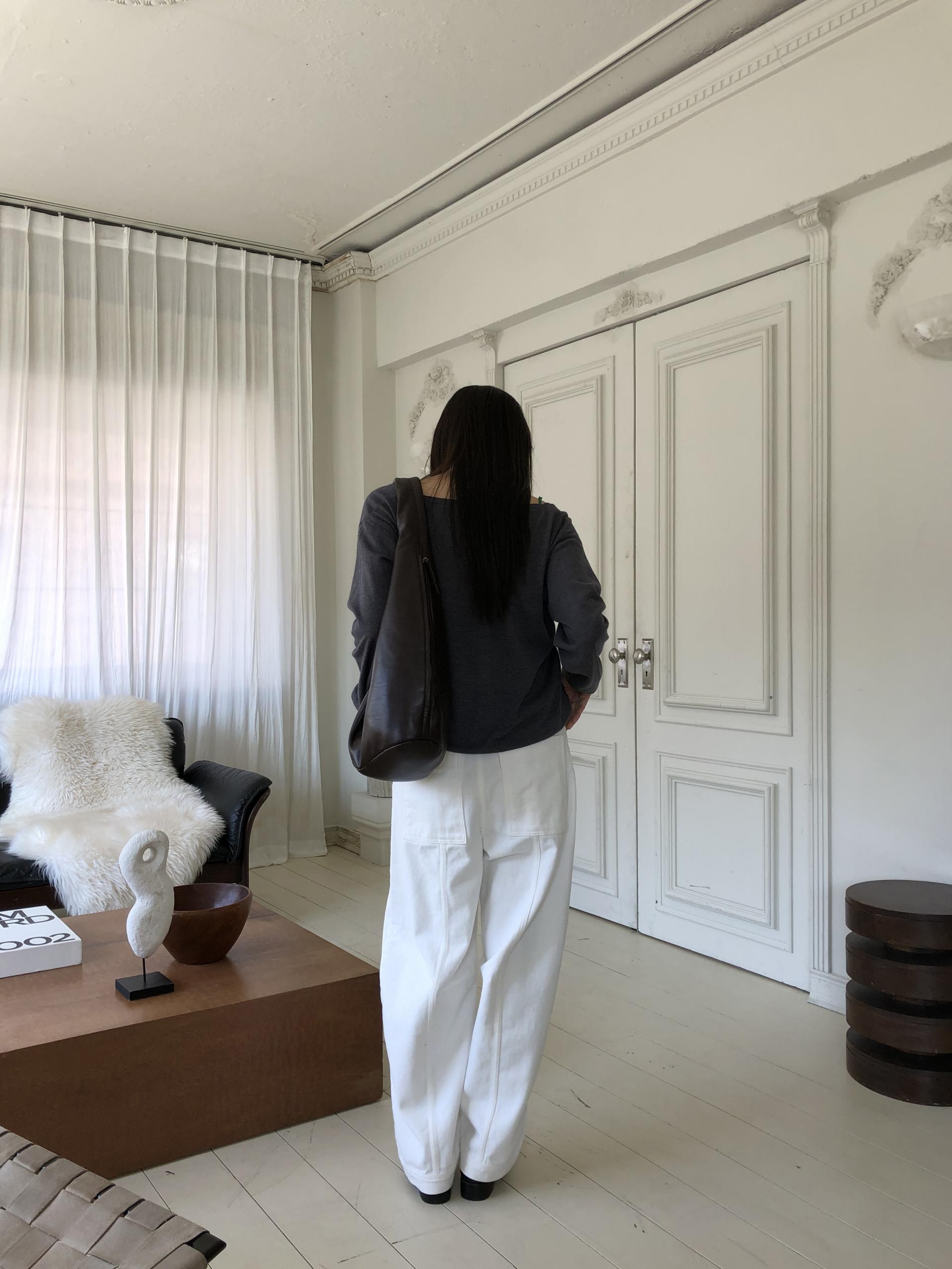 아이보리와 논페이드 데님 두 컬러로 나왔습니다. 실루엣만으로 은근히 차별화되는 데님이라 추천드리는 아이템입니다.